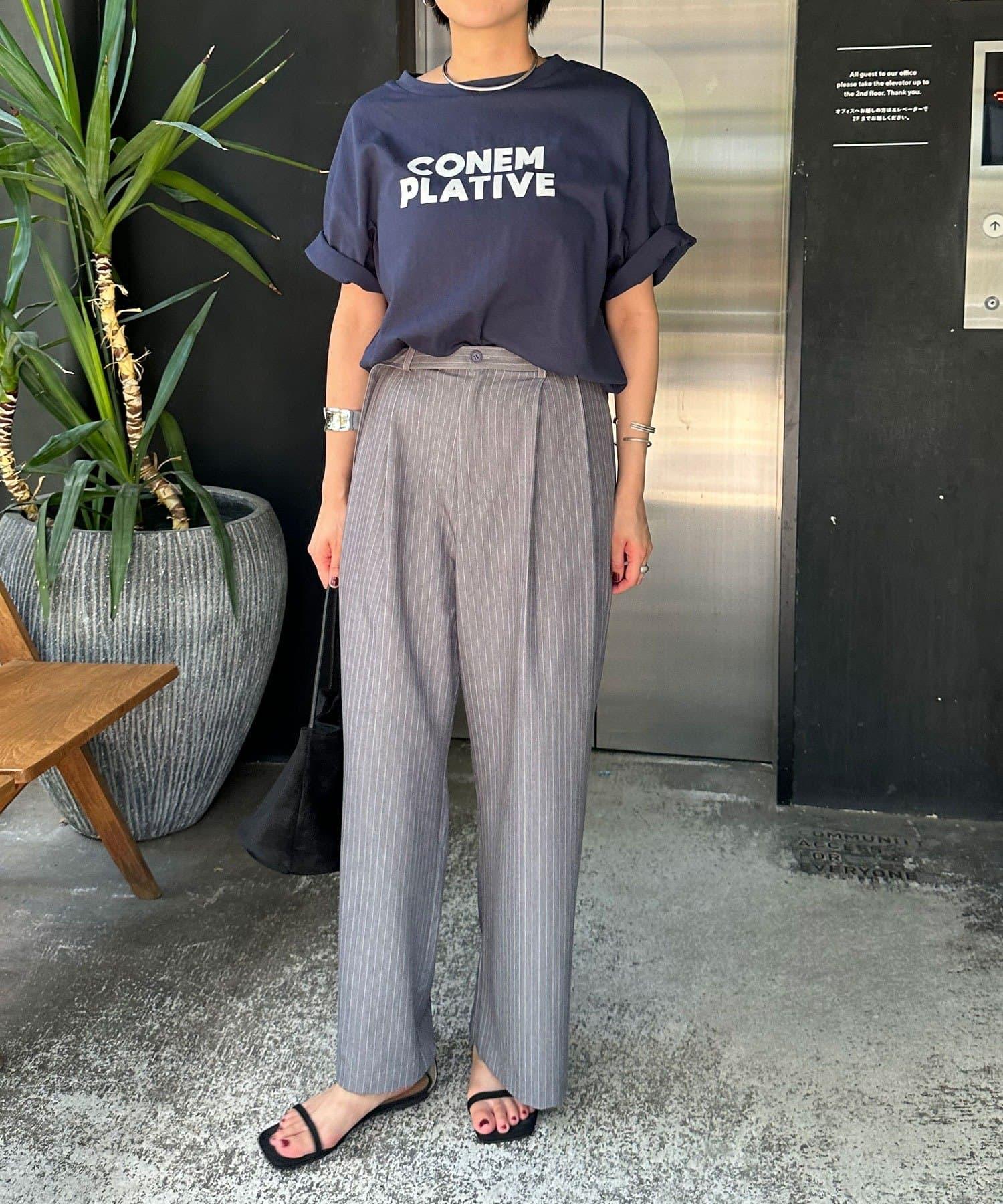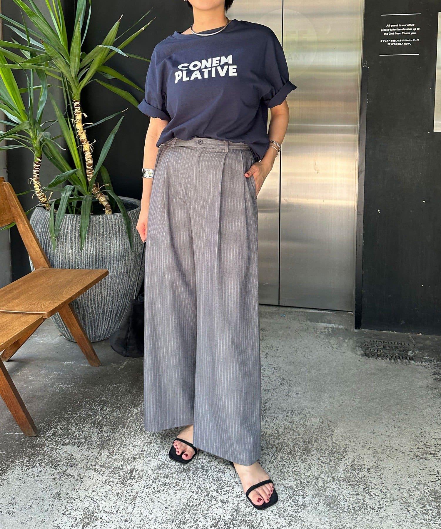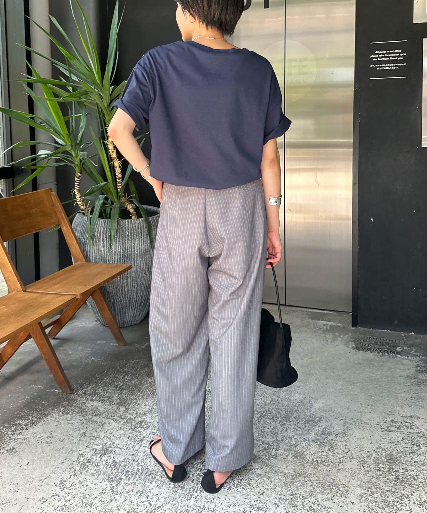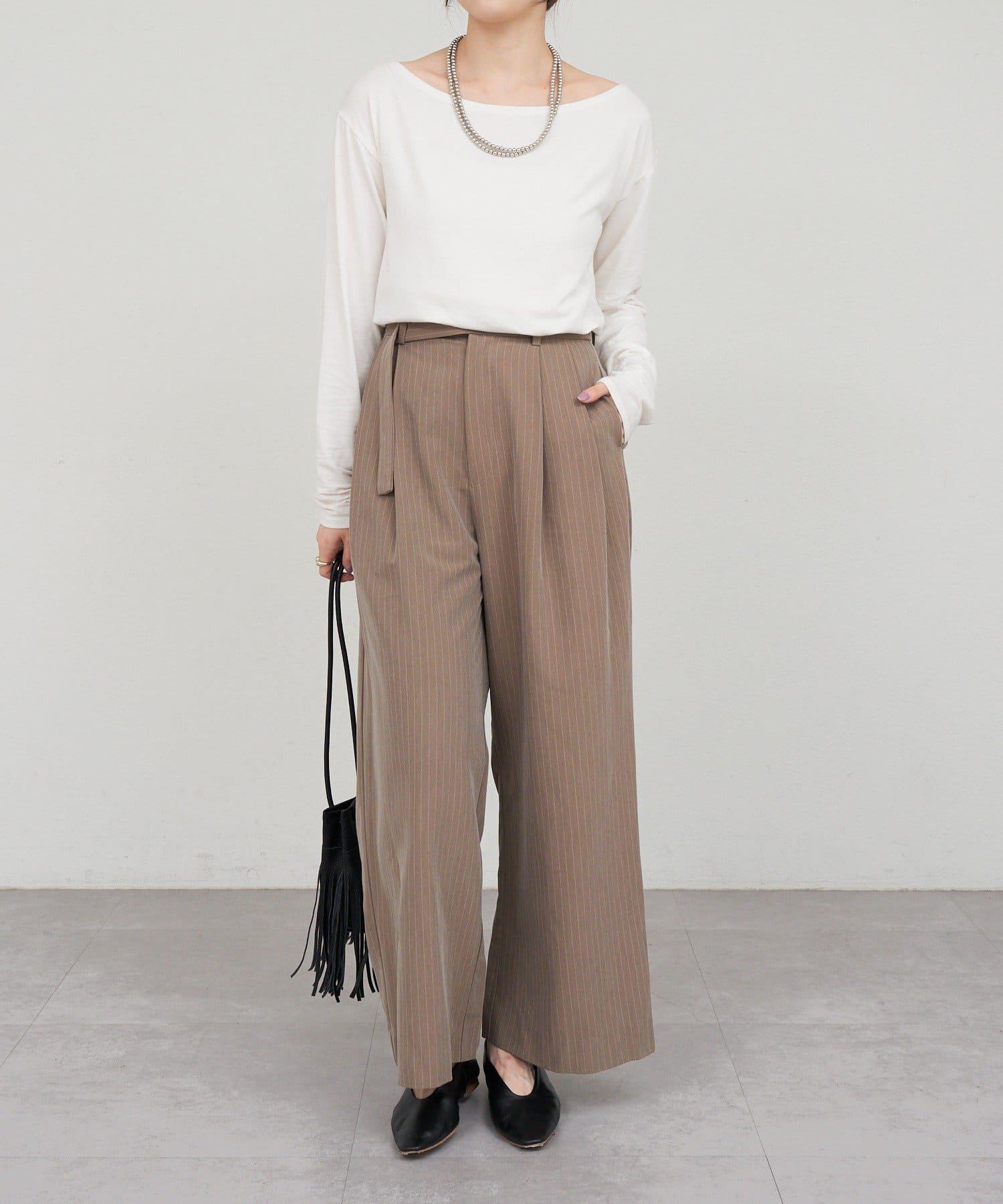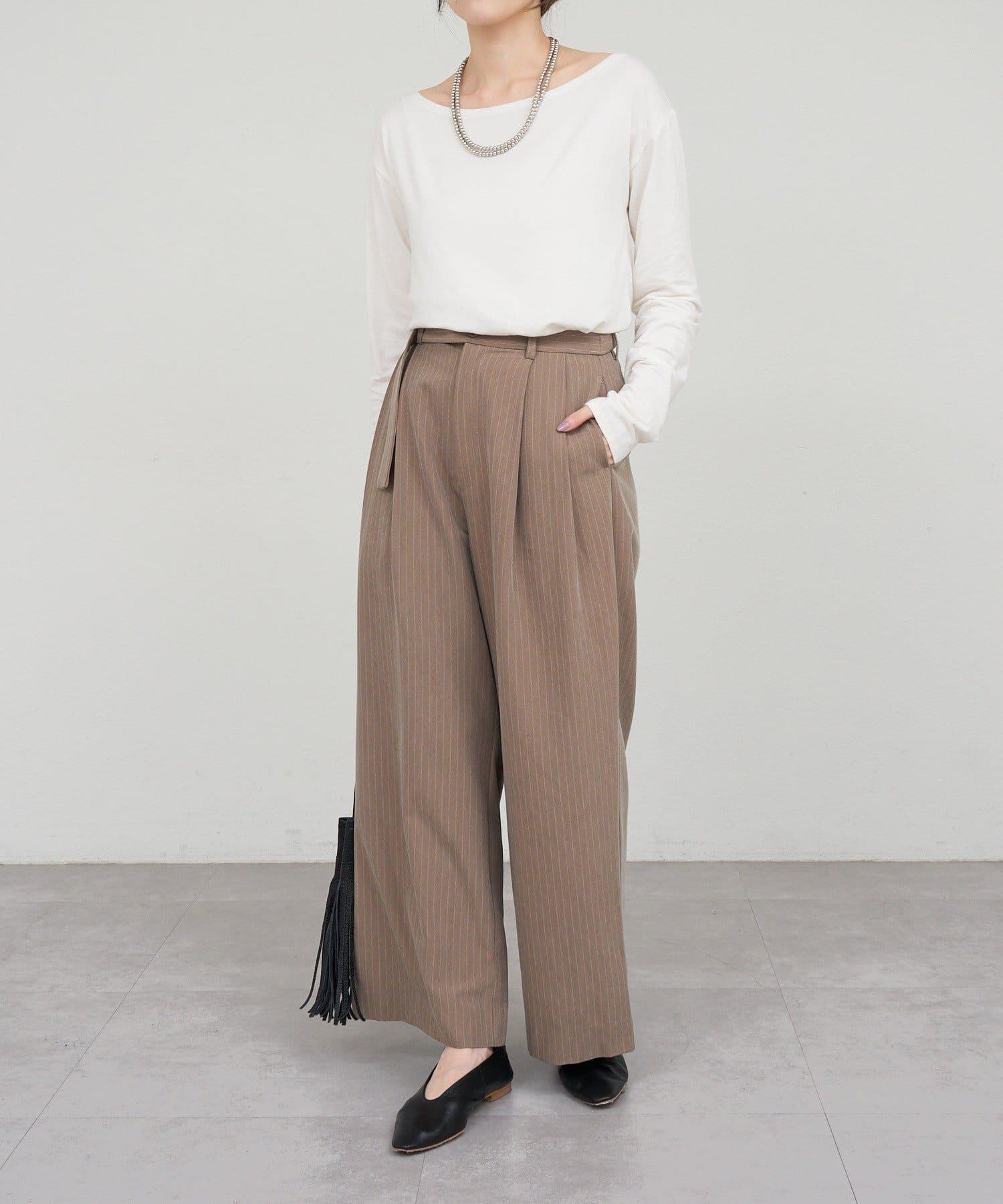 雙褶條紋寬腿褲