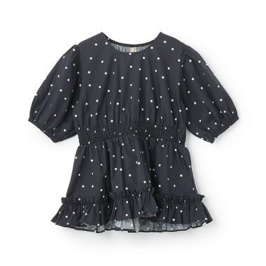 喇叭形的廓形從過渡處展開,營造出少女氣息。