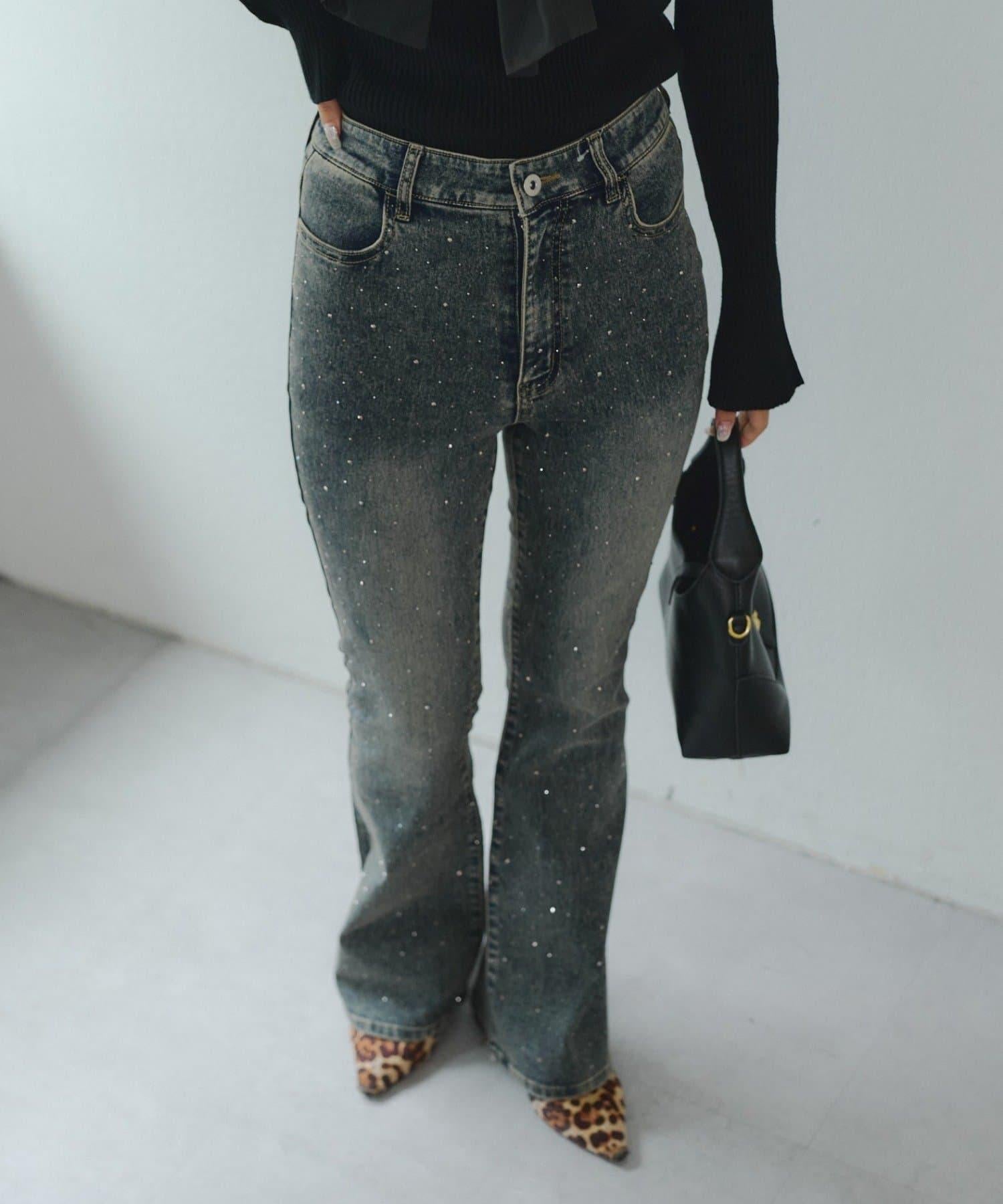 鑲嵌寶石的牛仔長褲,走起路來閃閃發光。