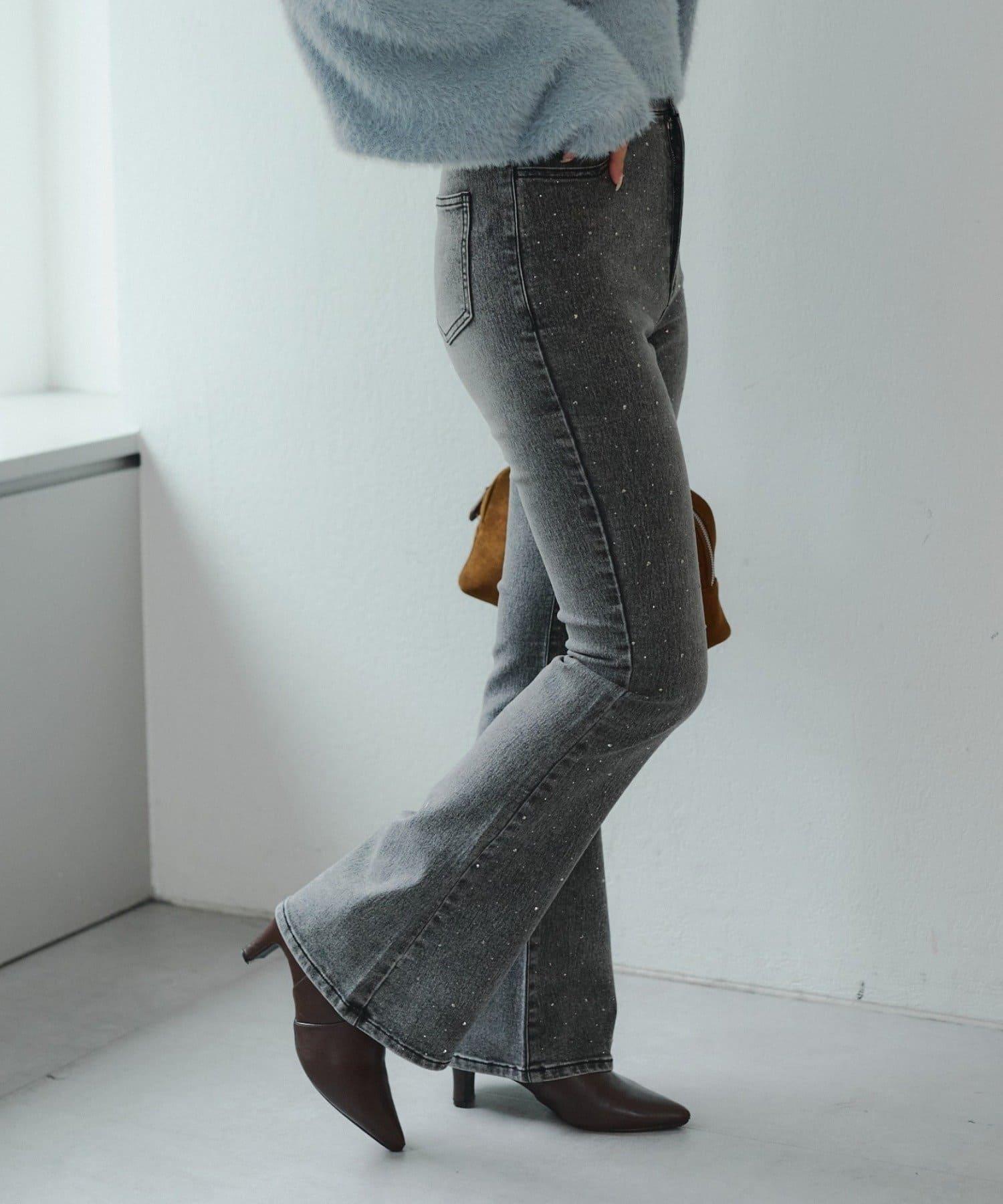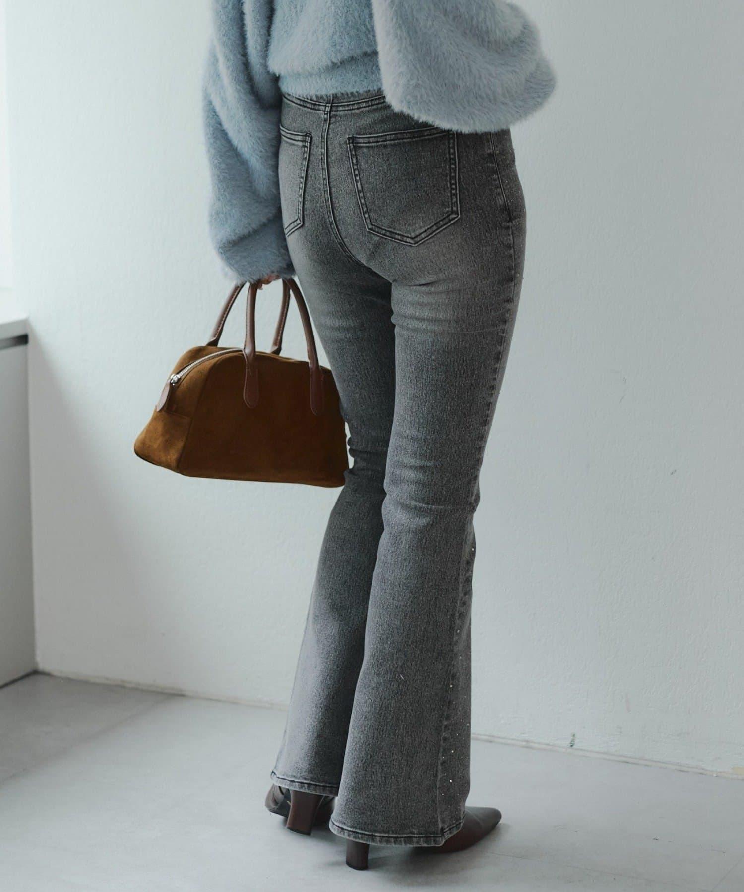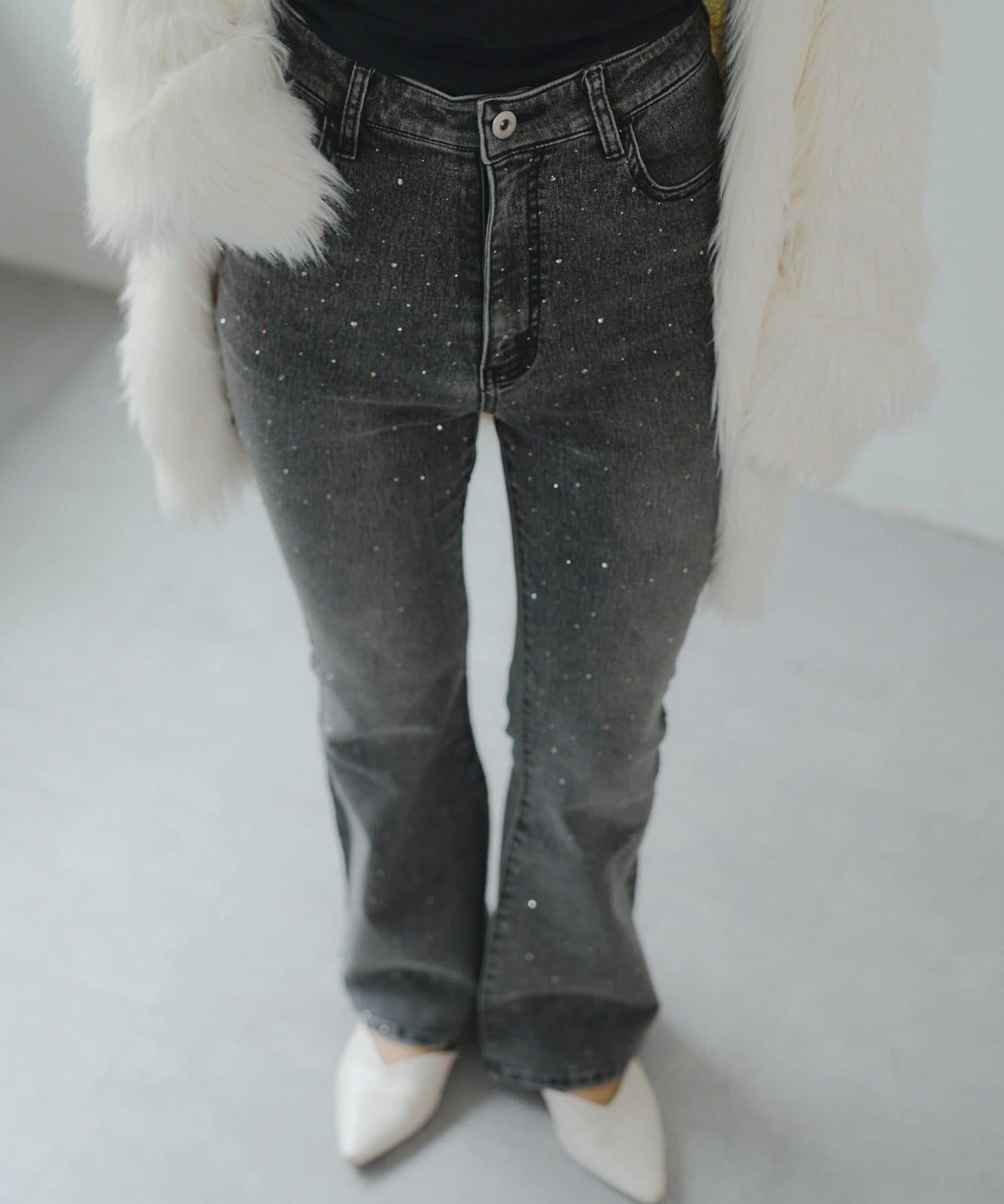 高彈力美型剪裁【RMAF】亮片彈力微喇牛仔褲