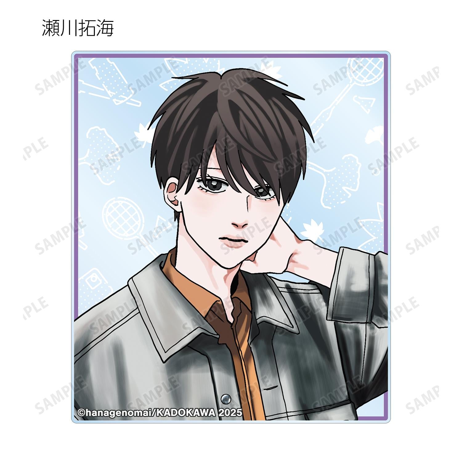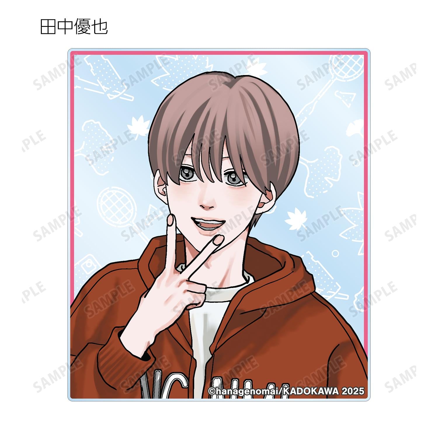丙烯酸卡片上的人物包括小良順、天木太一、柿本健、田中裕也、田中隼人、瀨川拓實、香取浩介和山崎聰,所有插圖均由 Mai Hanageno 繪製。