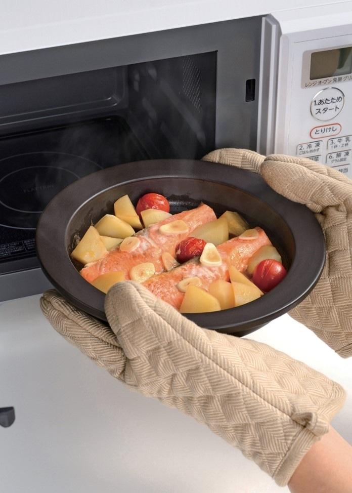 這款微波爐專用盤子可直接烘烤和端上餐桌。該盤子可在微波爐、烤箱或明火中使用,因此可用於製作更多菜餚。由於這道菜可以直接端上桌,因此減少了清洗的工作量,非常方便。在用鍋或平底鍋烹飪的同時,您還可以用微波爐多做一道菜。盤子邊緣較寬,便於在上面撒芥末等調味料。