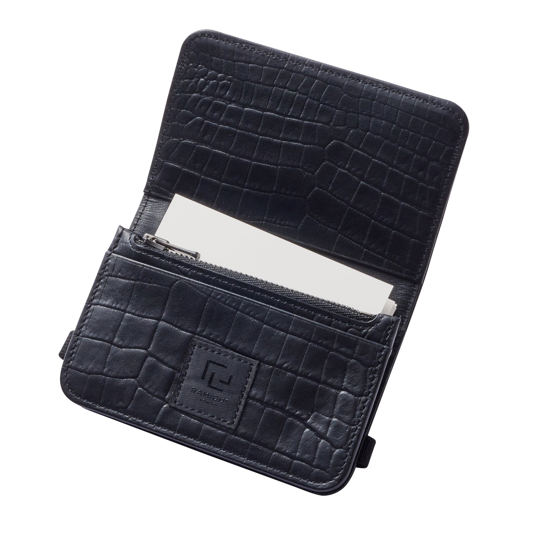 內部:拉鍊零錢袋、卡袋、兩個插槽、品牌👍、鱷魚壓紋 LWG 皮革雕刻。
