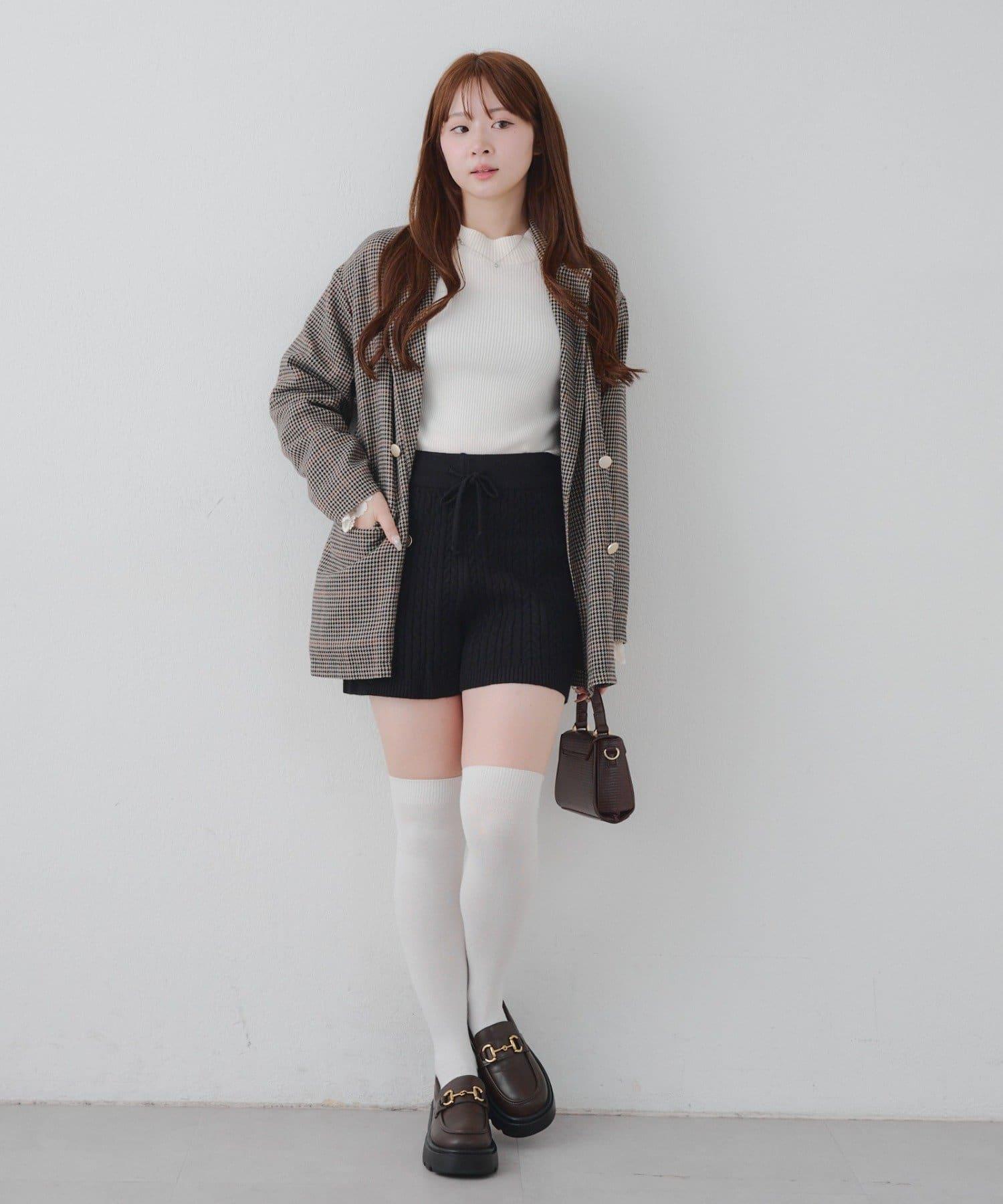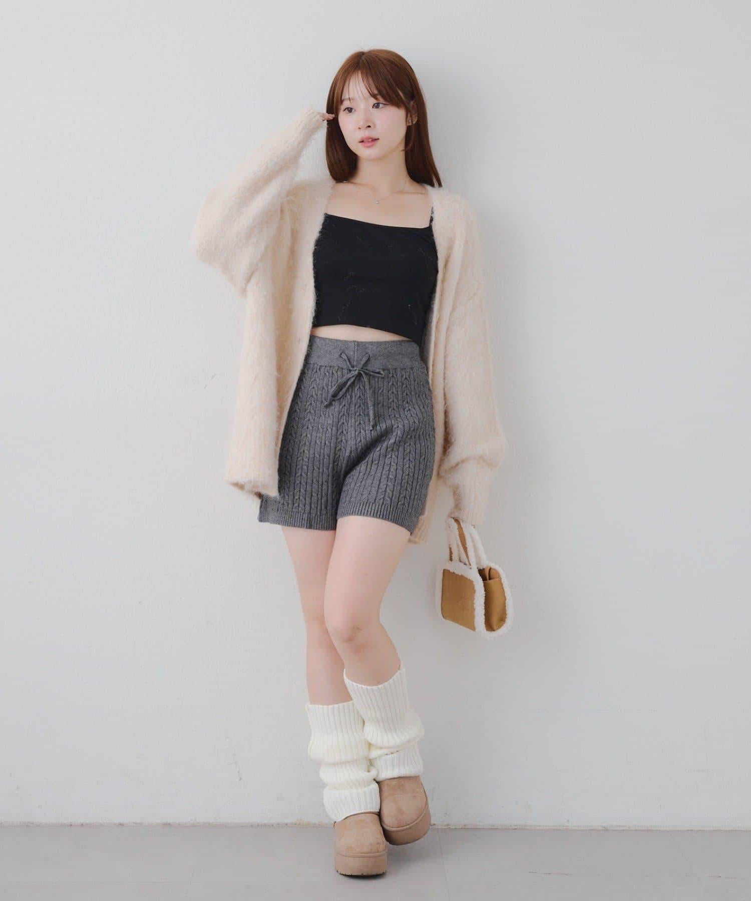 針織短褲提升了季節氛圍。