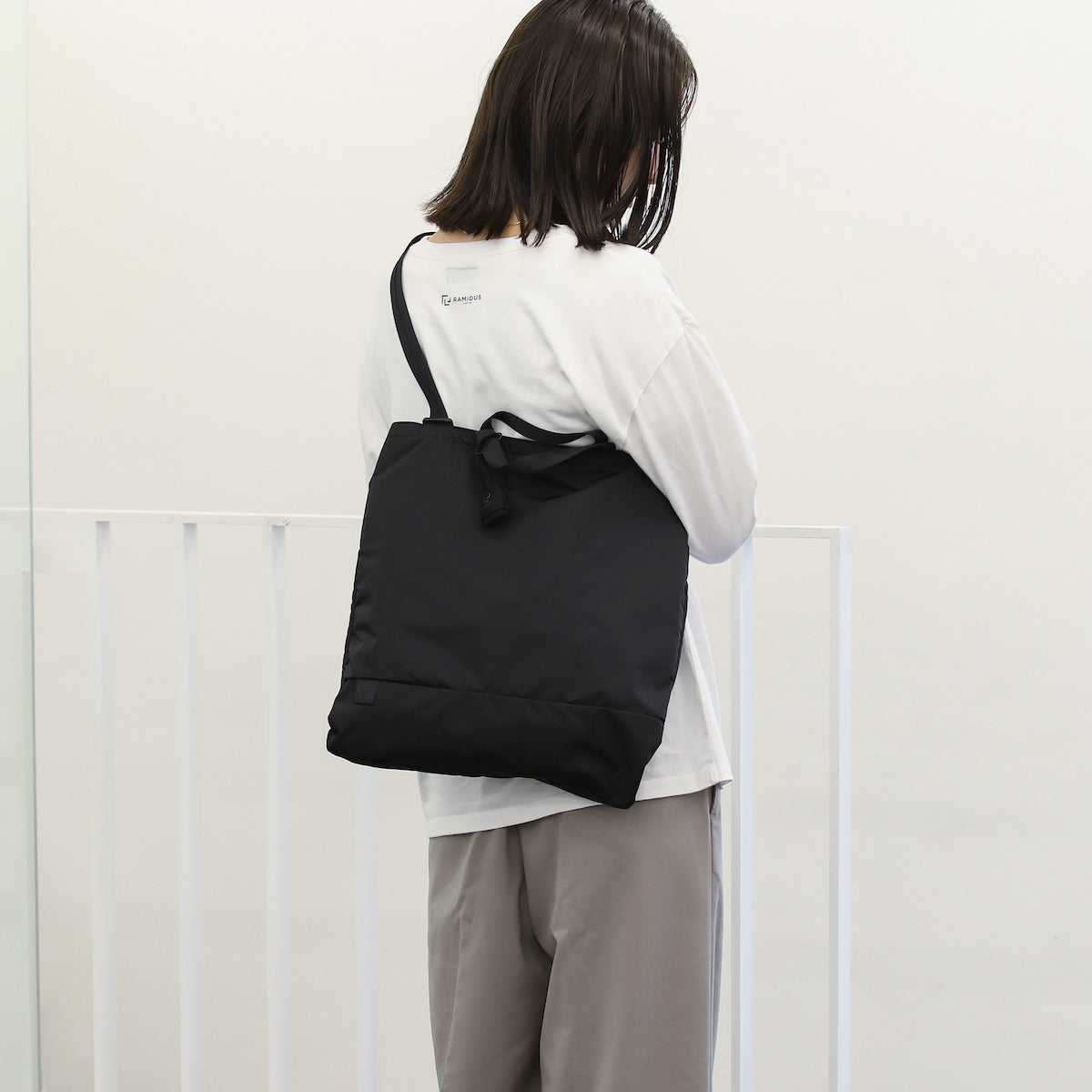 一款雙肩包,設計輕巧、簡約,結合了雙肩包和手提包的功能。該包的設計是根據要存放的物品的重量來關閉包口,所以在騎自行車等旅行時可以安全使用。內部配備了一個可容納相當於16英寸MacBook Pro的筆記本電腦的套袋,以及三個用於存放卡片盒、鑰匙盒等的槽袋。包括TECH WIPER,可用作眼鏡、太陽鏡鏡片和智能手機屏幕的屏幕清潔劑。