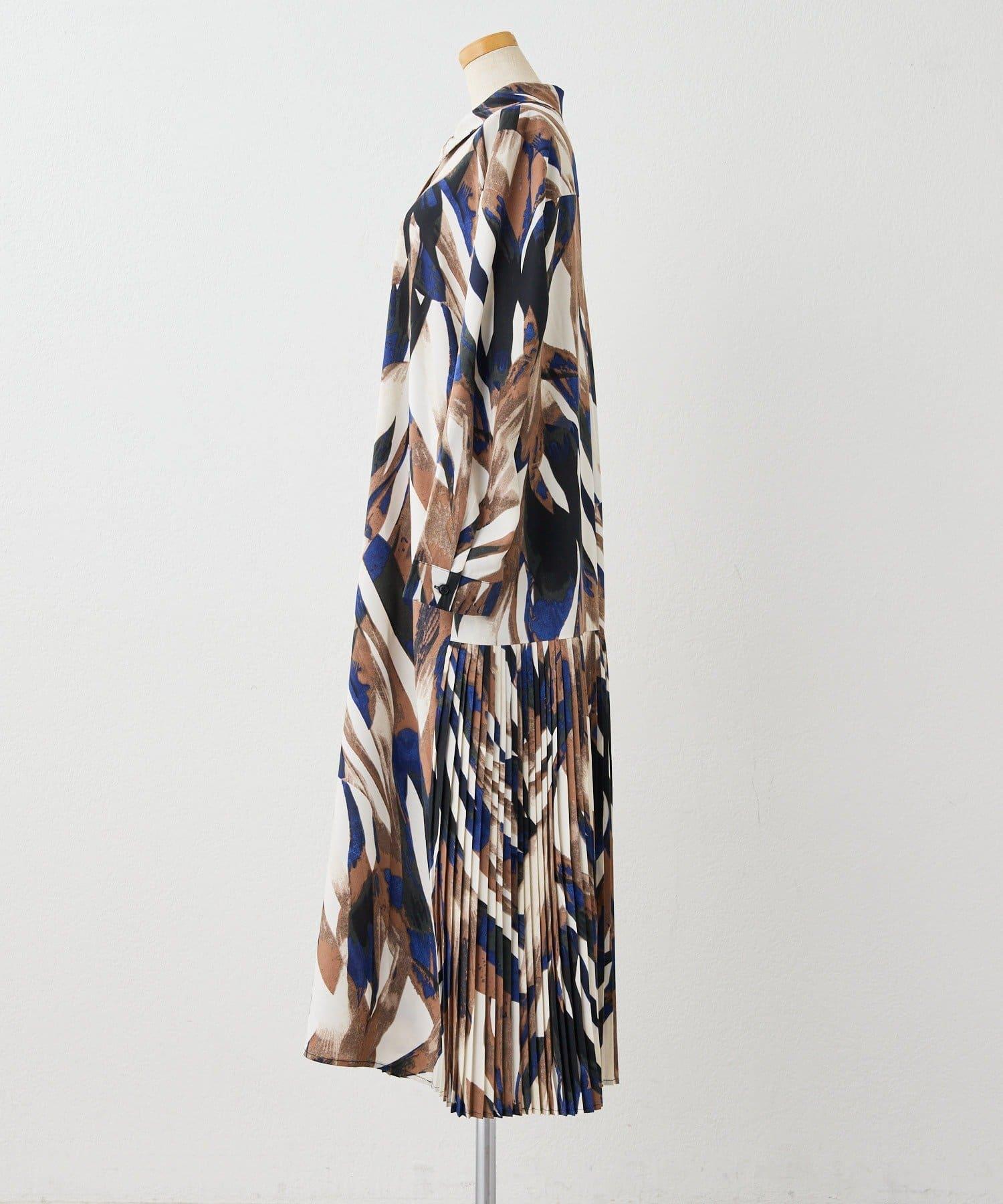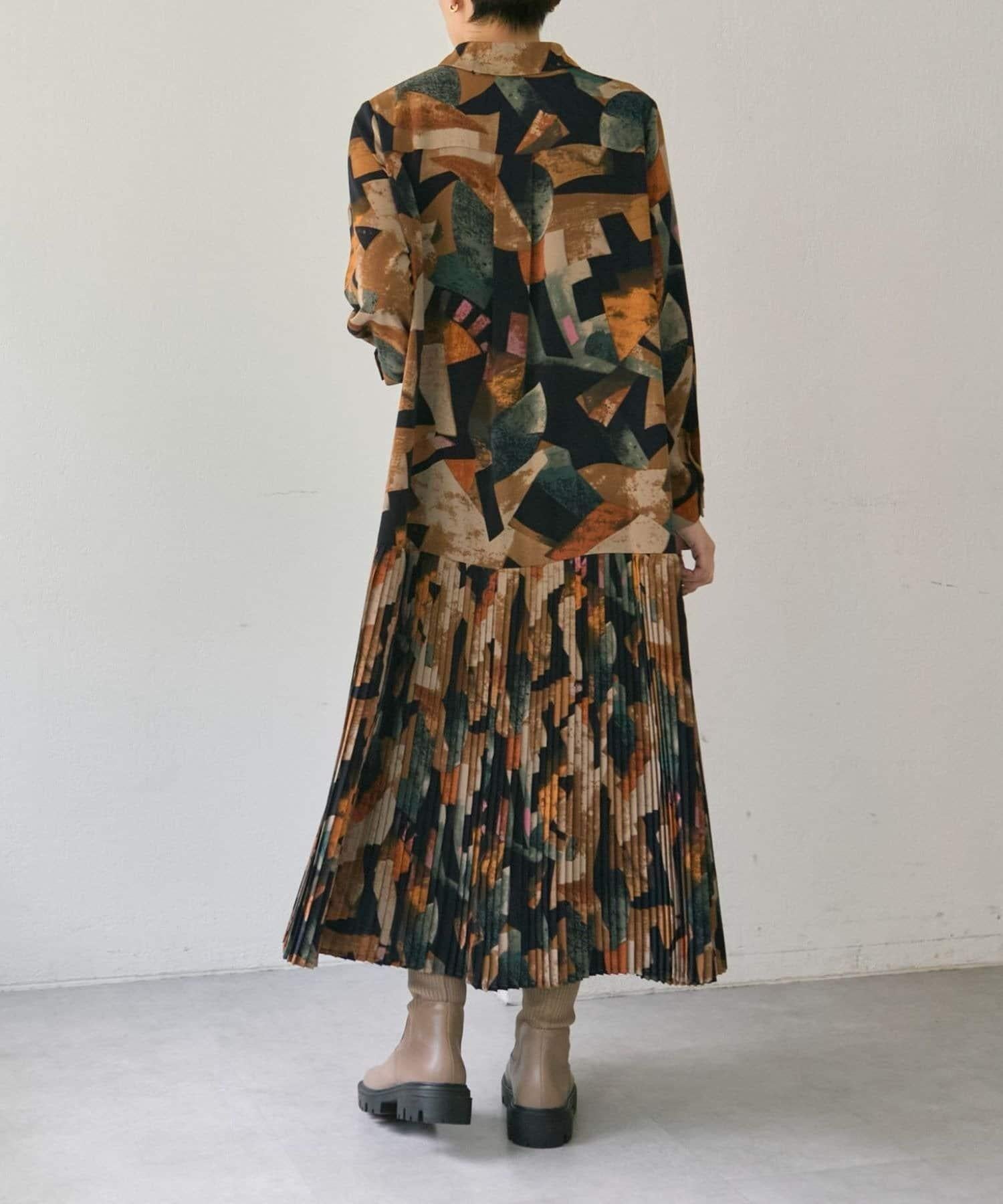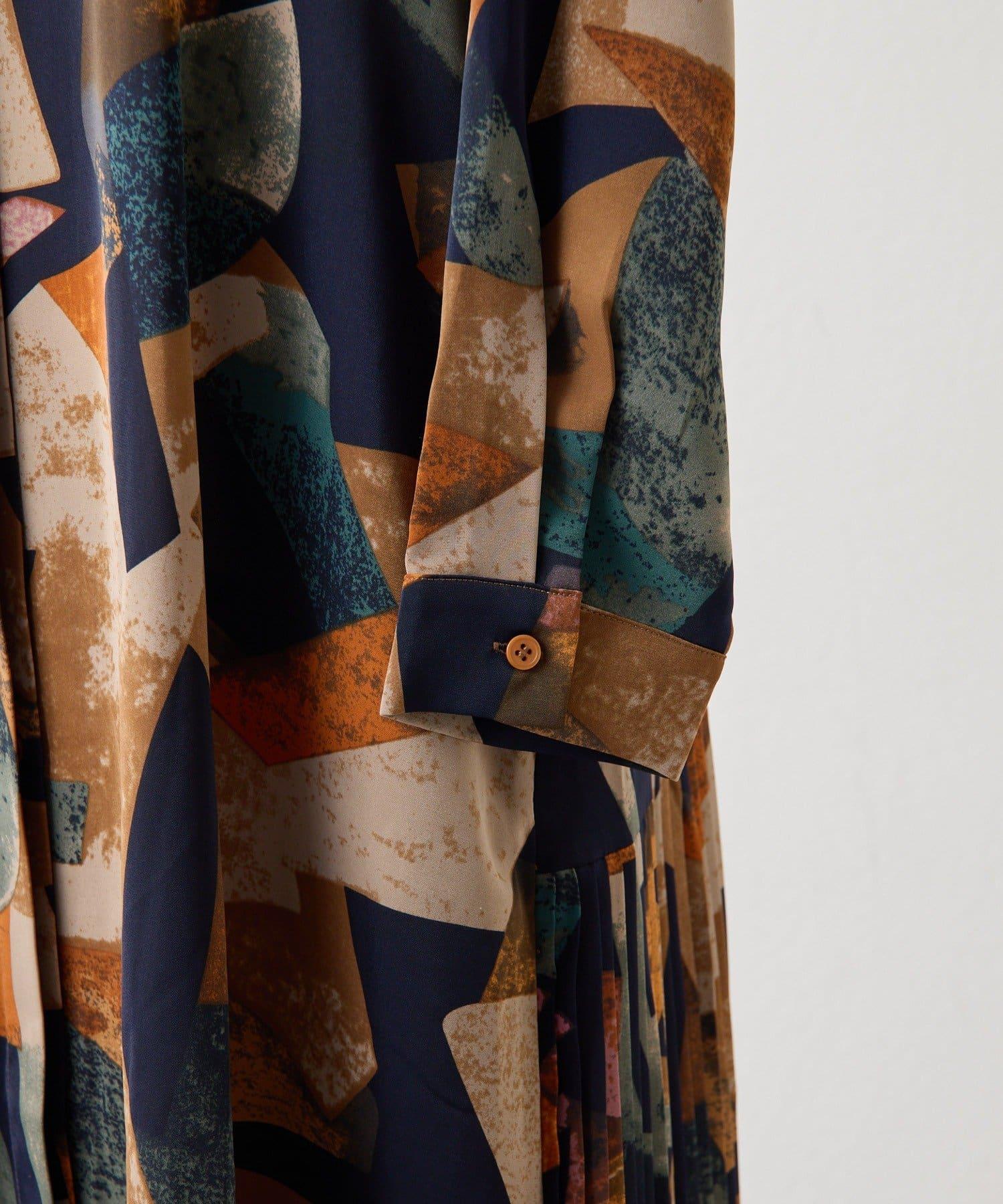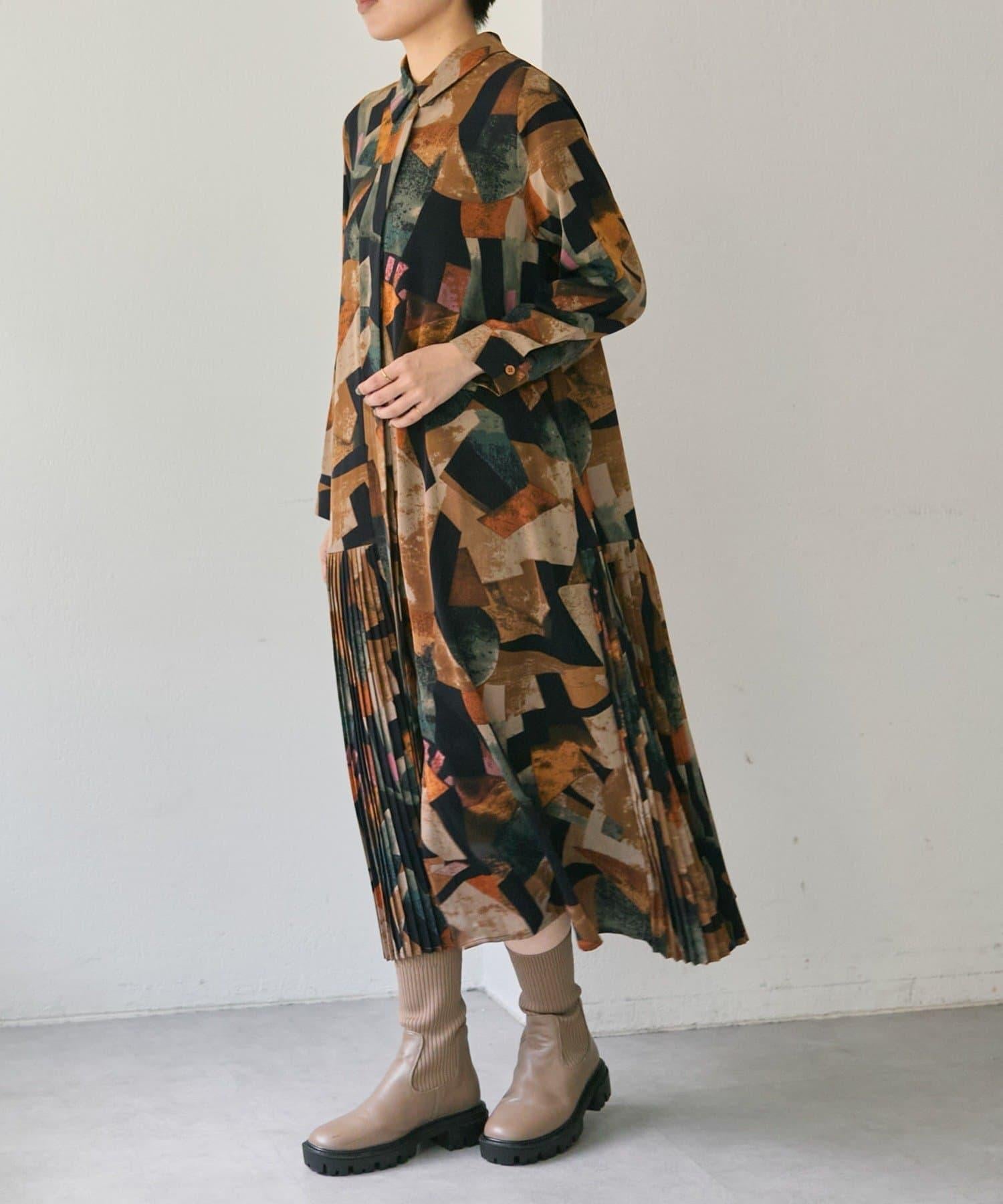 《1枚定型/全印花》帶領褶皺連衣裙【SUM1 STYLE(スミスタイル)】