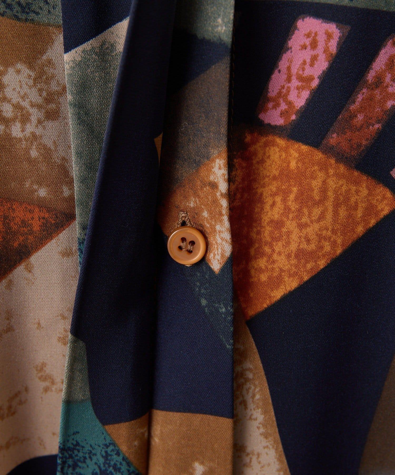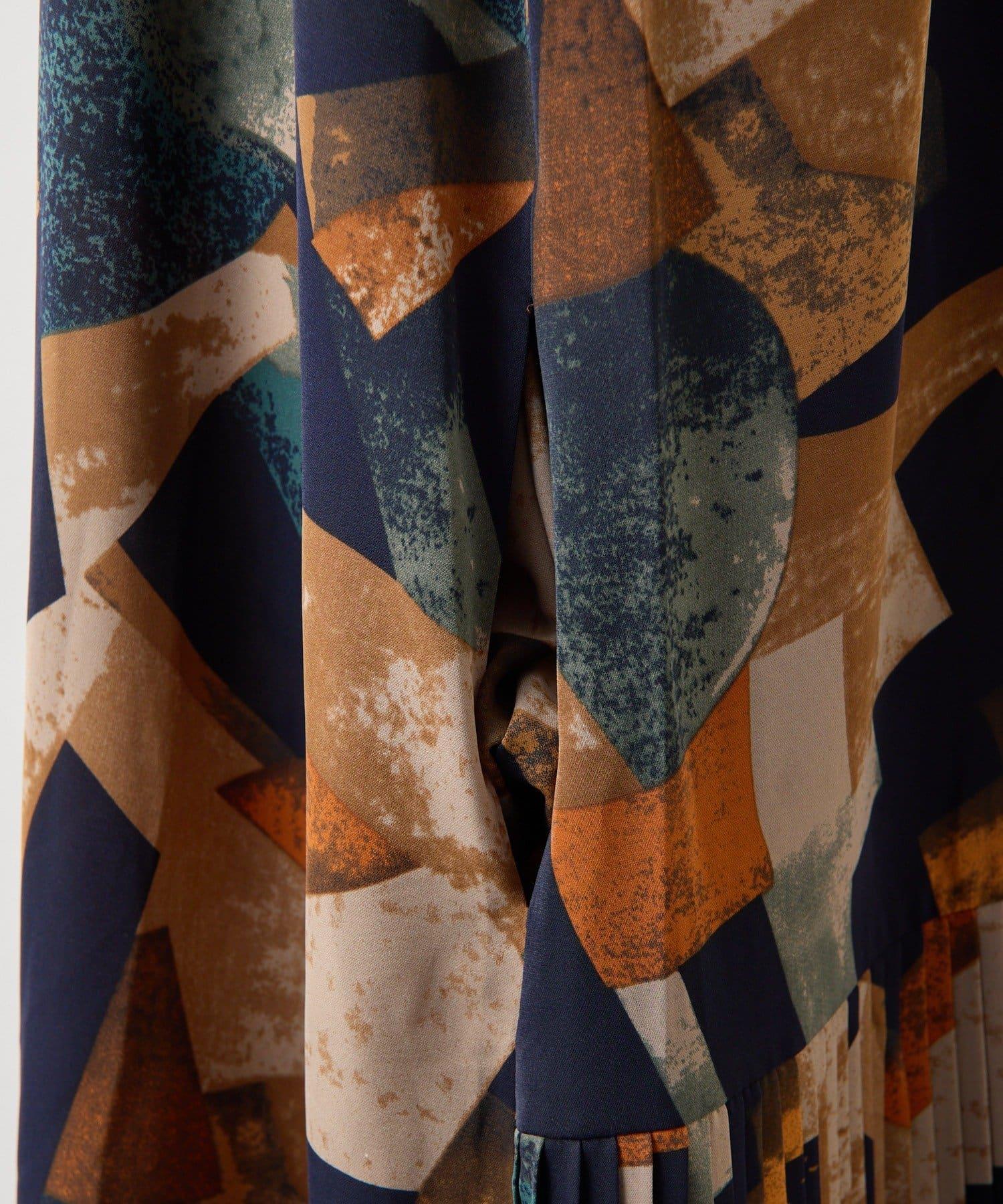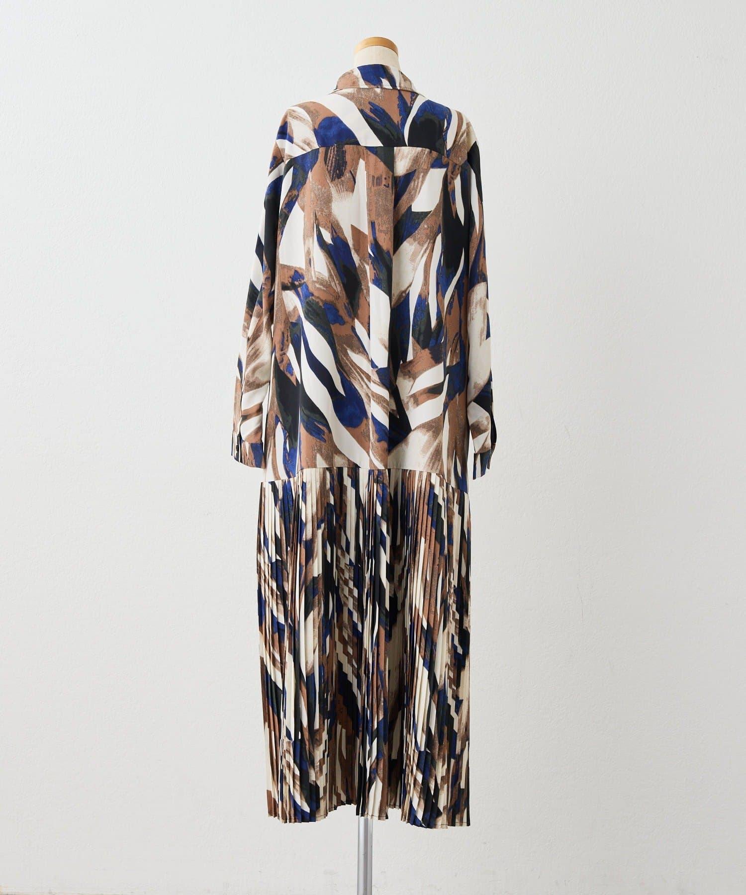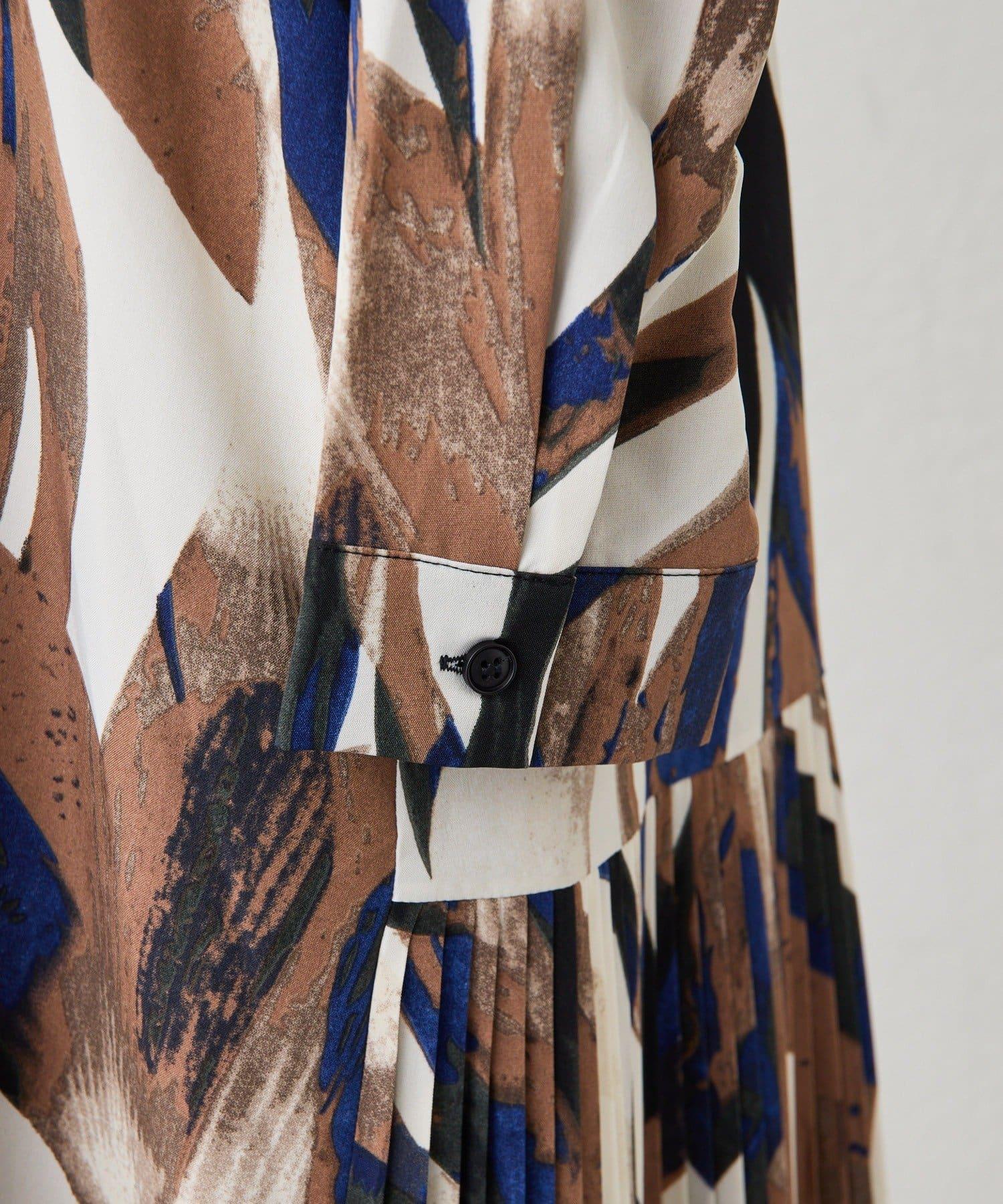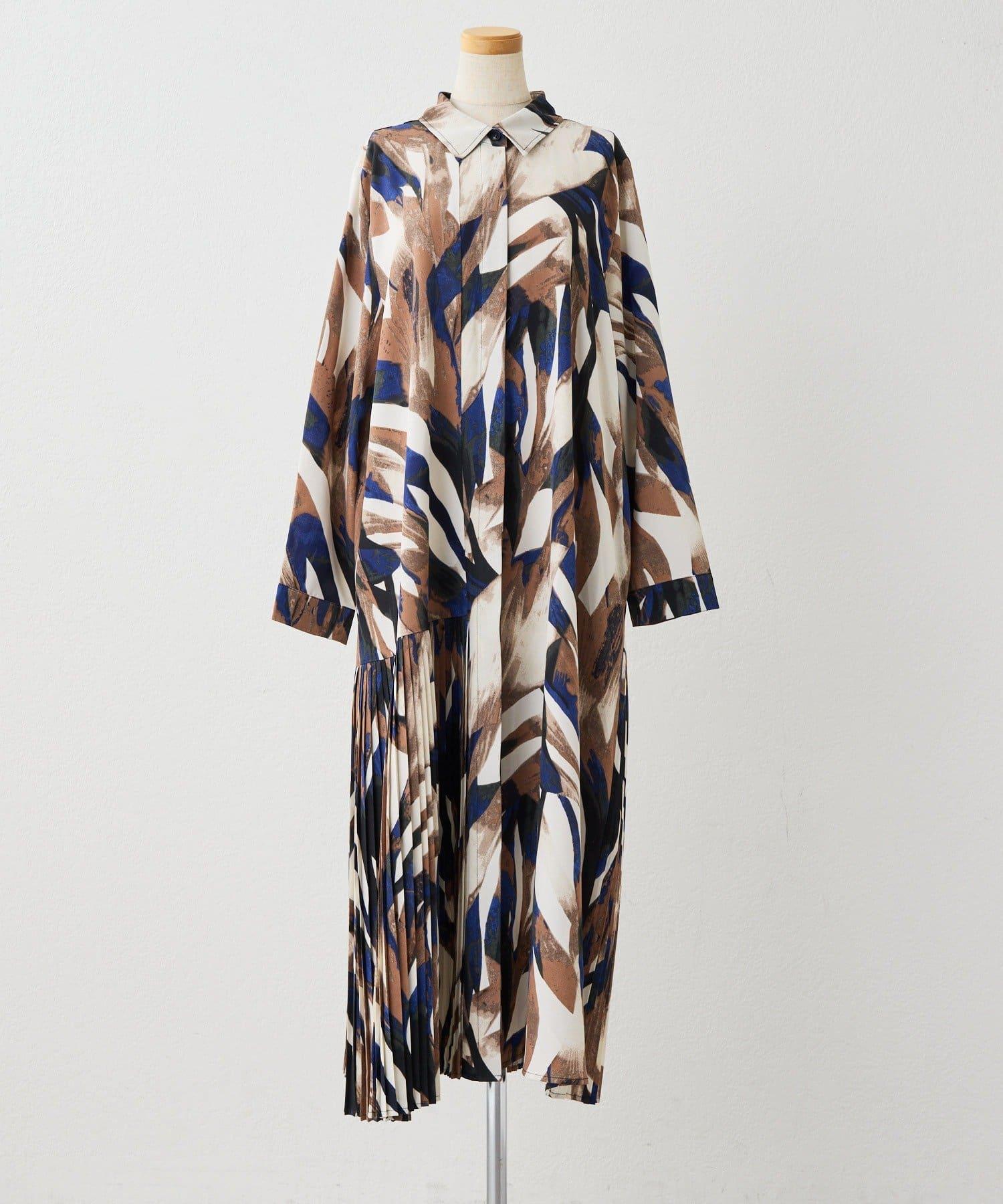 《1枚定型/全印花》帶領褶皺連衣裙【SUM1 STYLE(スミスタイル)】