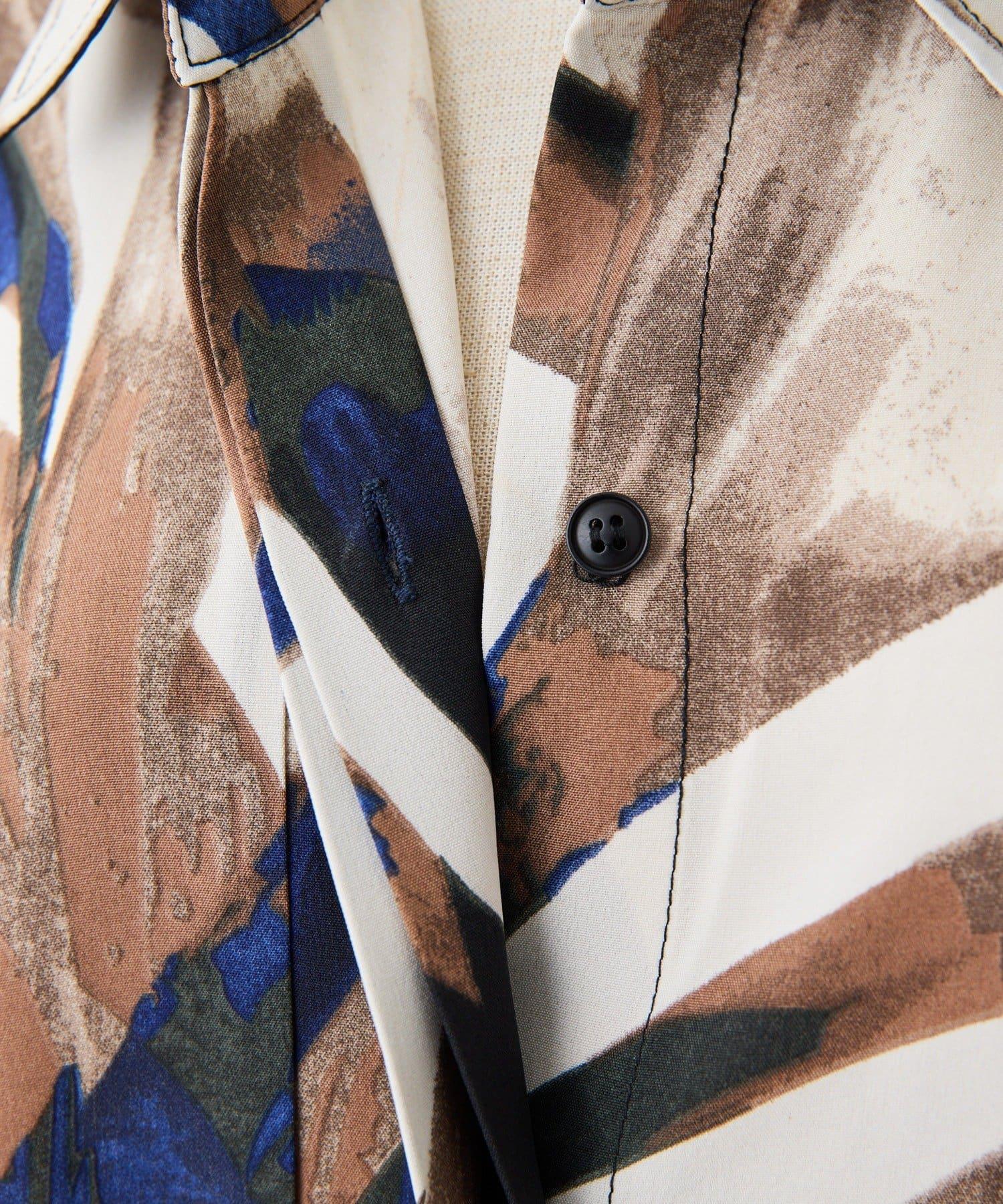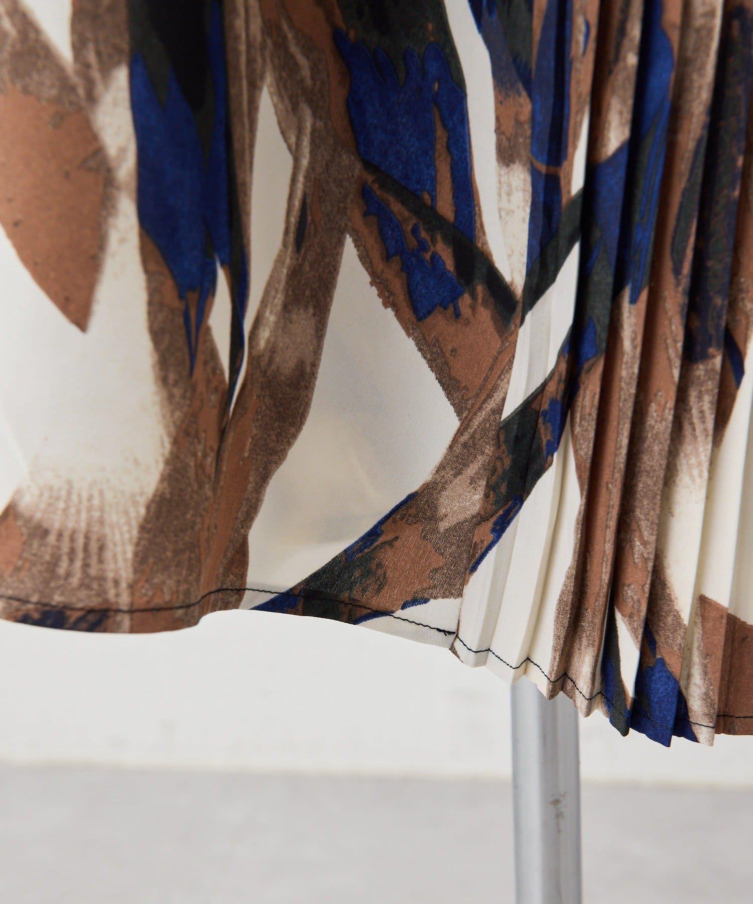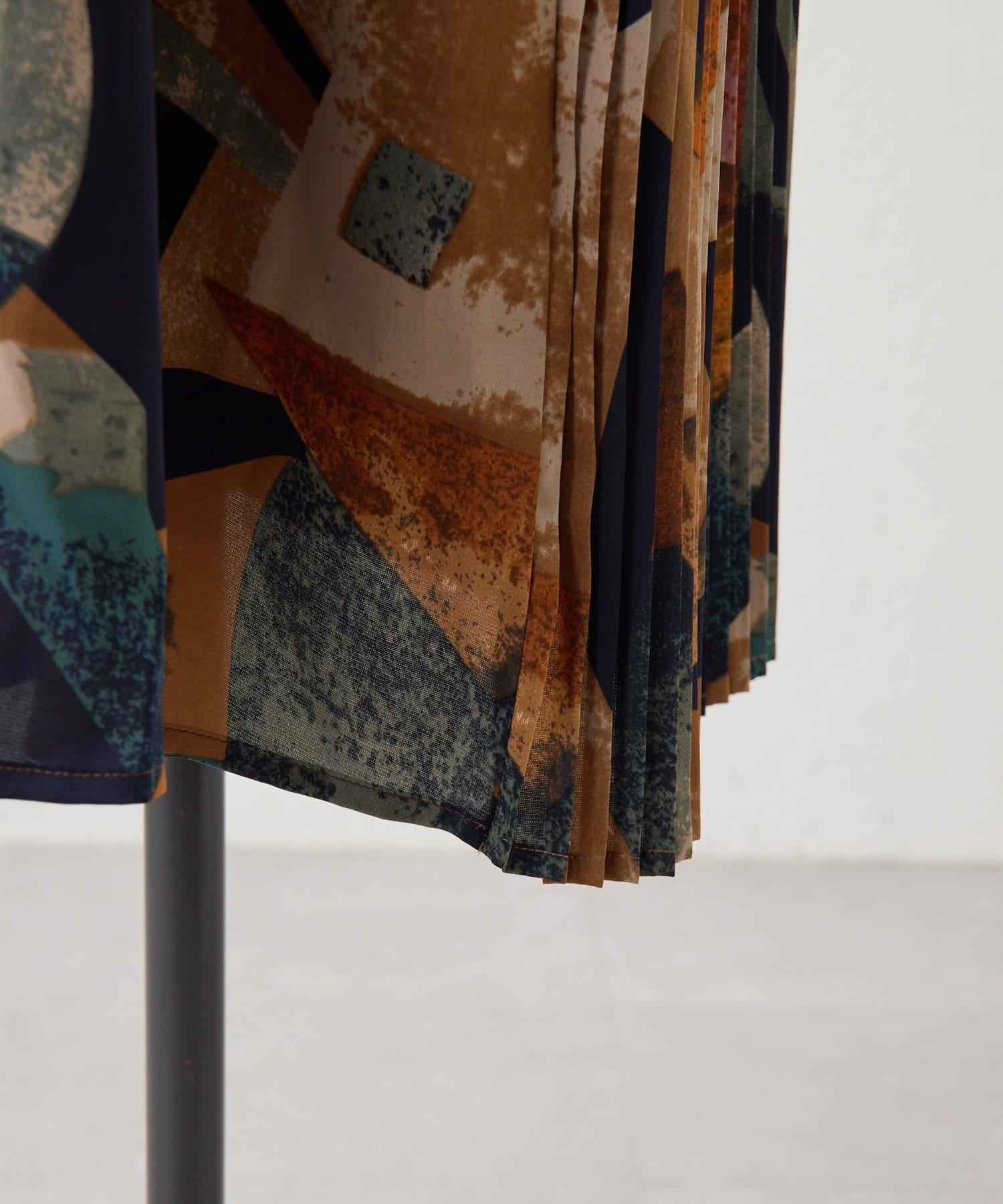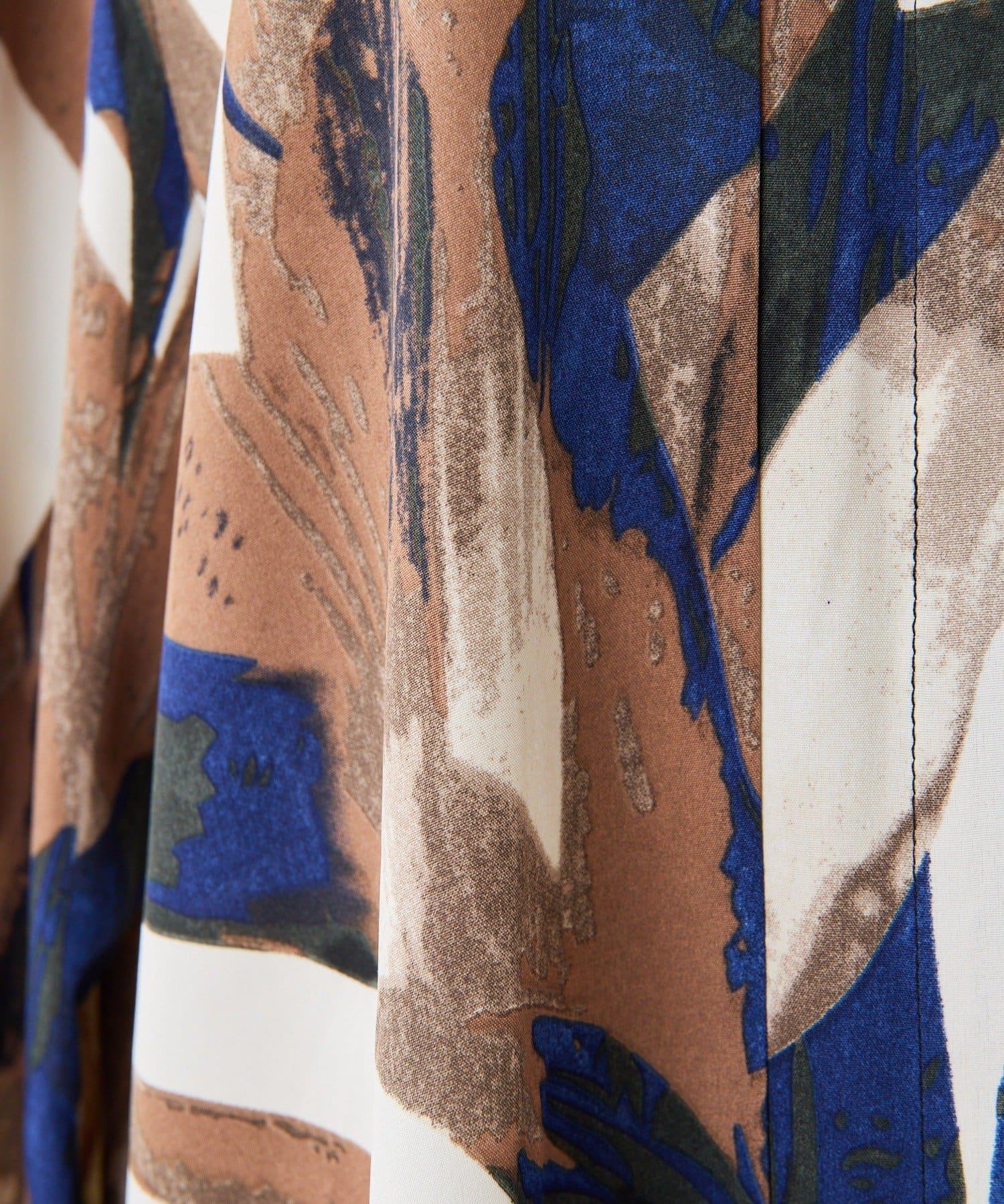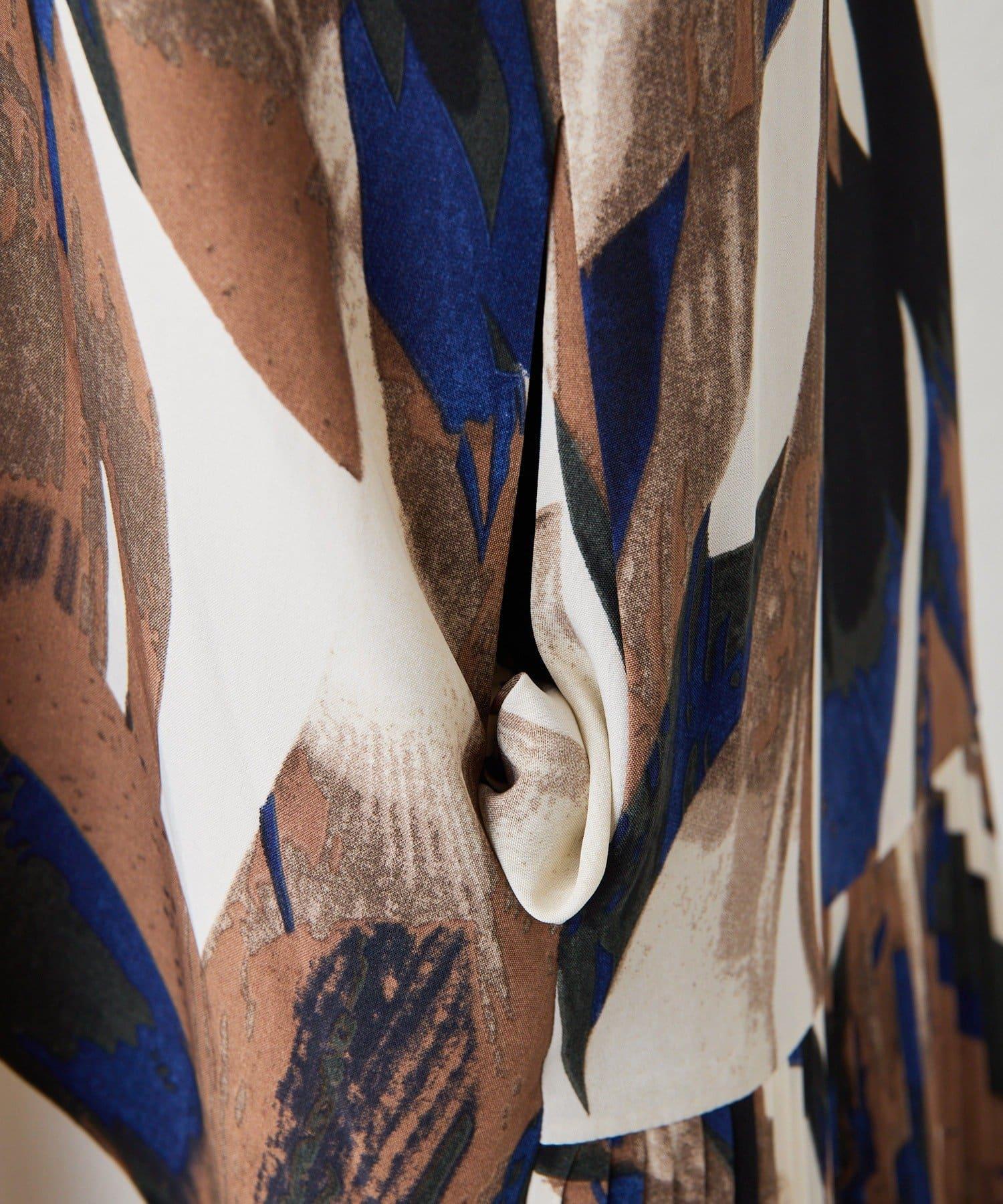 《1枚定型/全印花》帶領褶皺連衣裙【SUM1 STYLE(スミスタイル)】