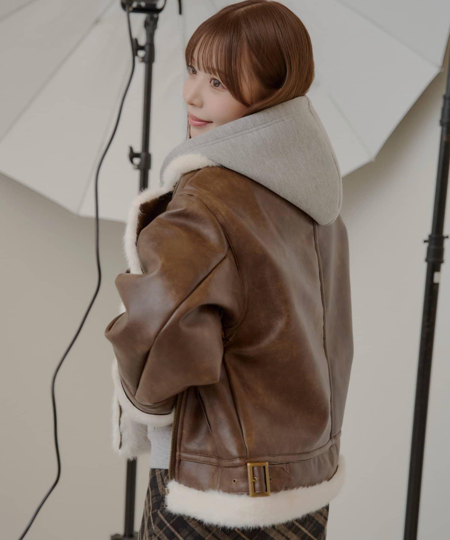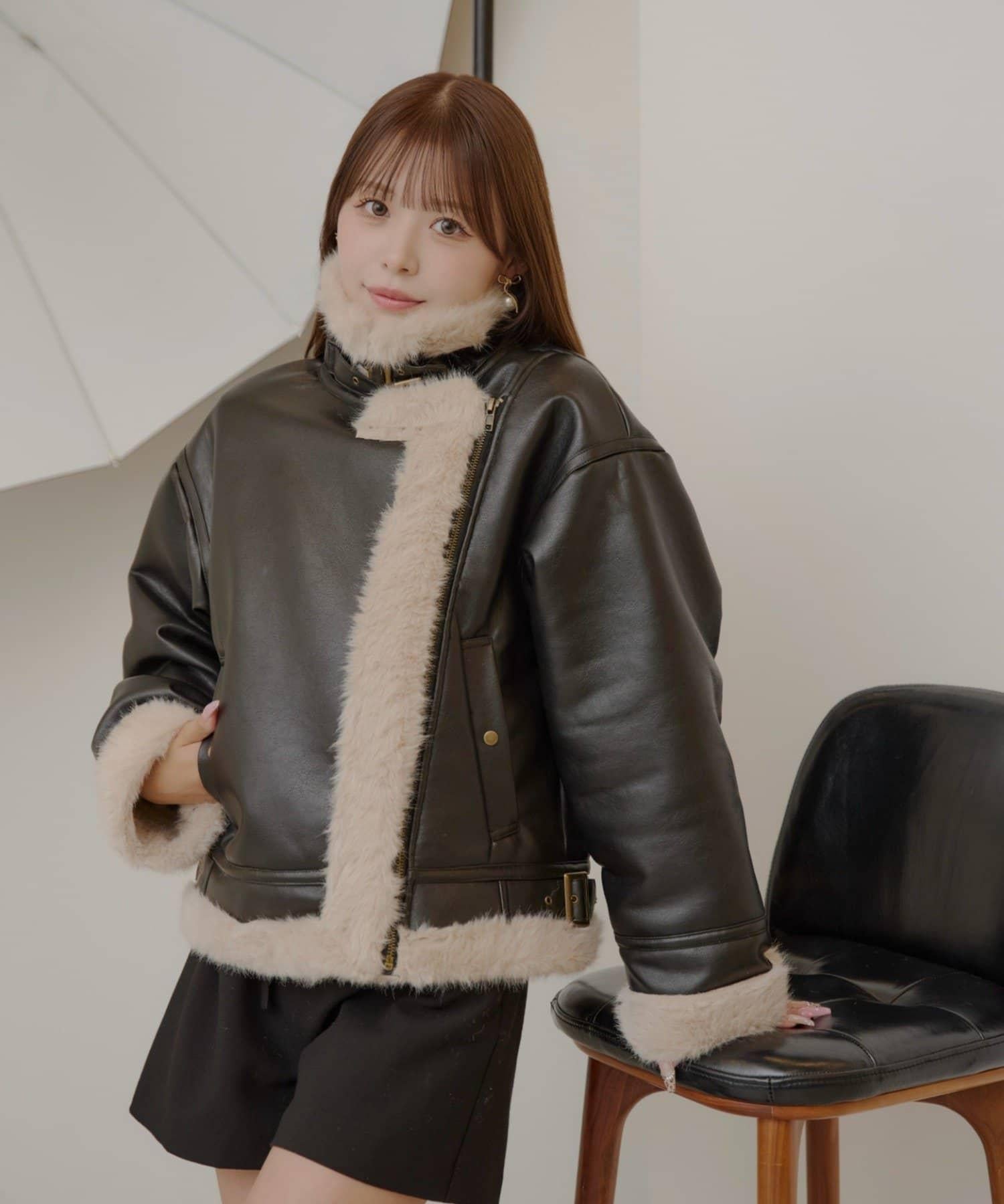 10月23日(週四)0點開售【ゆっぴ聯名企劃】仿毛皮短款機車夾克