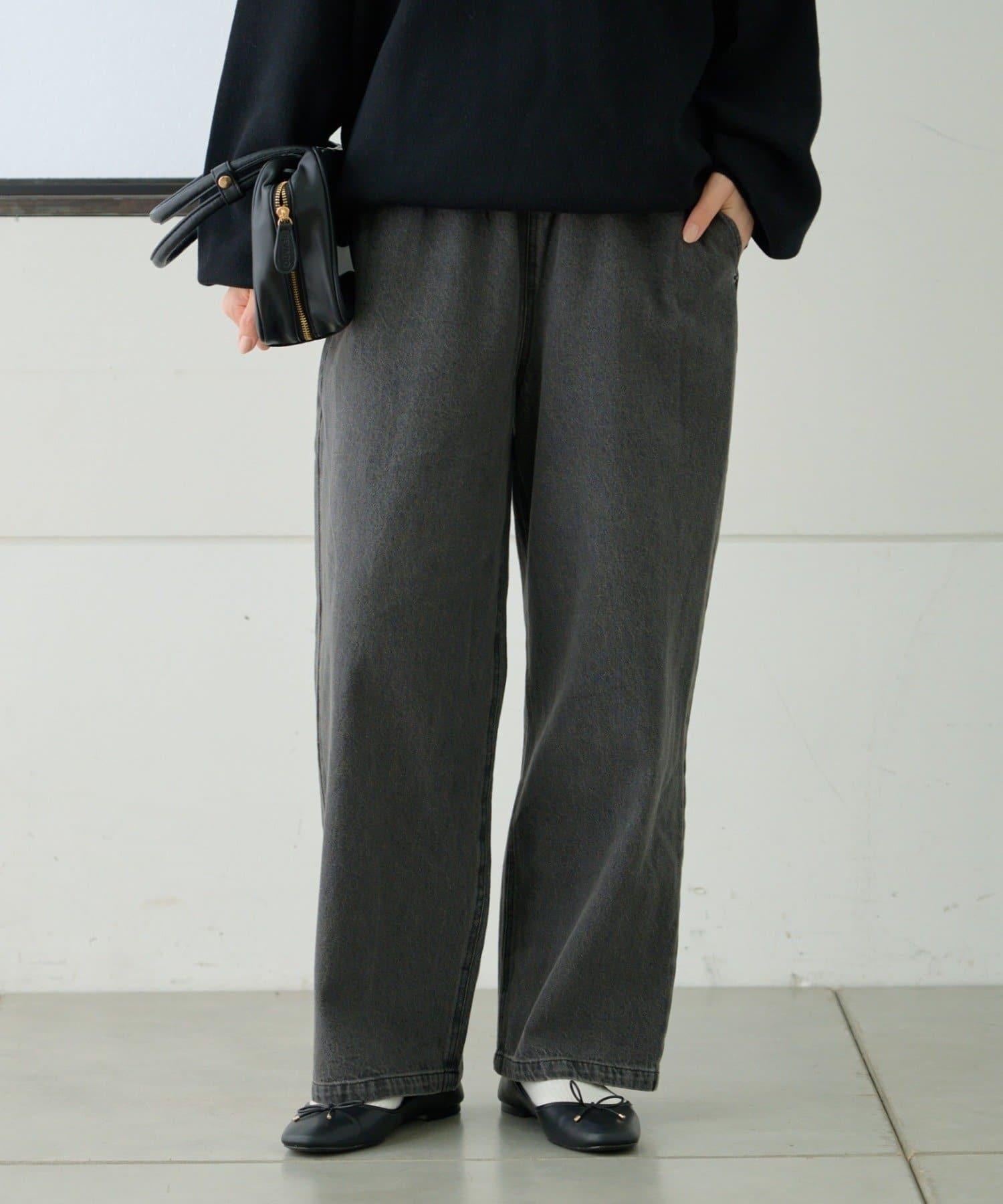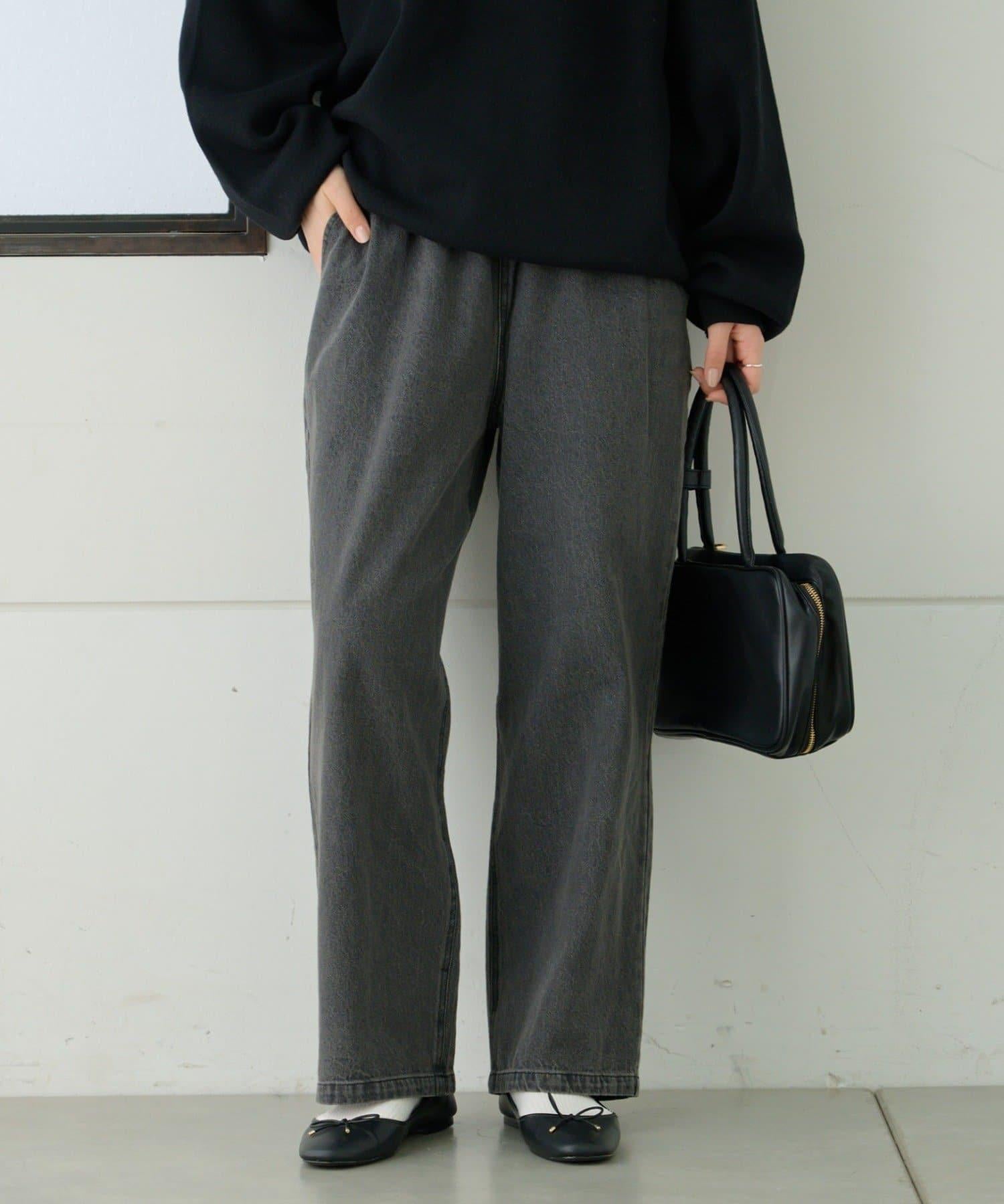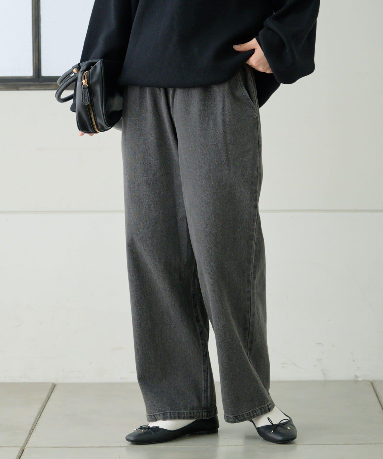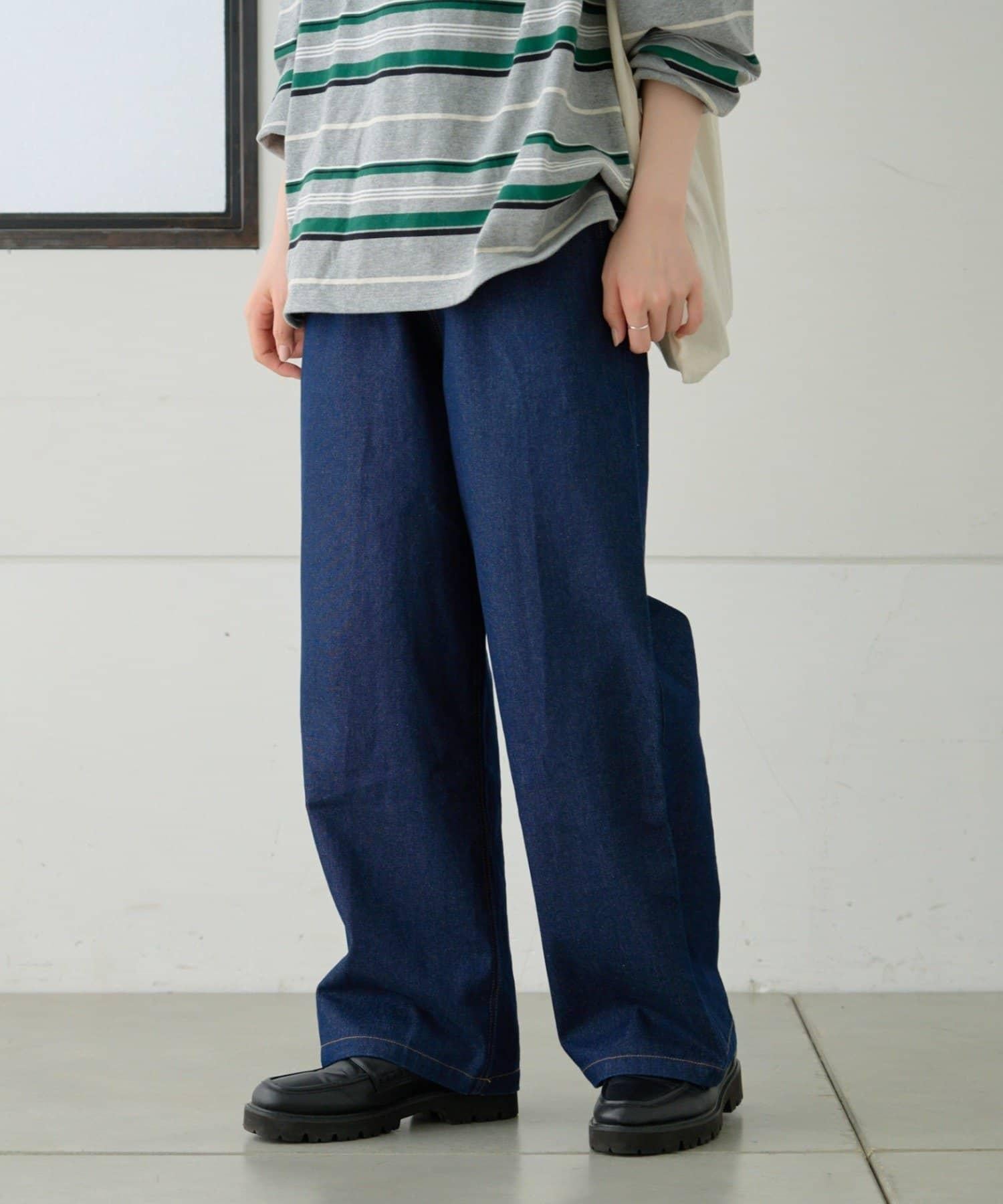ワイドシルエットながらもきれい見えする10ozデニムイージーパンツ