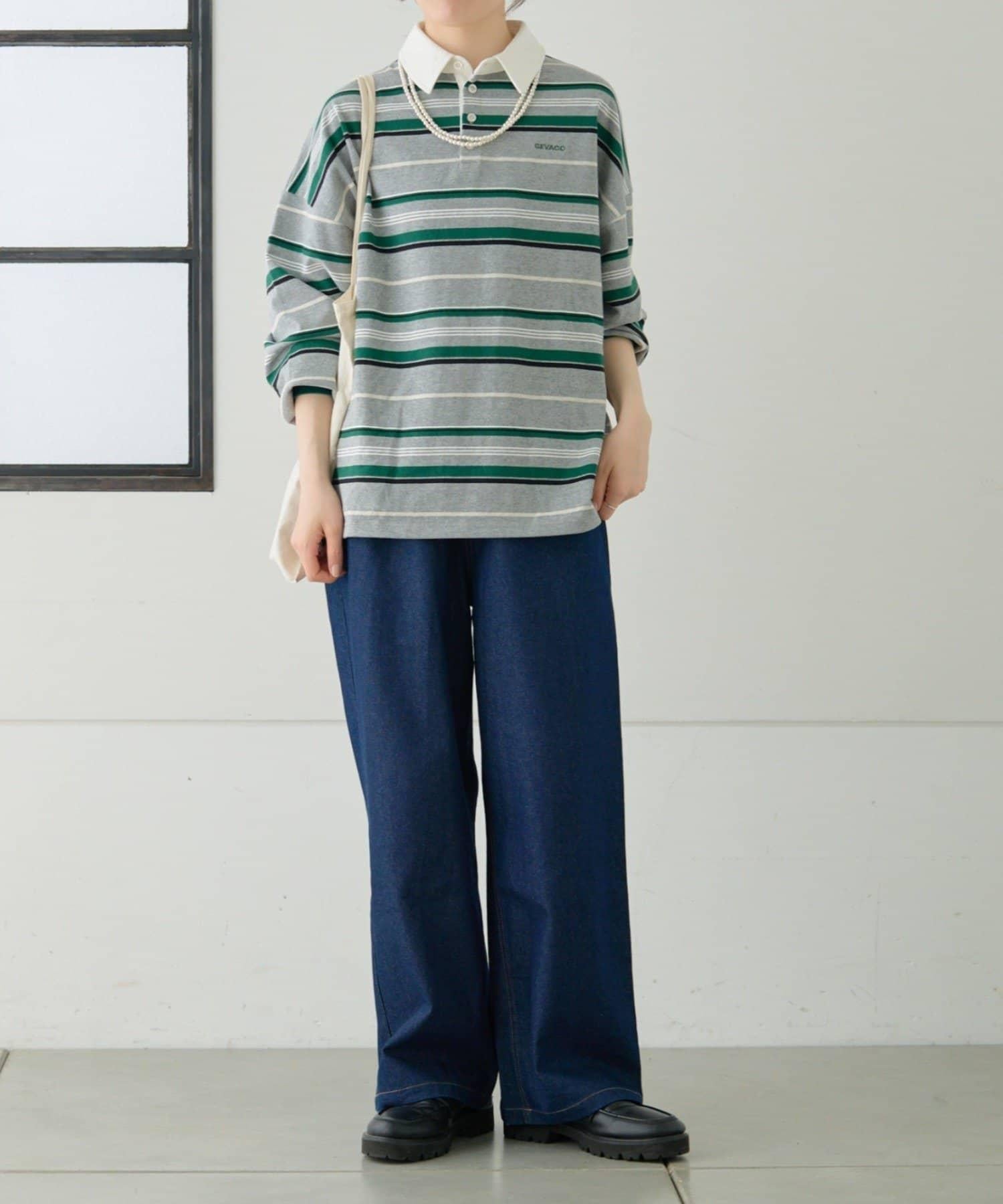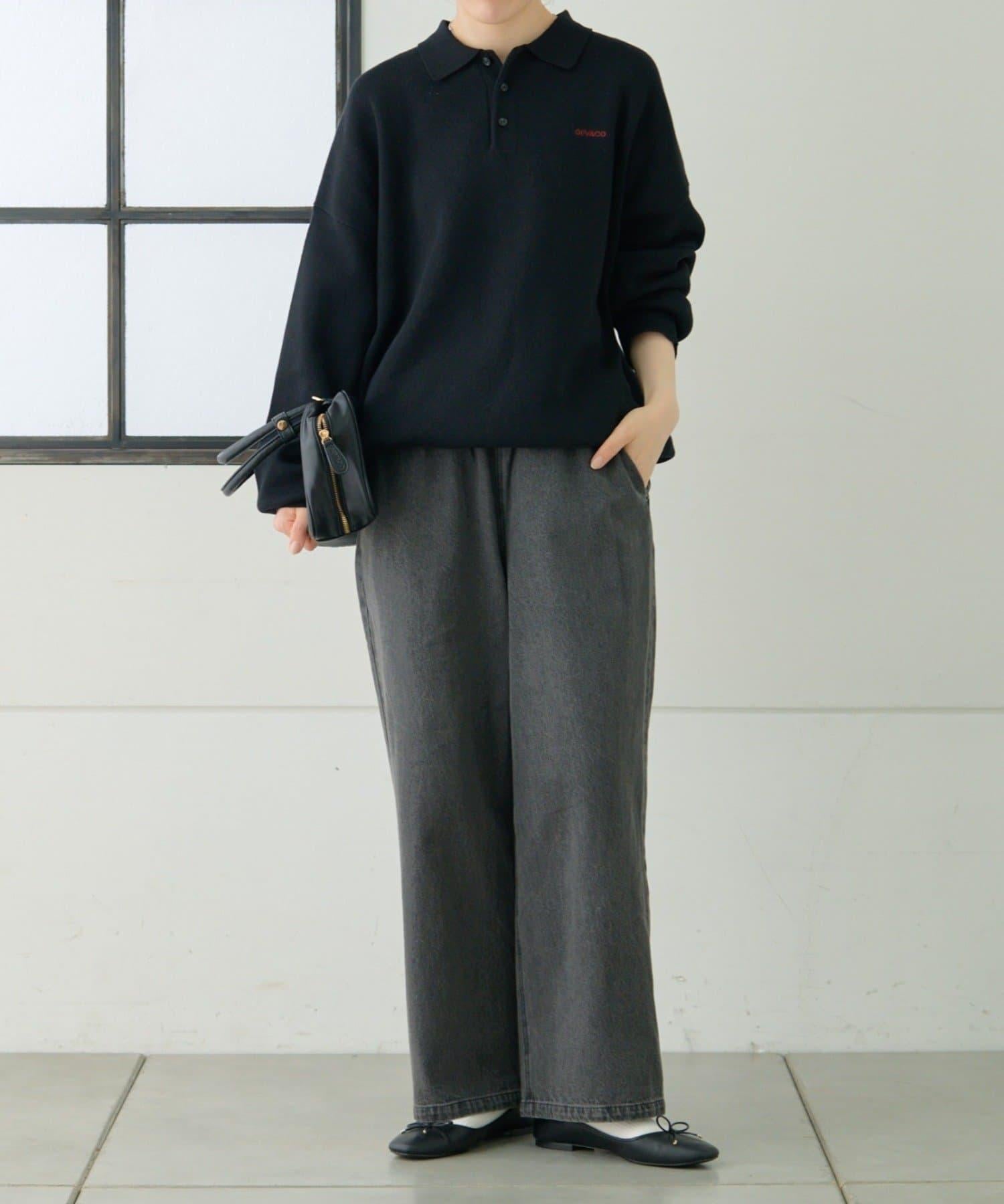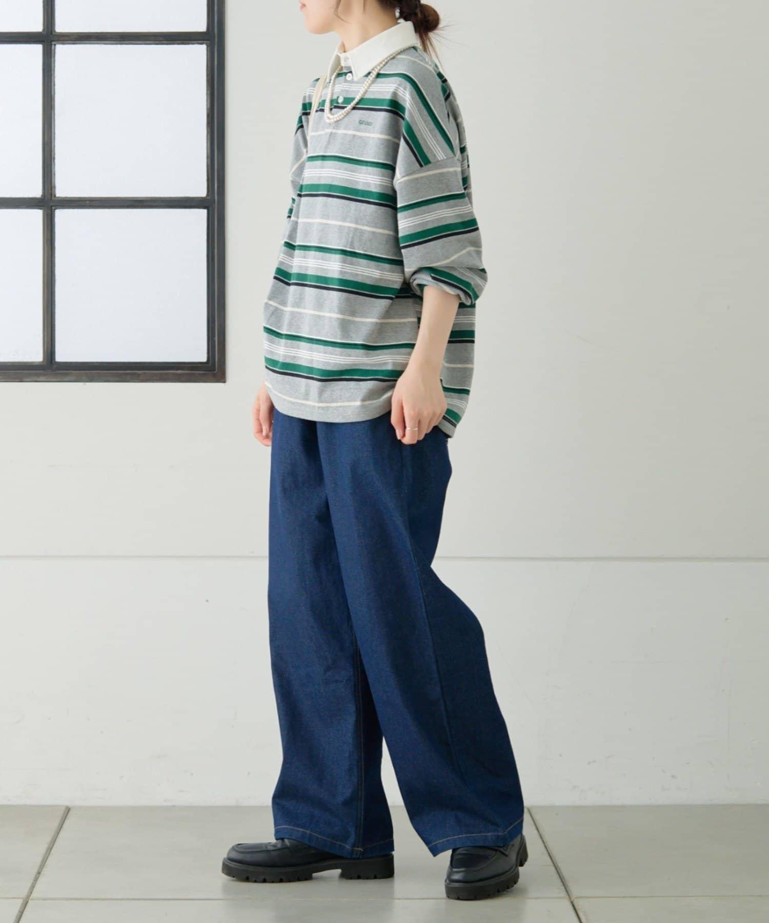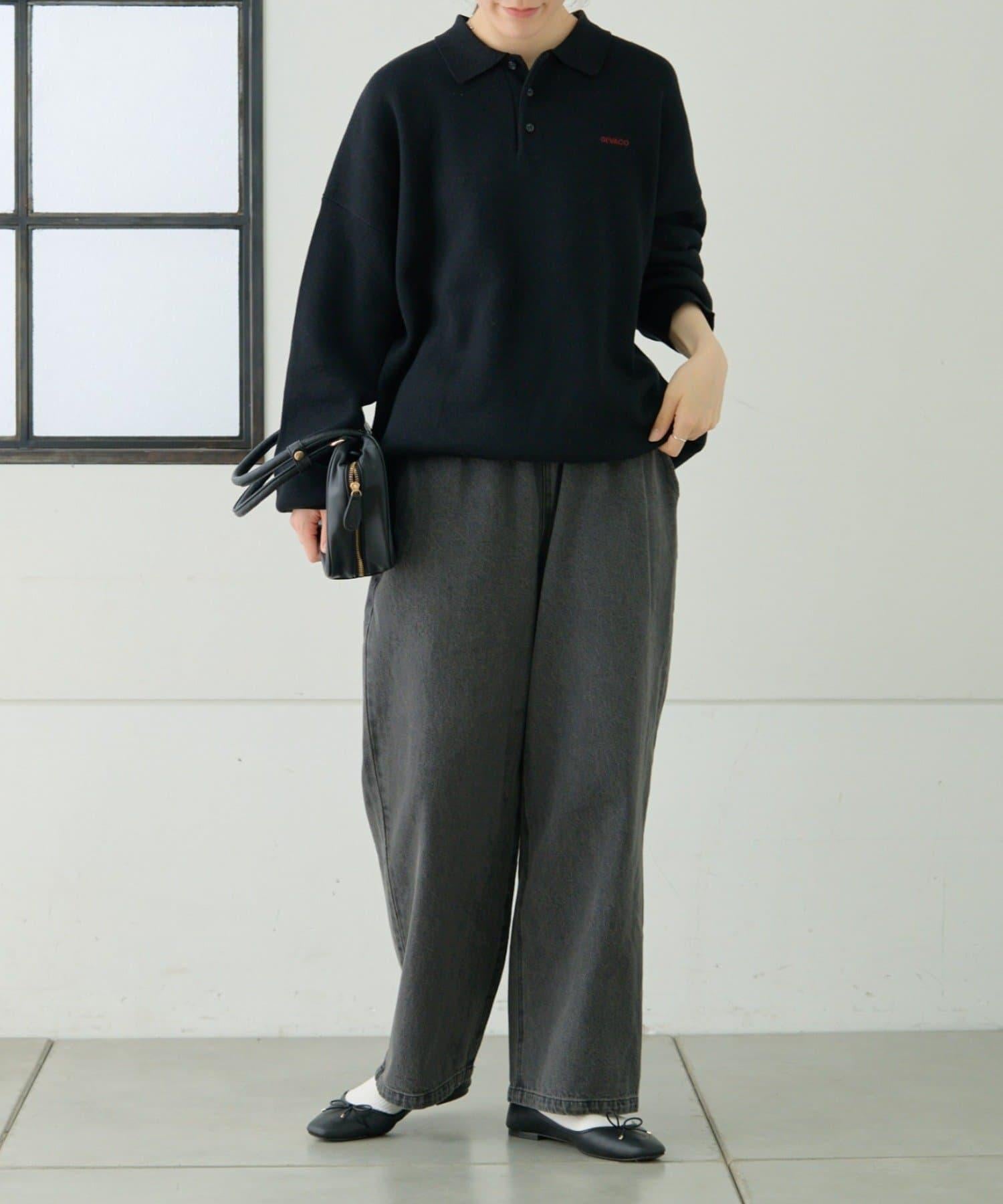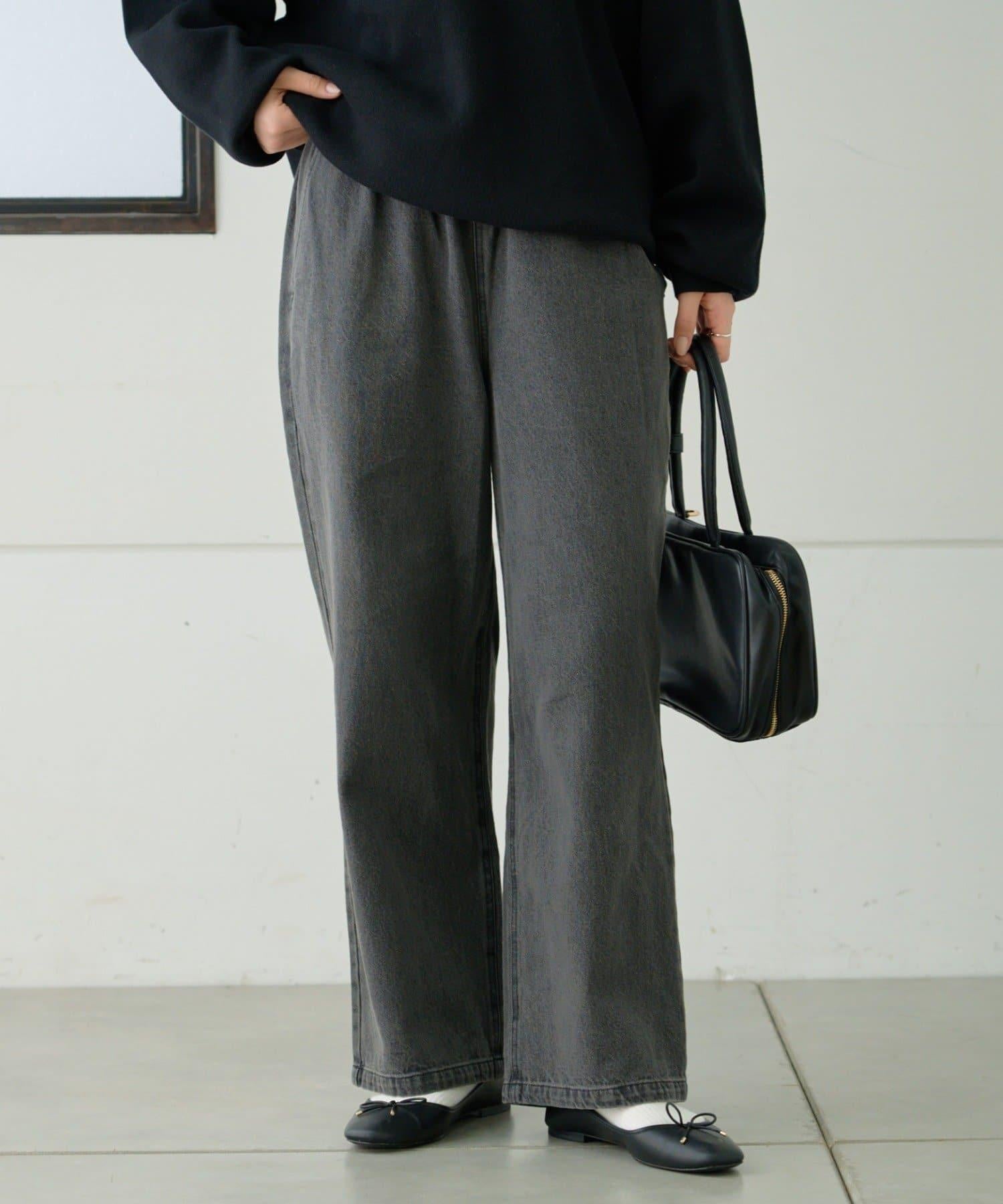 ワイドシルエットながらもきれい見えする10ozデニムイージーパンツ