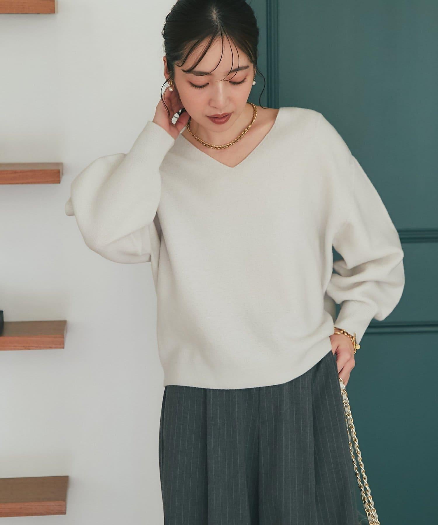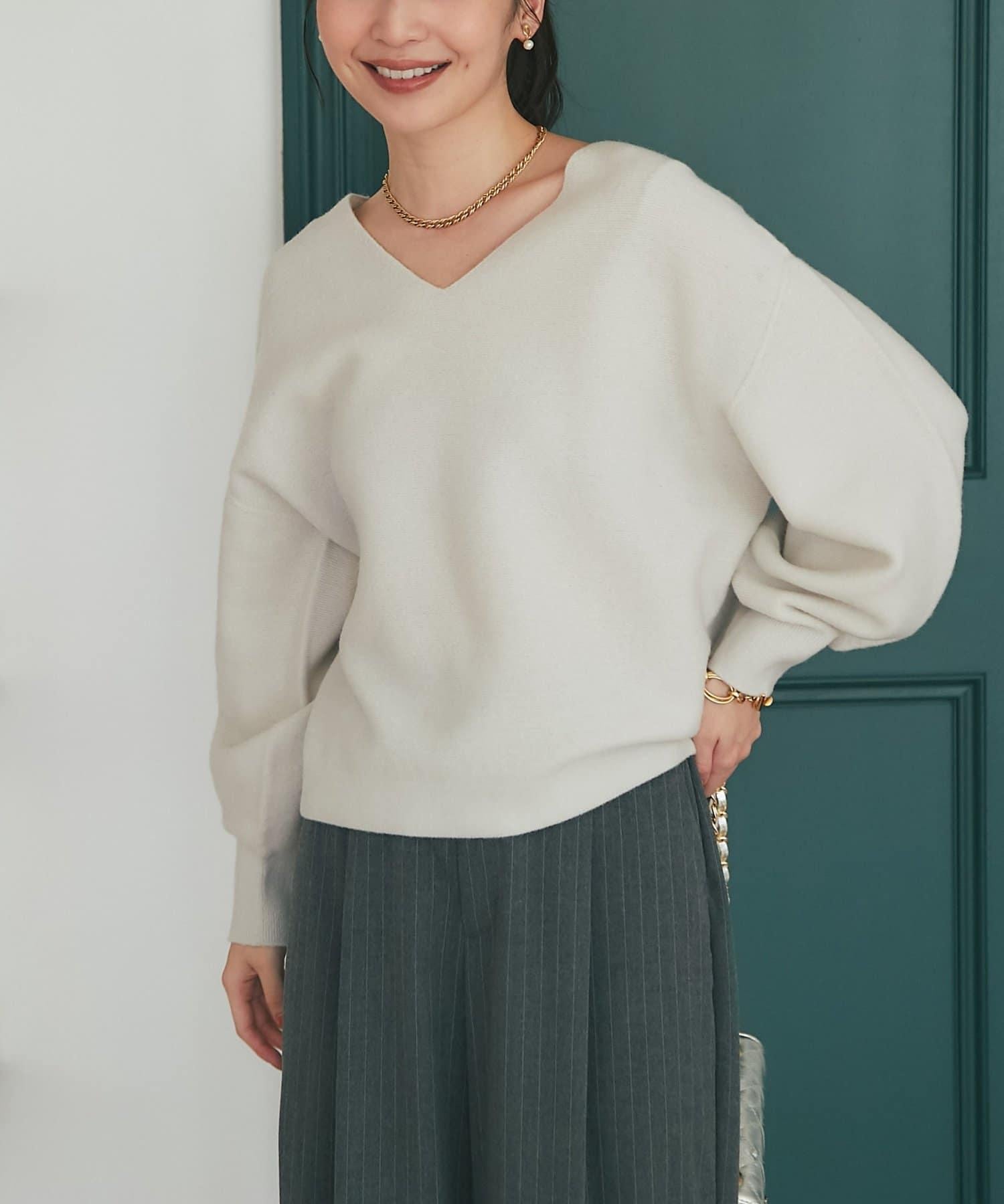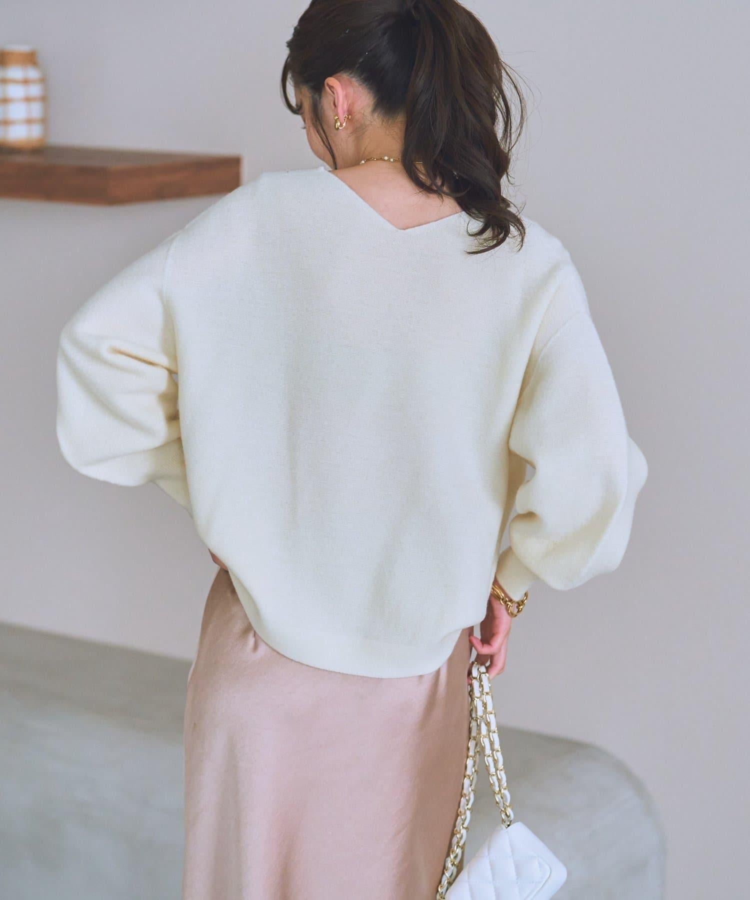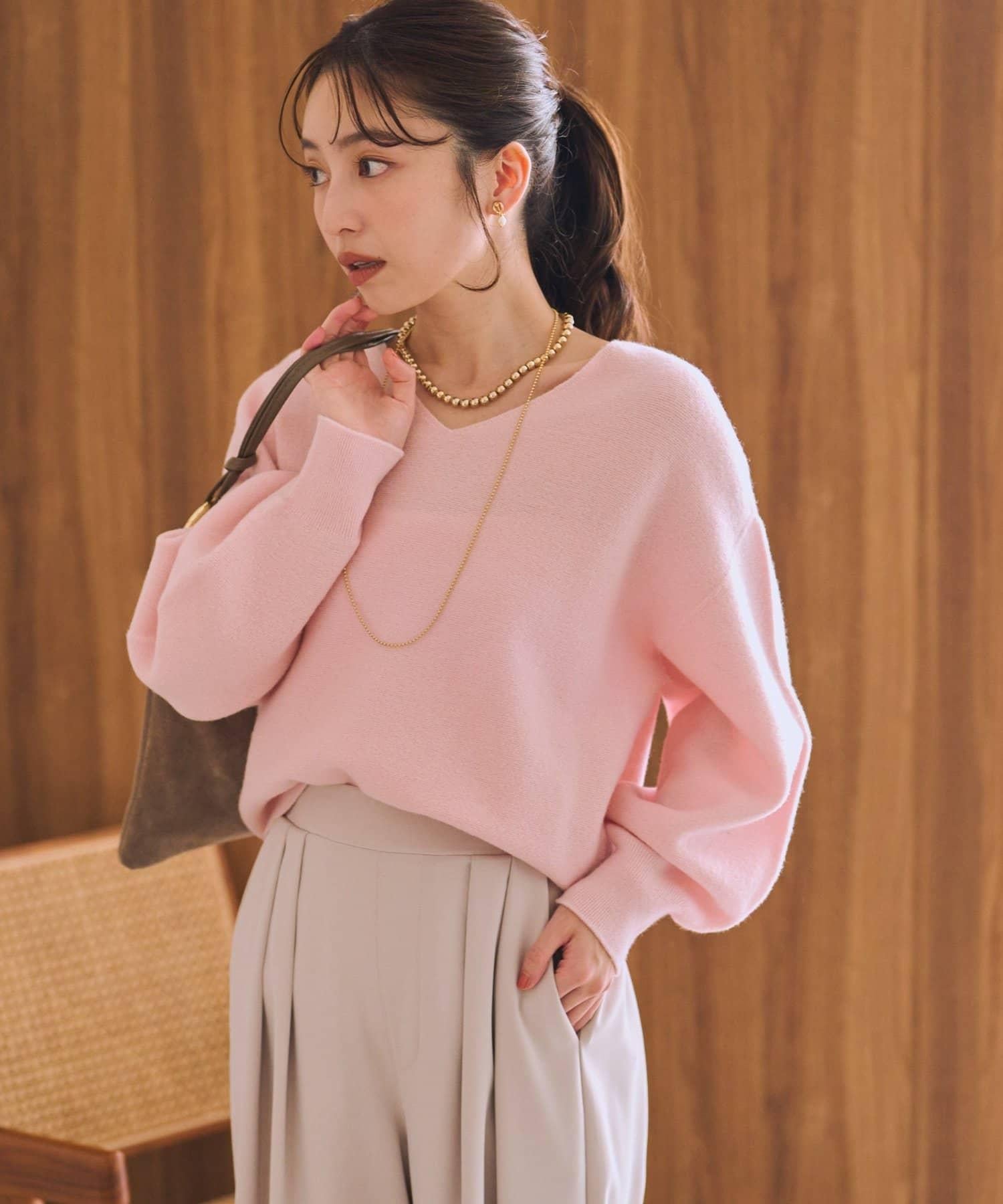 不深的 V 領給人優雅的印象,頸部看起來乾淨利落。