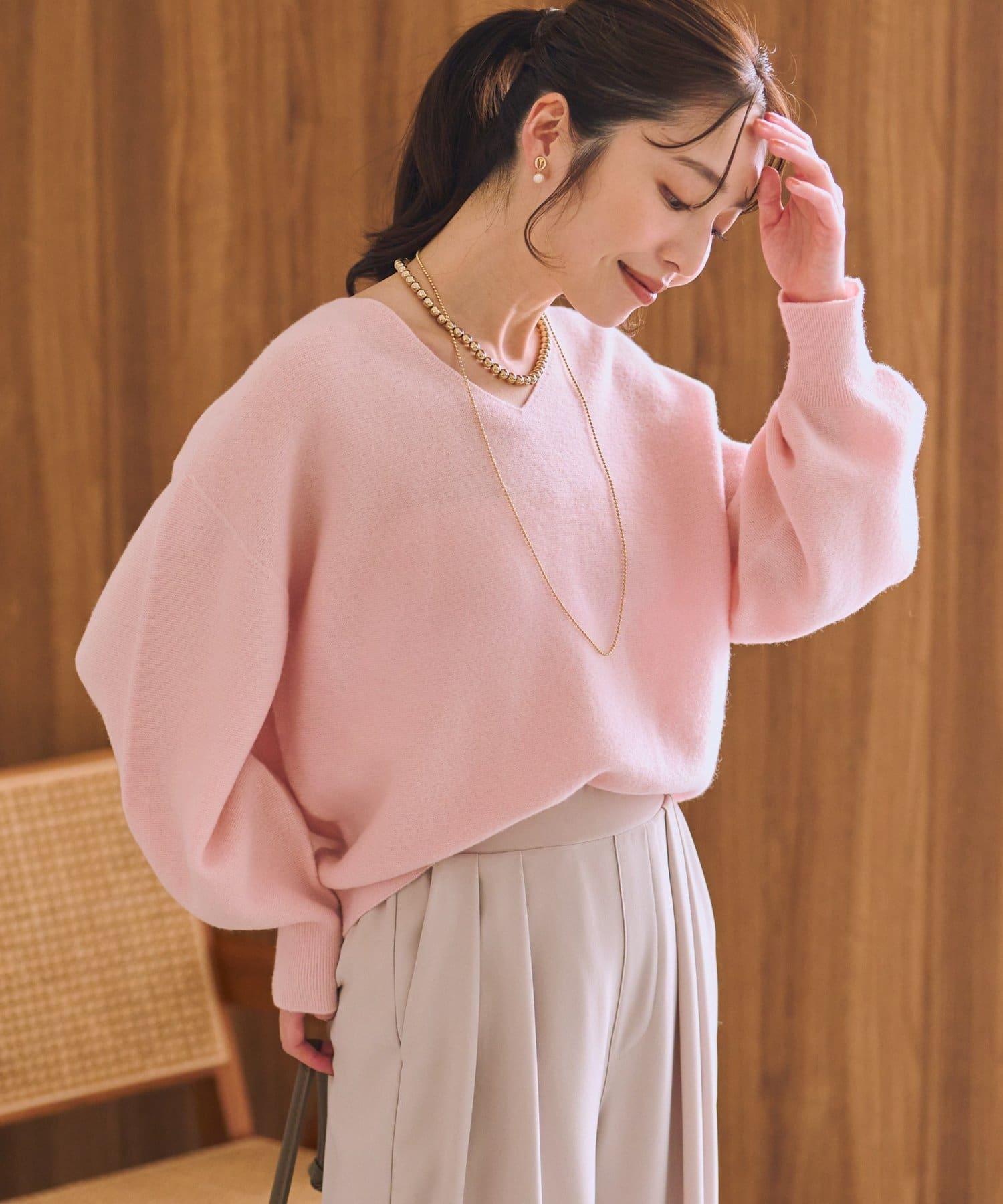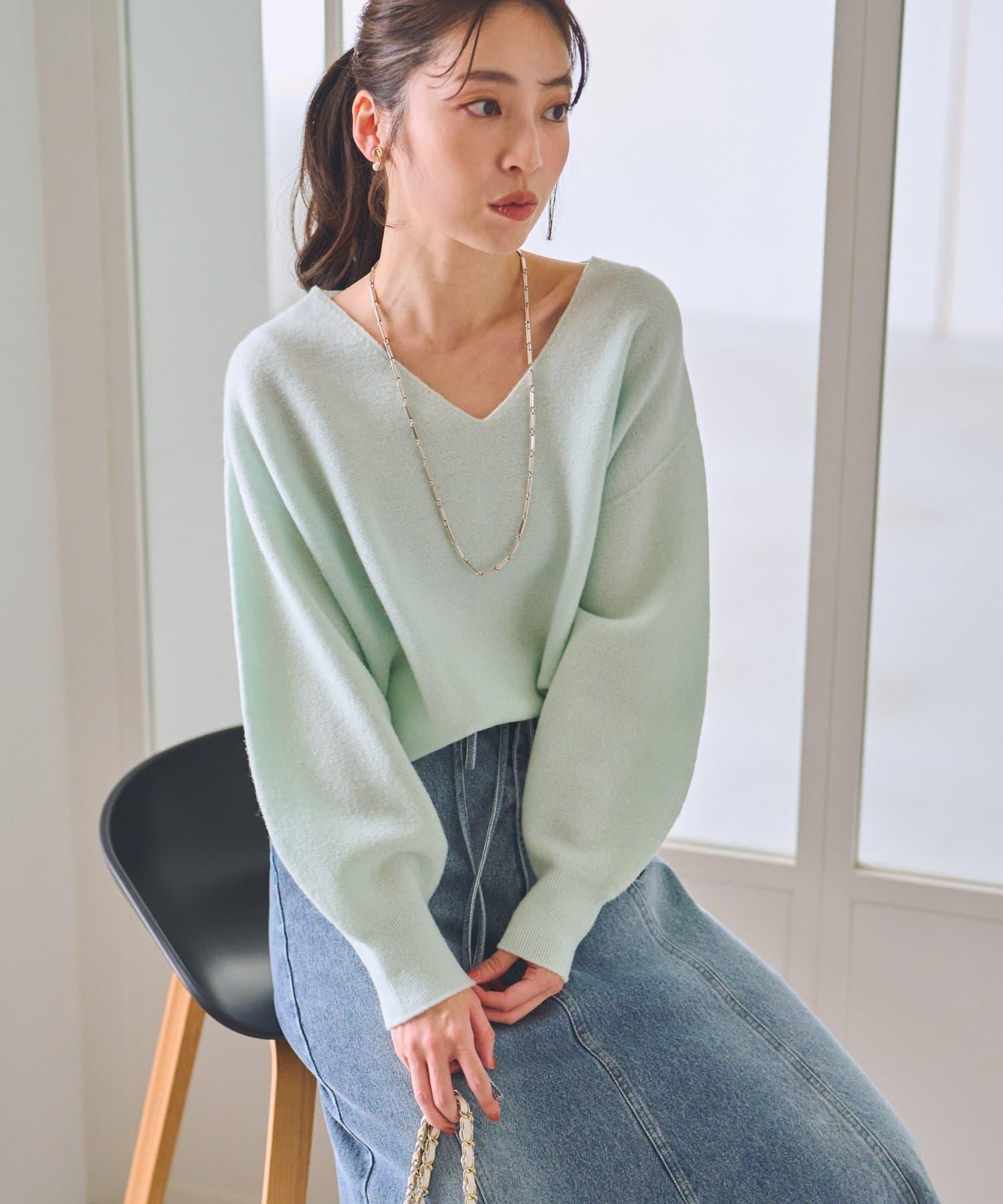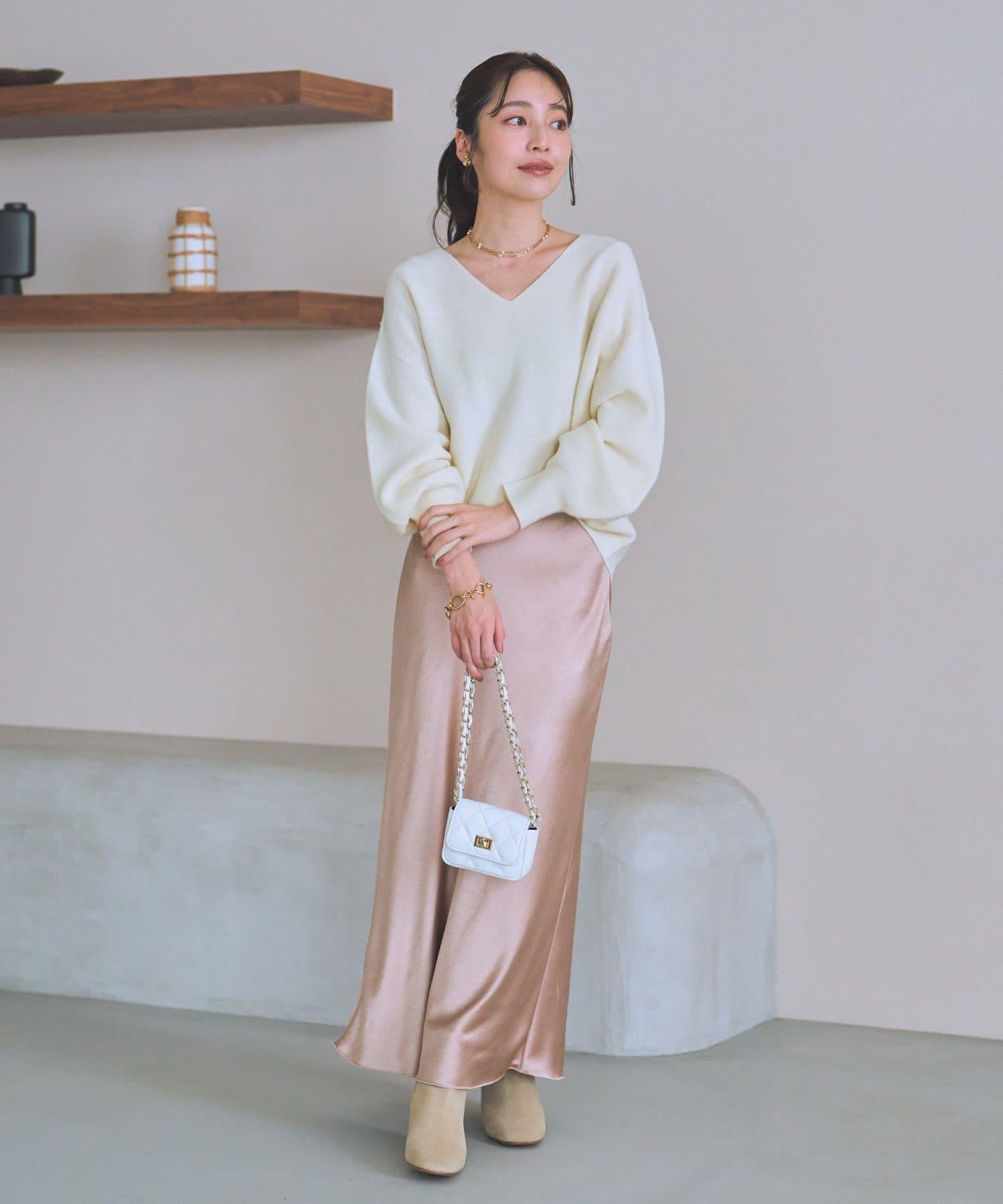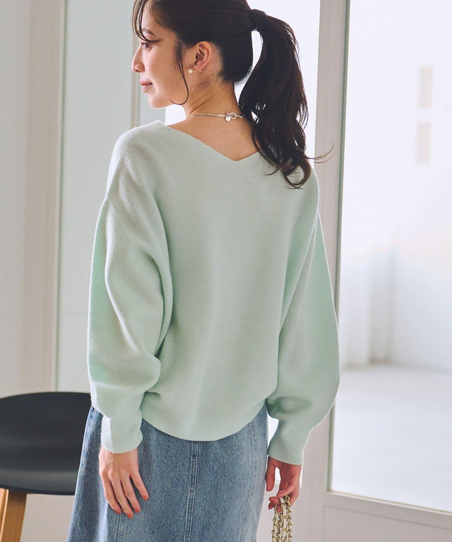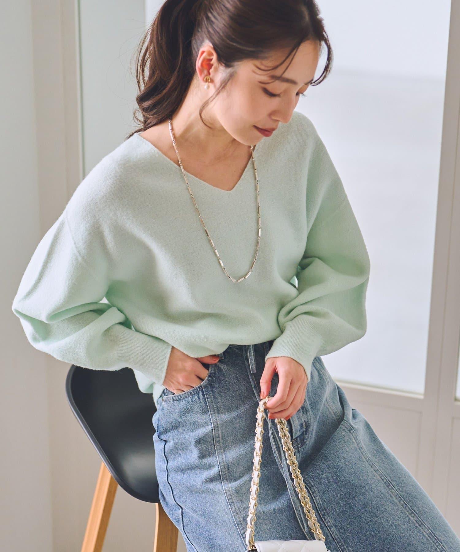 不深的 V 領給人優雅的印象,頸部看起來乾淨利落。