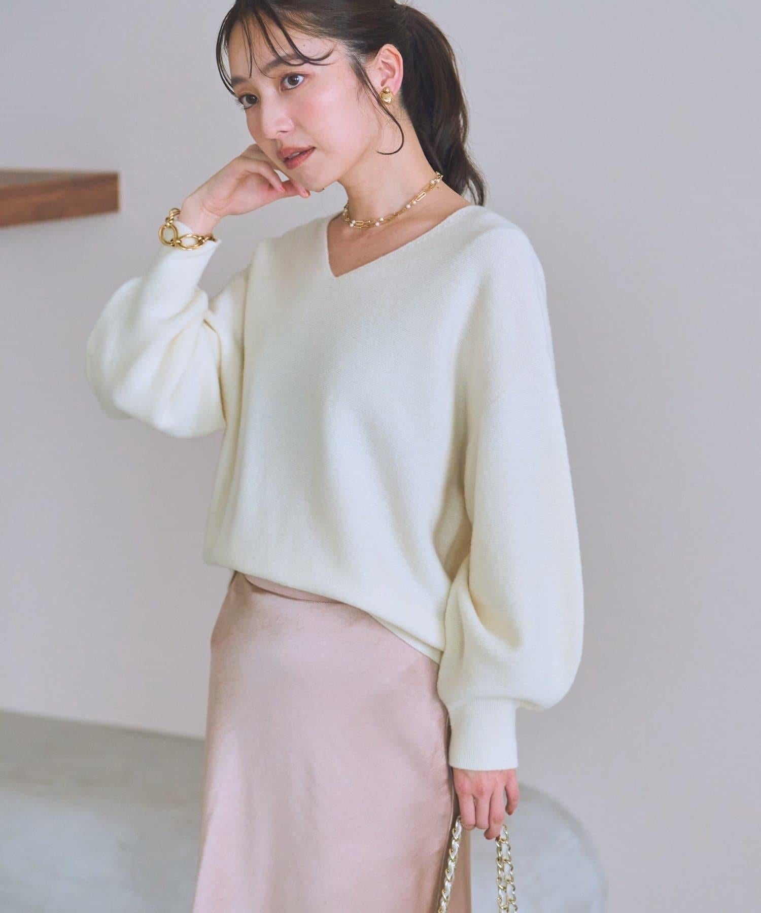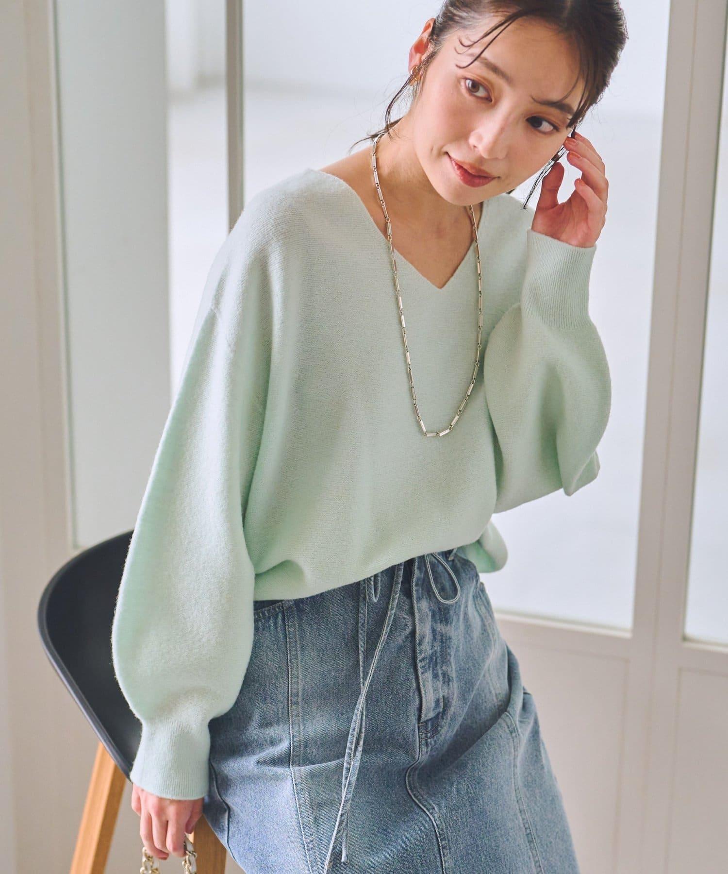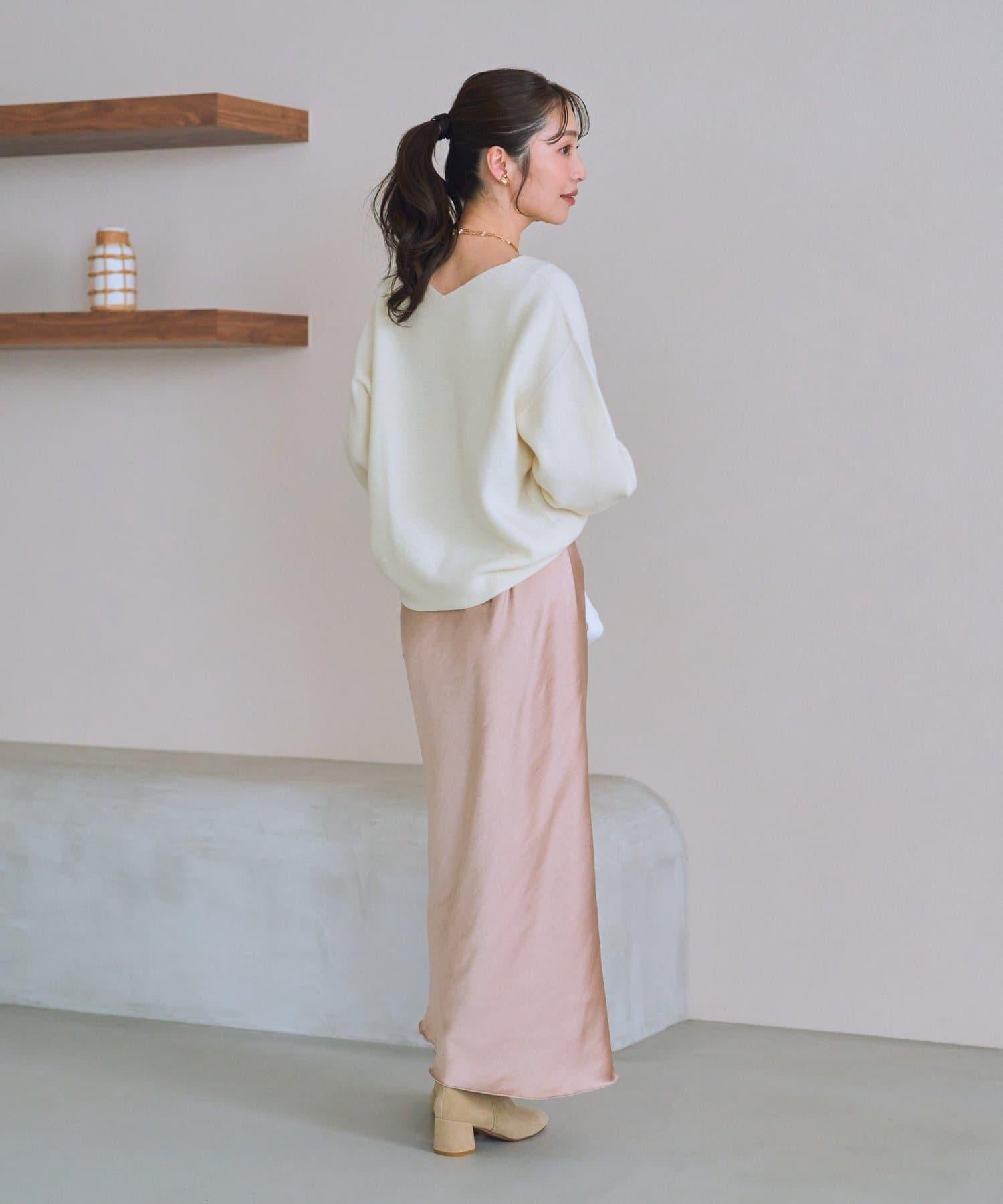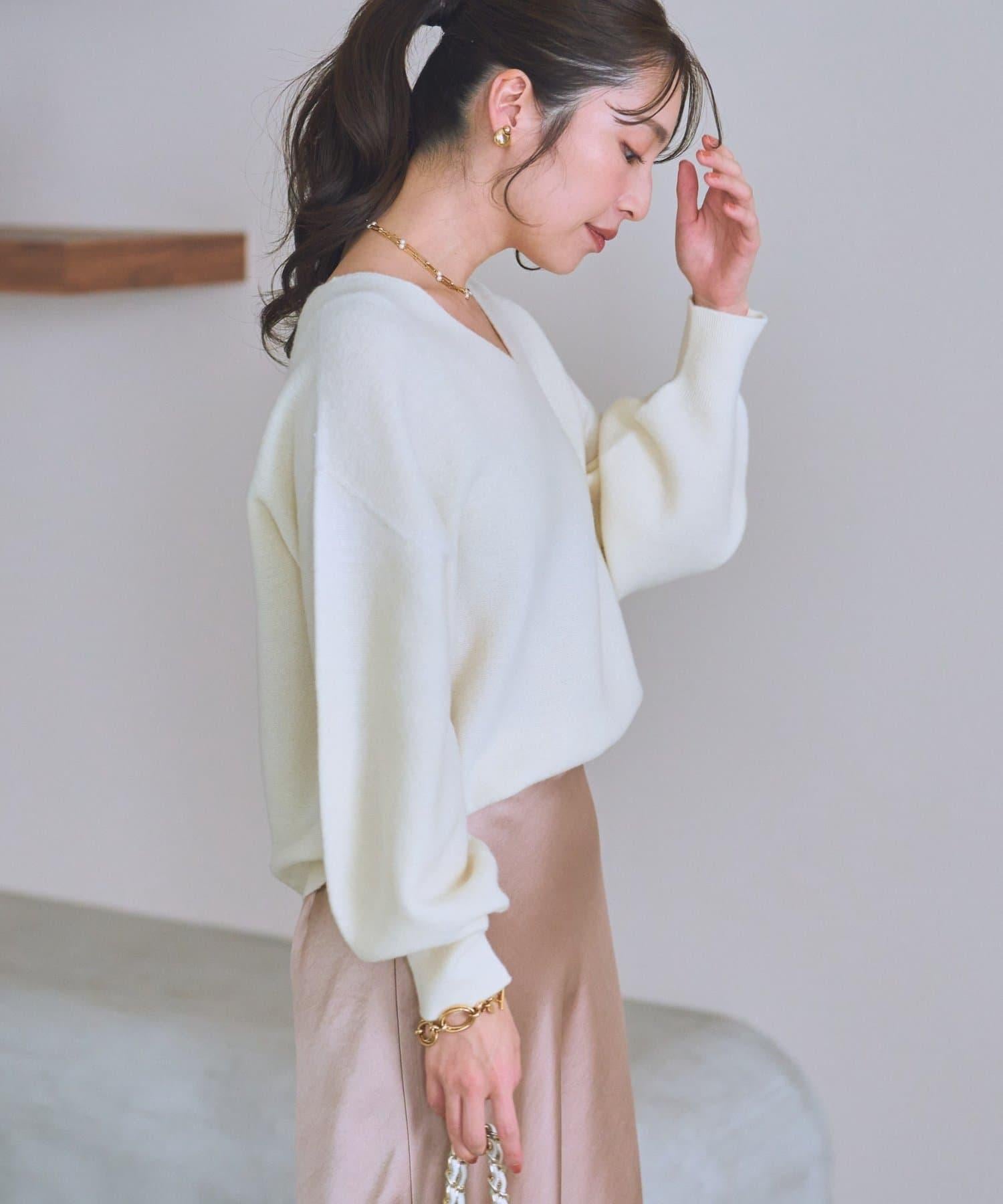 不深的 V 領給人優雅的印象,頸部看起來乾淨利落。