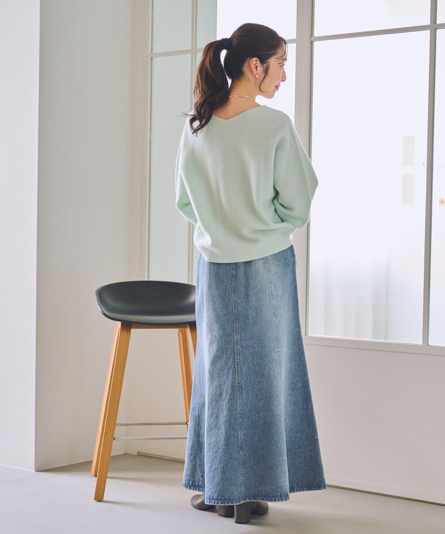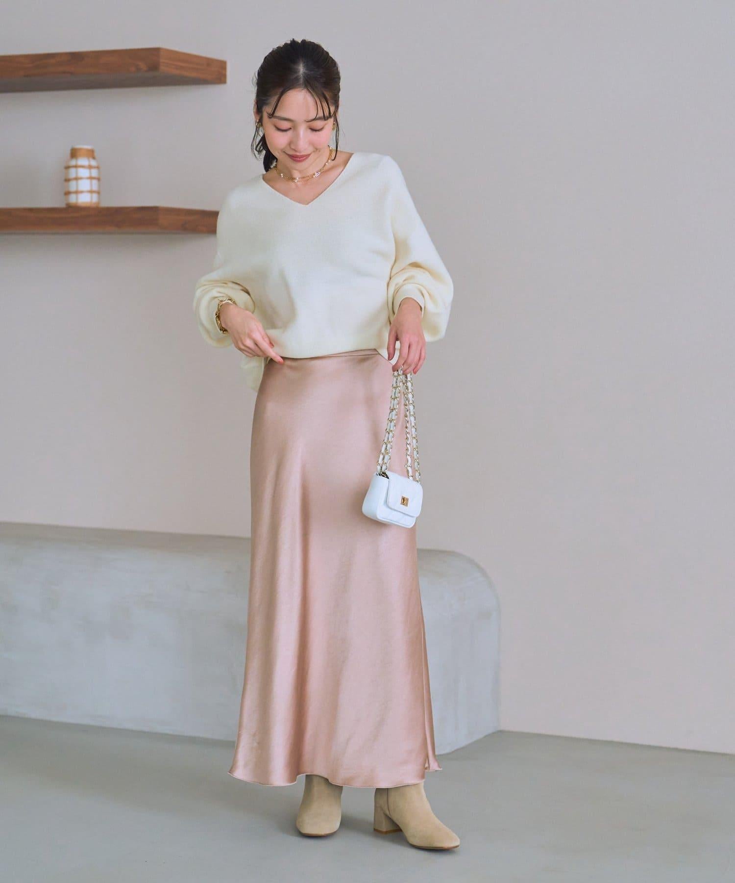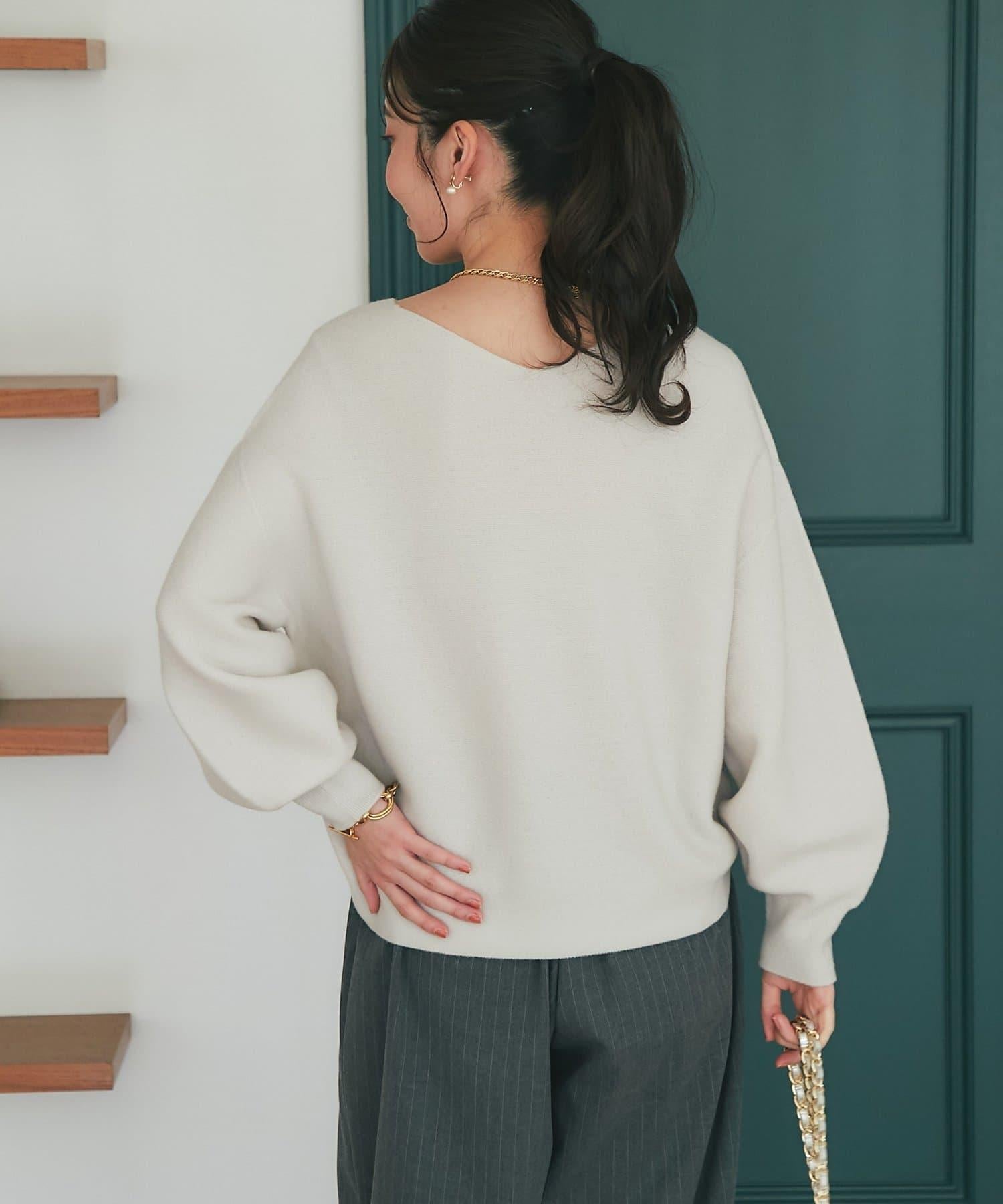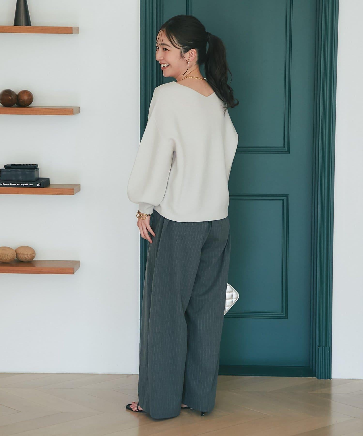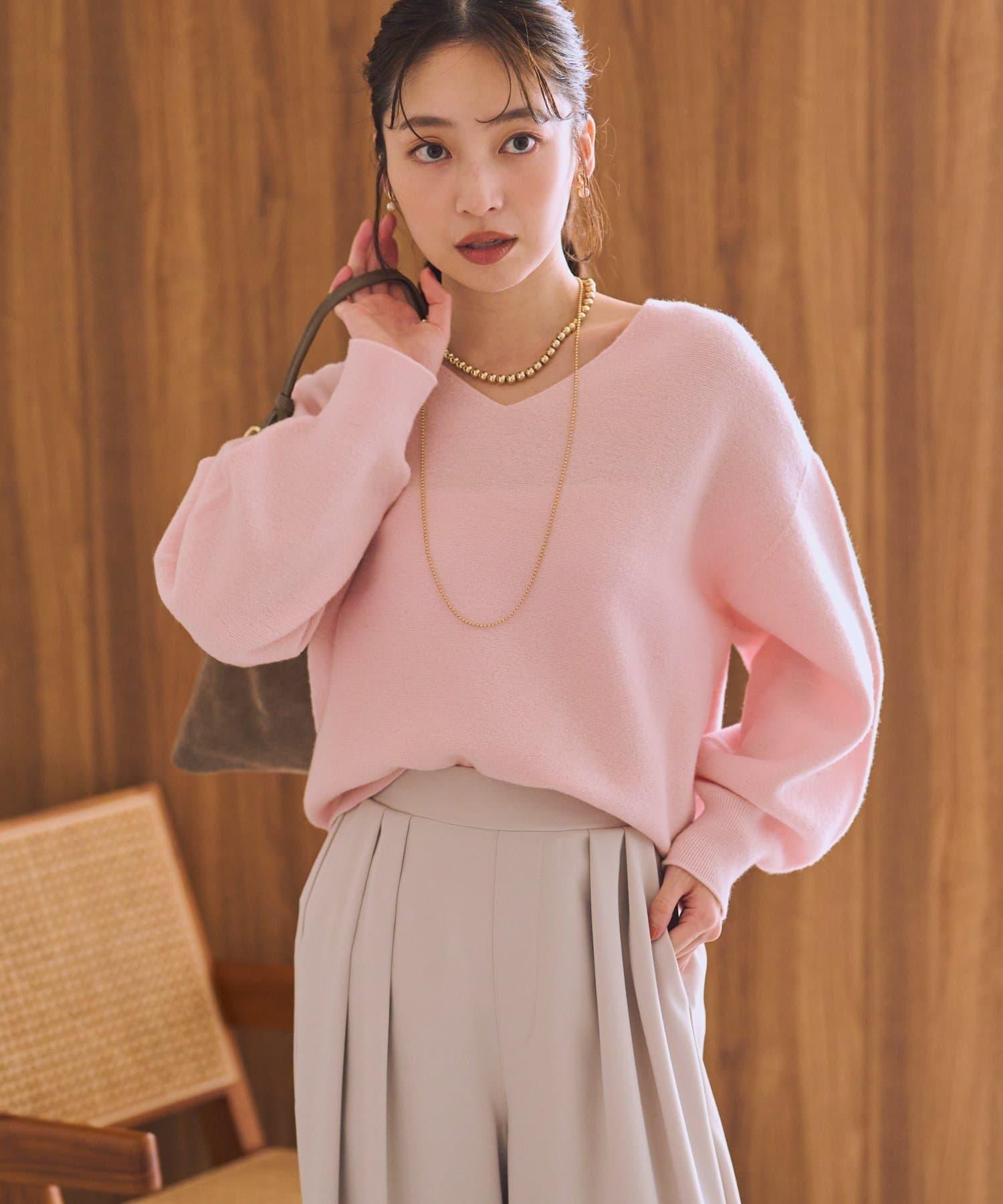 不深的 V 領給人優雅的印象,頸部看起來乾淨利落。