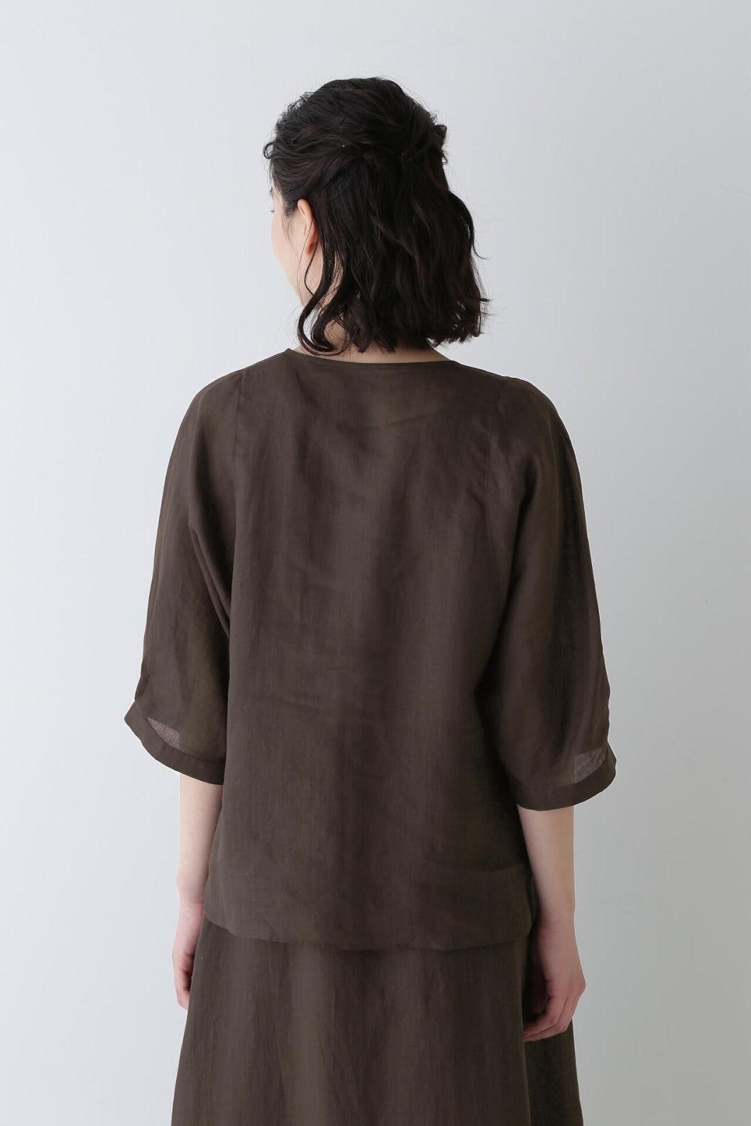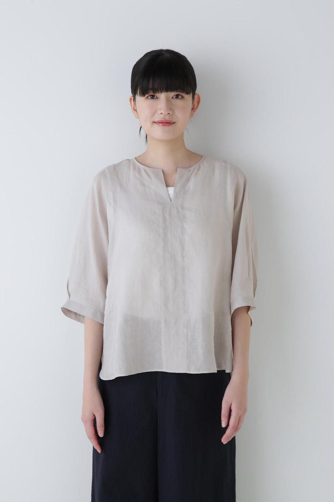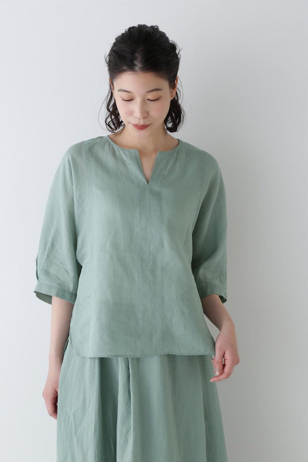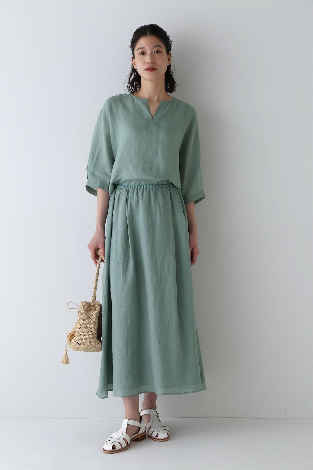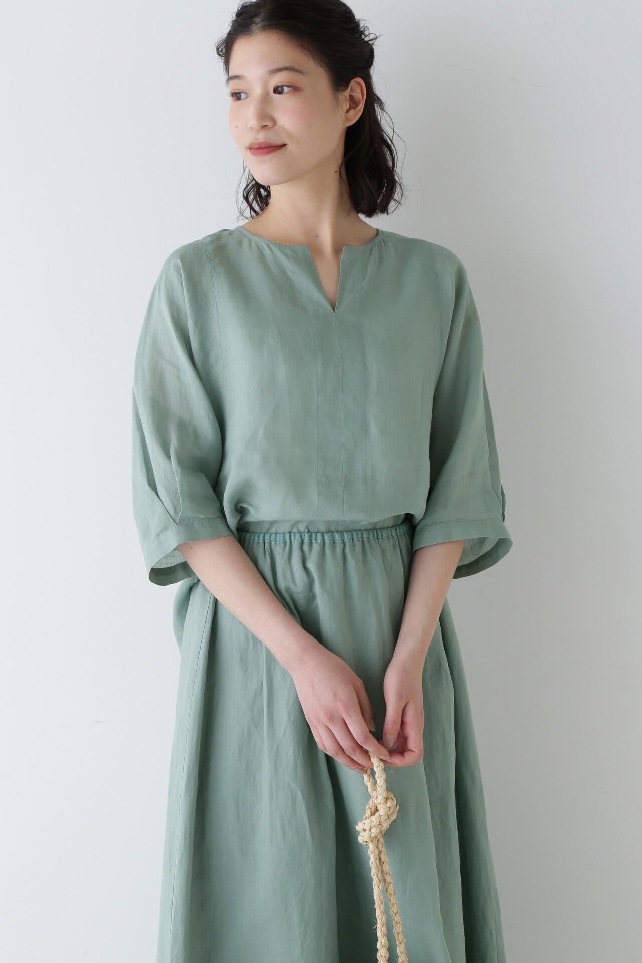 人類女性長期鍾愛的苧麻面料套頭衫 [設計特色] 人類女性經典的苧麻面料製成的套頭衫。這款套頭上衣採用人類女性的經典面料苧麻製成。上衣由 100% 上等苧麻面料製成,表面細膩,手感清涼爽滑。推薦搭配] 我們建議您採用輕鬆的造型,充分發揮面料的清涼氣息。這款上衣既可搭配裙裝,也可搭配褲裝。