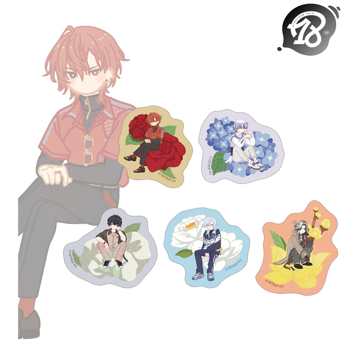 18TRIP 將西佐野ねりが、大黑かない、村雲そえ、神奈雪風和志賀玲光的插圖以植物為主題進行了全新繪製,並製作成薄片貼紙。