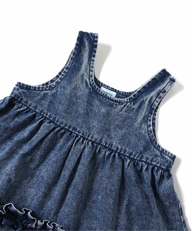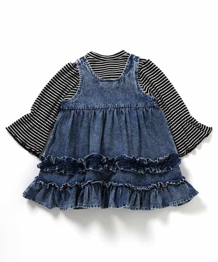 BREEZE 的連衣裙 "2P Set Denim Frilled Dress "因其既可外出又可日常穿著的設計而備受歡迎!顏色、圖案和廓形都非常可愛♪。