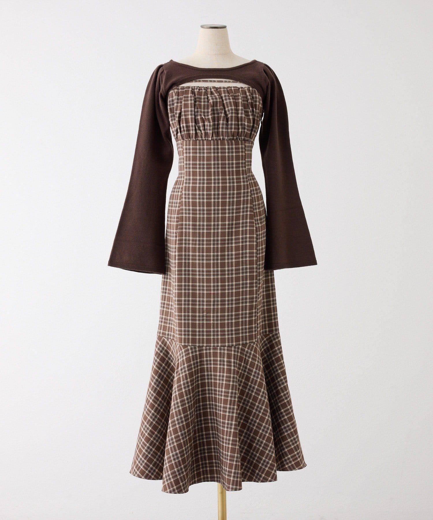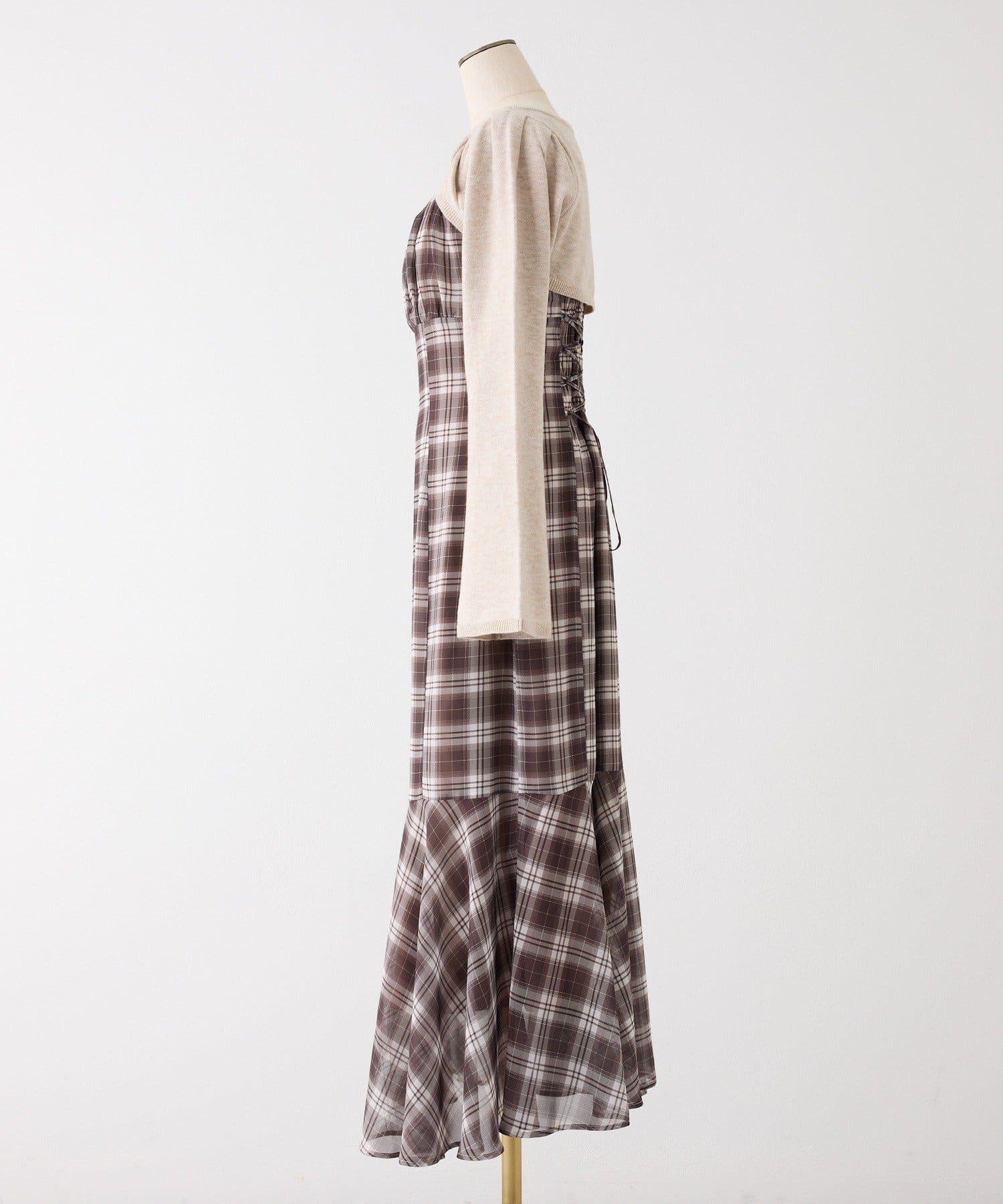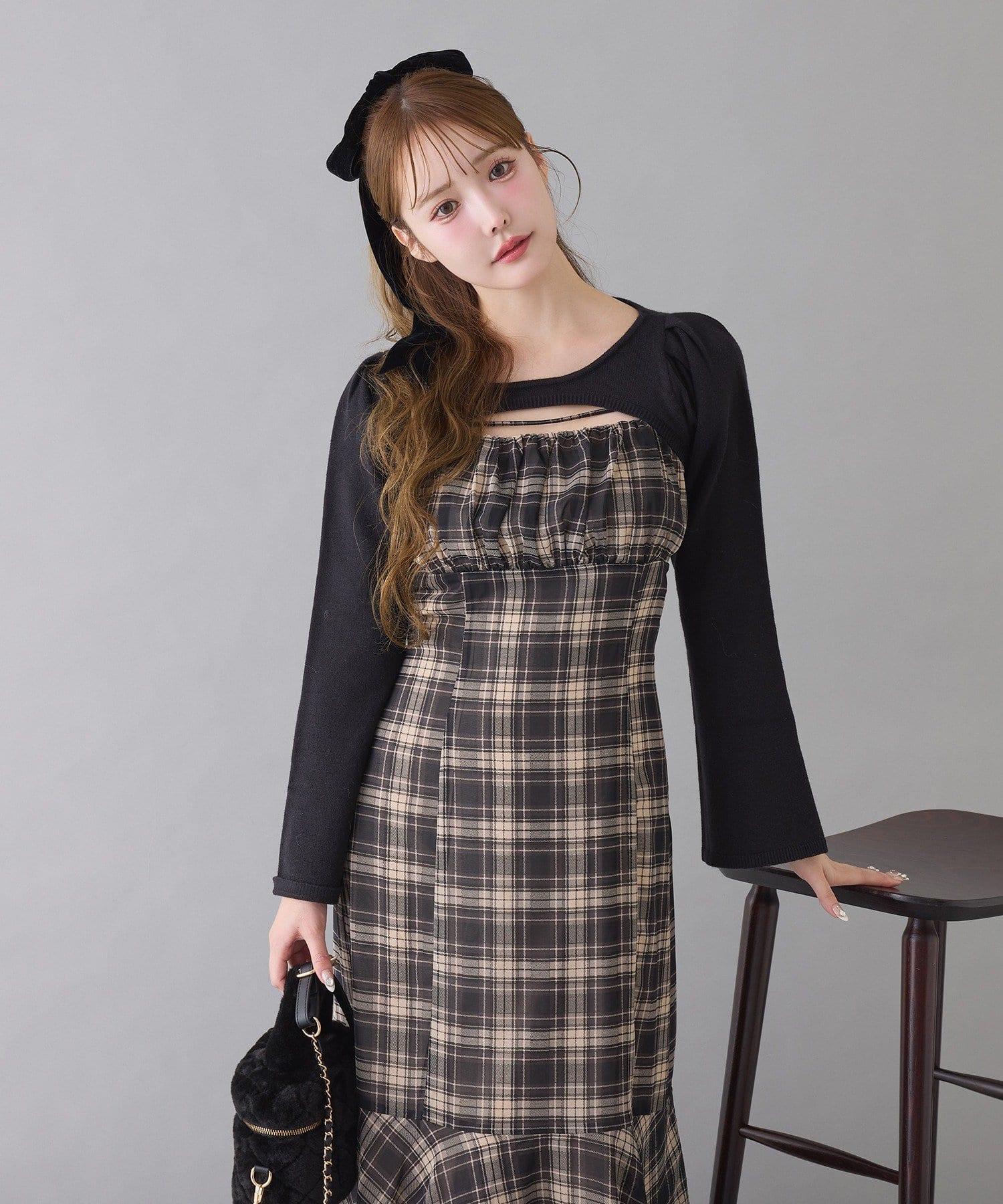 人魚線輪廓的短上衣和吊帶連衣裙的平整套裝。