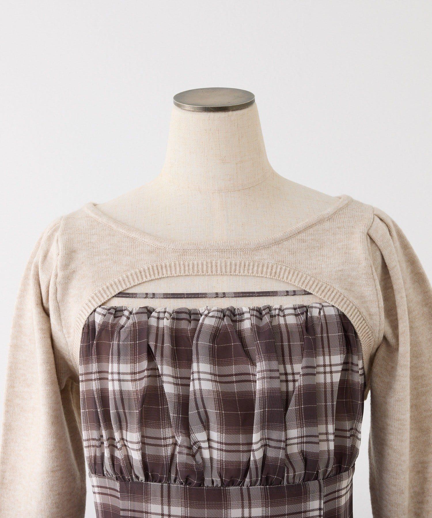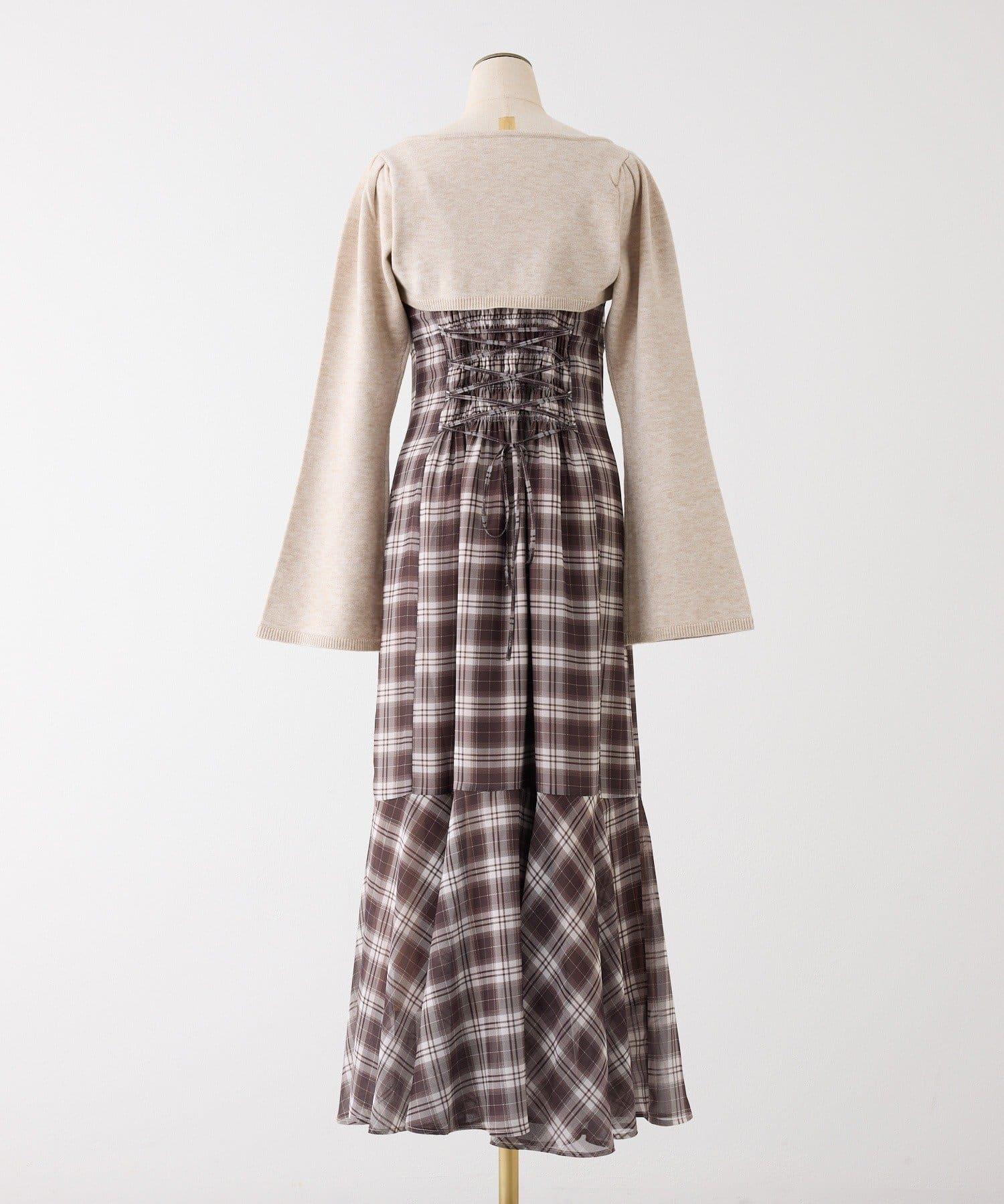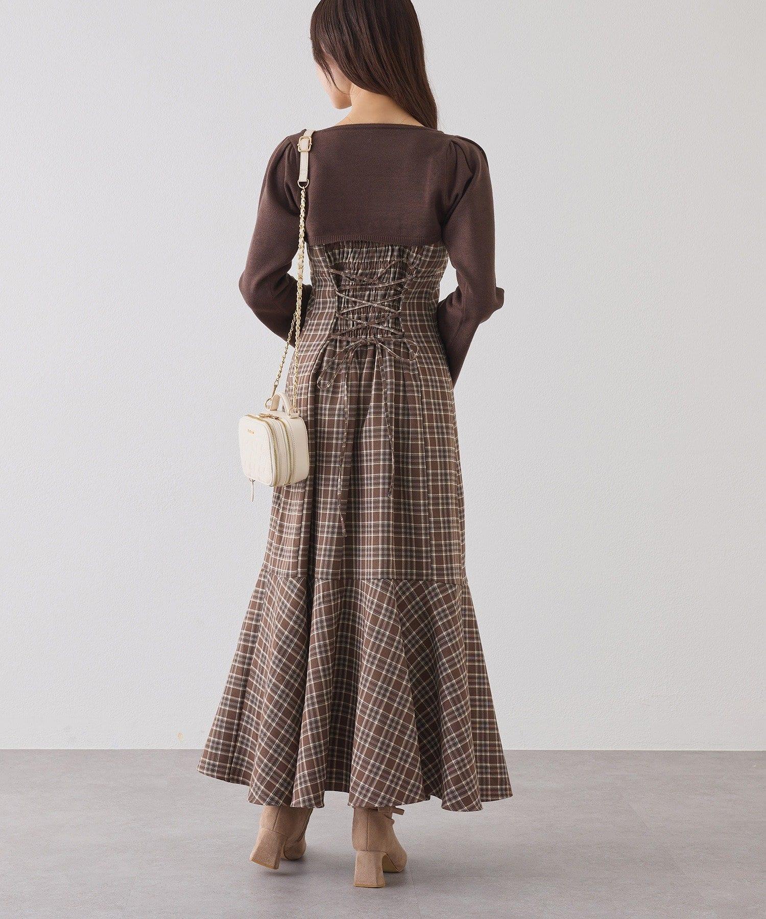 人魚線輪廓的短上衣和吊帶連衣裙的平整套裝。