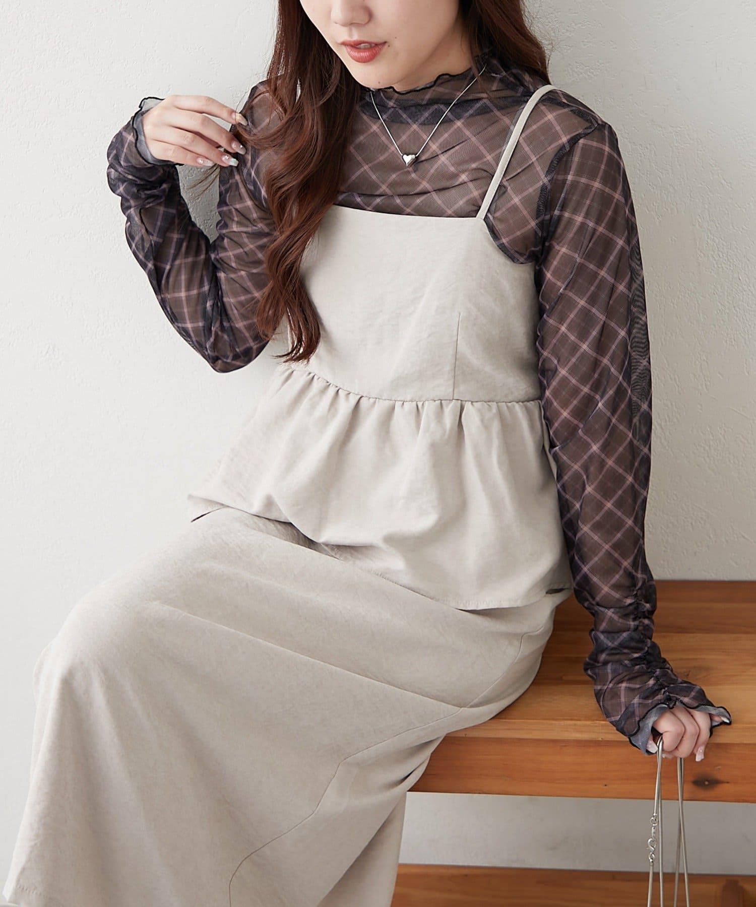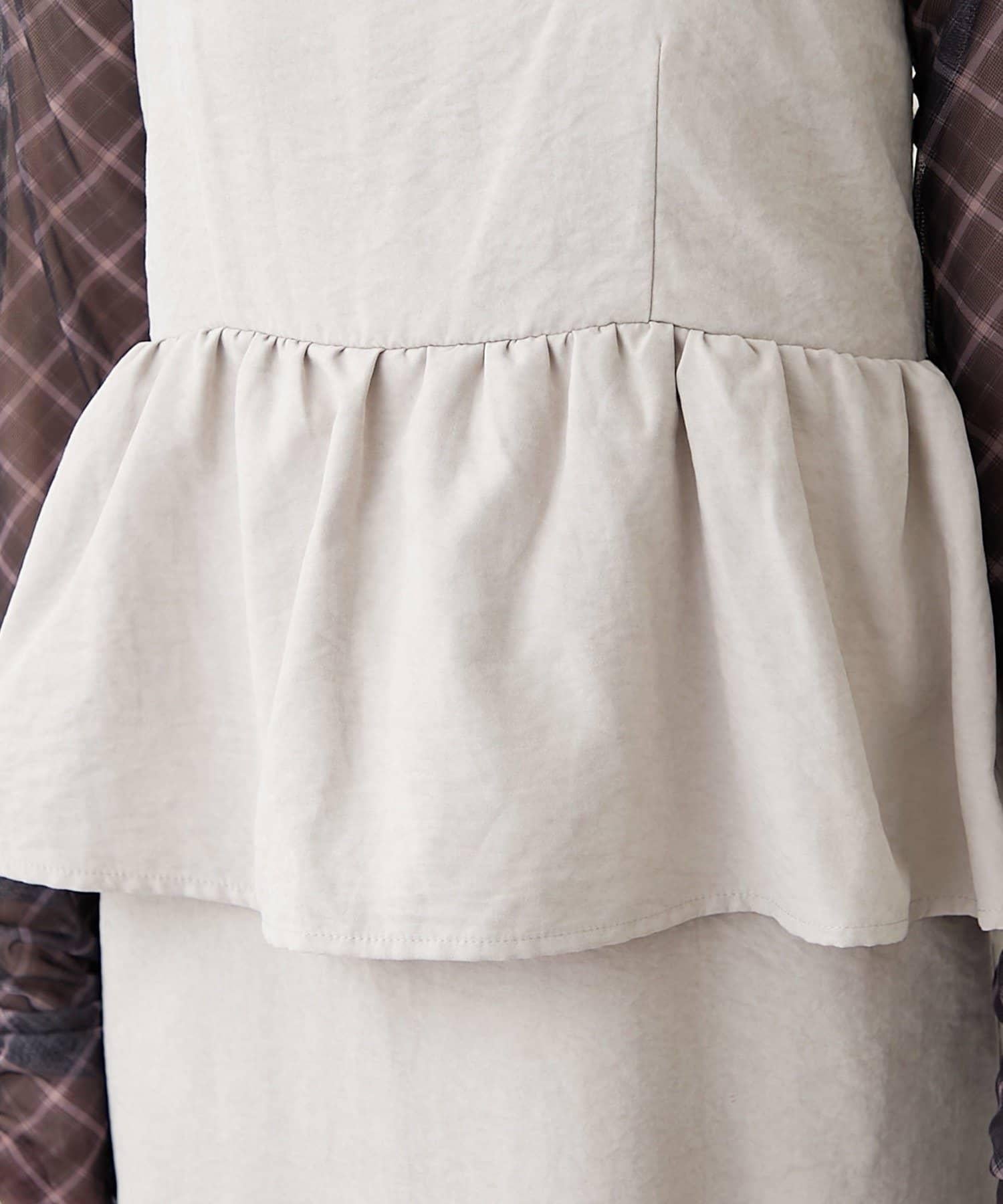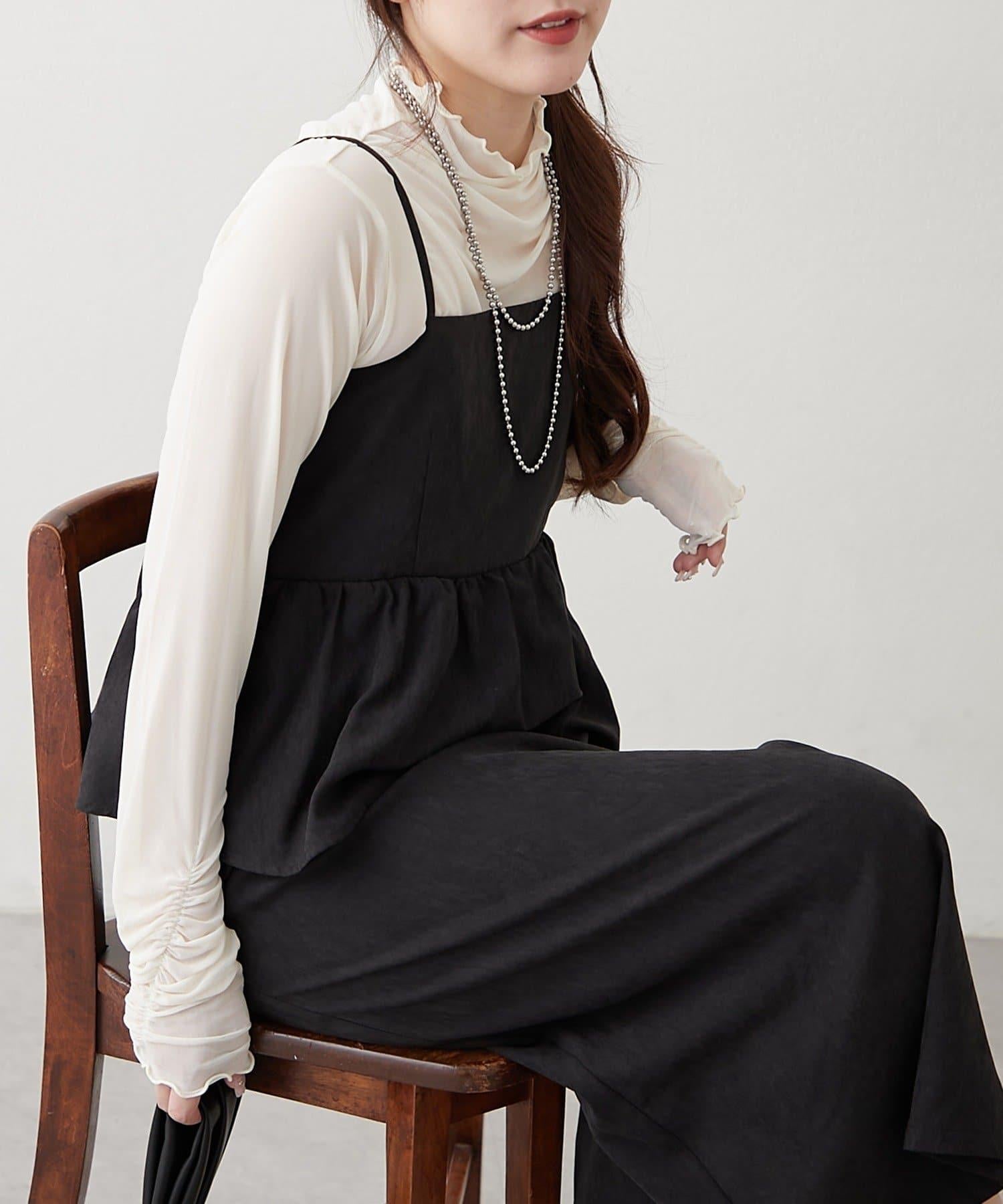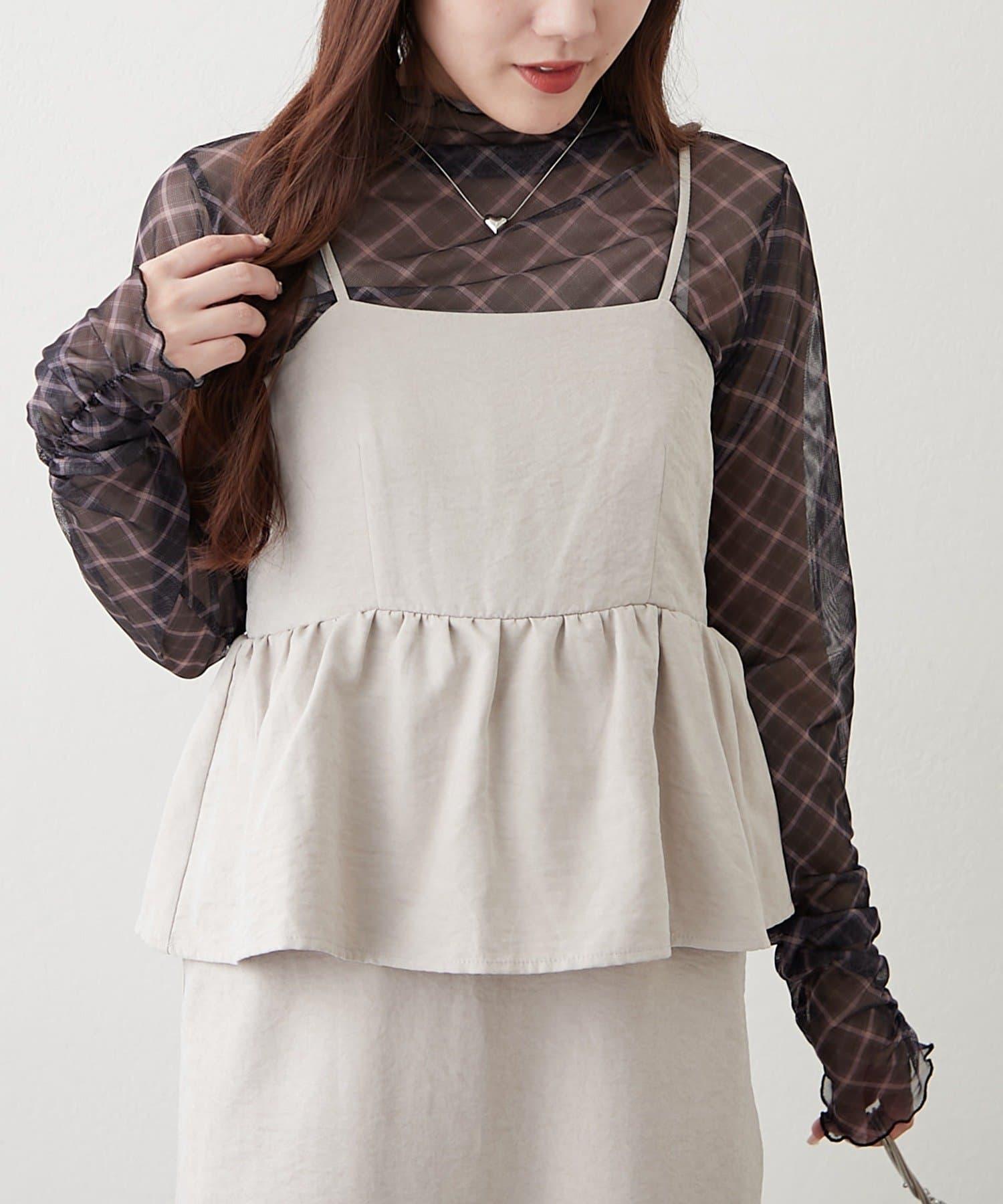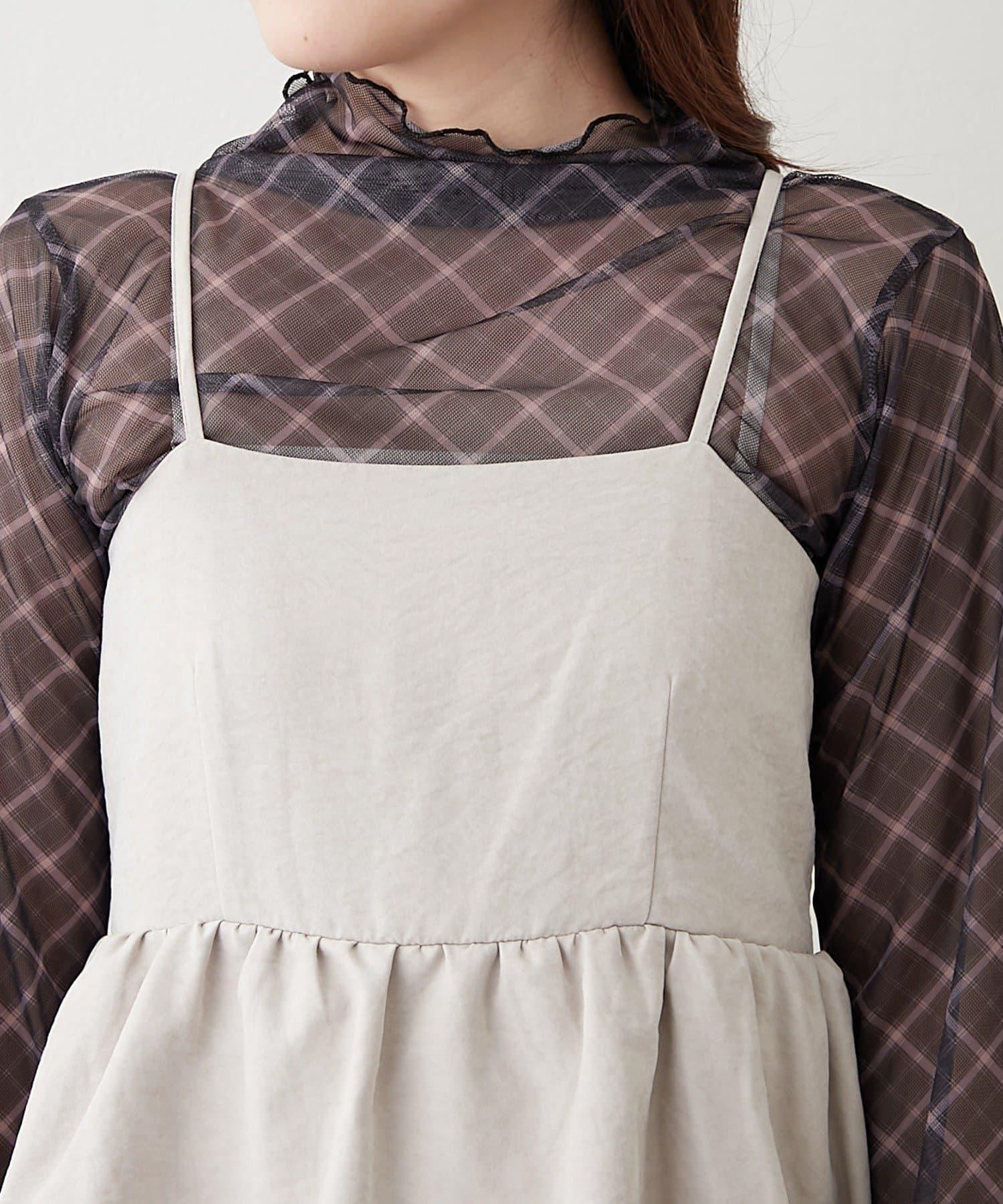 吊帶連衣裙是透明上衣和吊帶連衣裙的套裝。吊帶連衣裙採用蓬蓬裙設計,具有提升時尚感的效果。