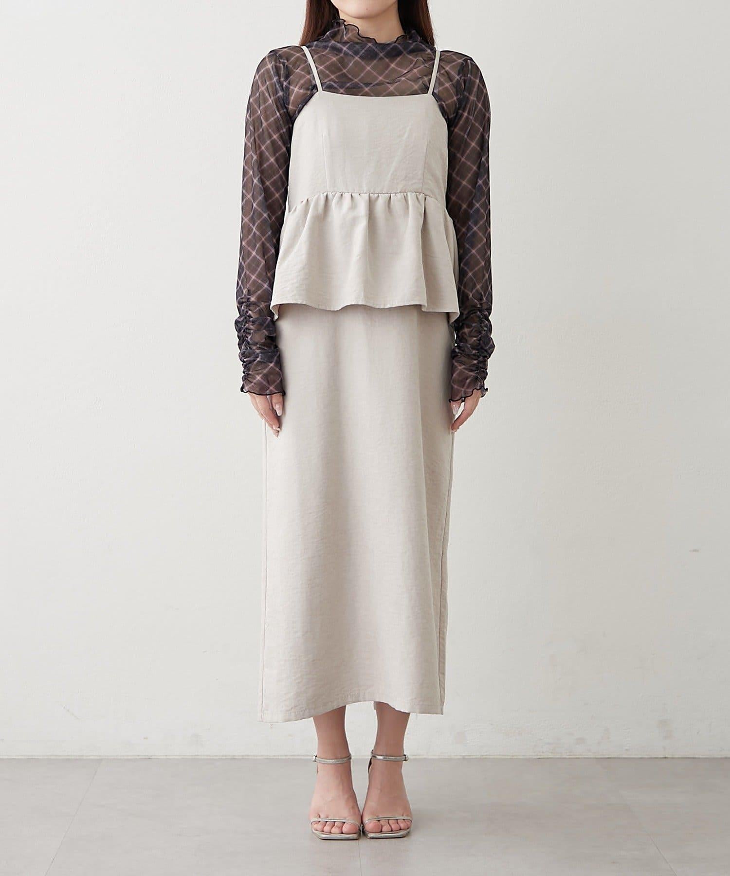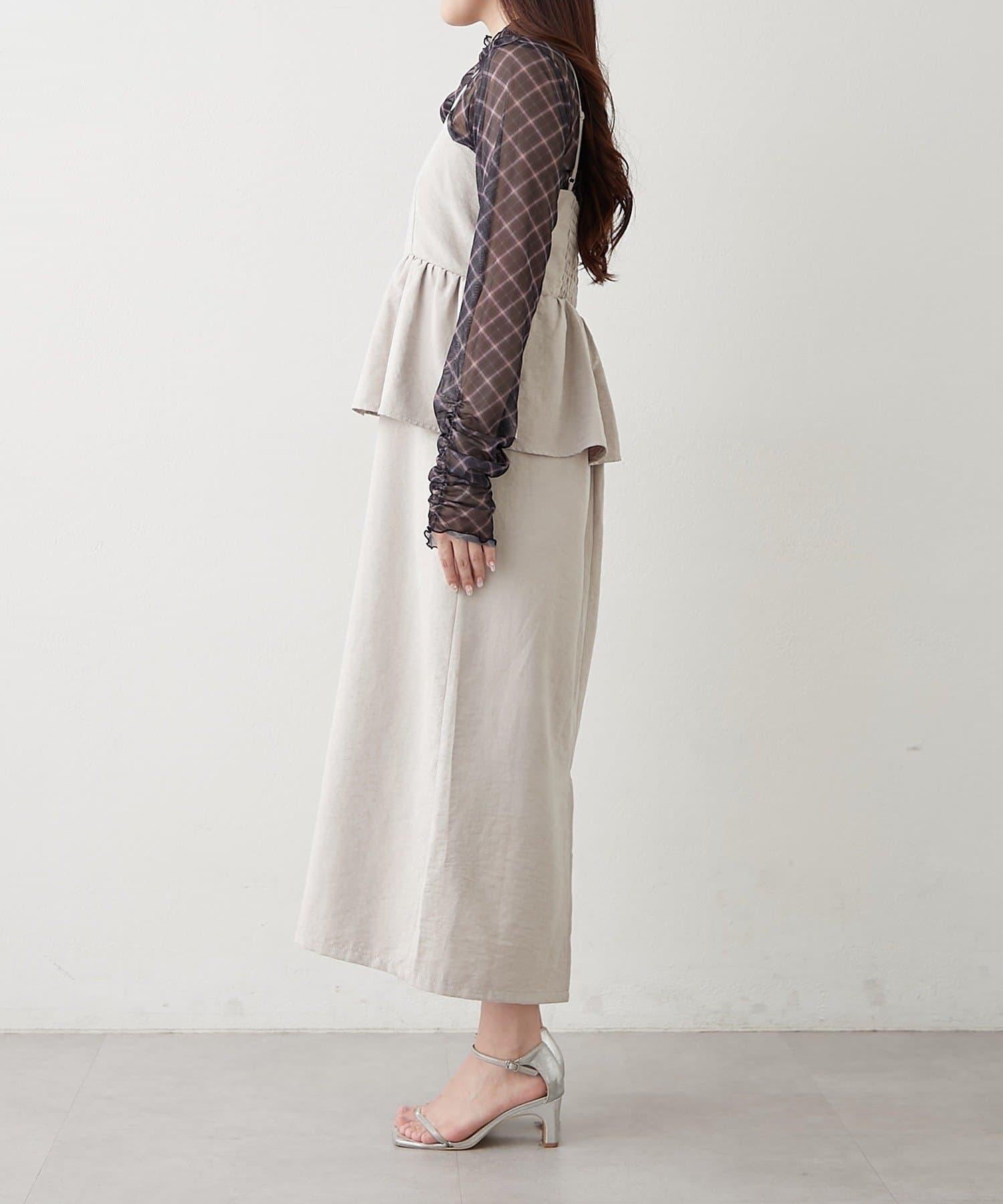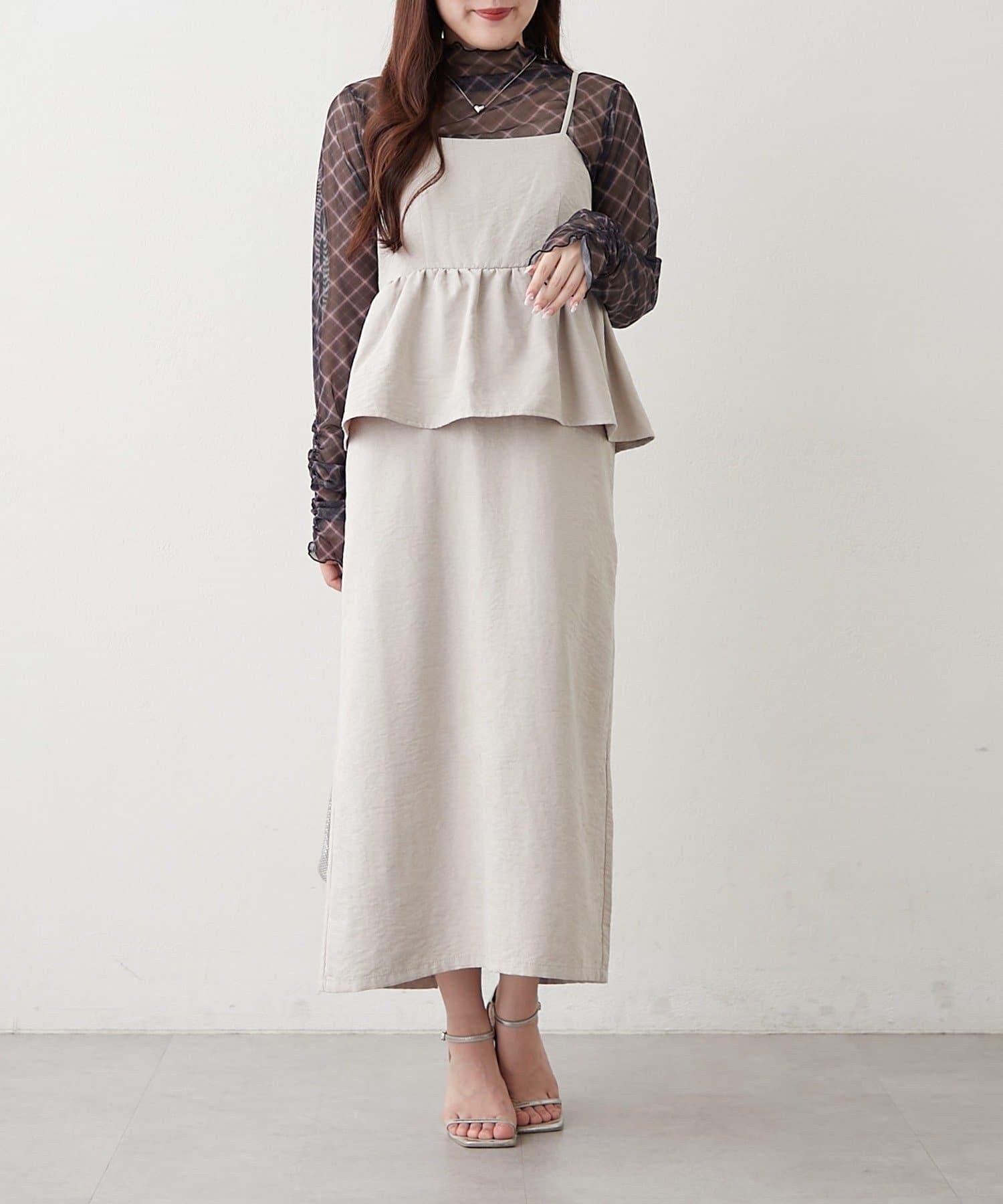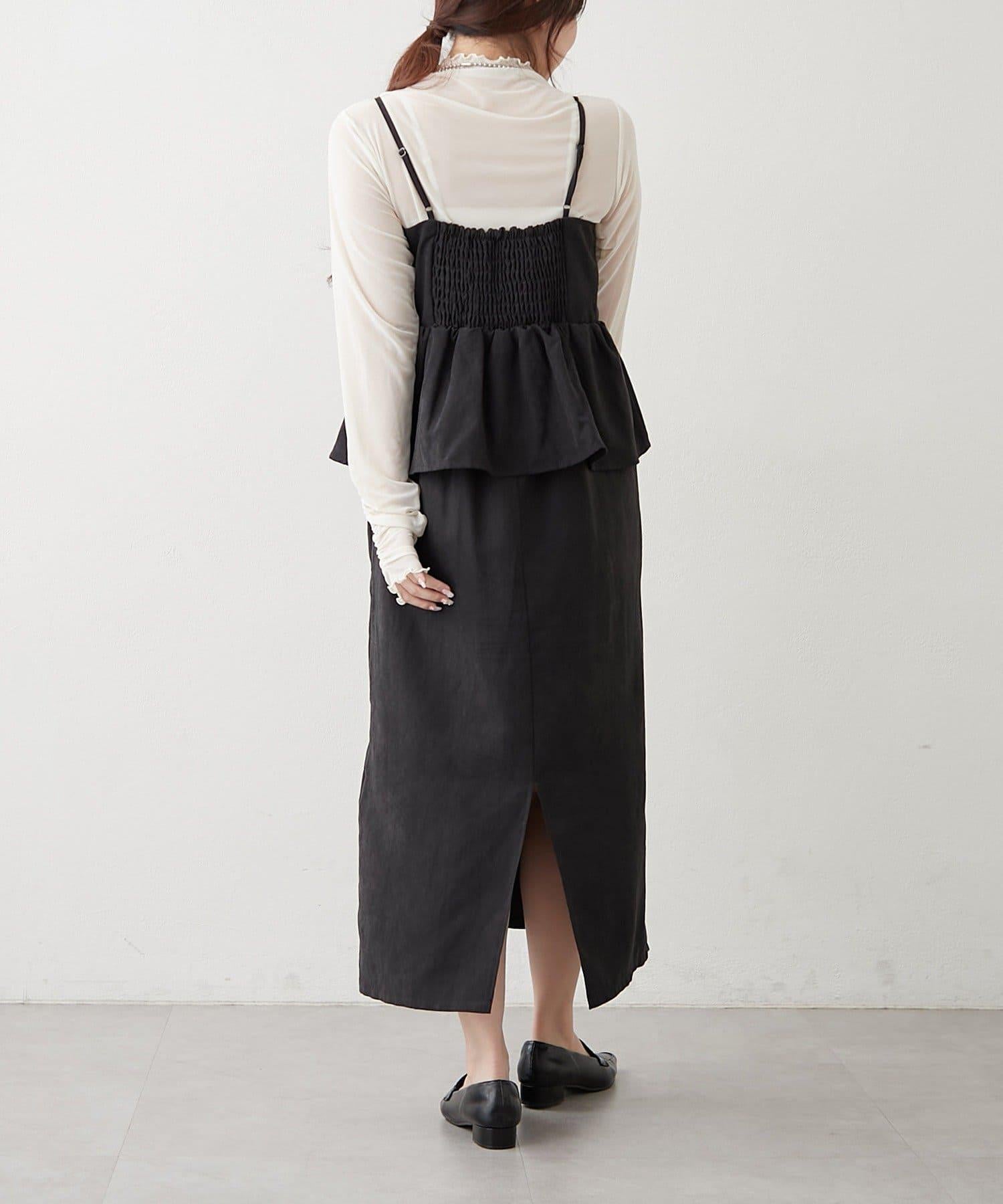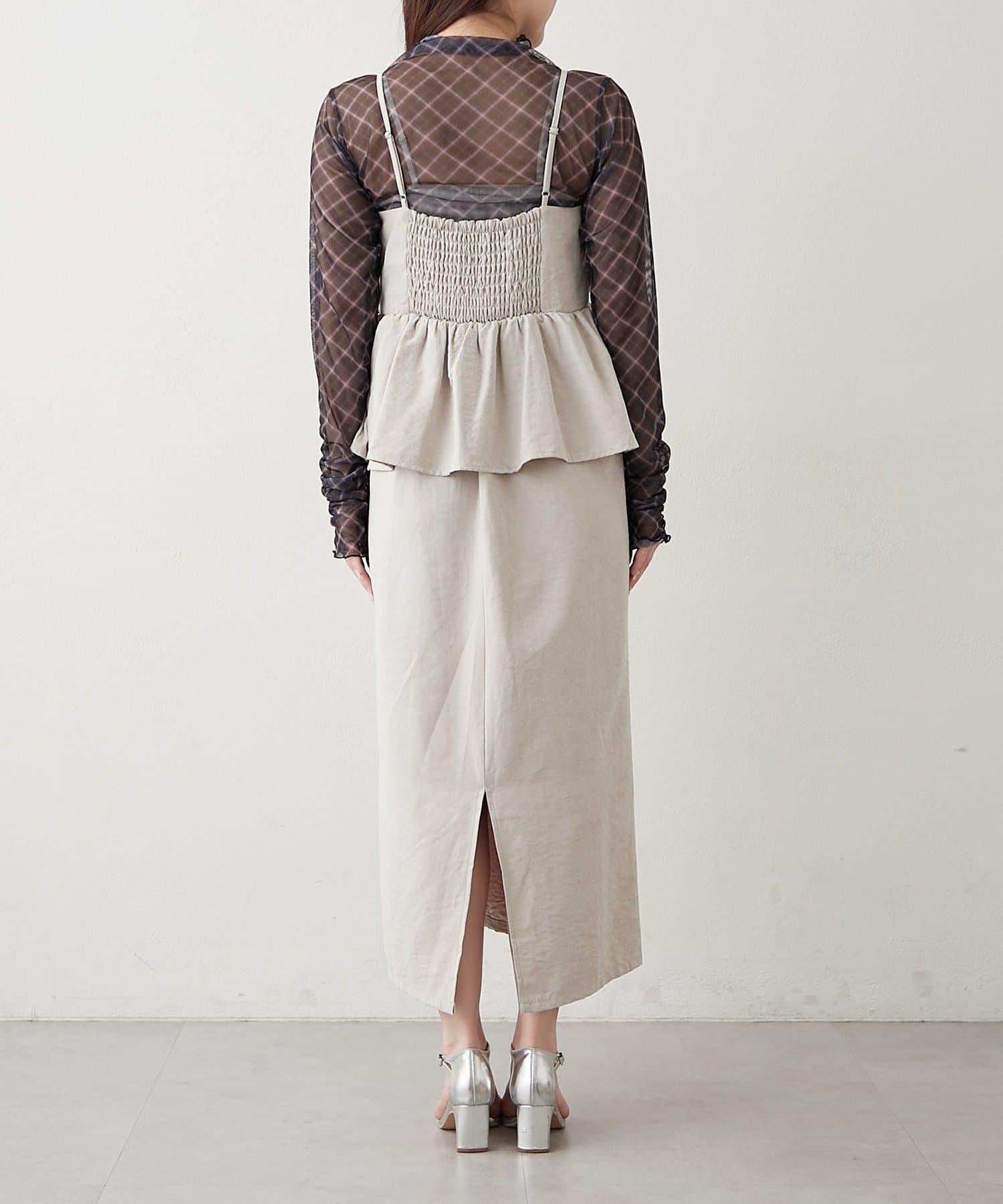吊帶連衣裙是透明上衣和吊帶連衣裙的套裝。吊帶連衣裙採用蓬蓬裙設計,具有提升時尚感的效果。