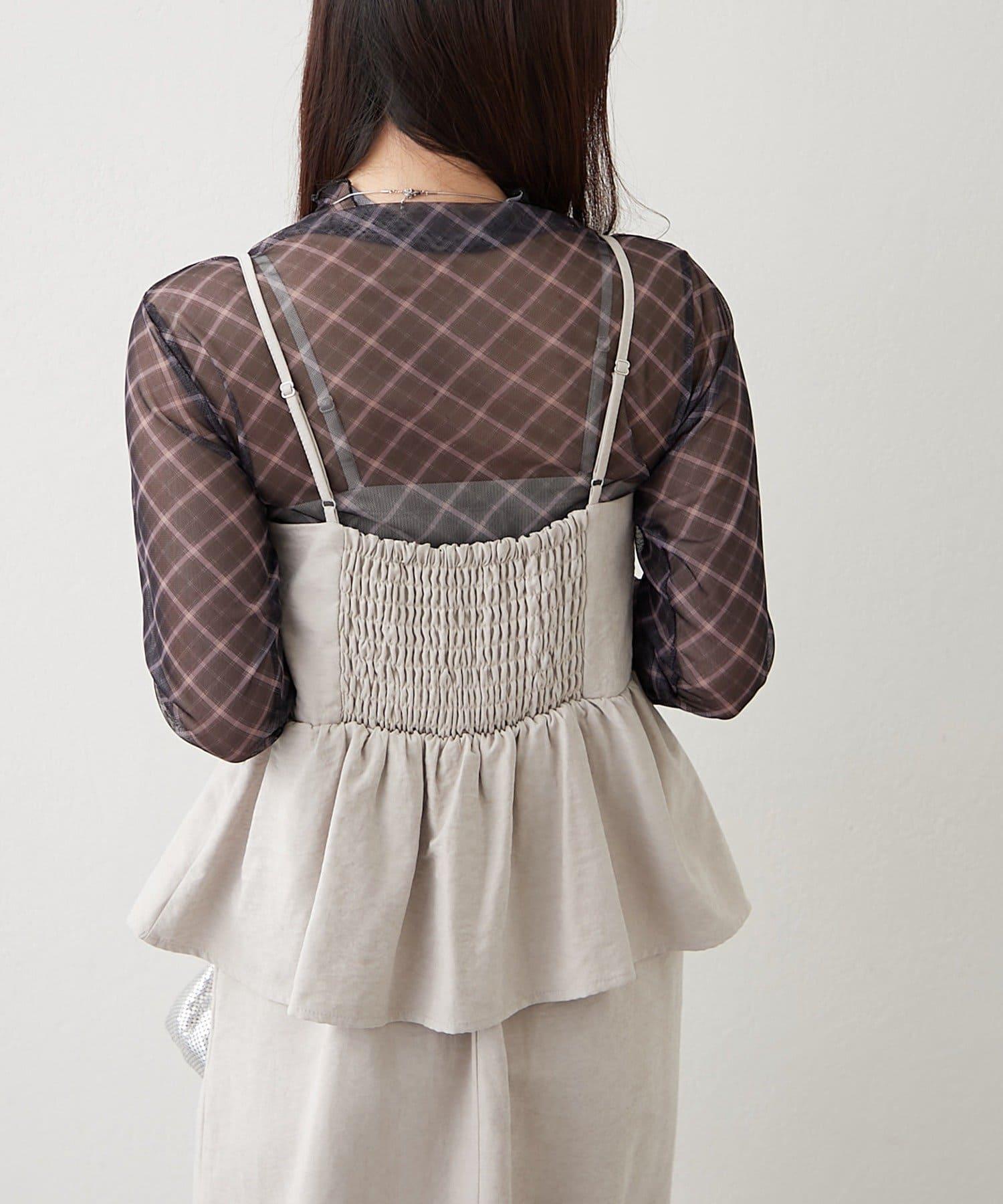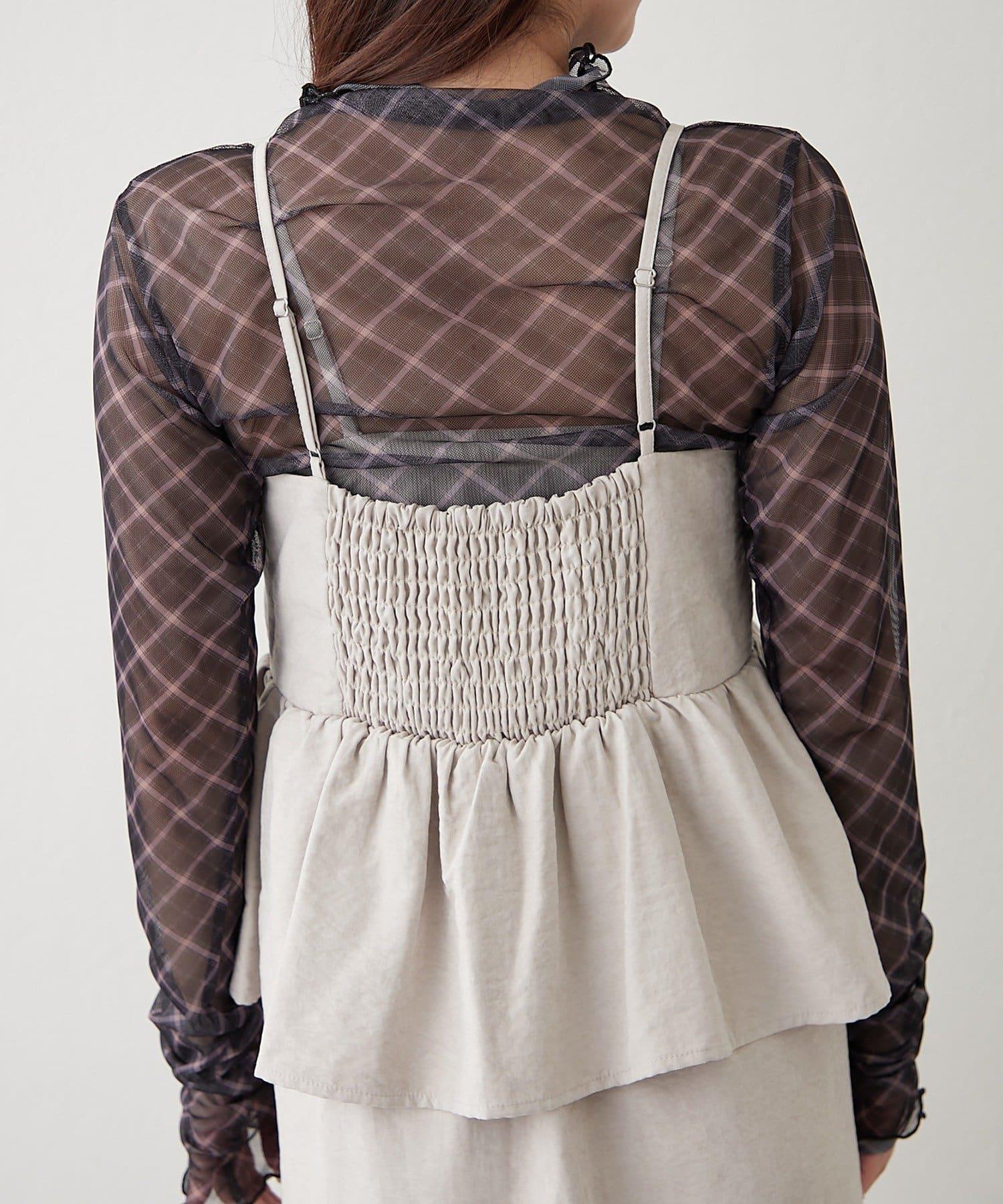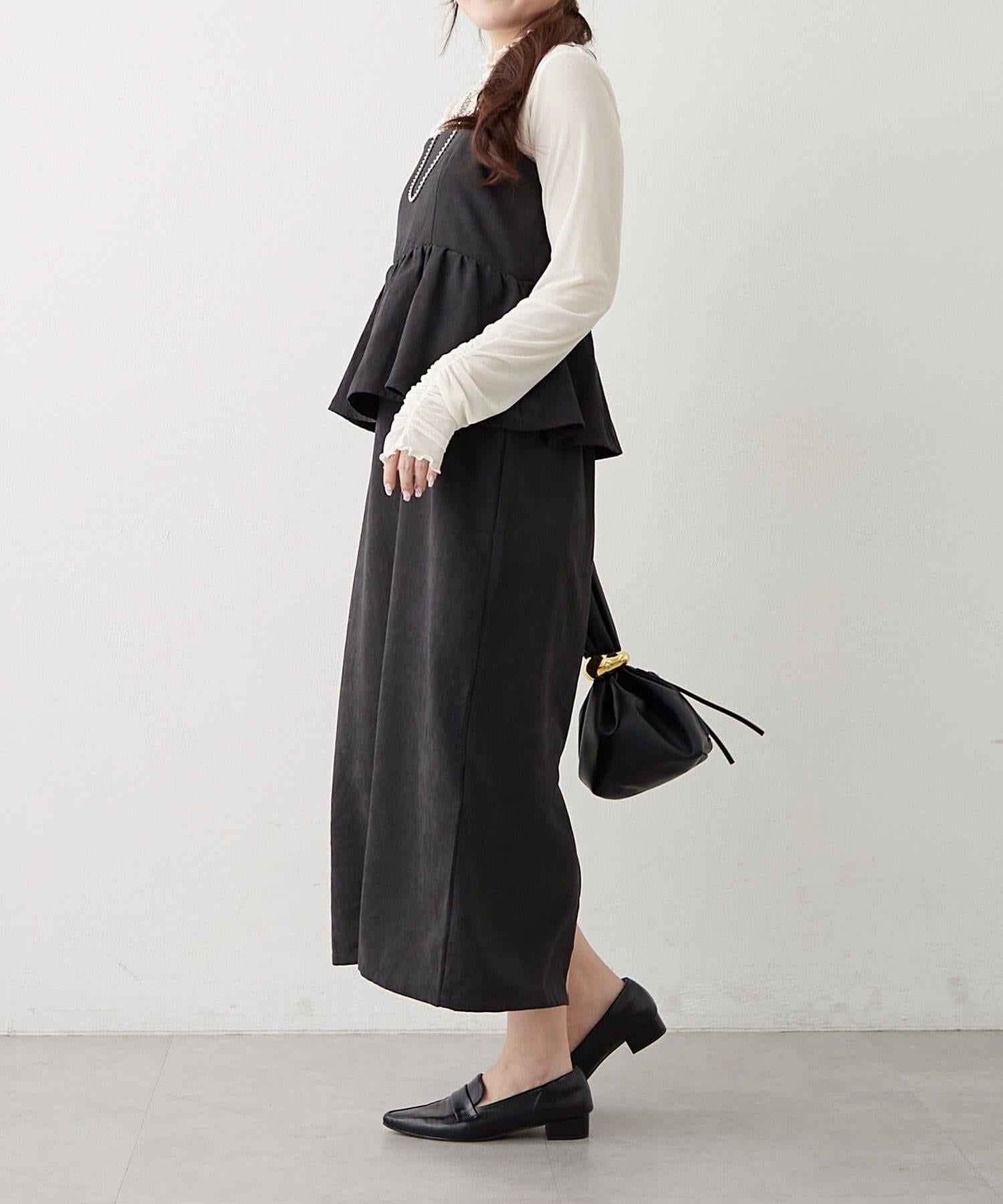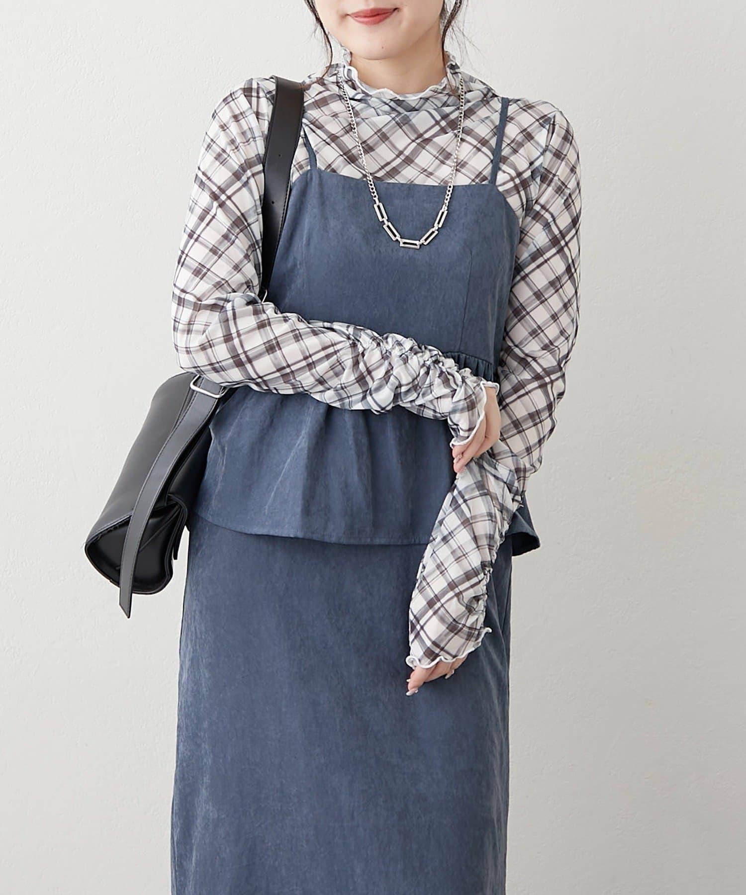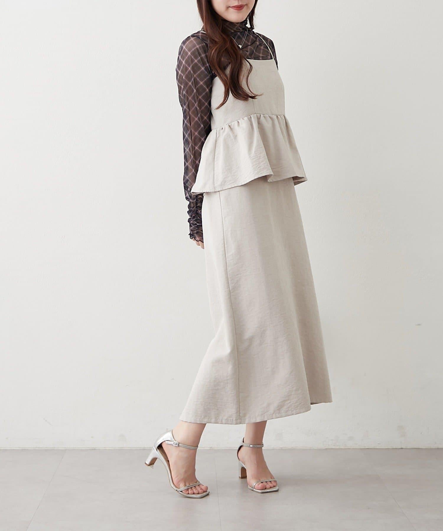 吊帶連衣裙是透明上衣和吊帶連衣裙的套裝。吊帶連衣裙採用蓬蓬裙設計,具有提升時尚感的效果。