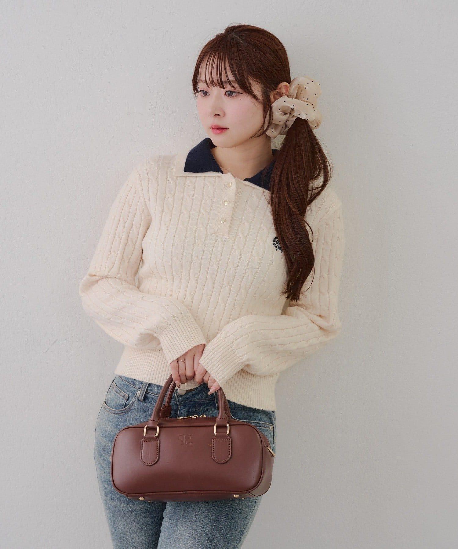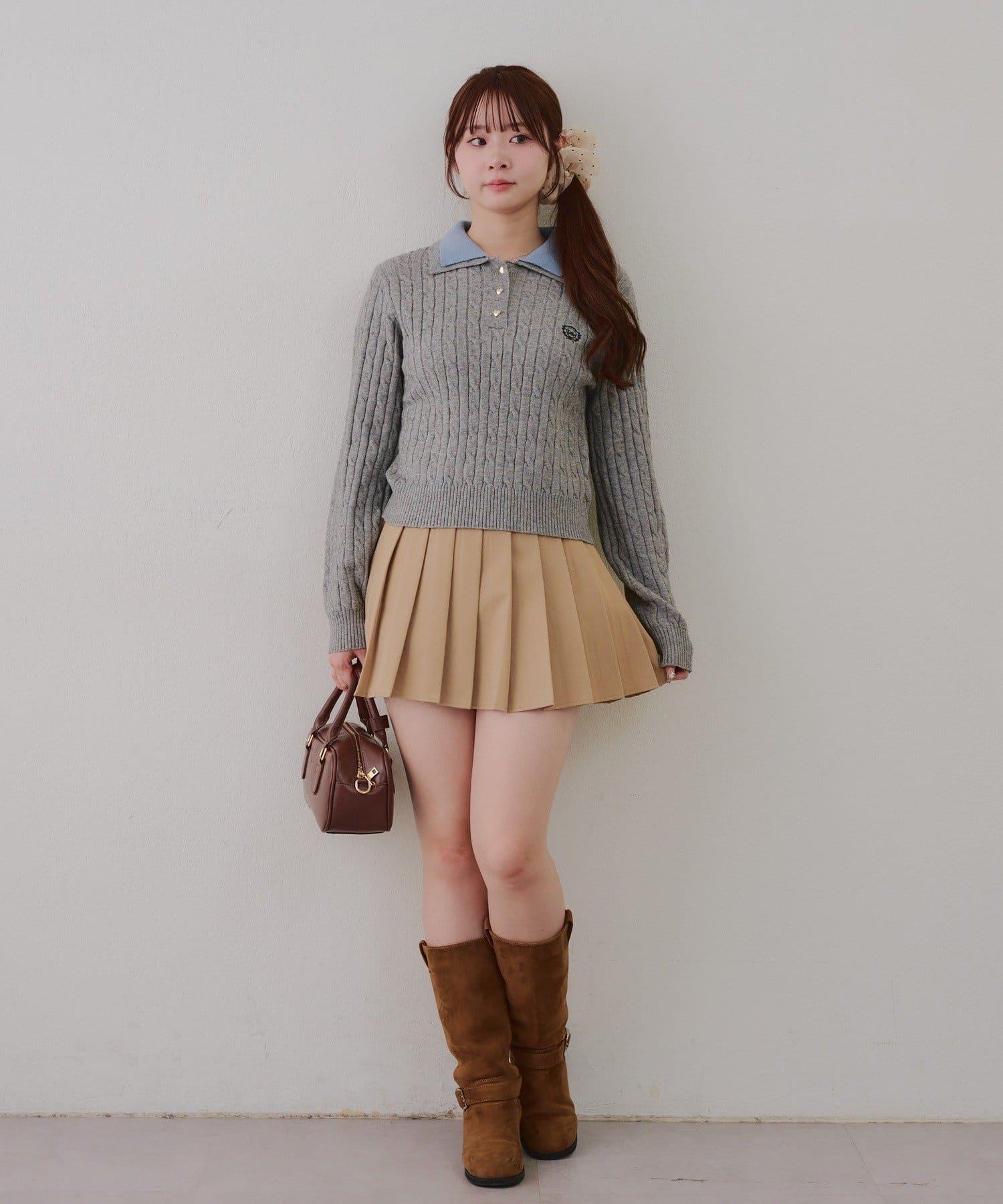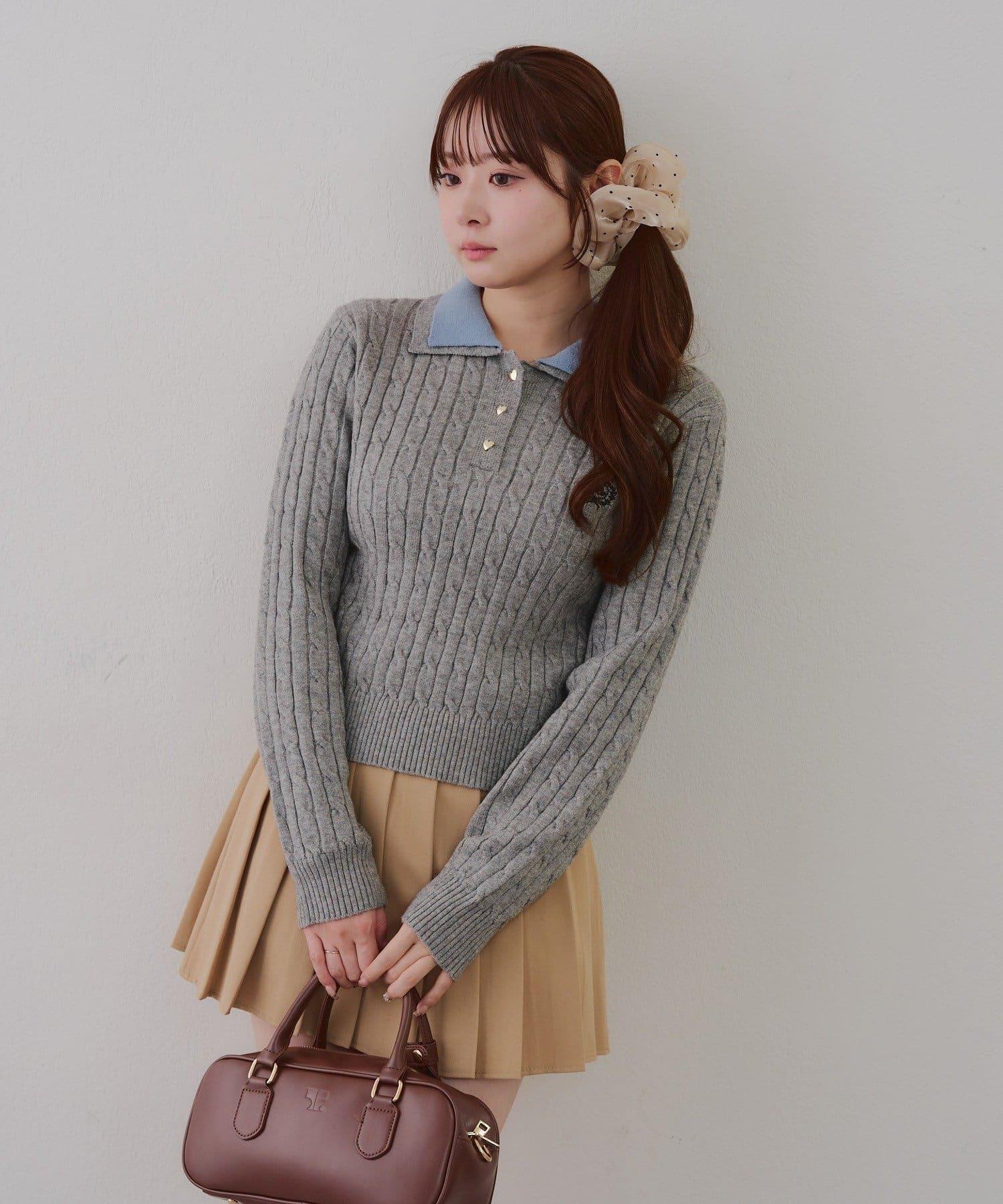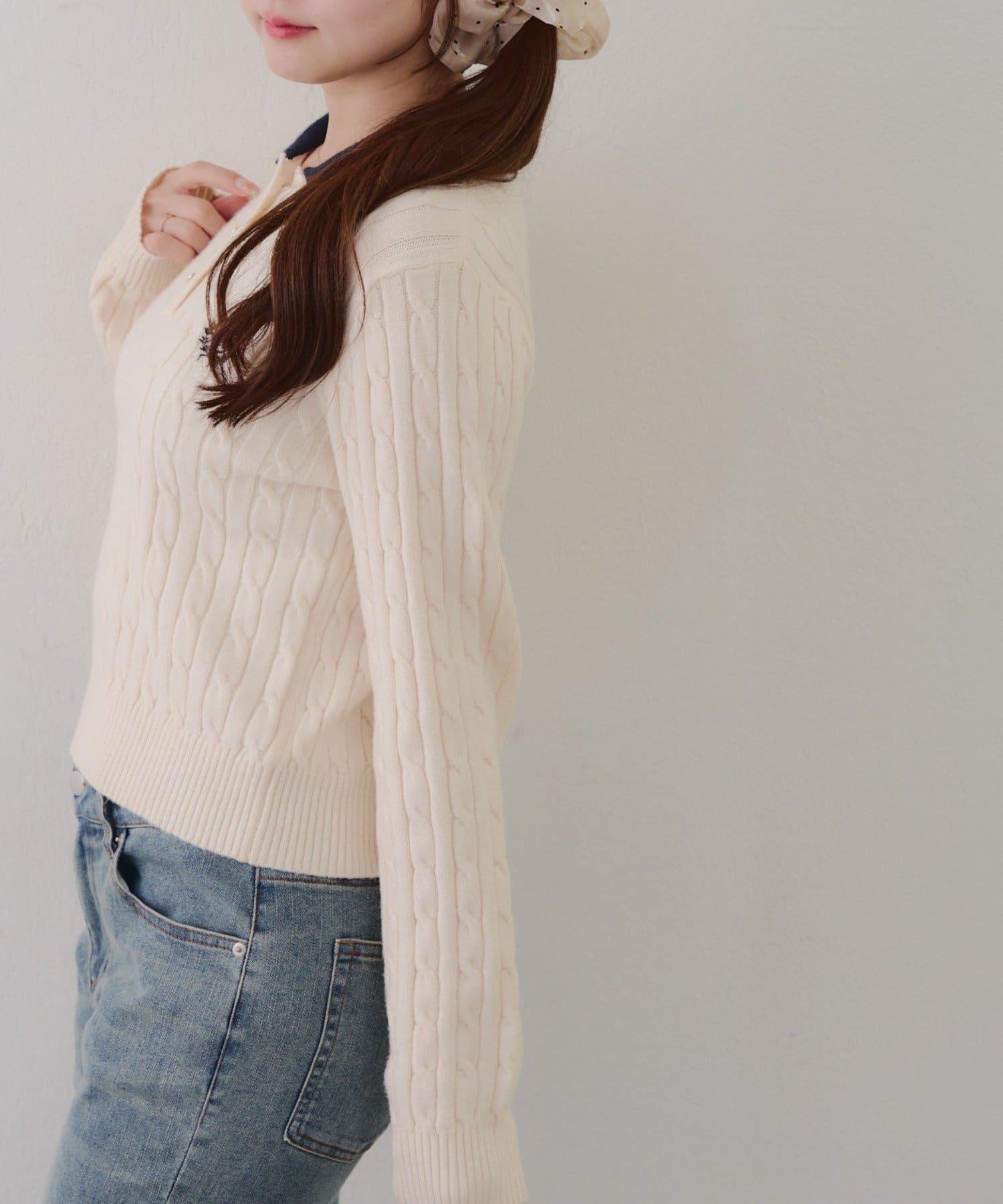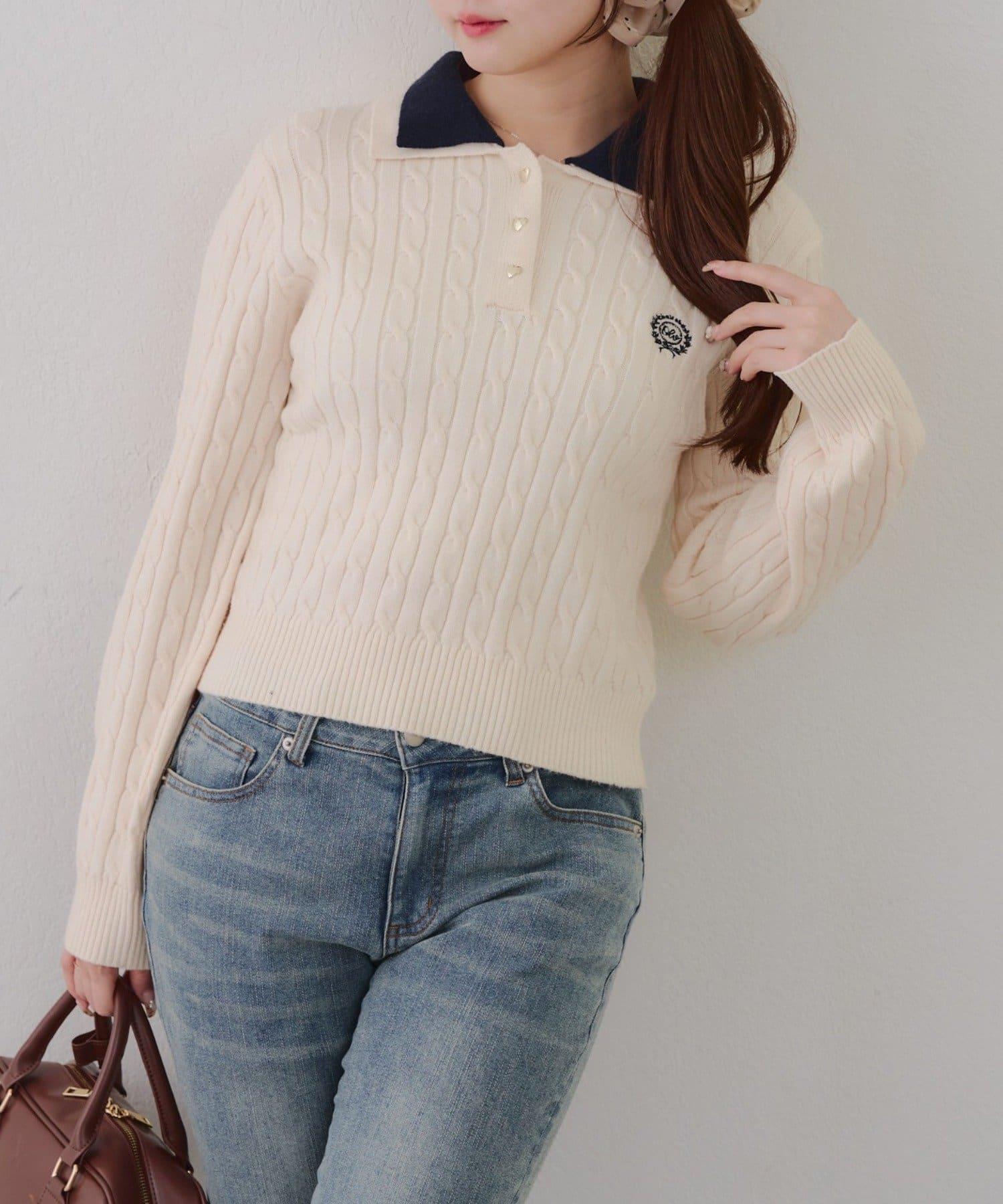 Polo 針織上衣,兩片式衣領,給人一種季節感。
