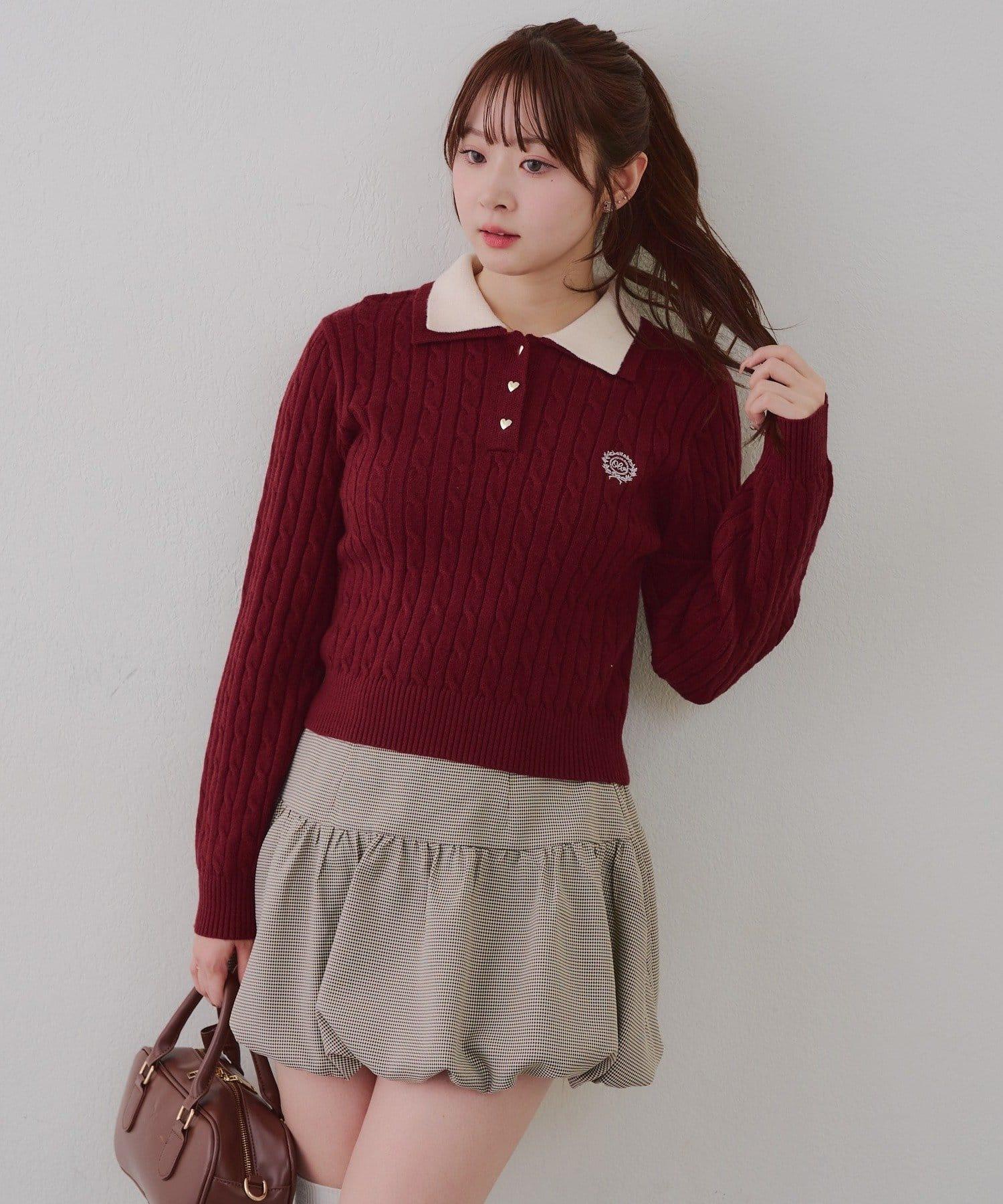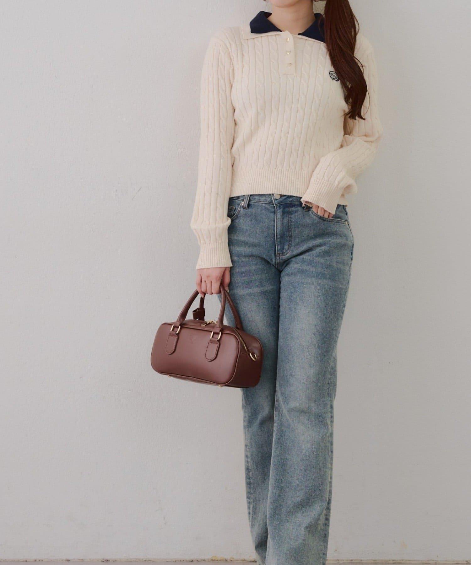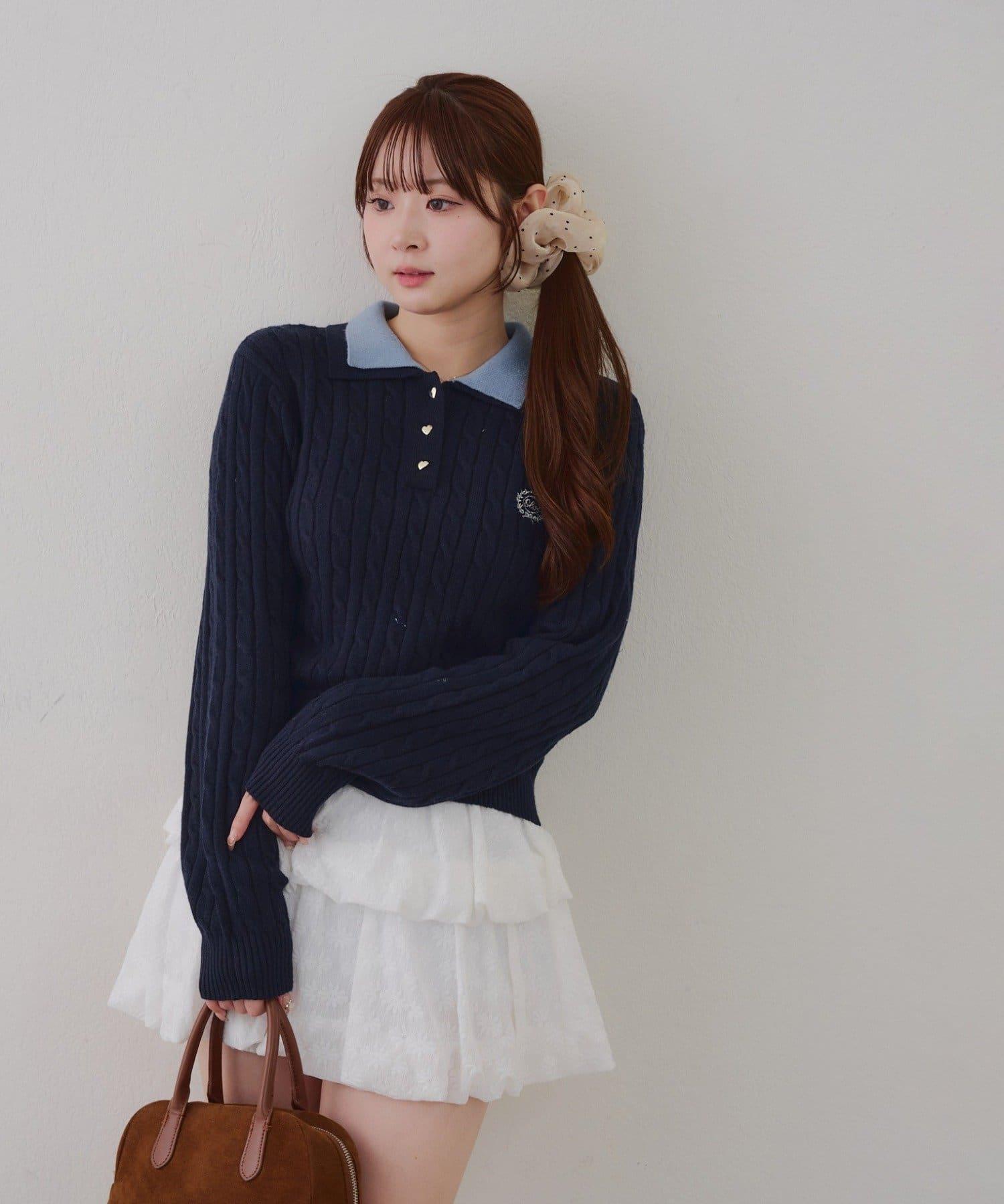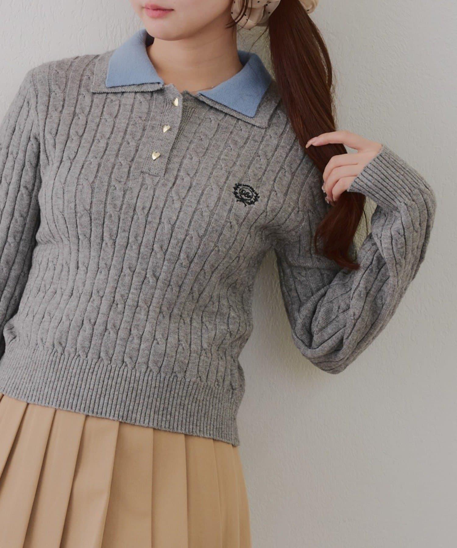 Polo 針織上衣,兩片式衣領,給人一種季節感。