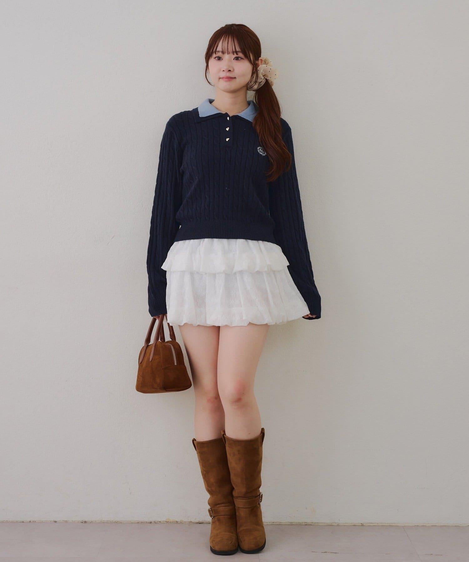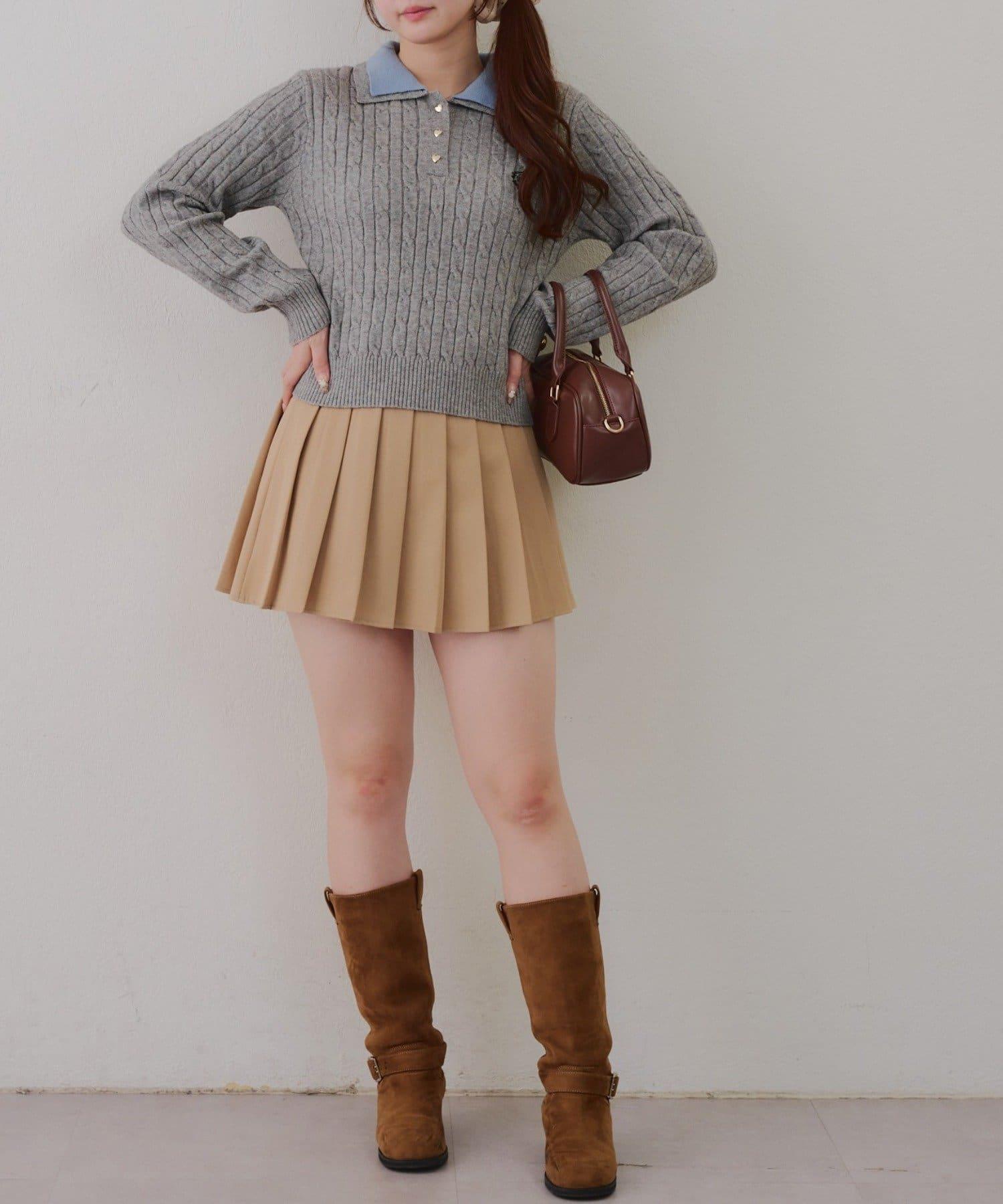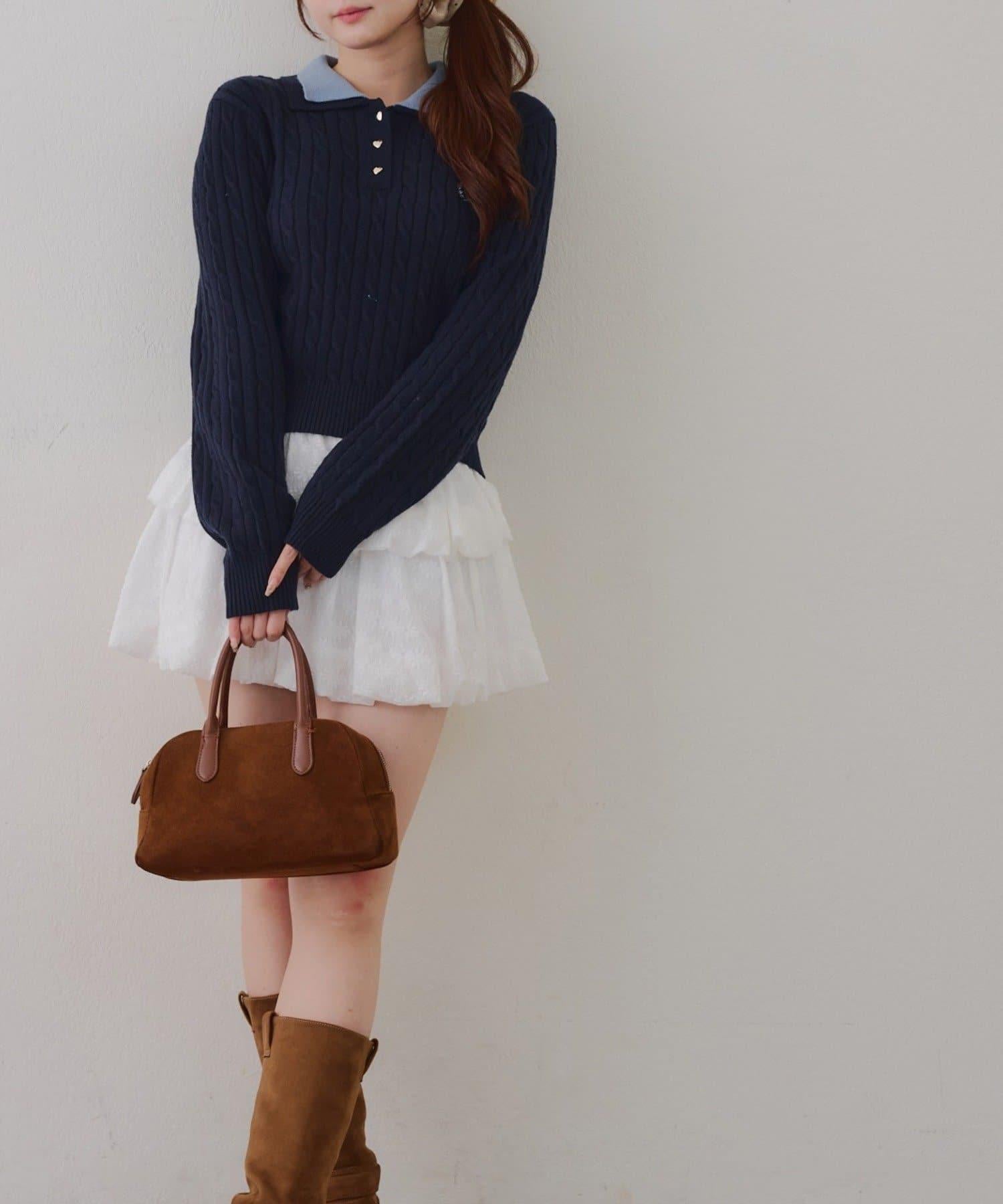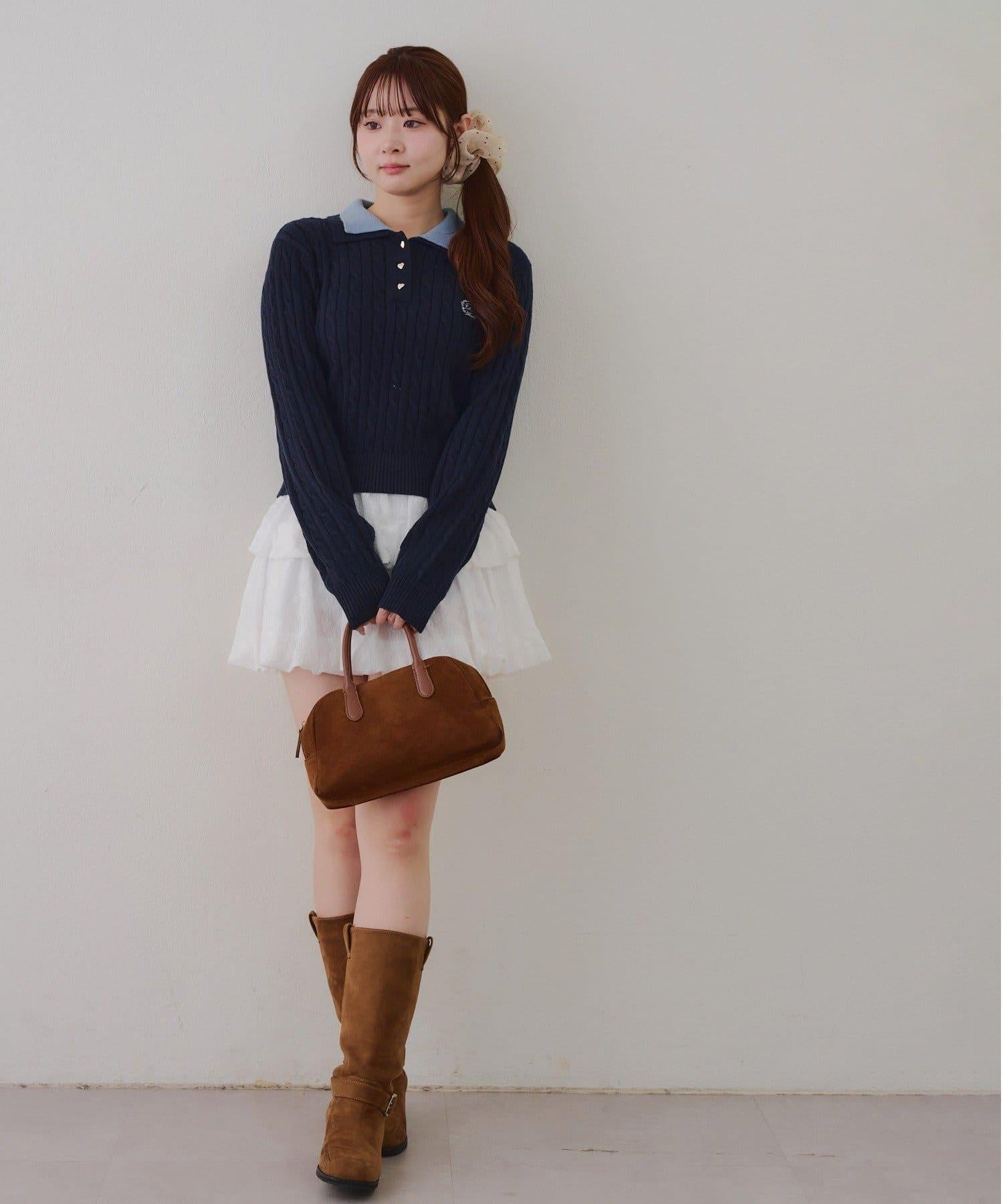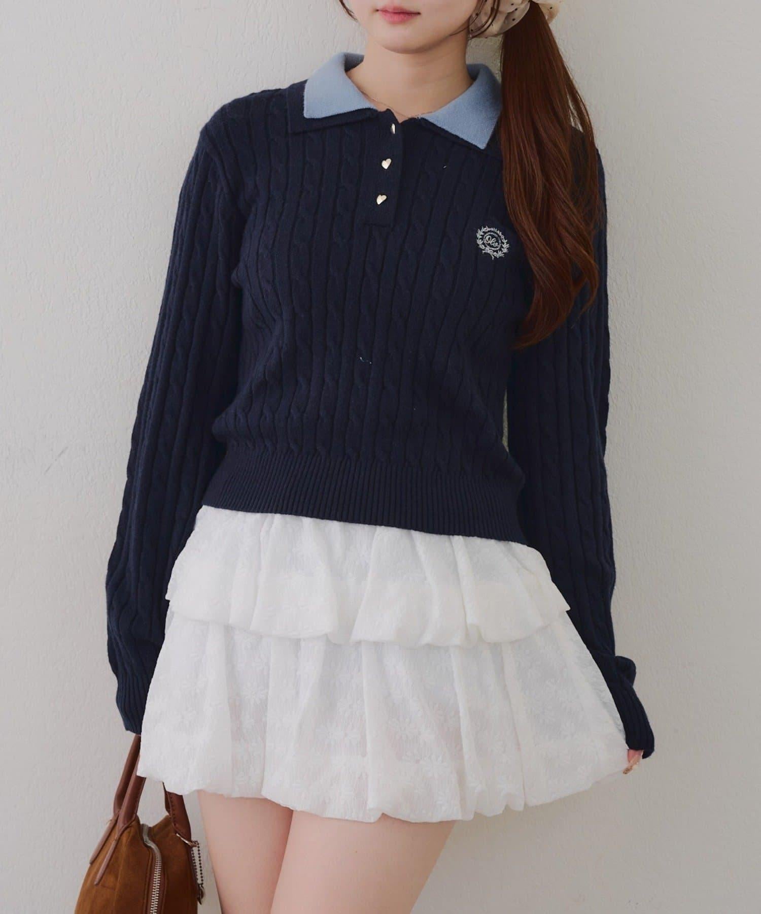 Polo 針織上衣,兩片式衣領,給人一種季節感。