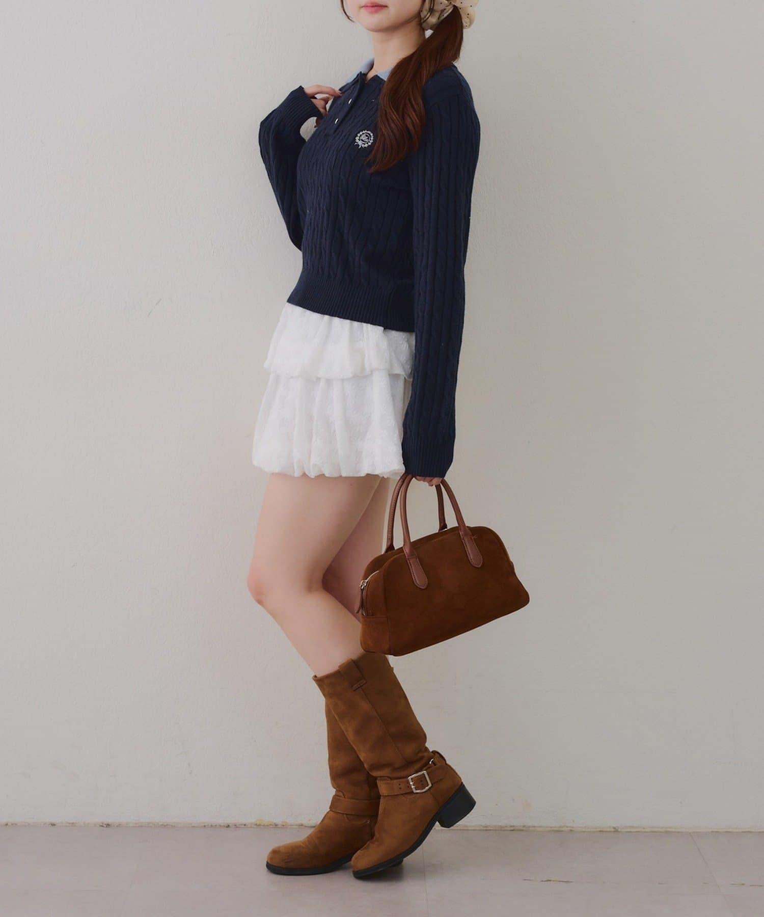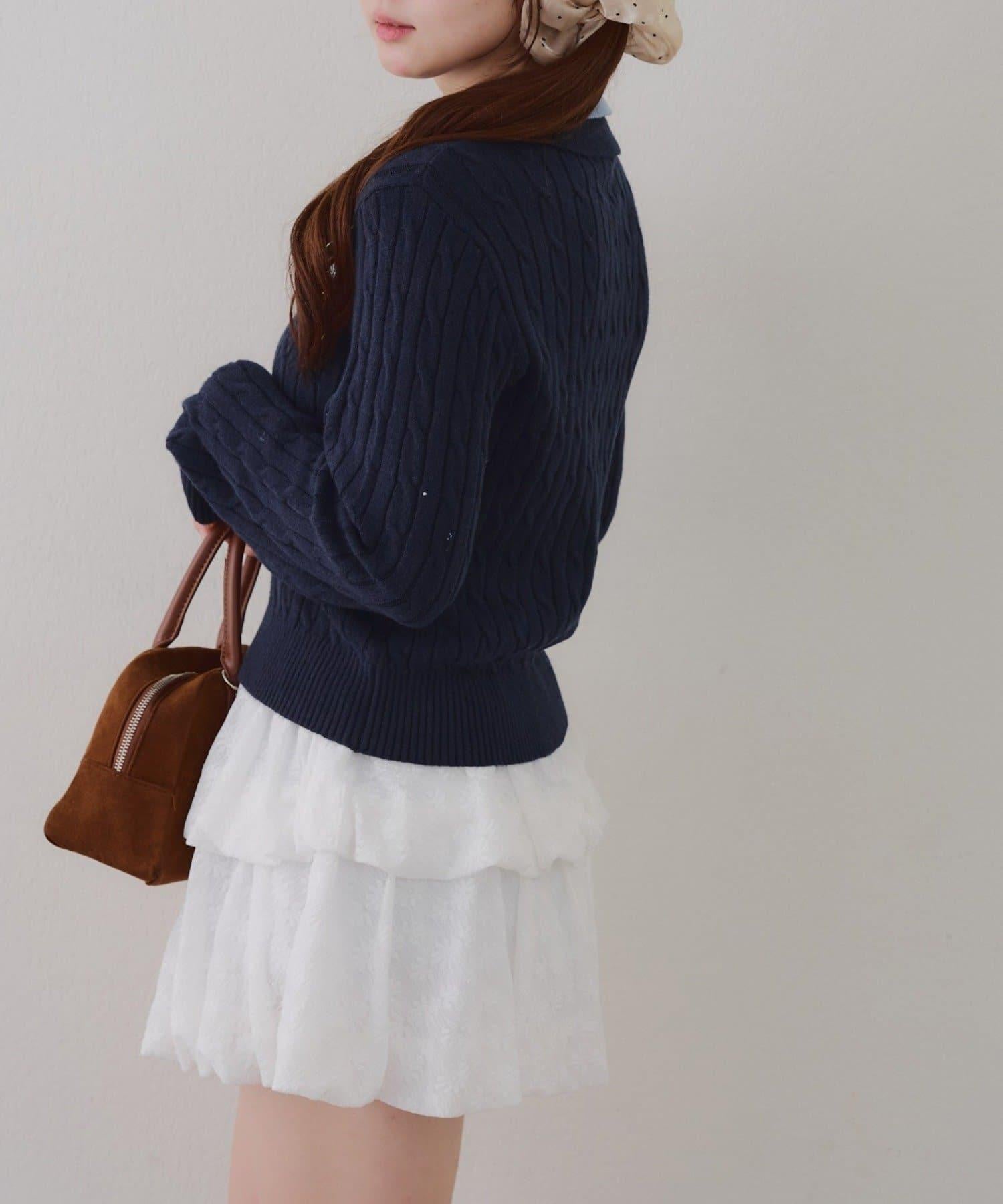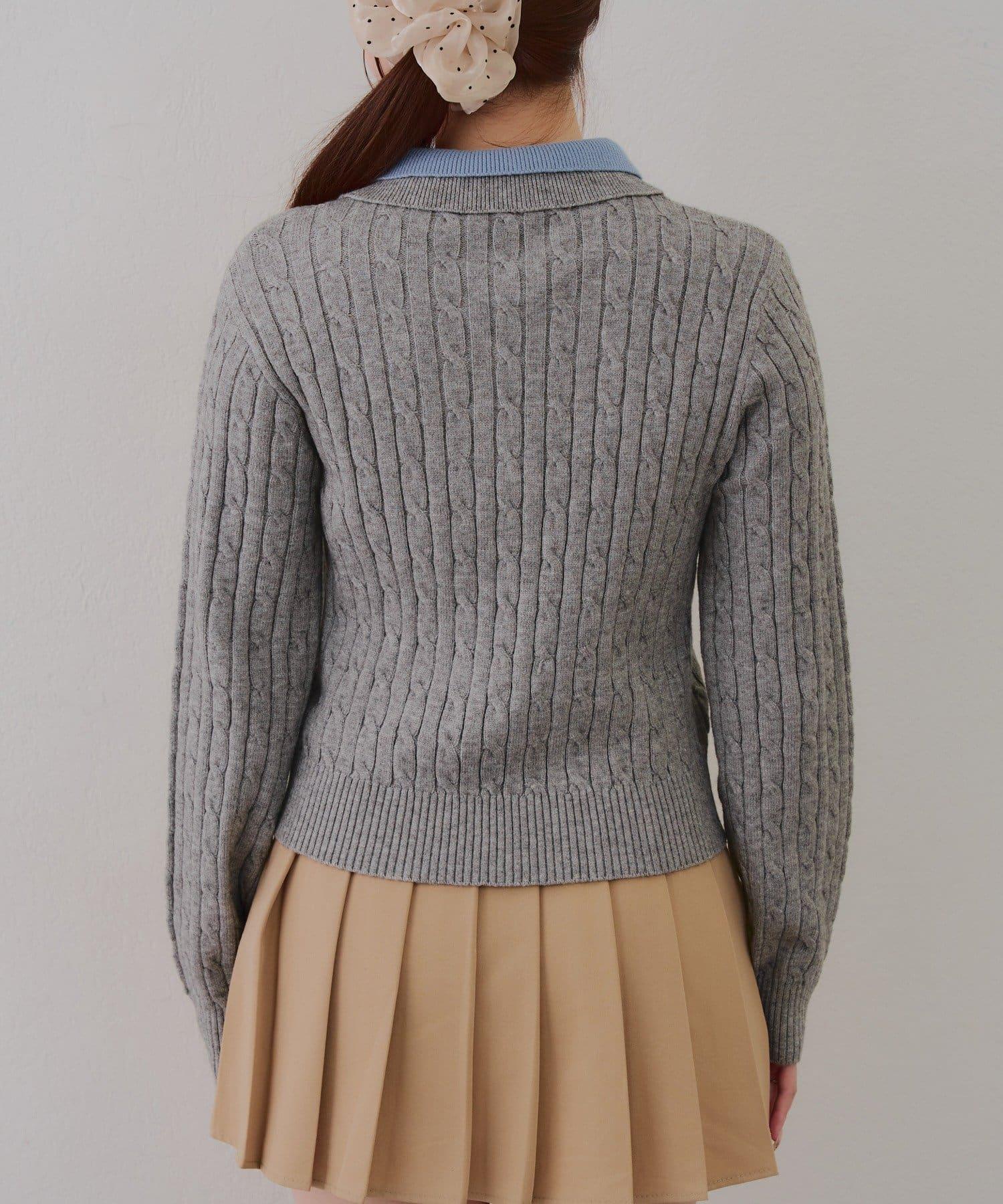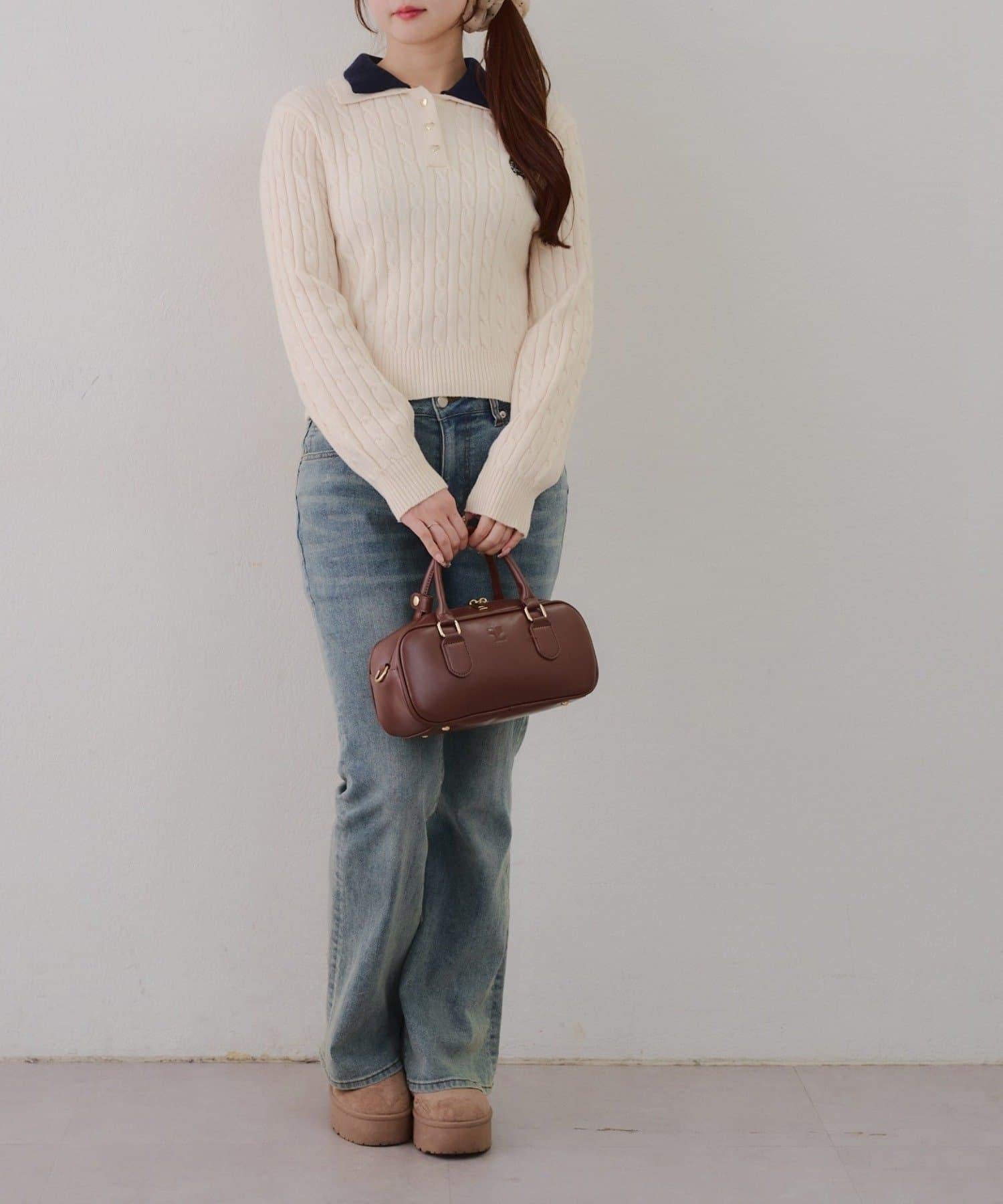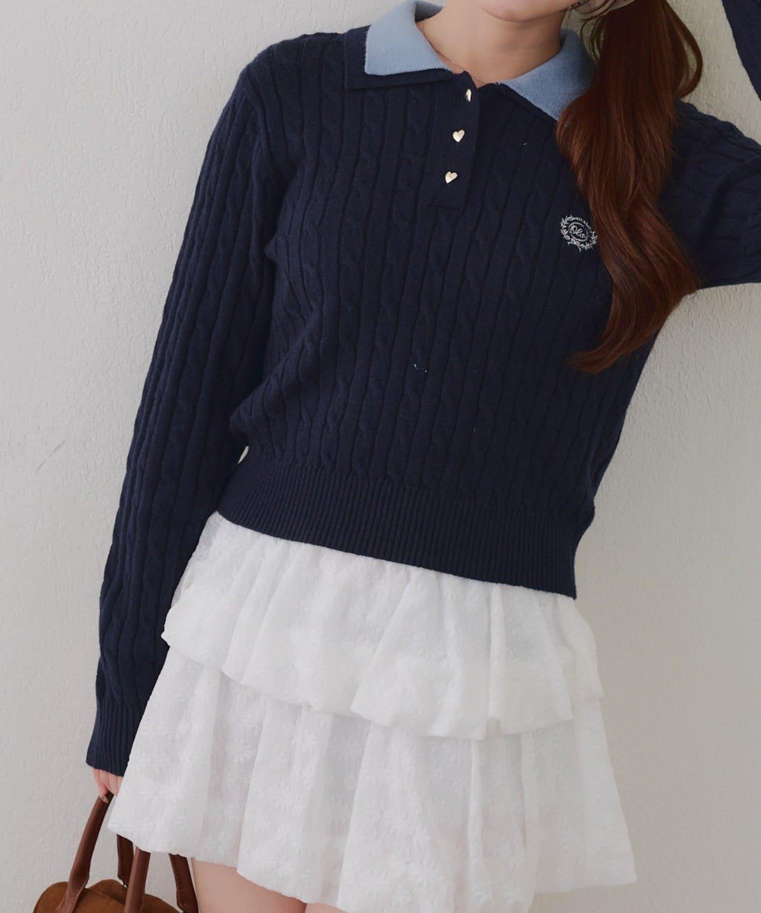Polo 針織上衣,兩片式衣領,給人一種季節感。