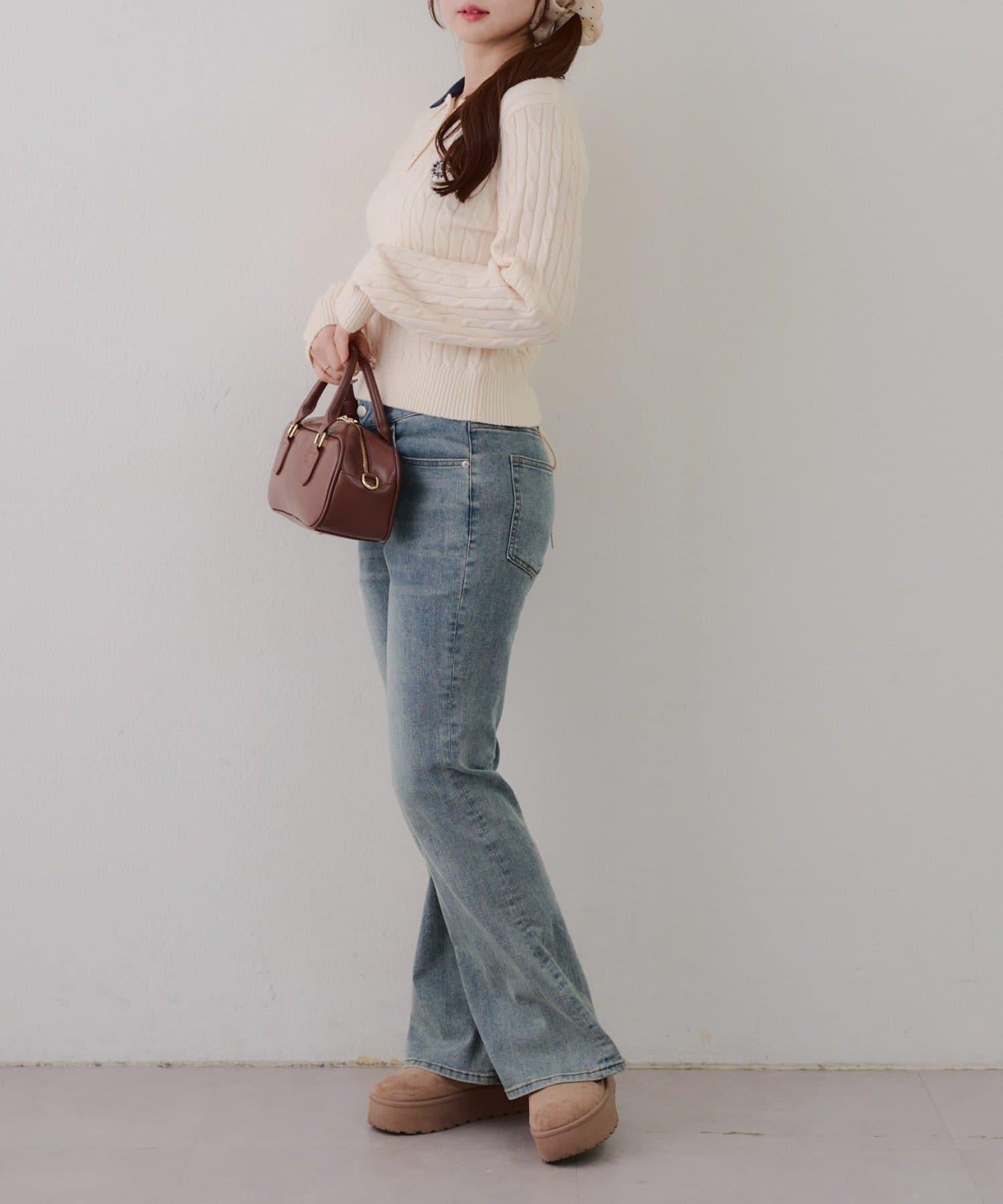 搭配喇叭牛仔褲也是不錯的選擇,打造時尚休閒造型。