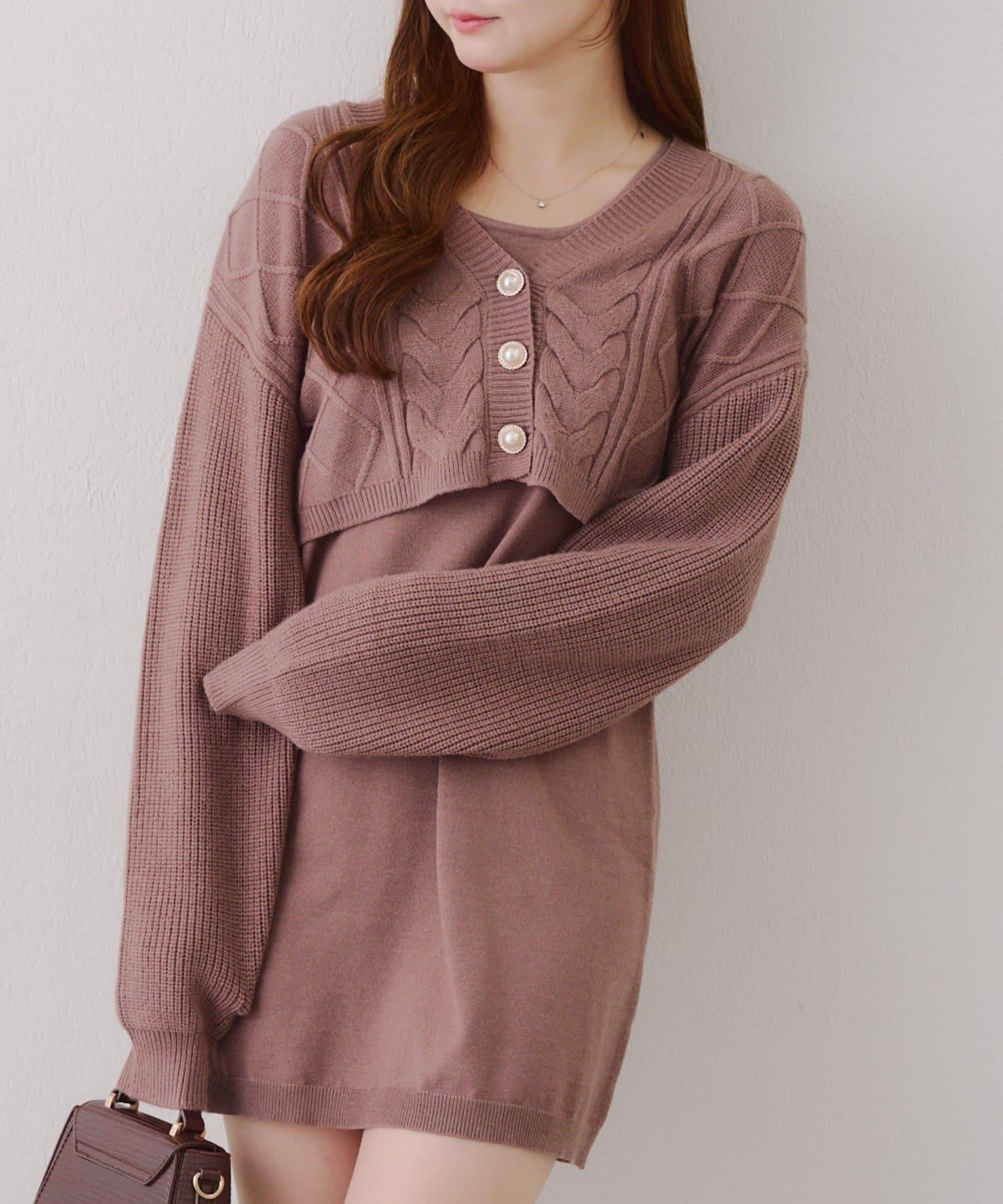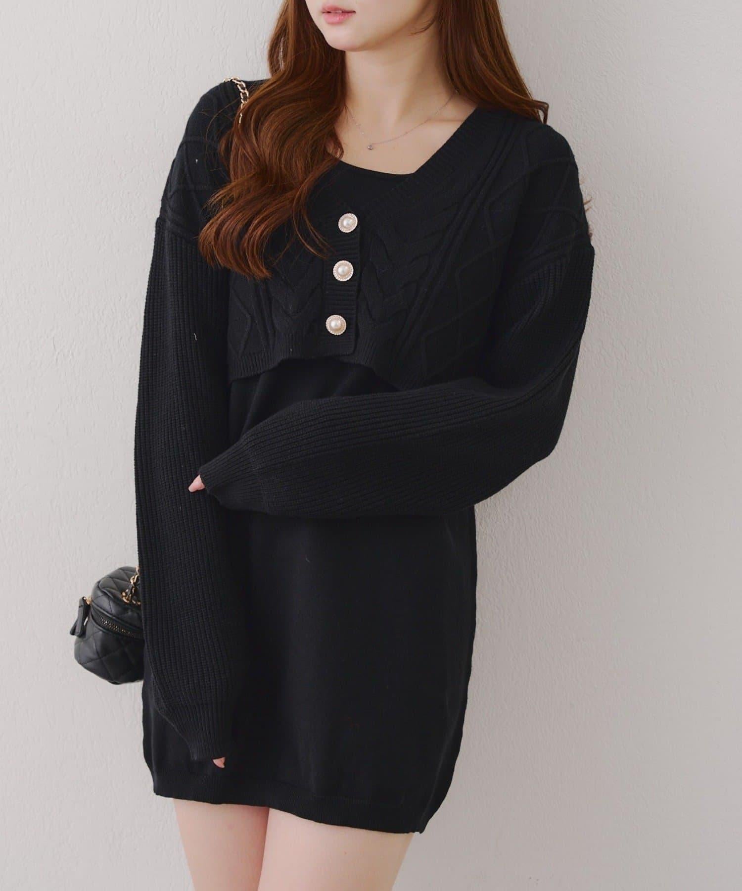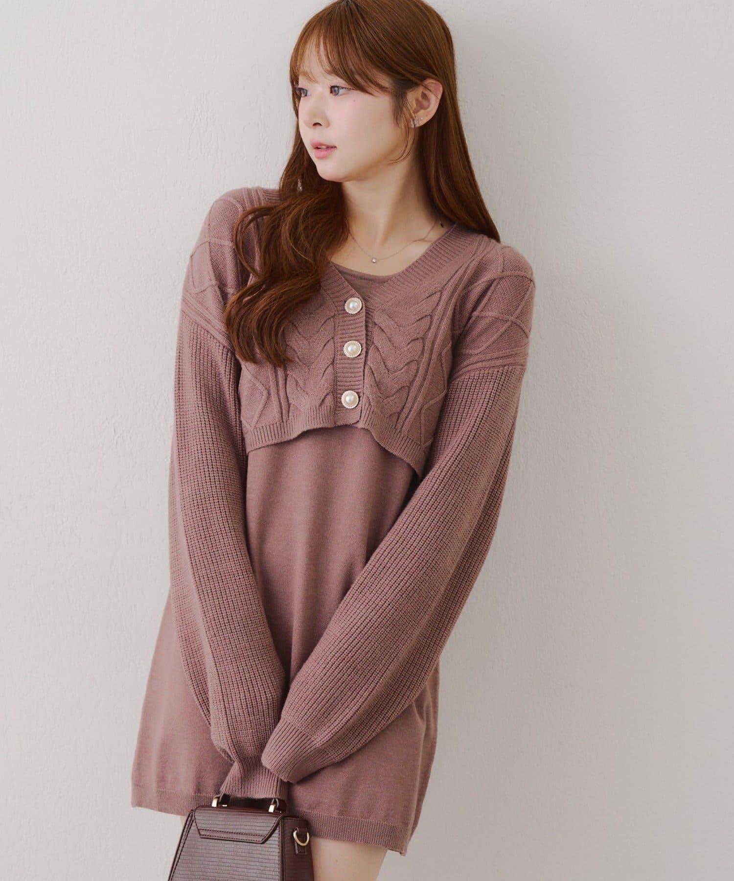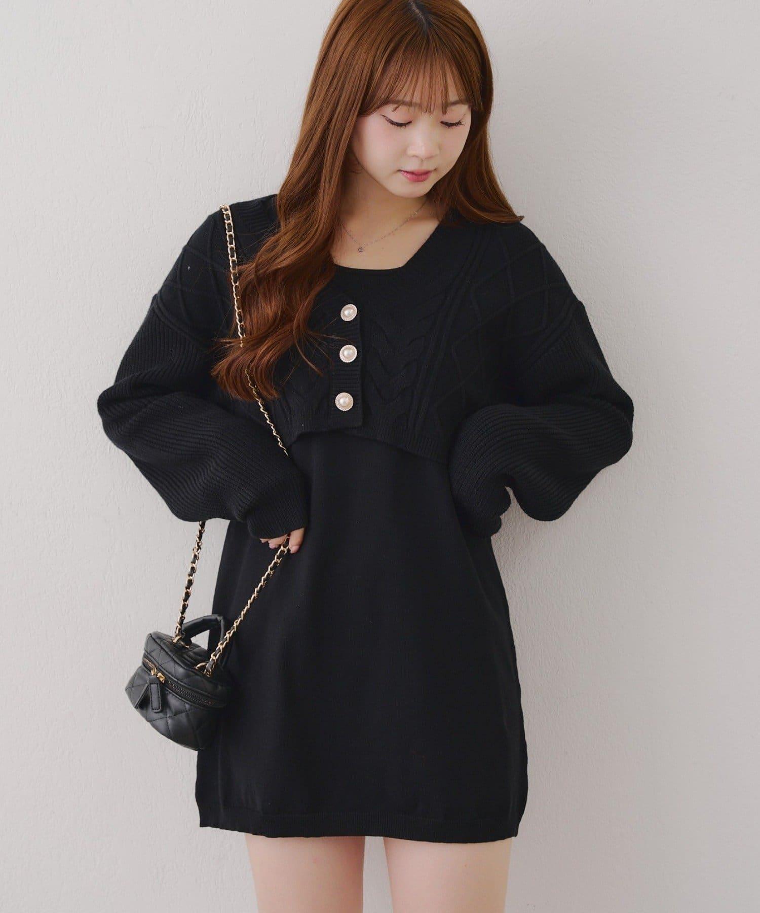 2套裝♪【RMAF】珍珠紐扣開衫+針織連衣裙