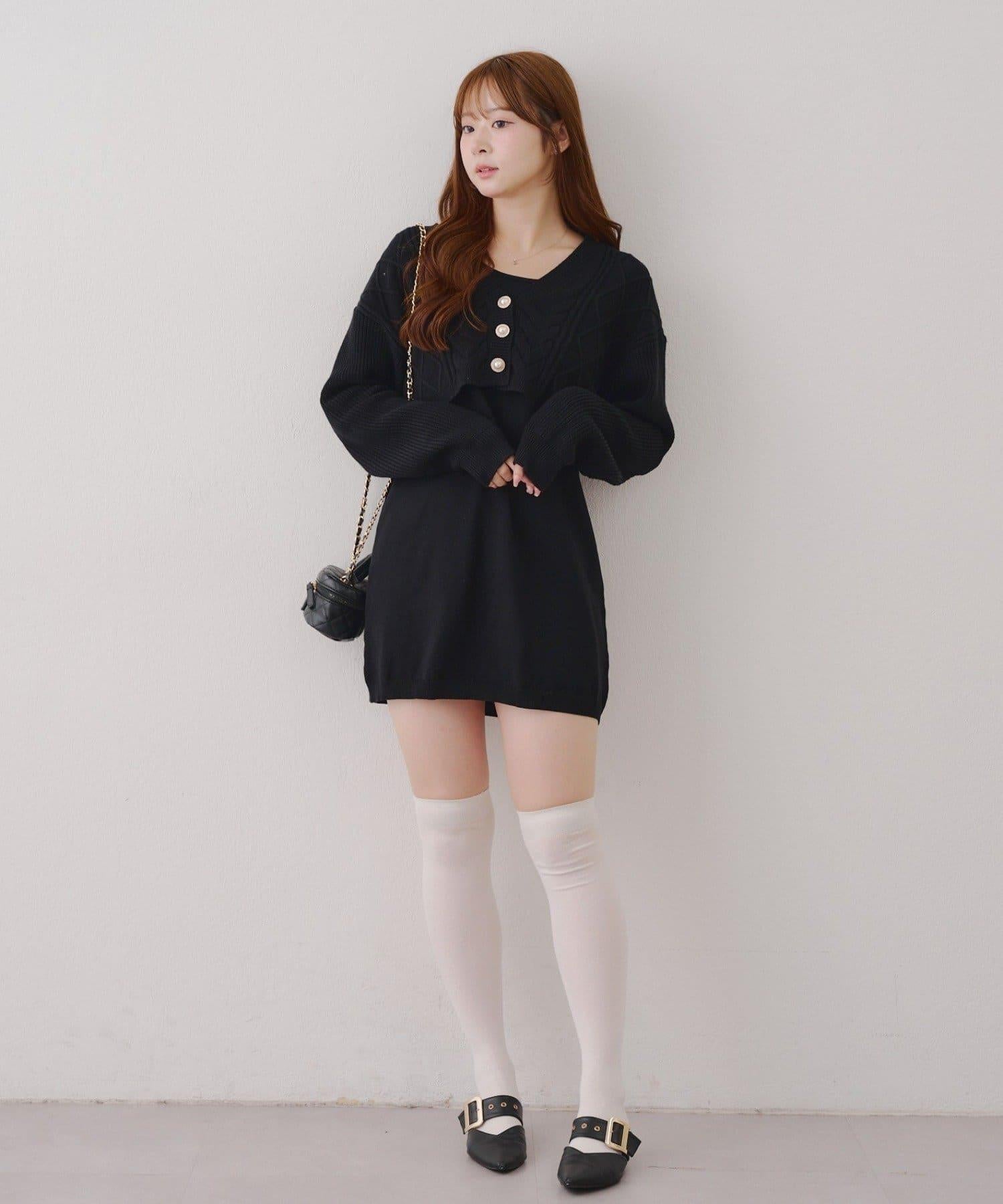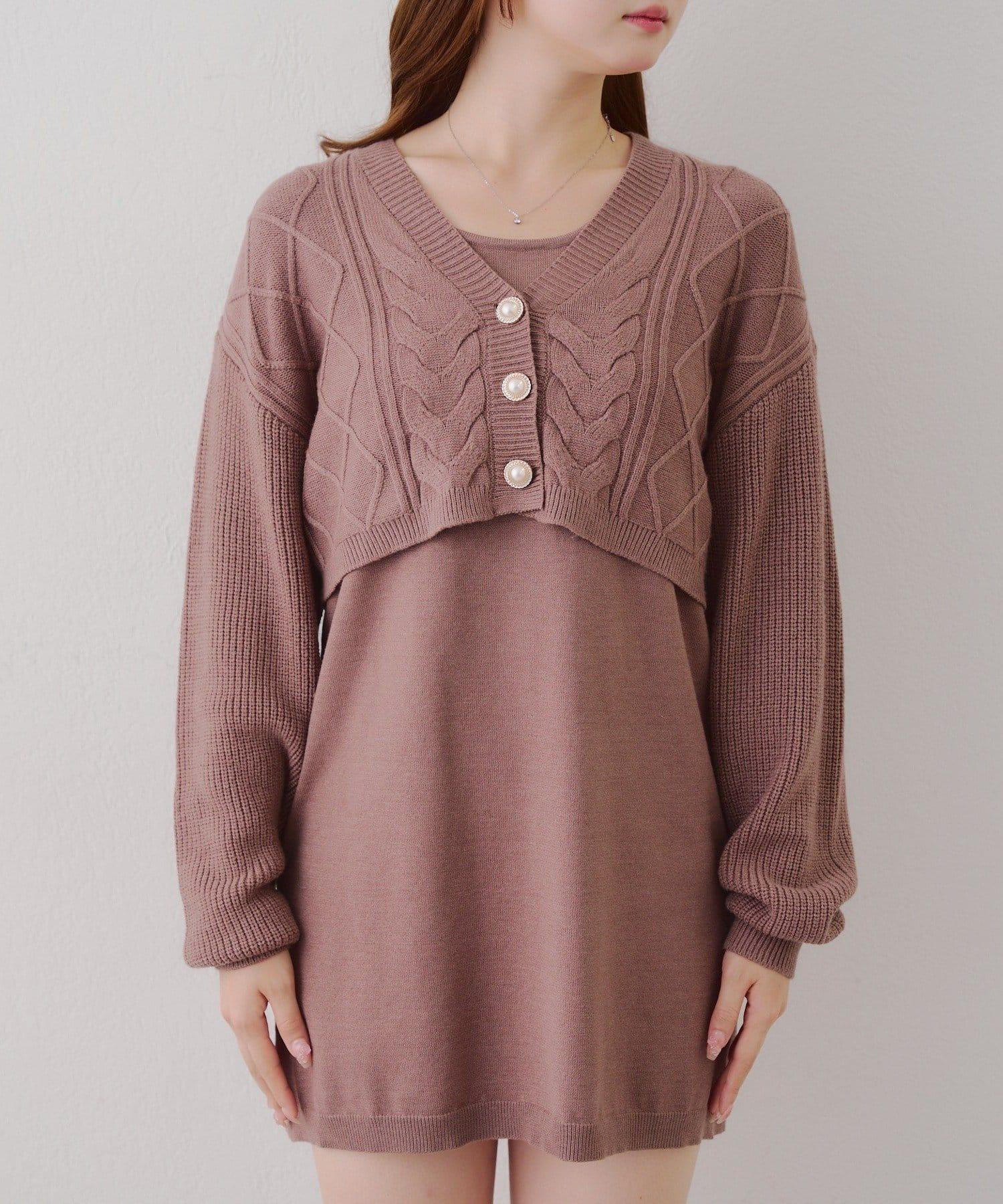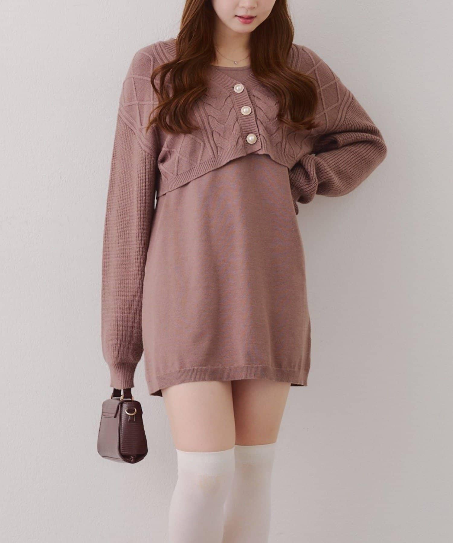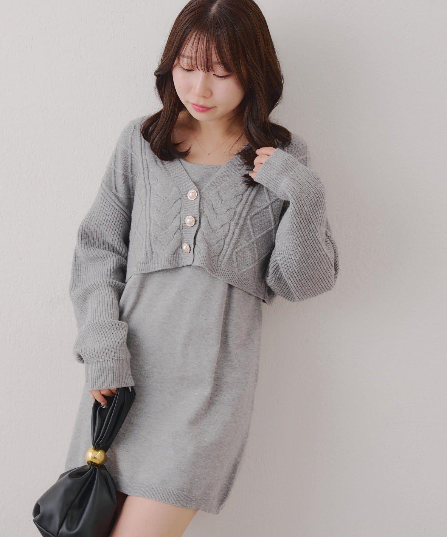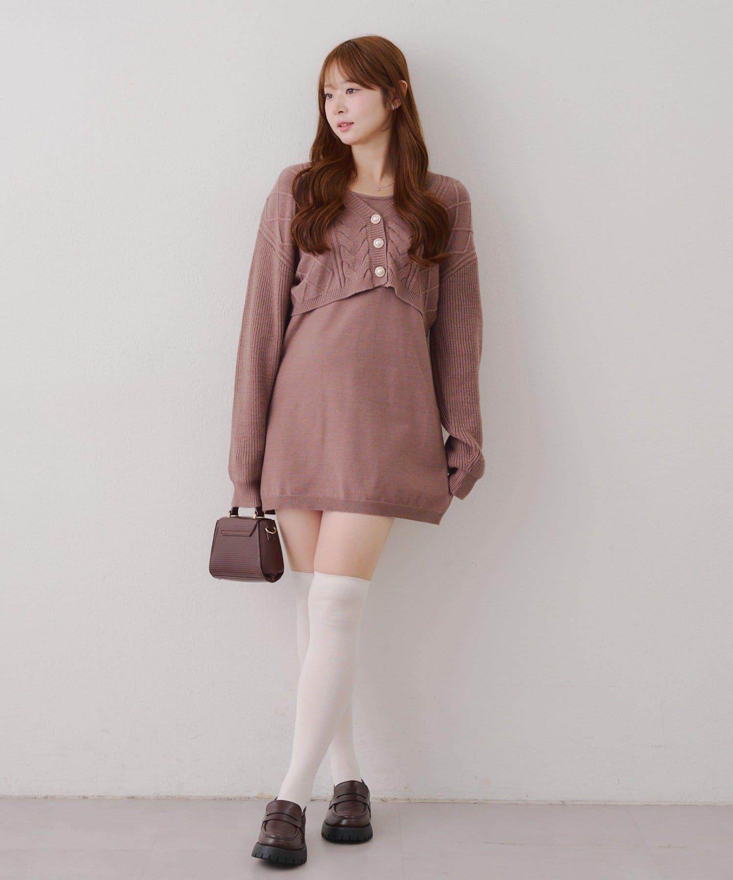 2套裝♪【RMAF】珍珠紐扣開衫+針織連衣裙