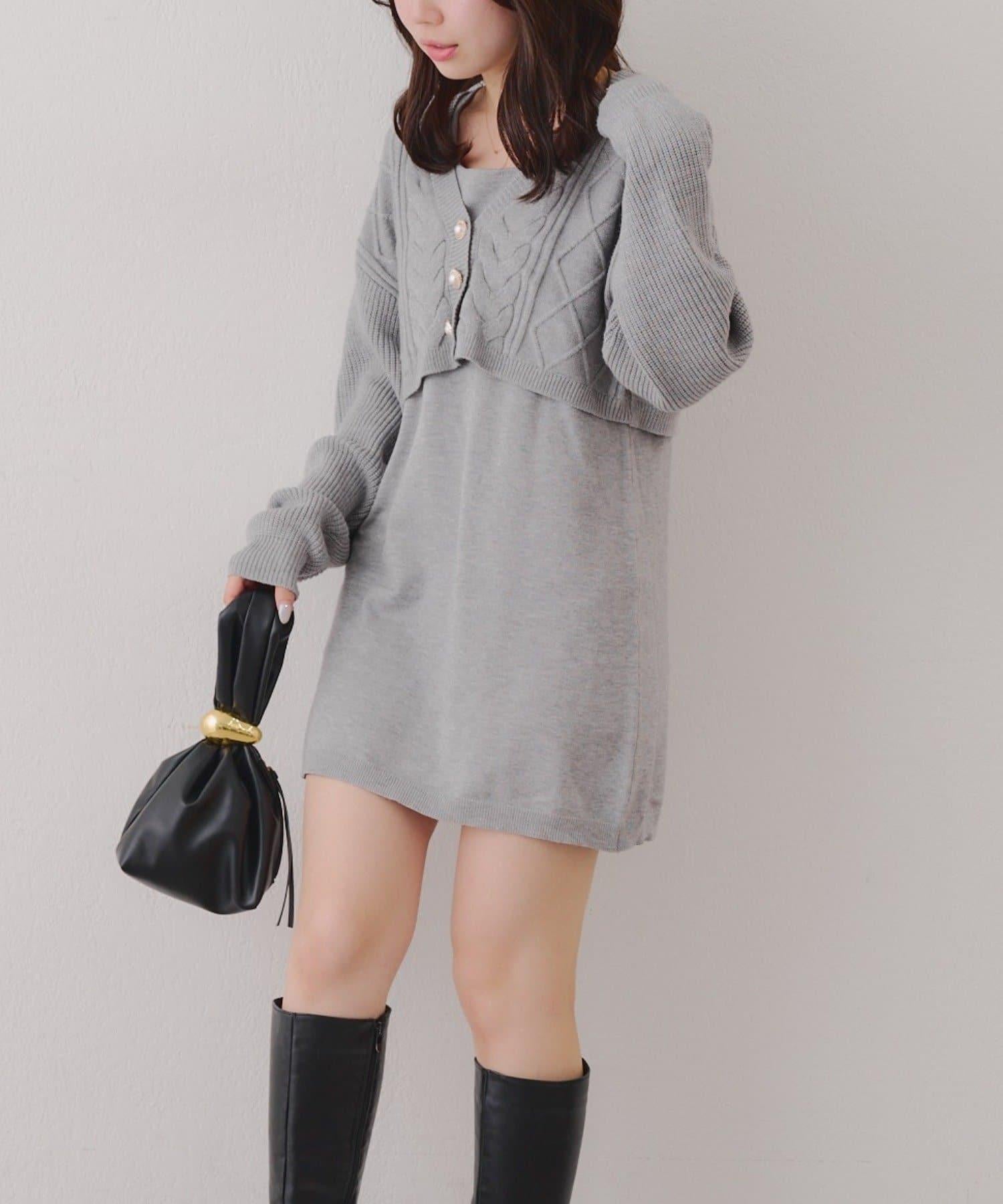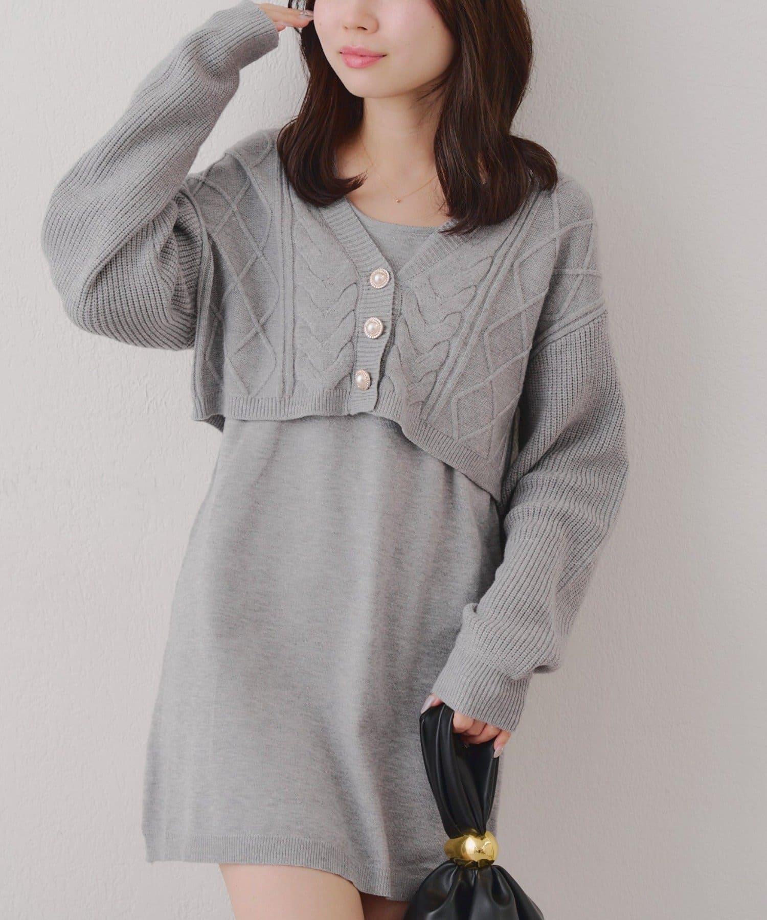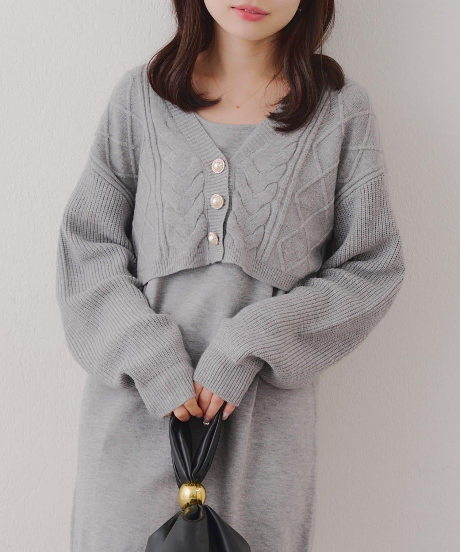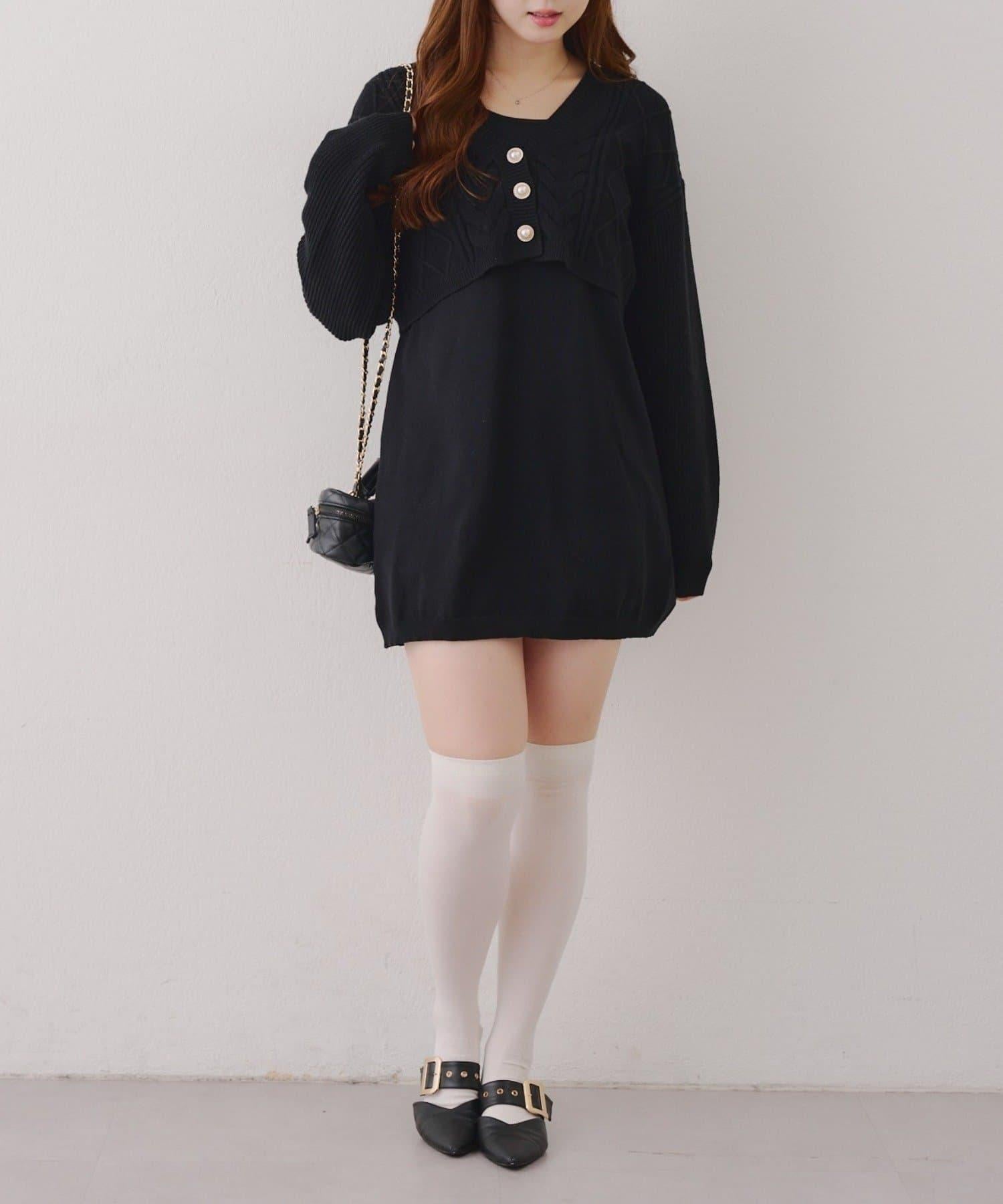 2套裝♪【RMAF】珍珠紐扣開衫+針織連衣裙