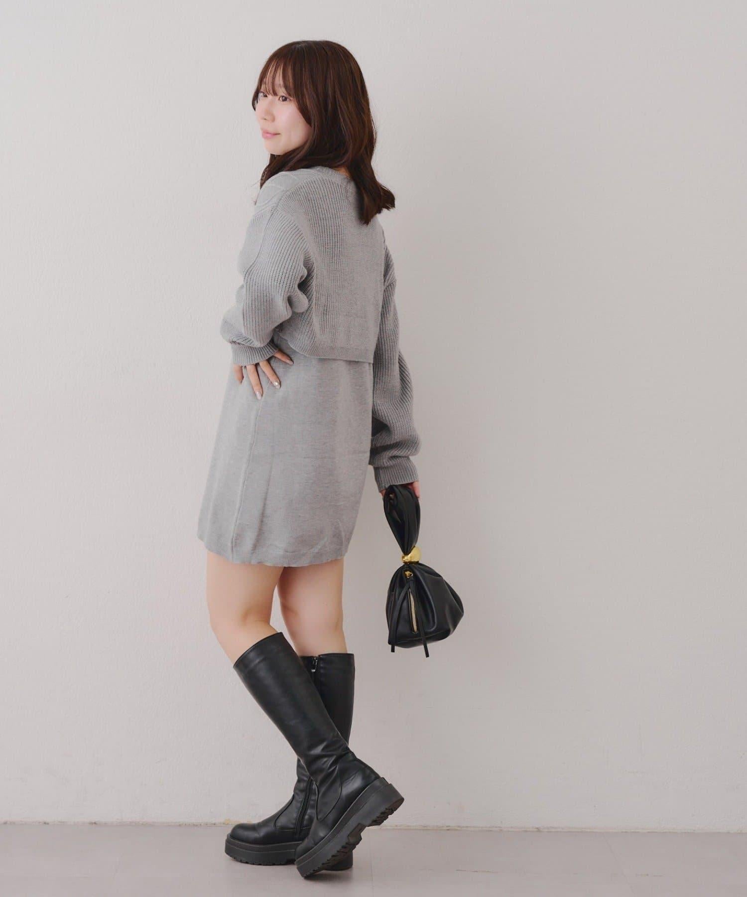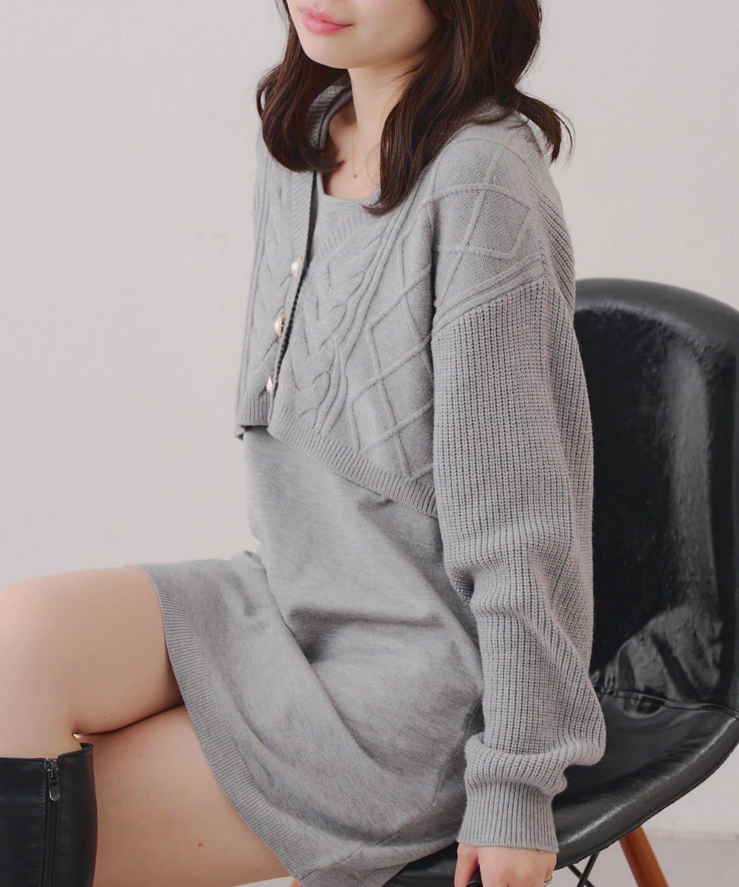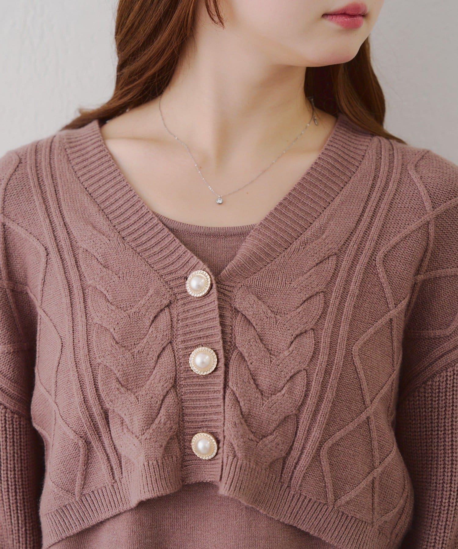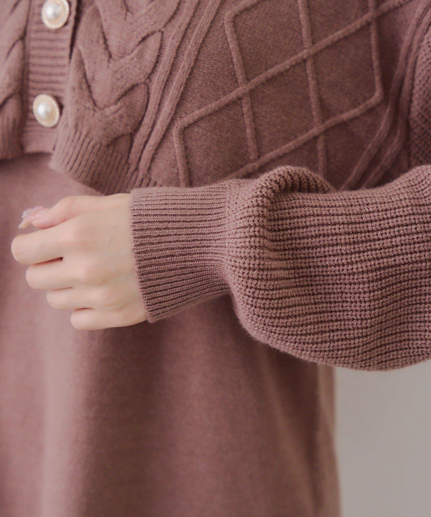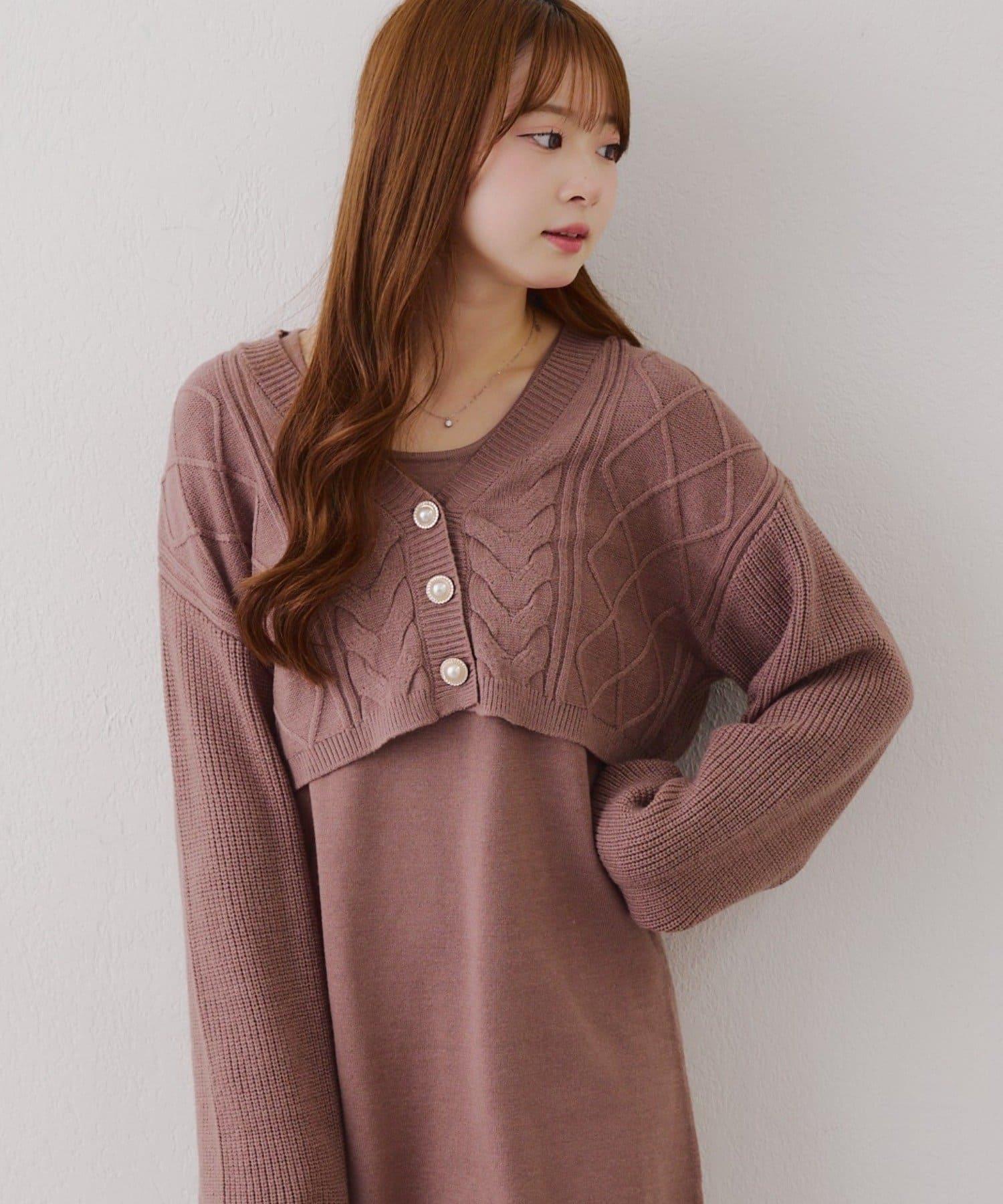 2套裝♪【RMAF】珍珠紐扣開衫+針織連衣裙