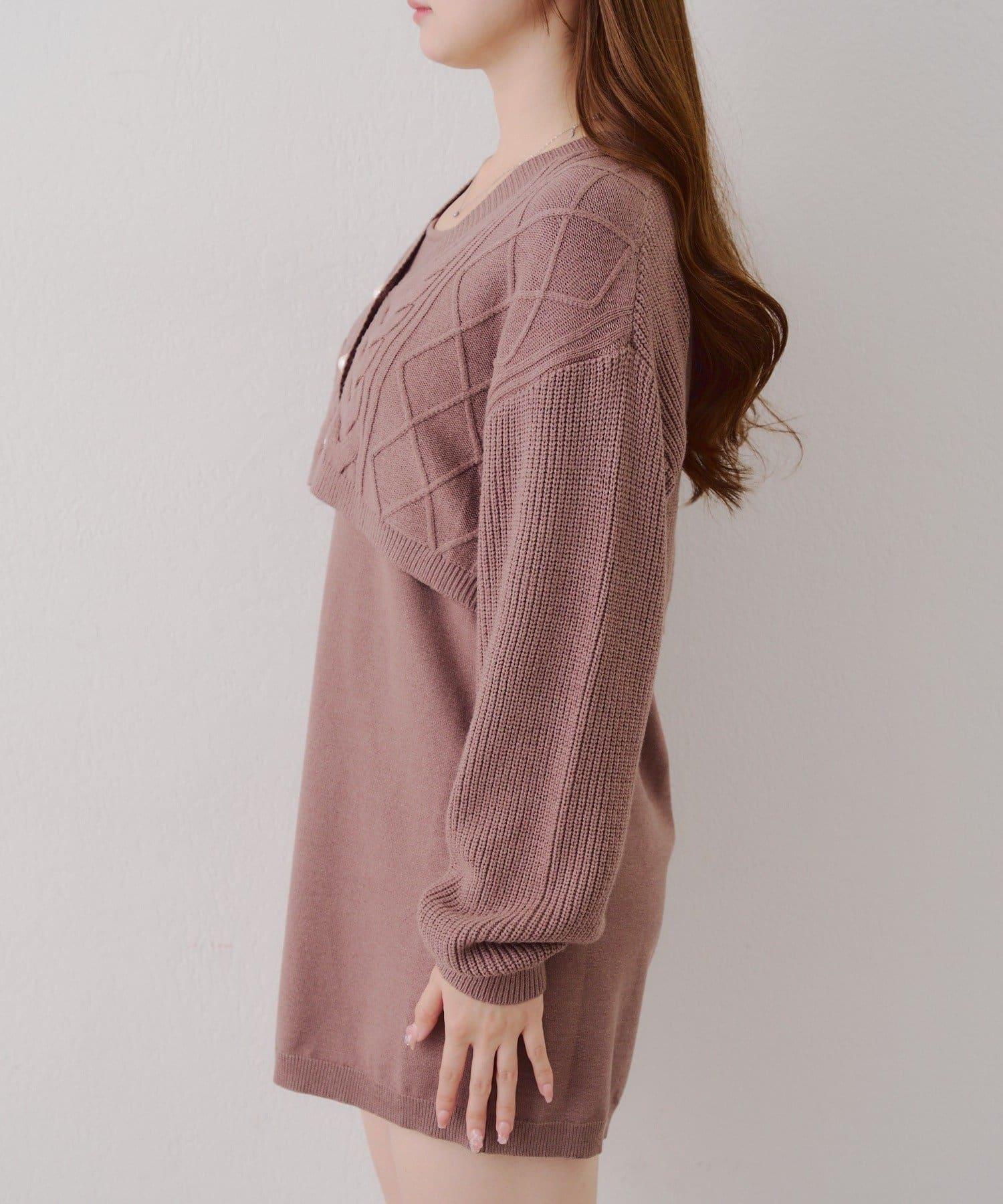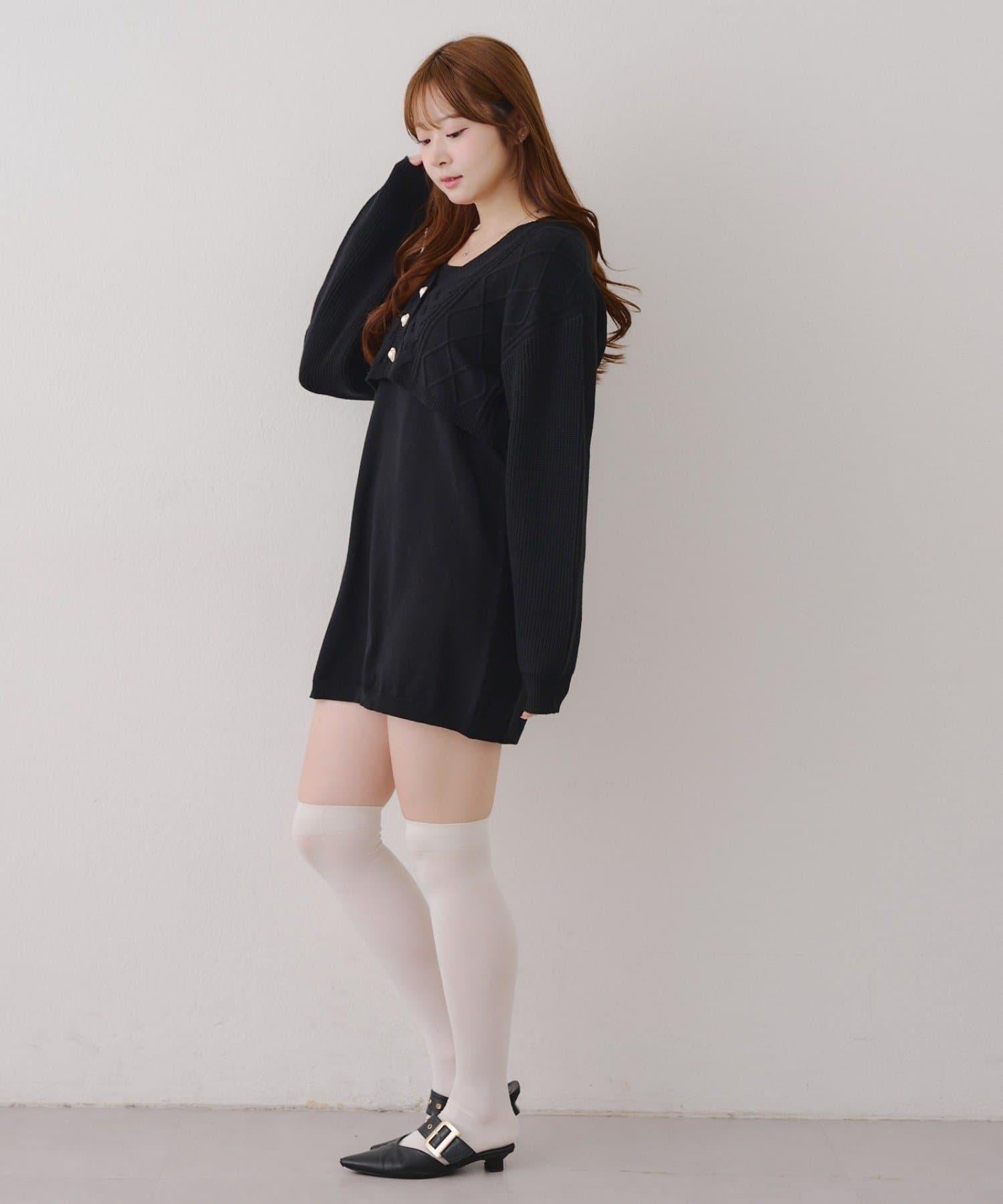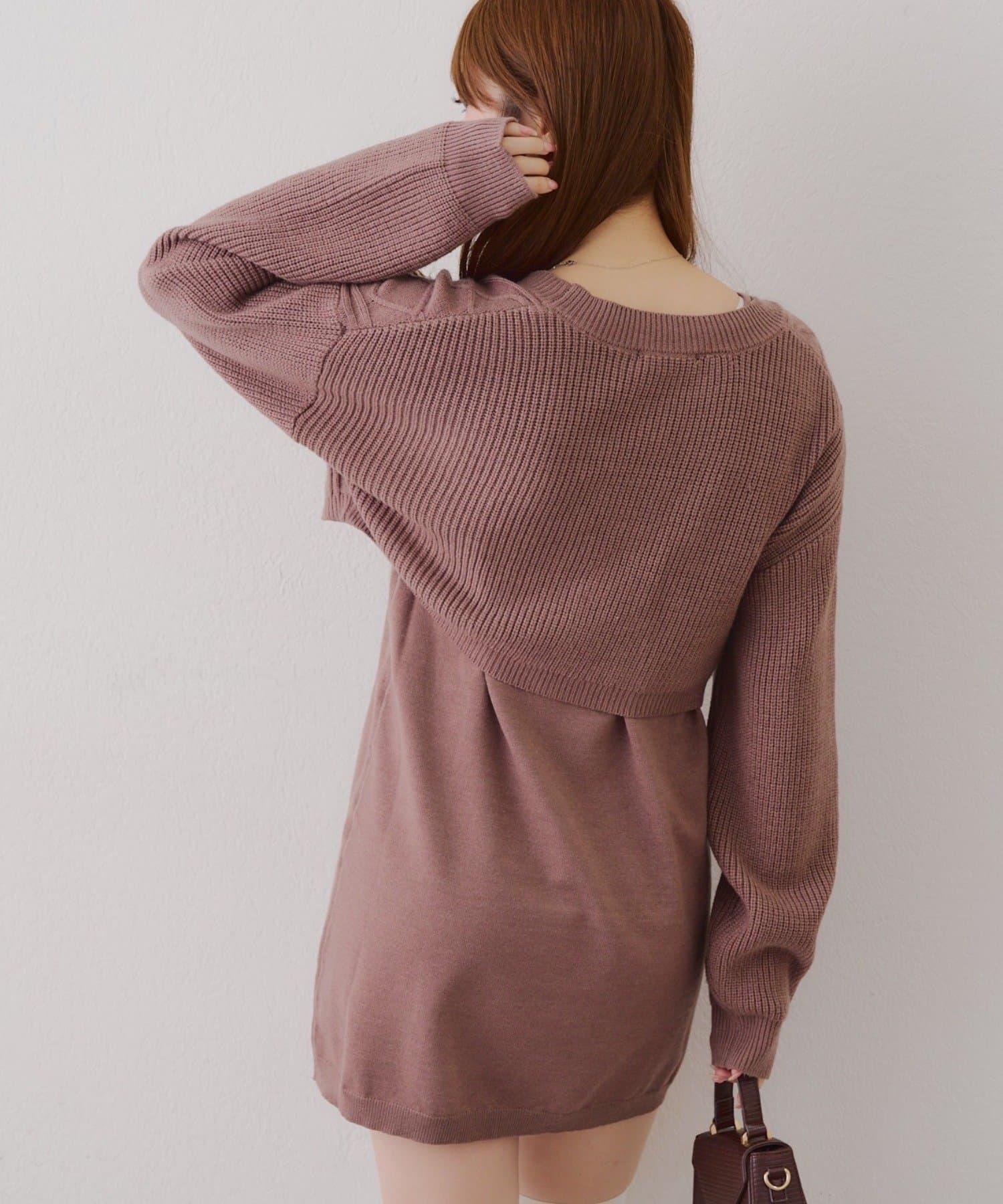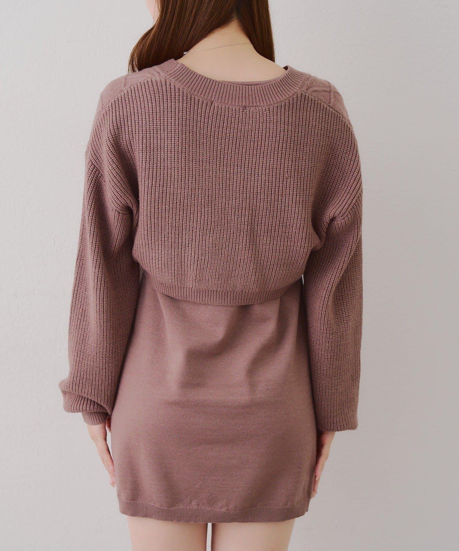 2套裝♪【RMAF】珍珠紐扣開衫+針織連衣裙