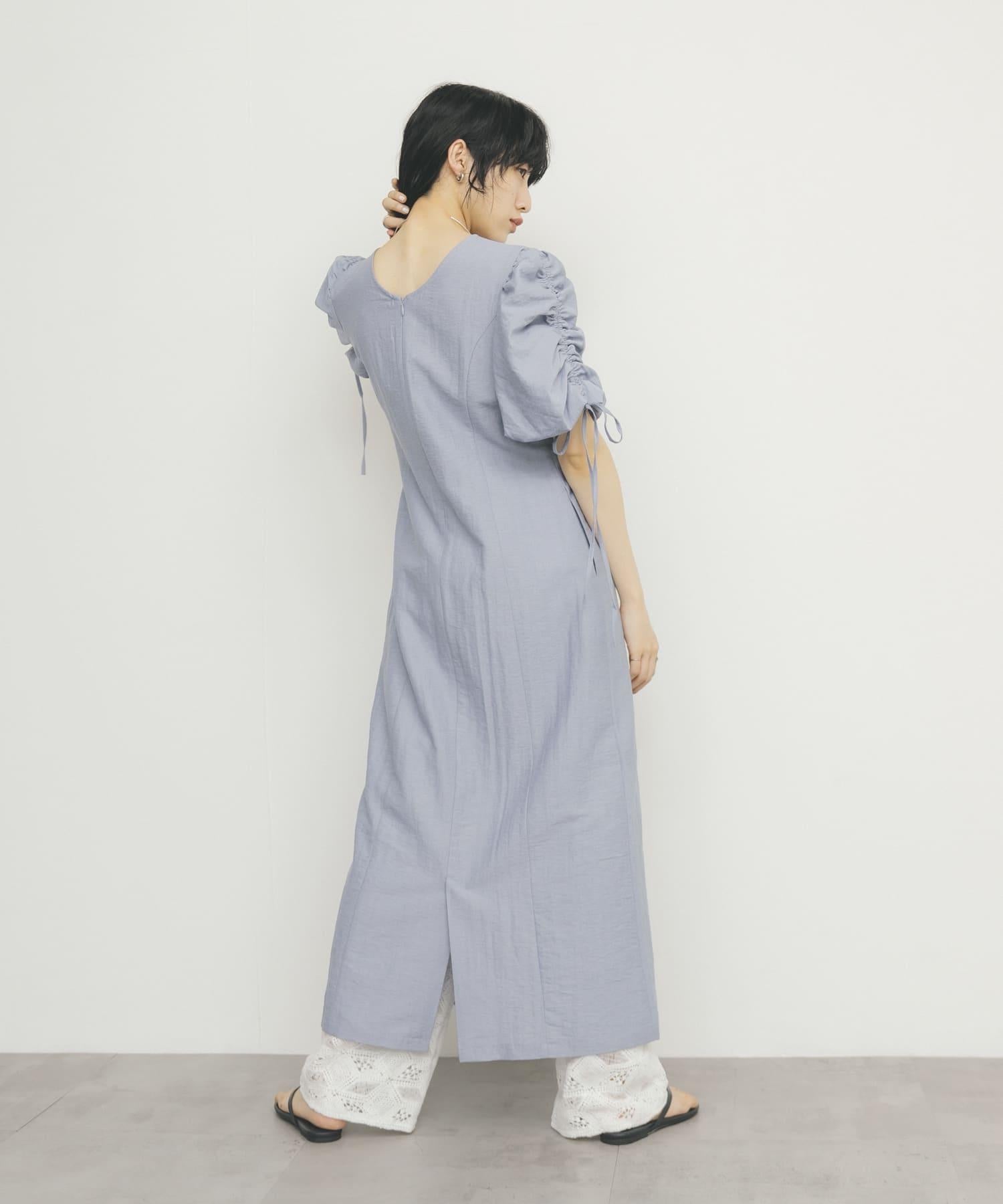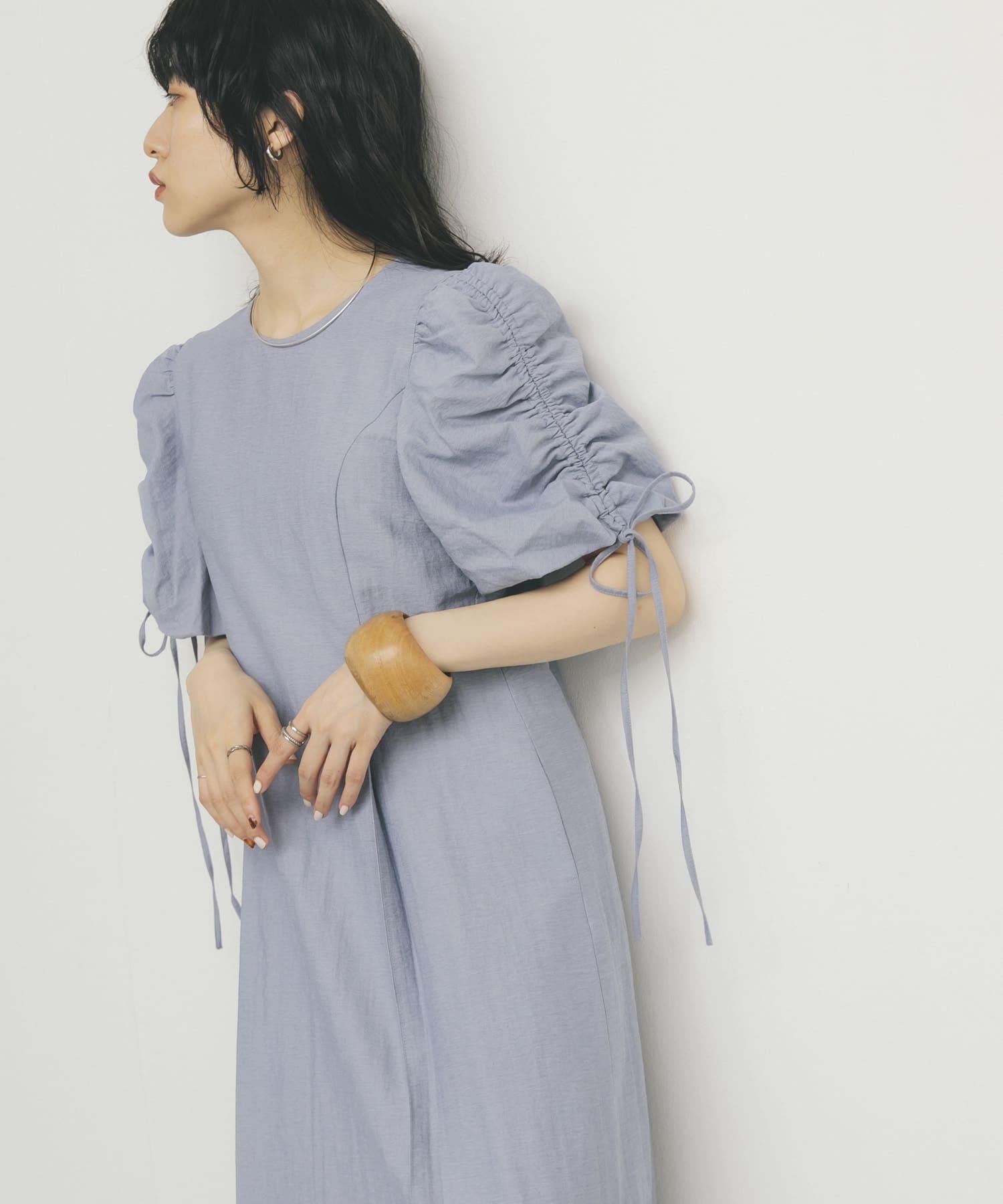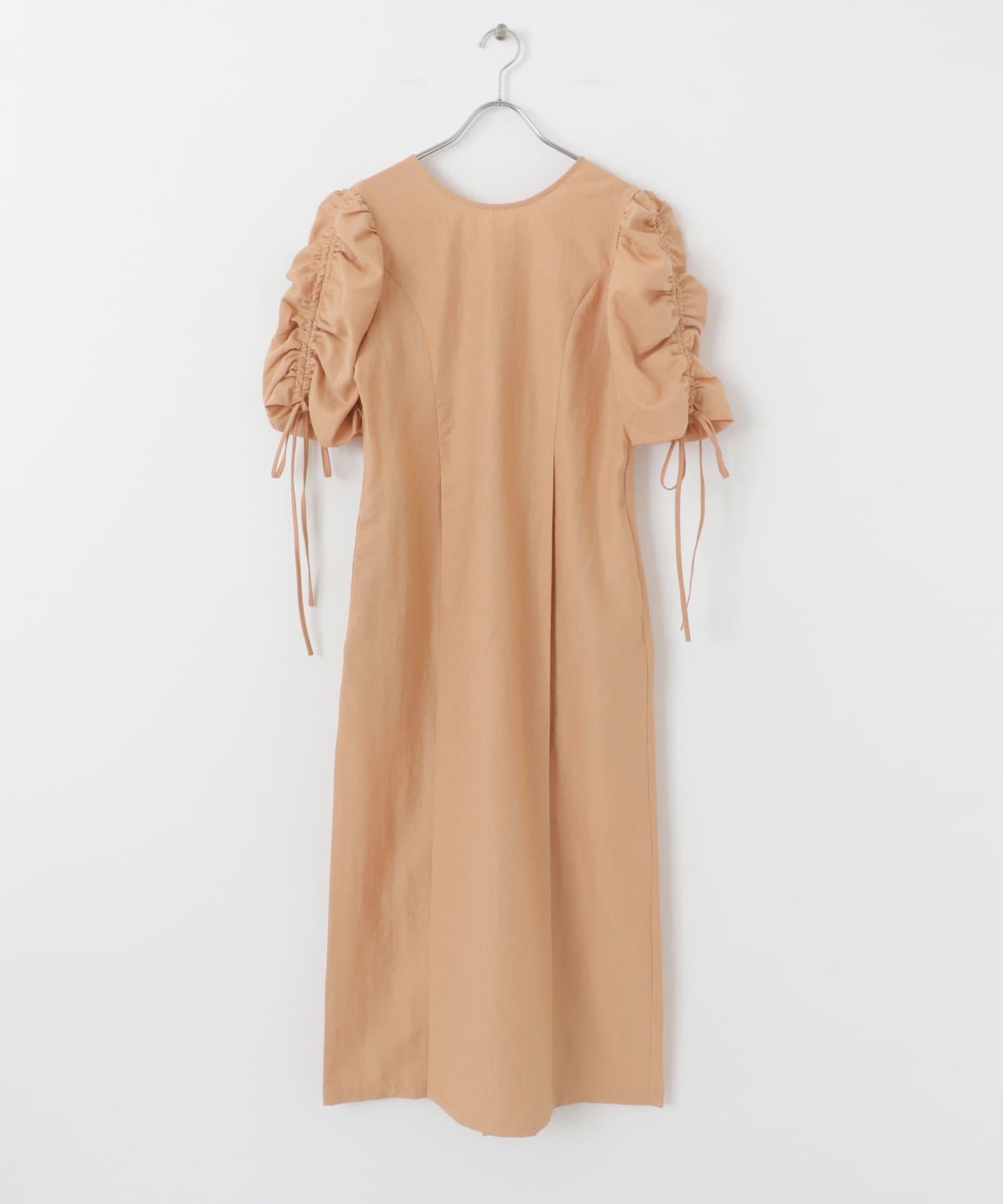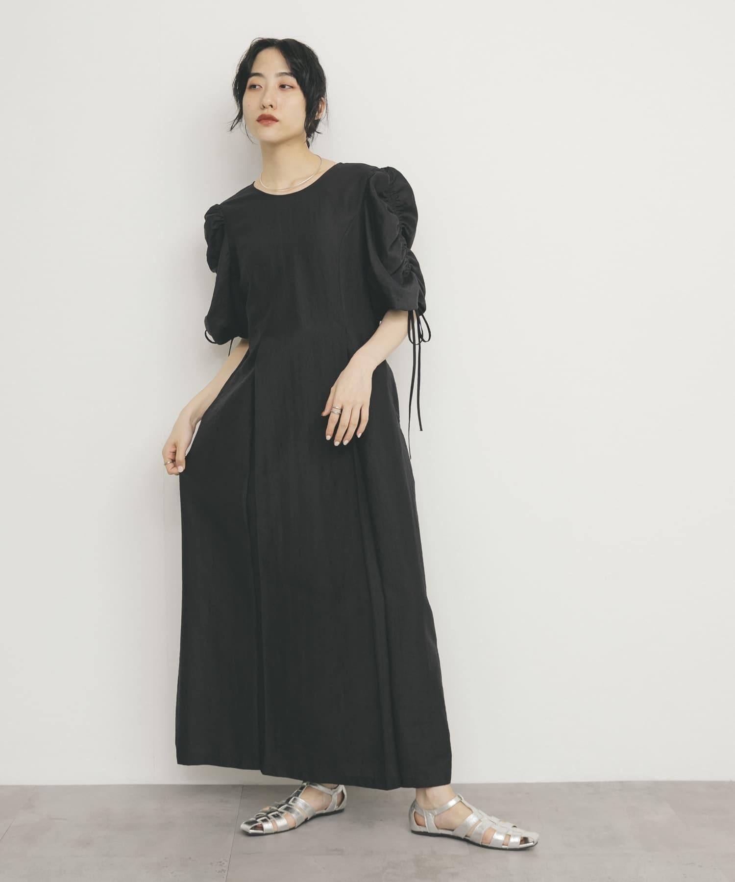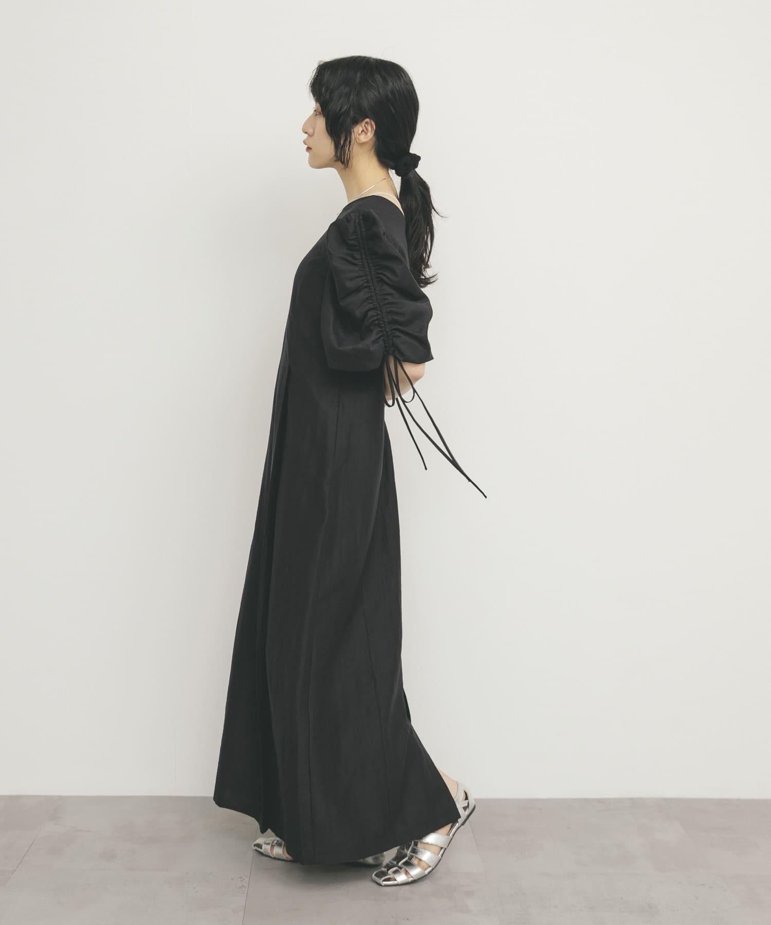 這款連衣裙採用表面略帶紋理的面料製成。腰部採用微微塑形的過渡設計,內收的設計帶來立體效果。袖子採用抽繩設計,可調節袖子的大小,還可根據身高選擇兩種尺寸,這也是這款連衣裙的一大亮點。