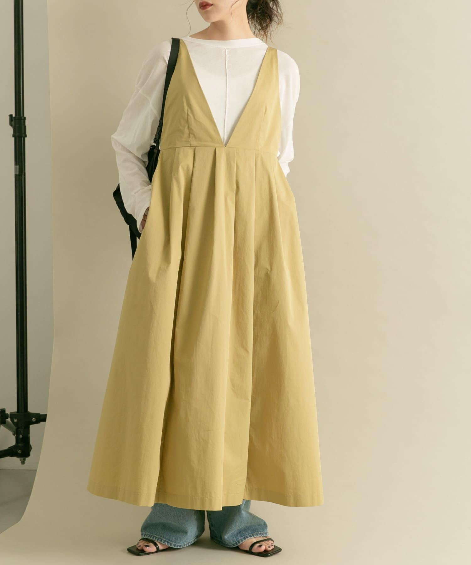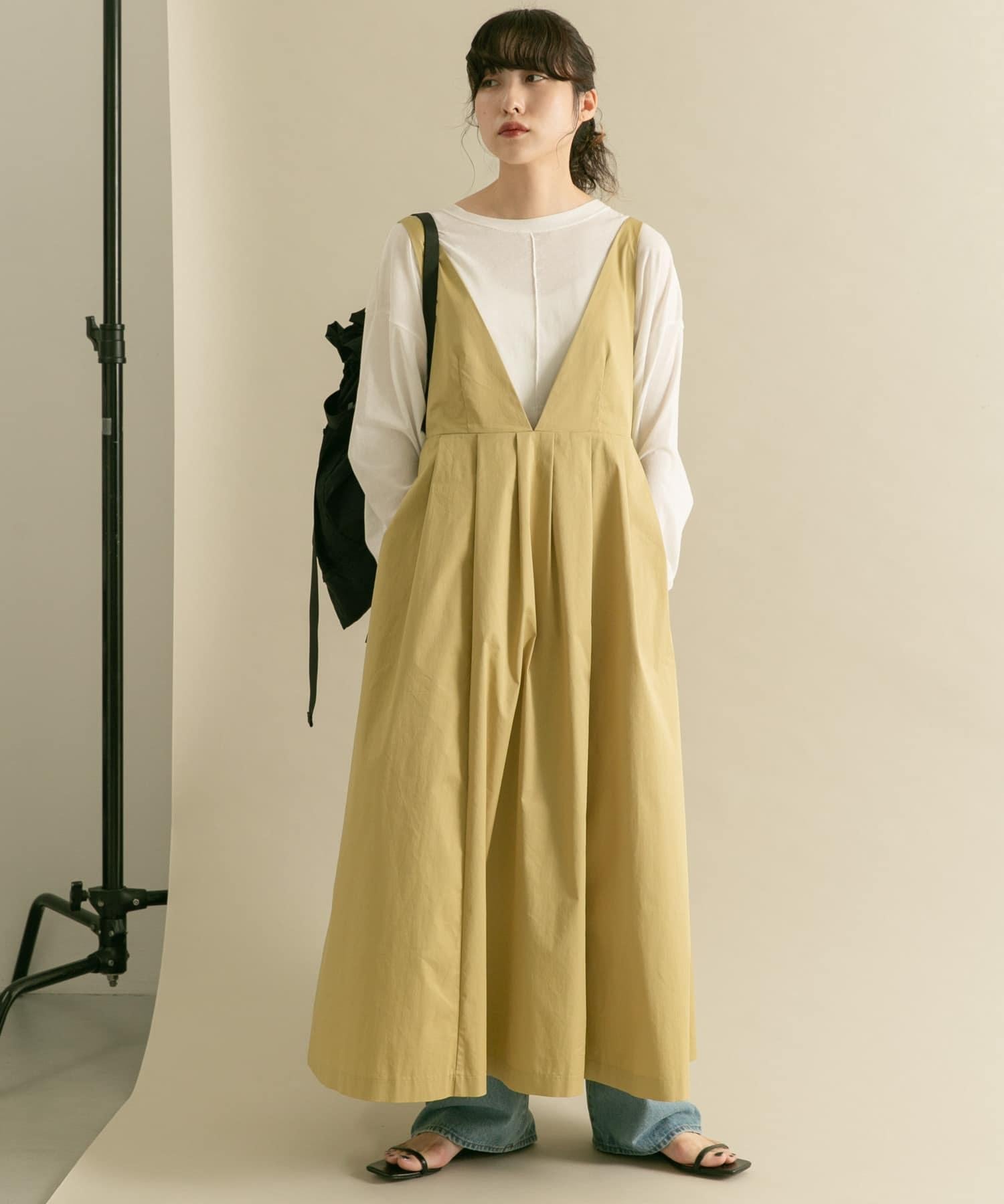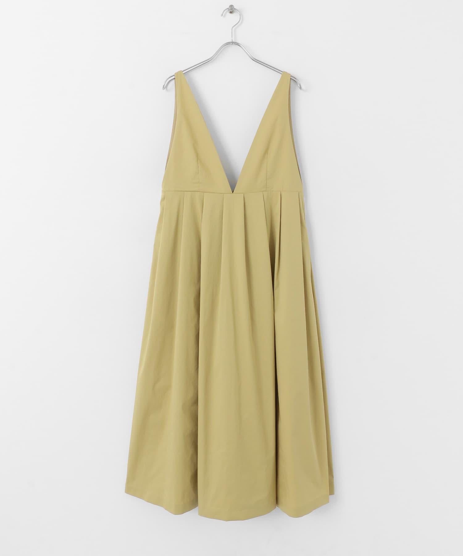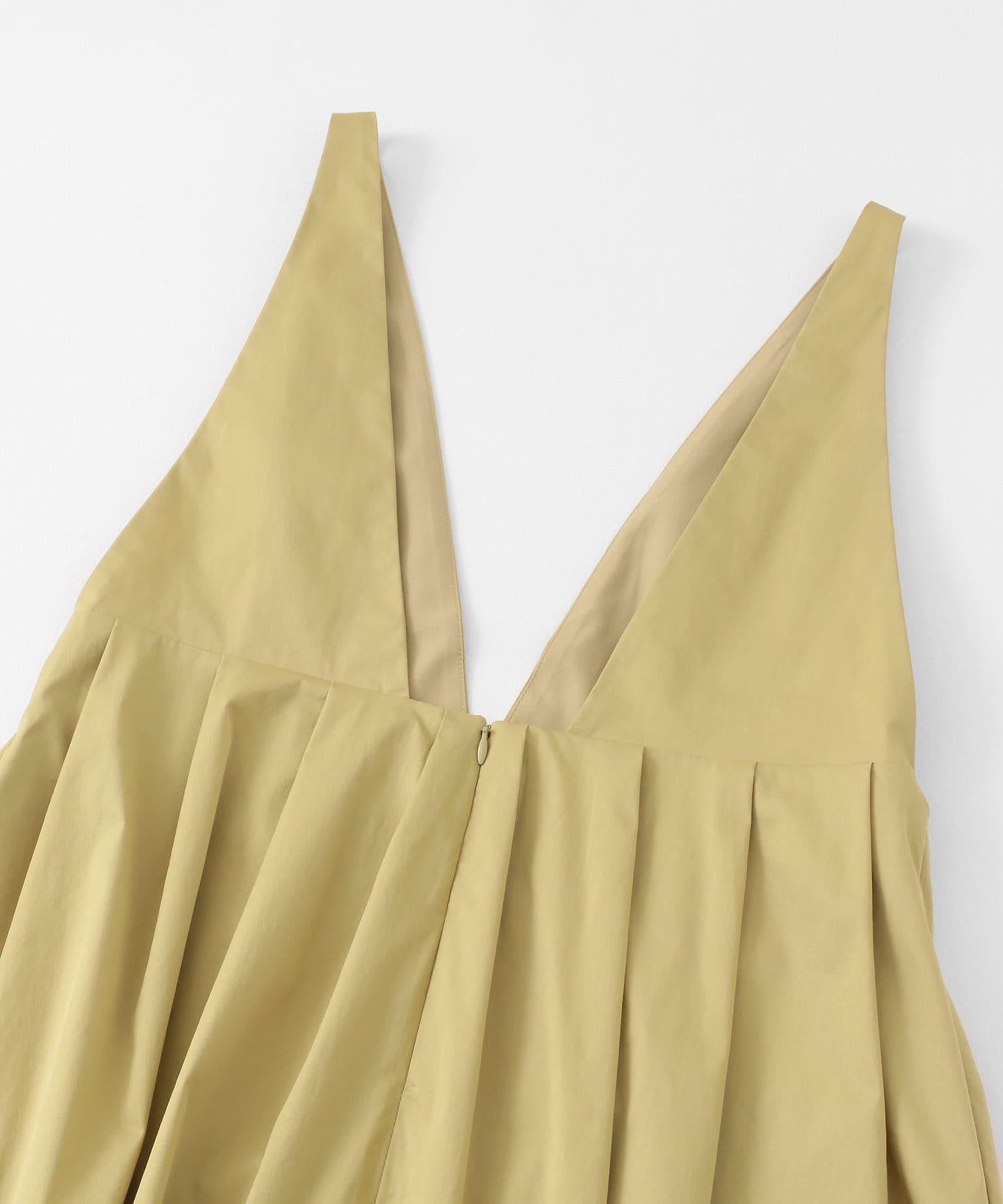 廓形優美的連身裙,前幅深 V 領設計凸顯女性魅力。肩帶設置為修身款式,裙襬部分採用聚攏設計,營造出豐盈飽滿的效果。大開襟的後背款式自然營造出輕鬆的感覺。兩種不同高度的尺寸也是一大亮點。