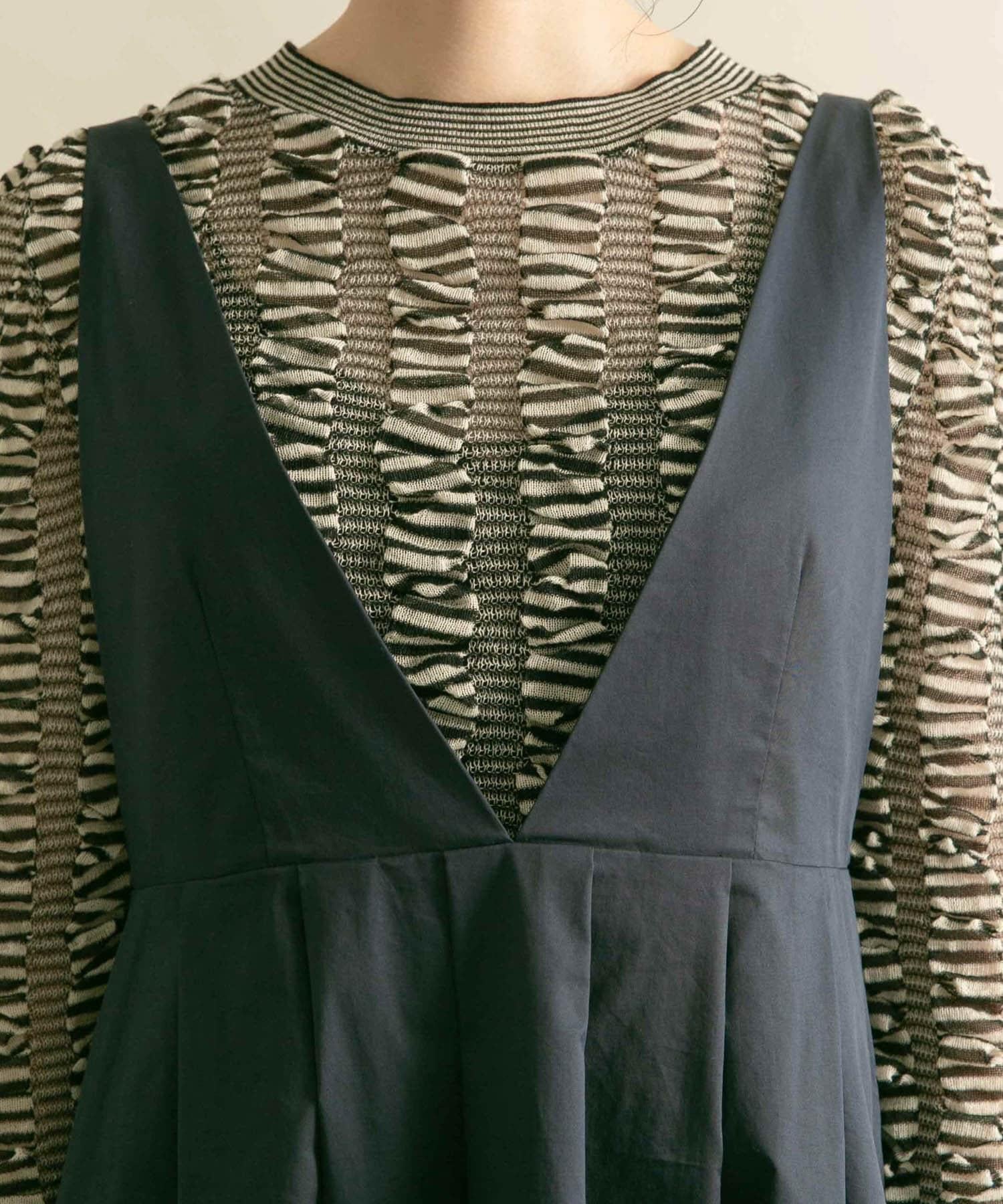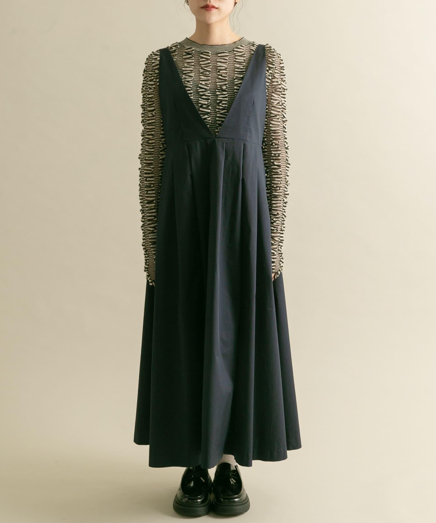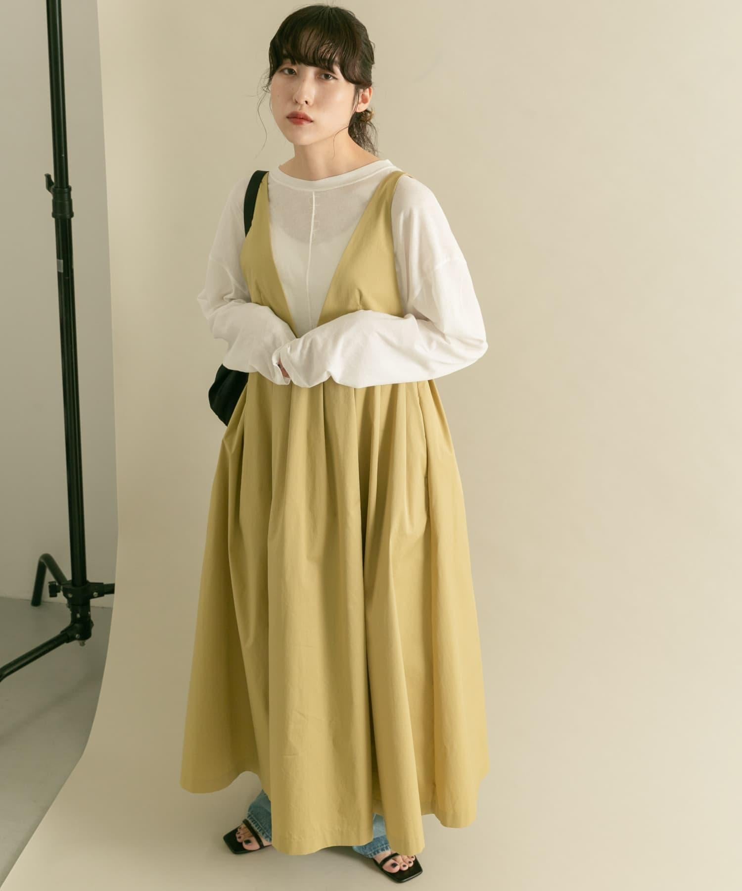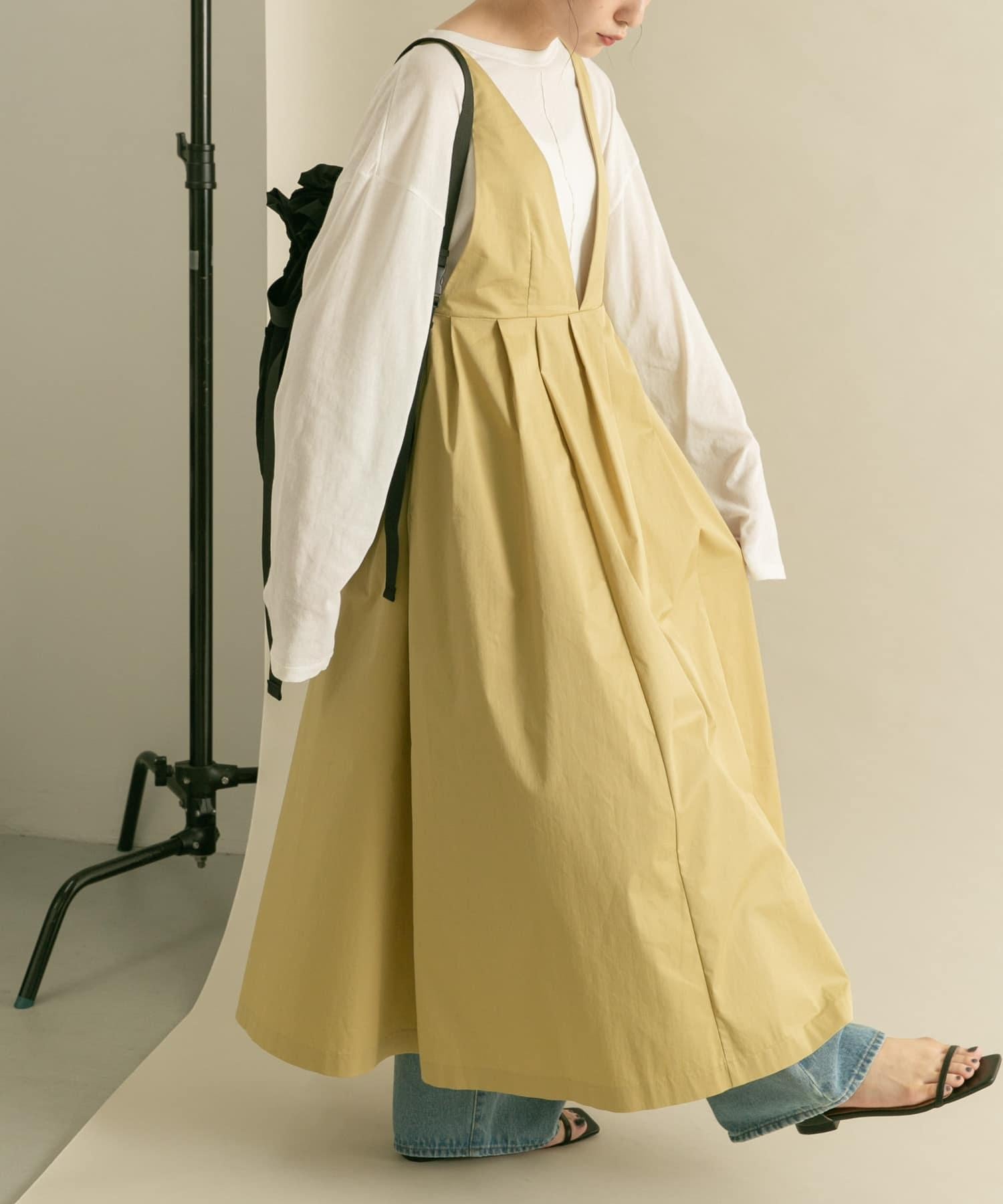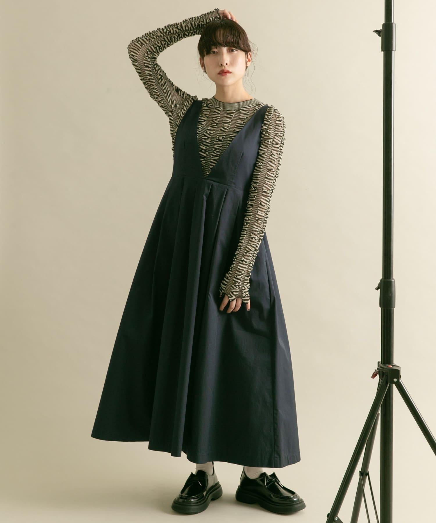 廓形優美的連身裙,前幅深 V 領設計凸顯女性魅力。肩帶設置為修身款式,裙襬部分採用聚攏設計,營造出豐盈飽滿的效果。大開襟的後背款式自然營造出輕鬆的感覺。兩種不同高度的尺寸也是一大亮點。
