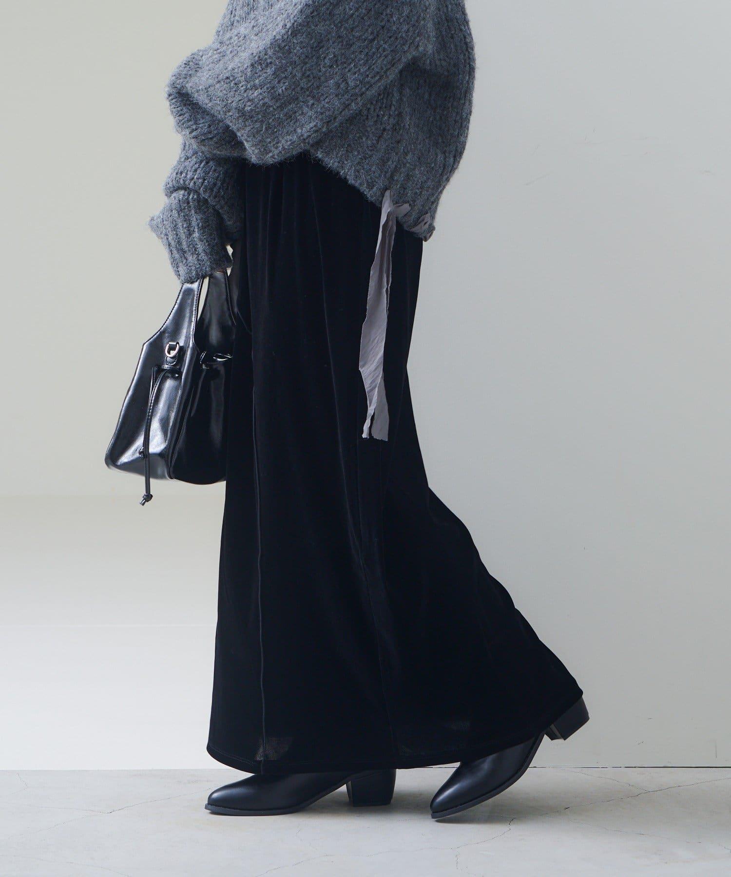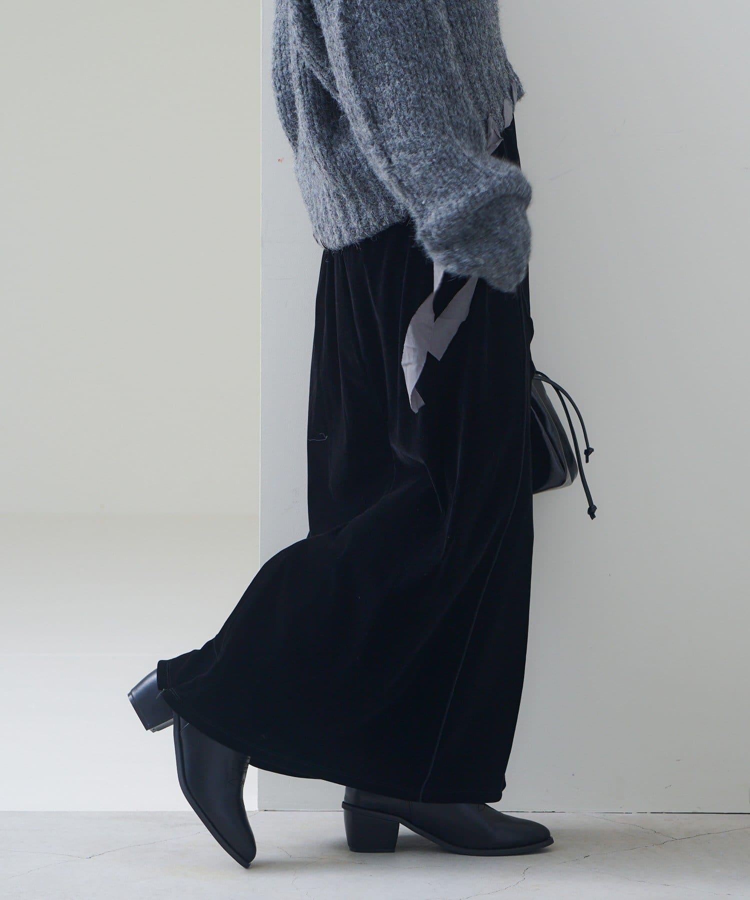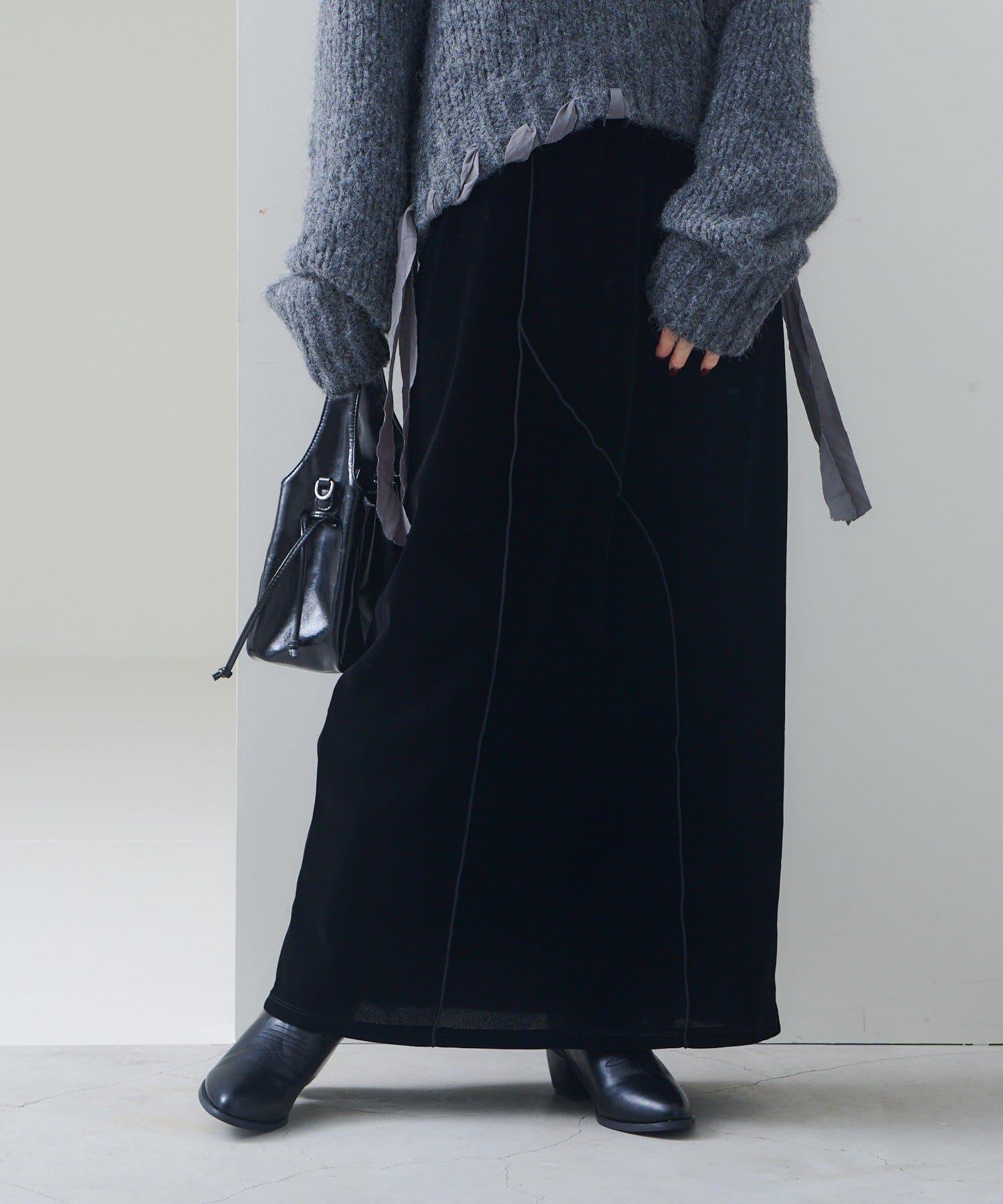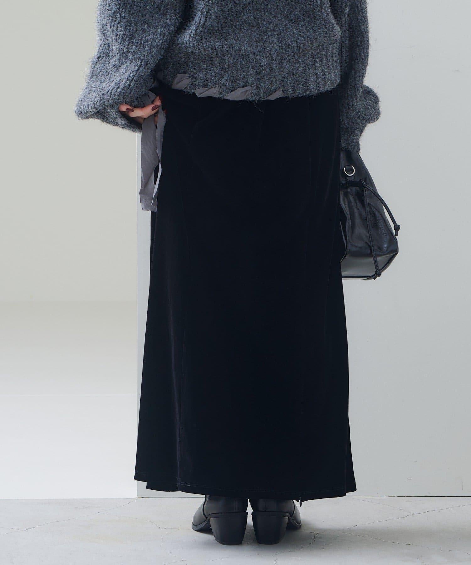 【2尺碼可選/小個子尺碼】天鵝絨荷葉邊半身裙