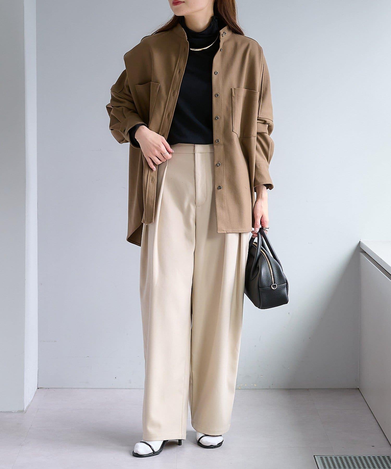 前襉設計和寬大的廓形給人一種男人味十足的印象。
