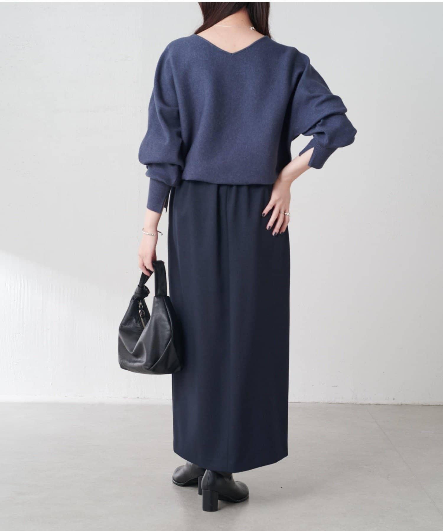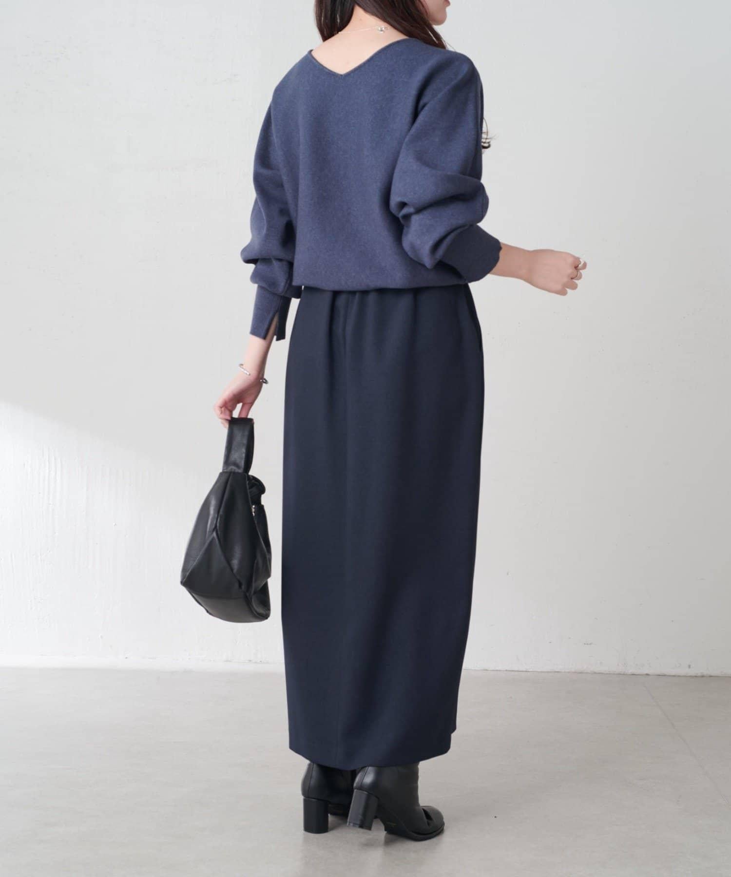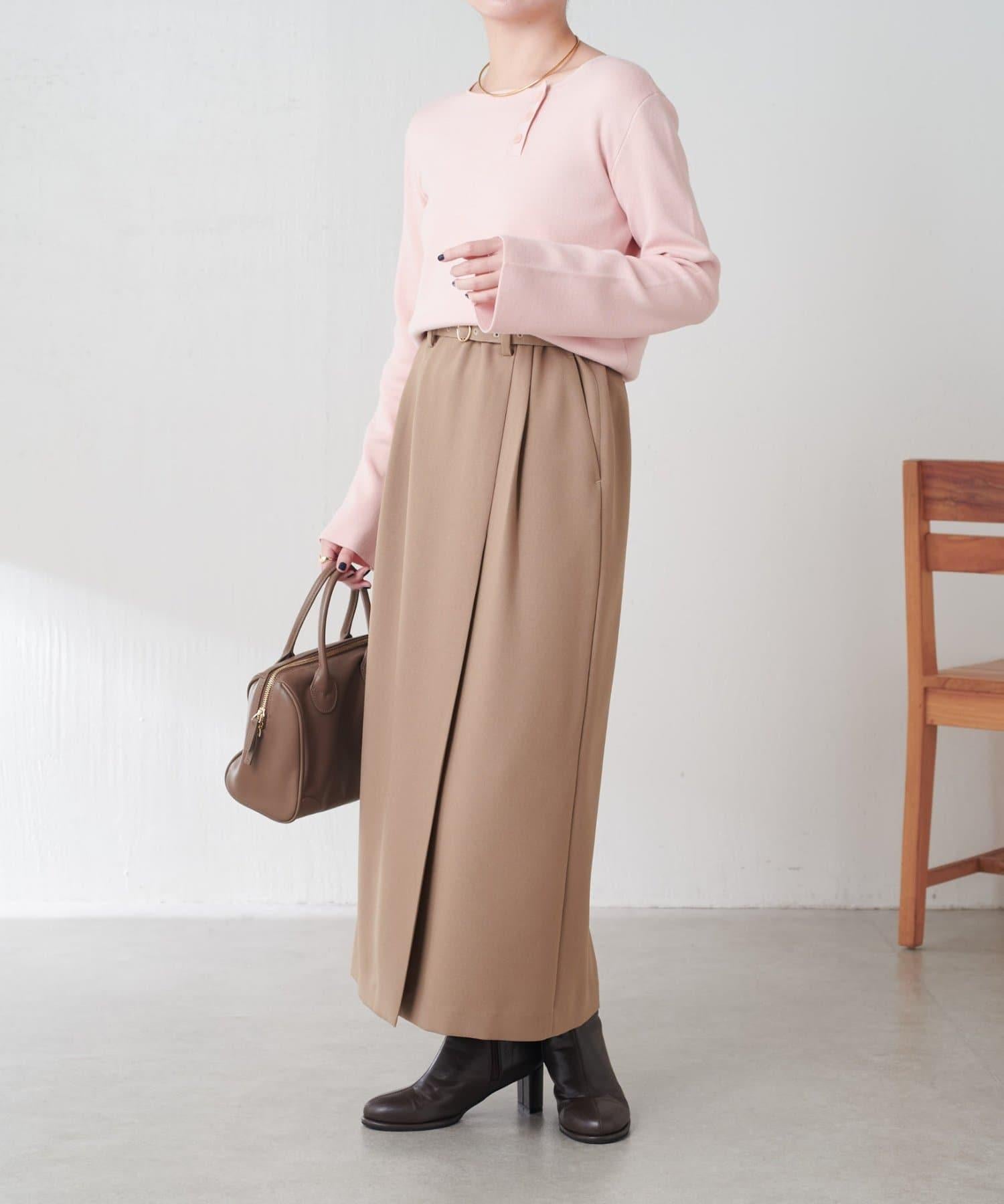 要點] 不對稱的裹身式設計不是裹身裙,而是淺開衩,可以放心穿著。