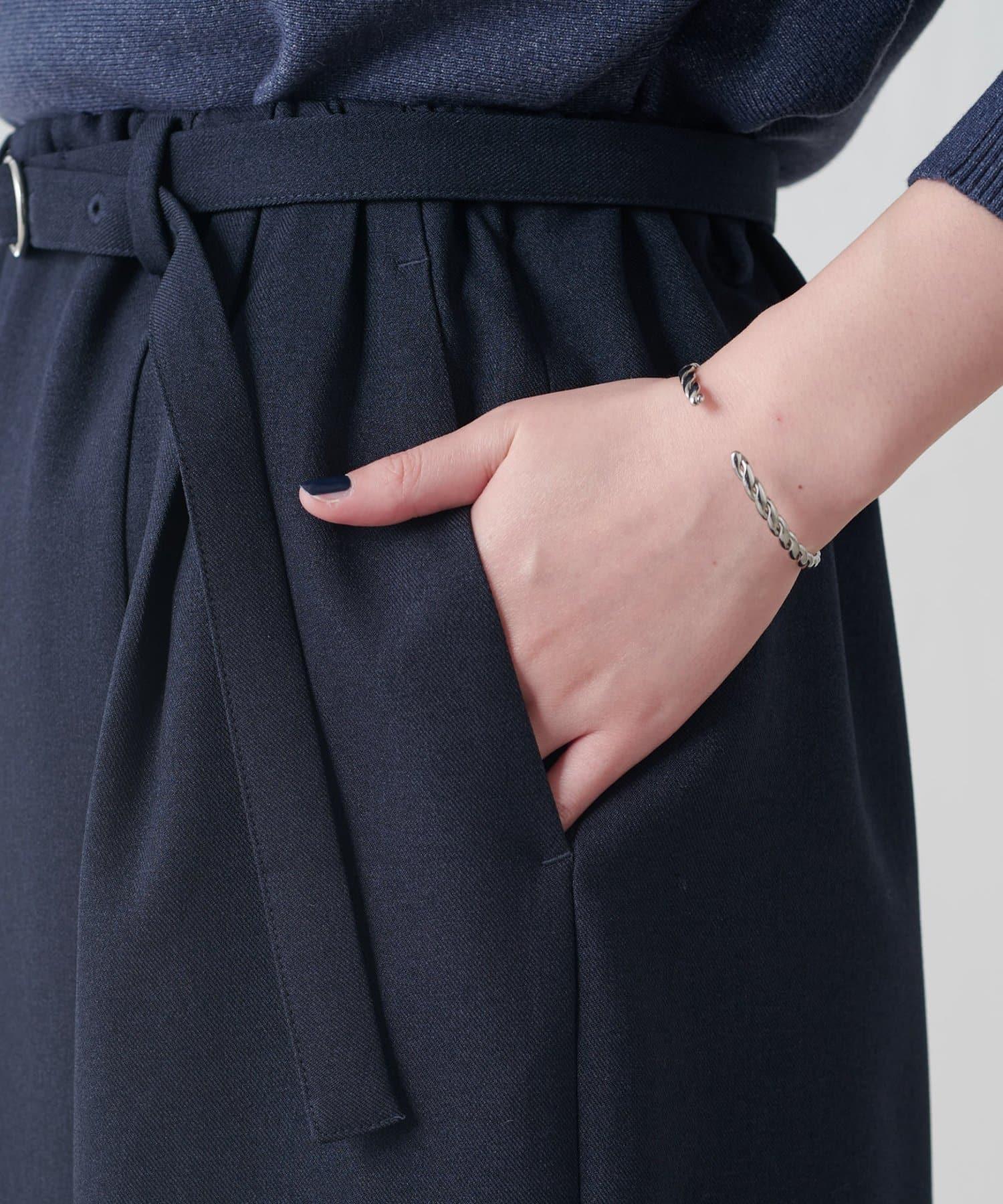 腰部的鬆緊設計為您提供了充足的空間,並附有腰帶,即使穿上上衣,也能打造出利落的造型。