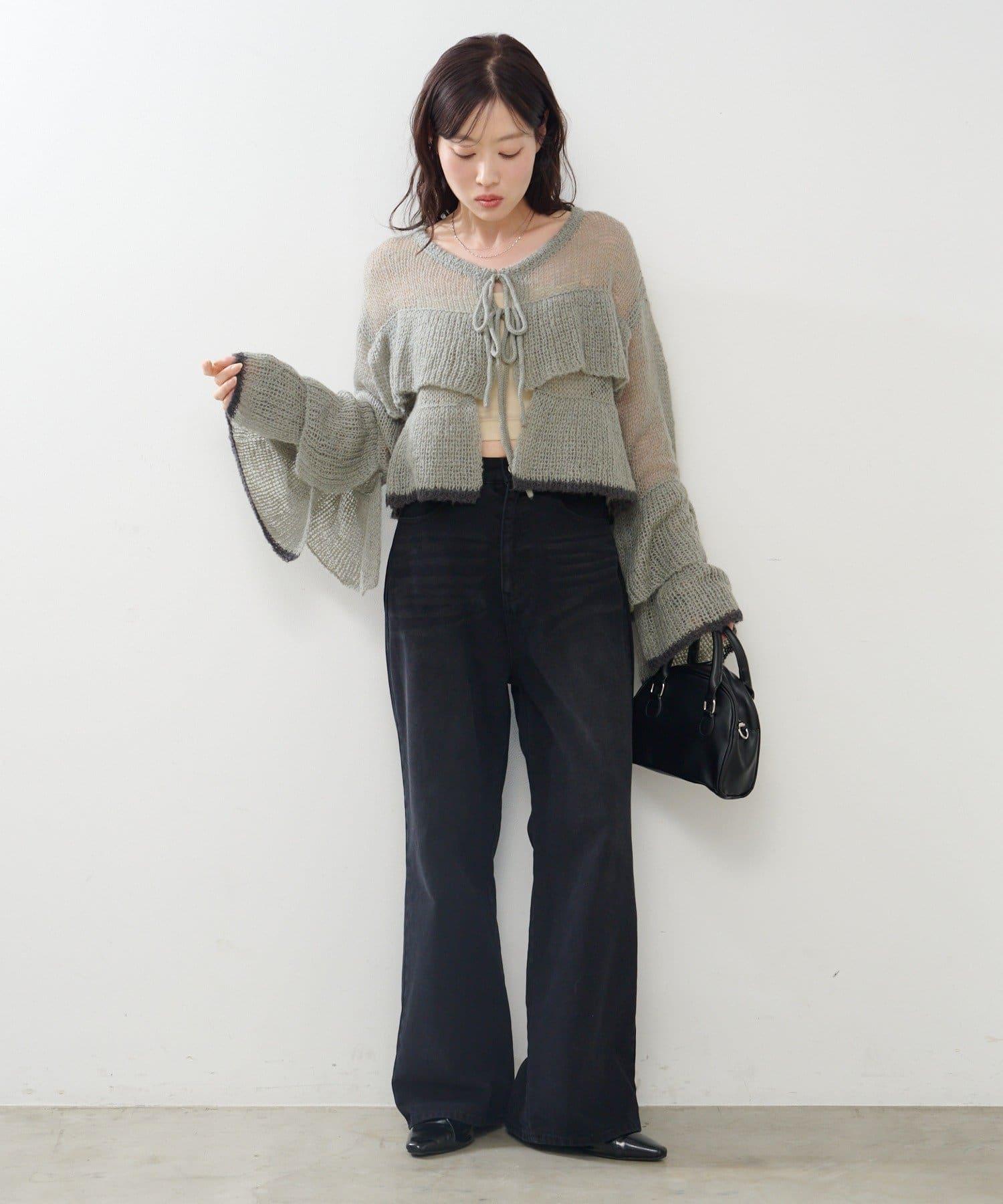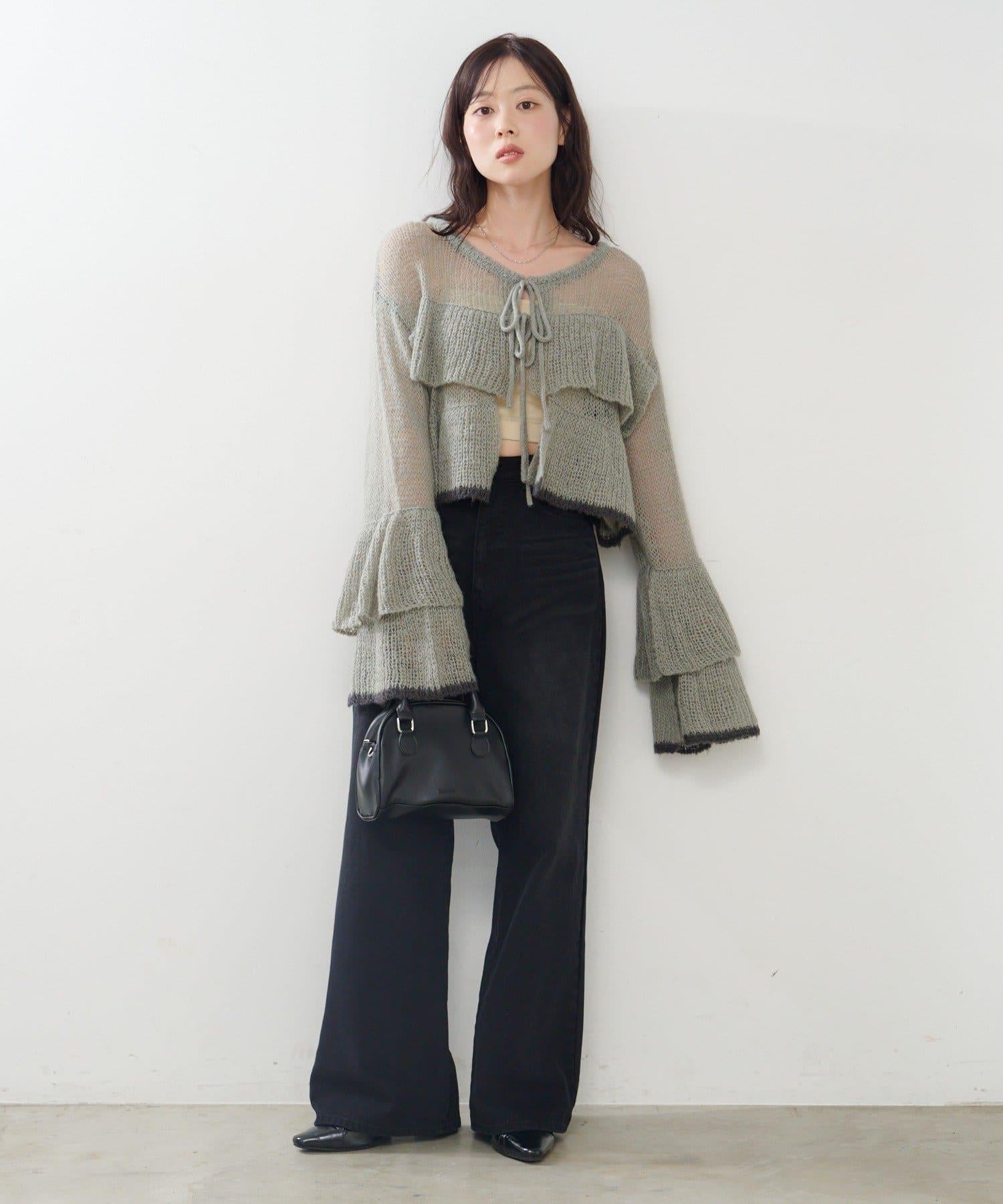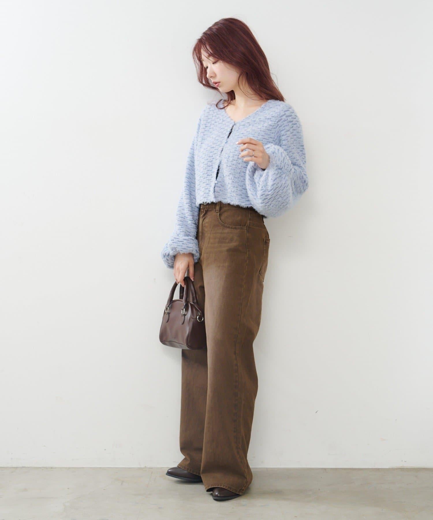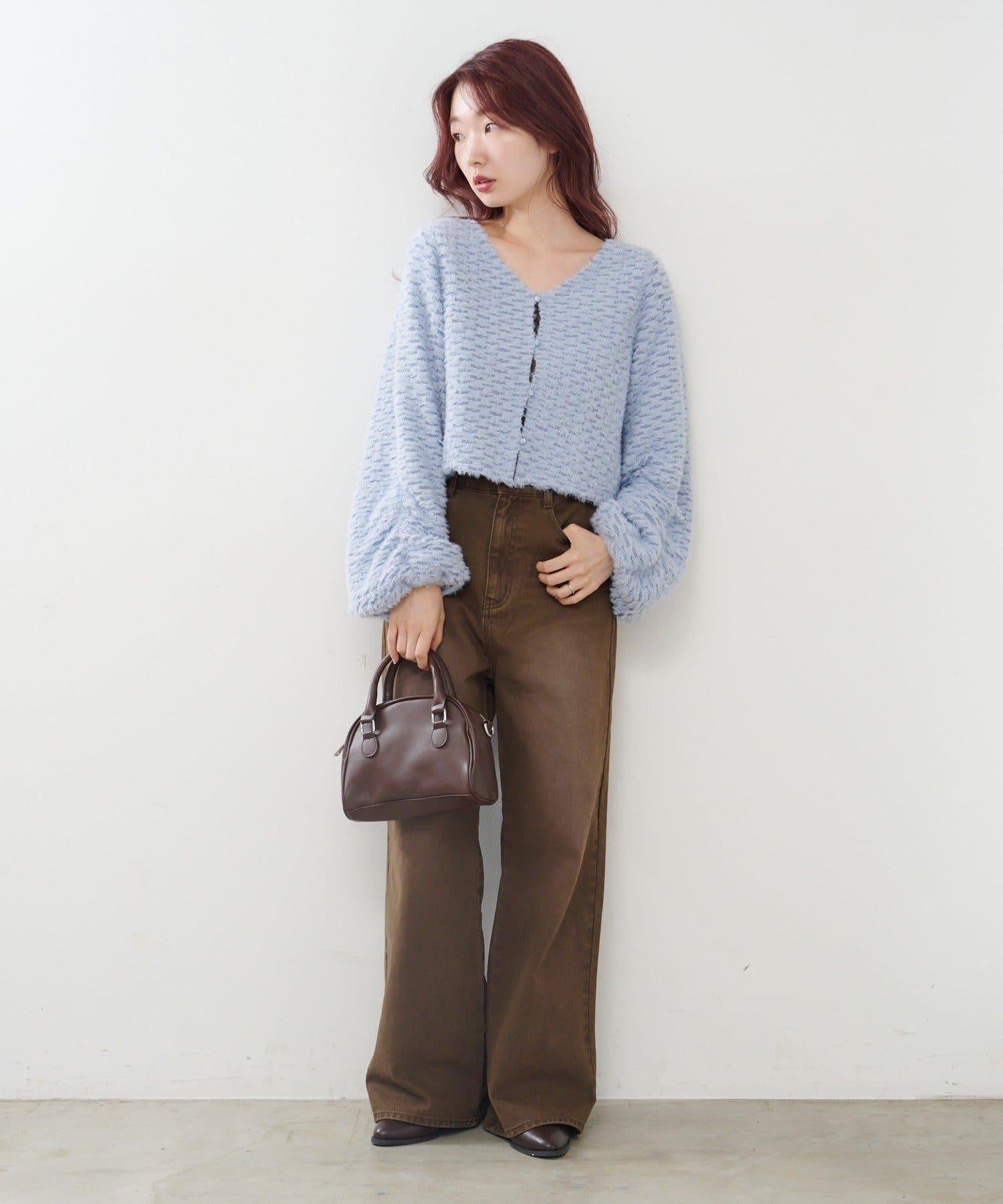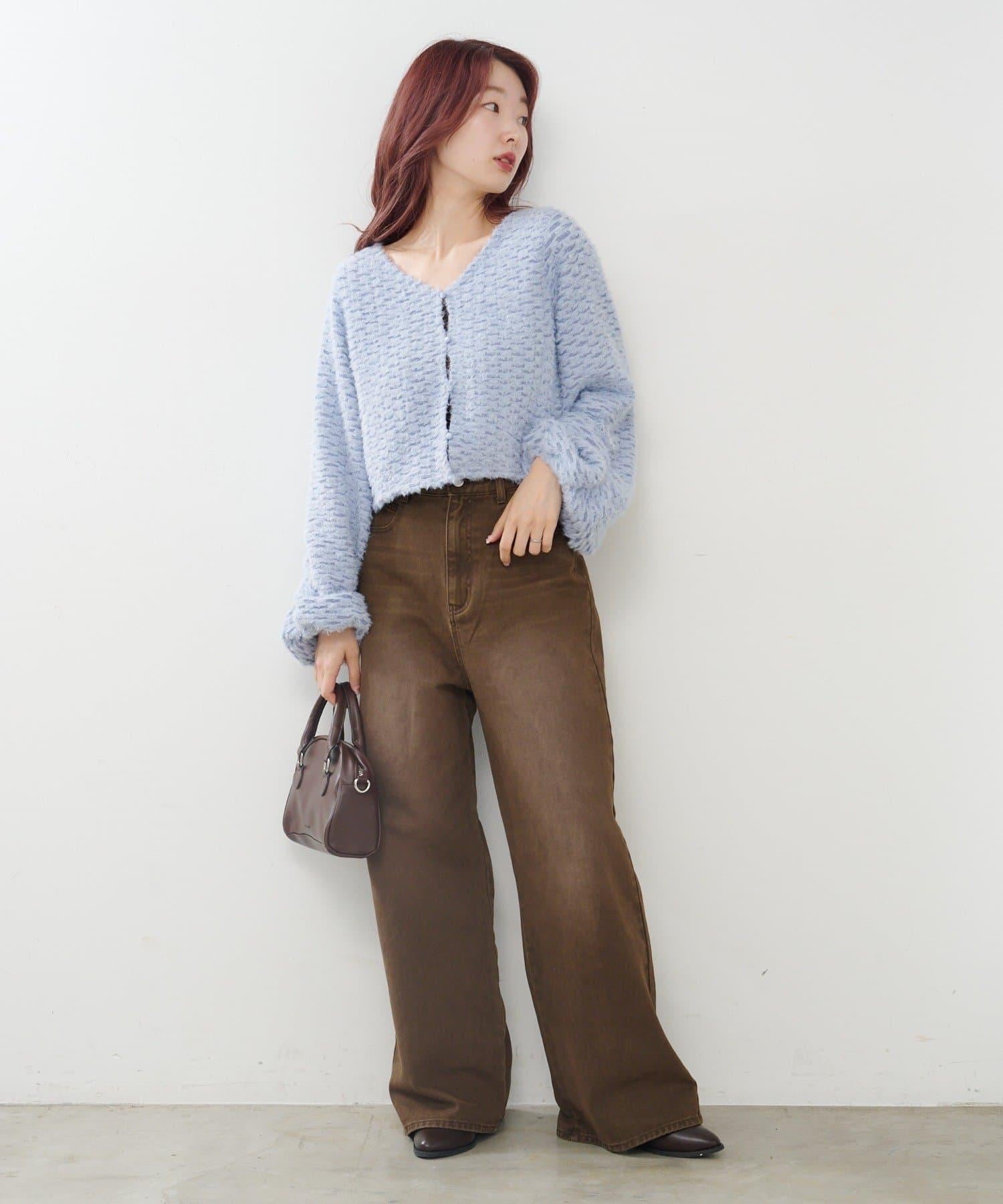 內搭蓬鬆的超大號針織衫,露出背部腰帶。