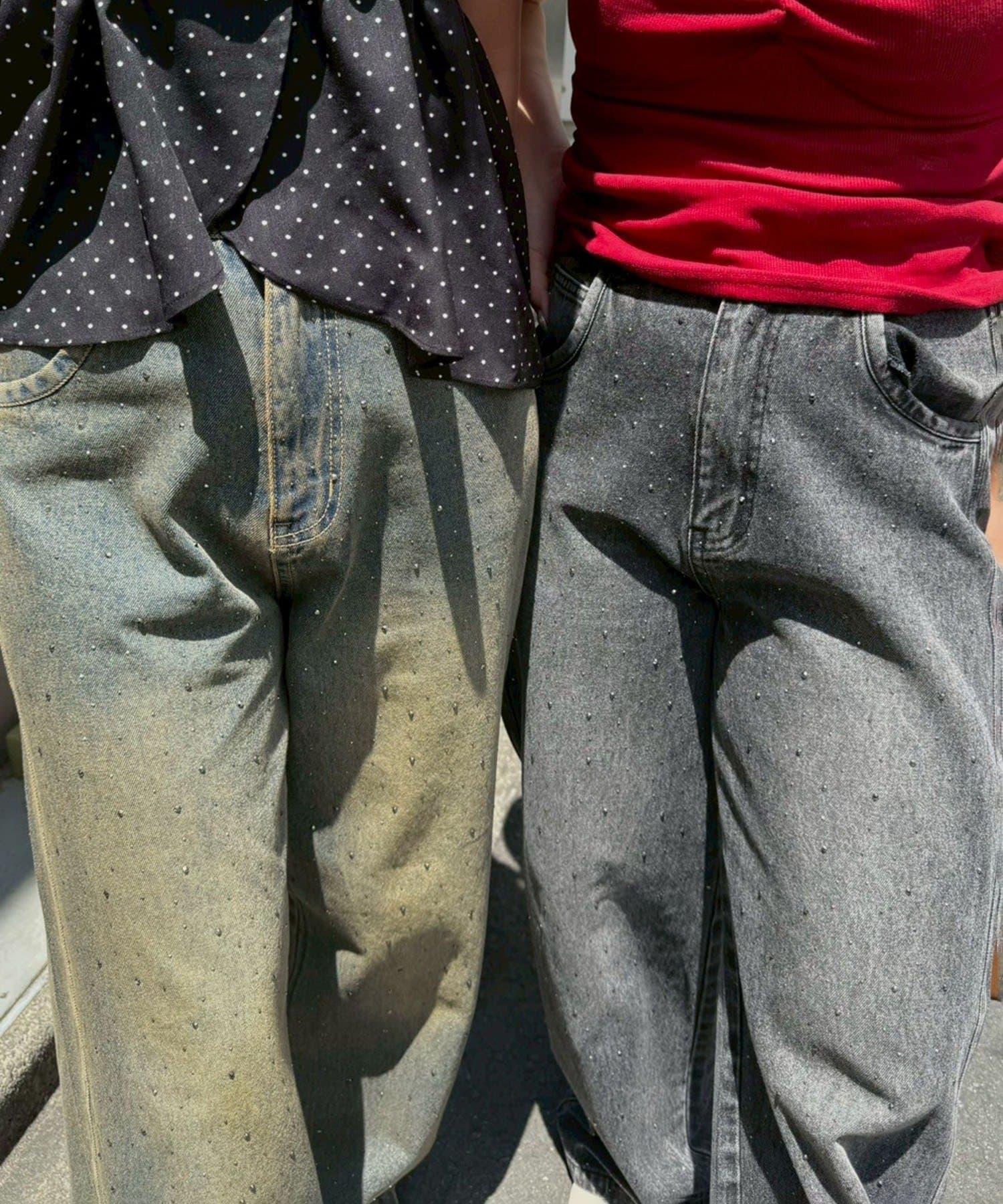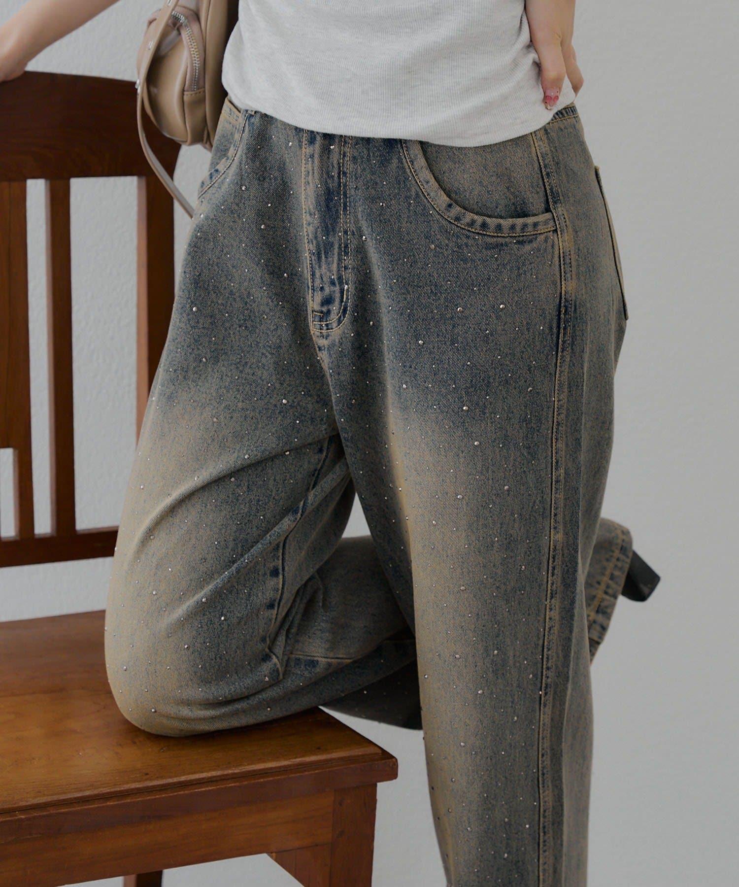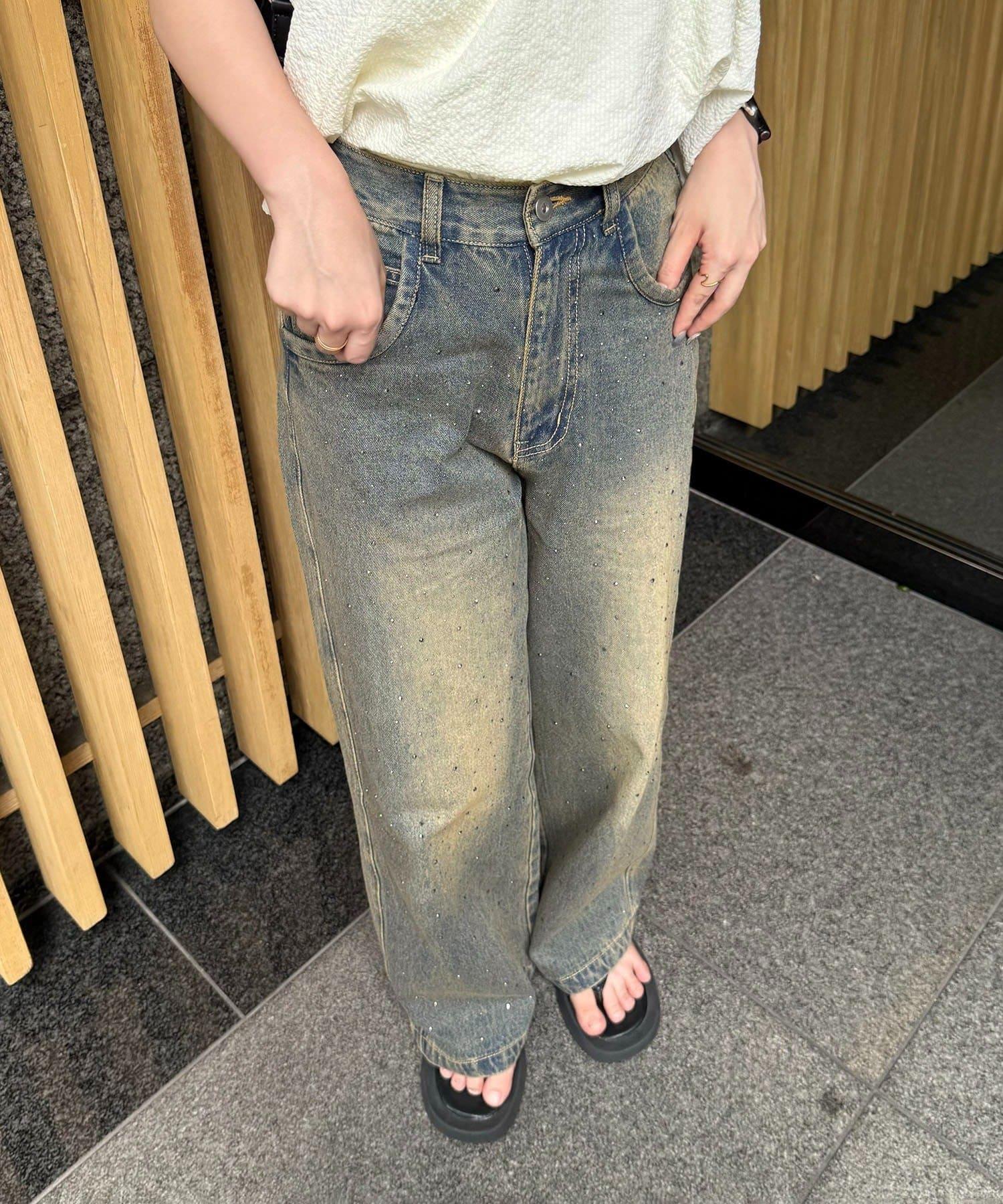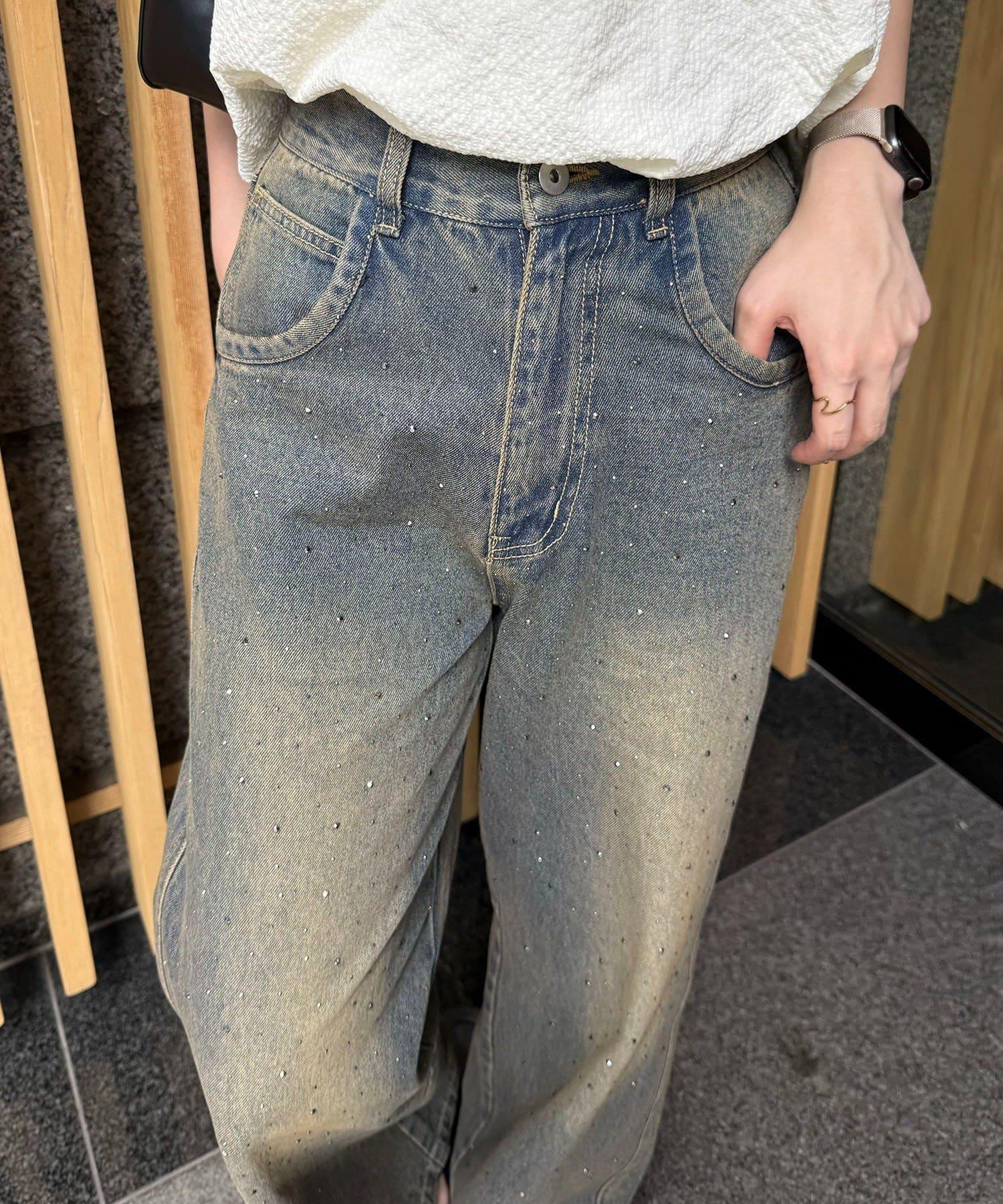 【2尺碼展開】帶石頭的寬鬆牛仔褲