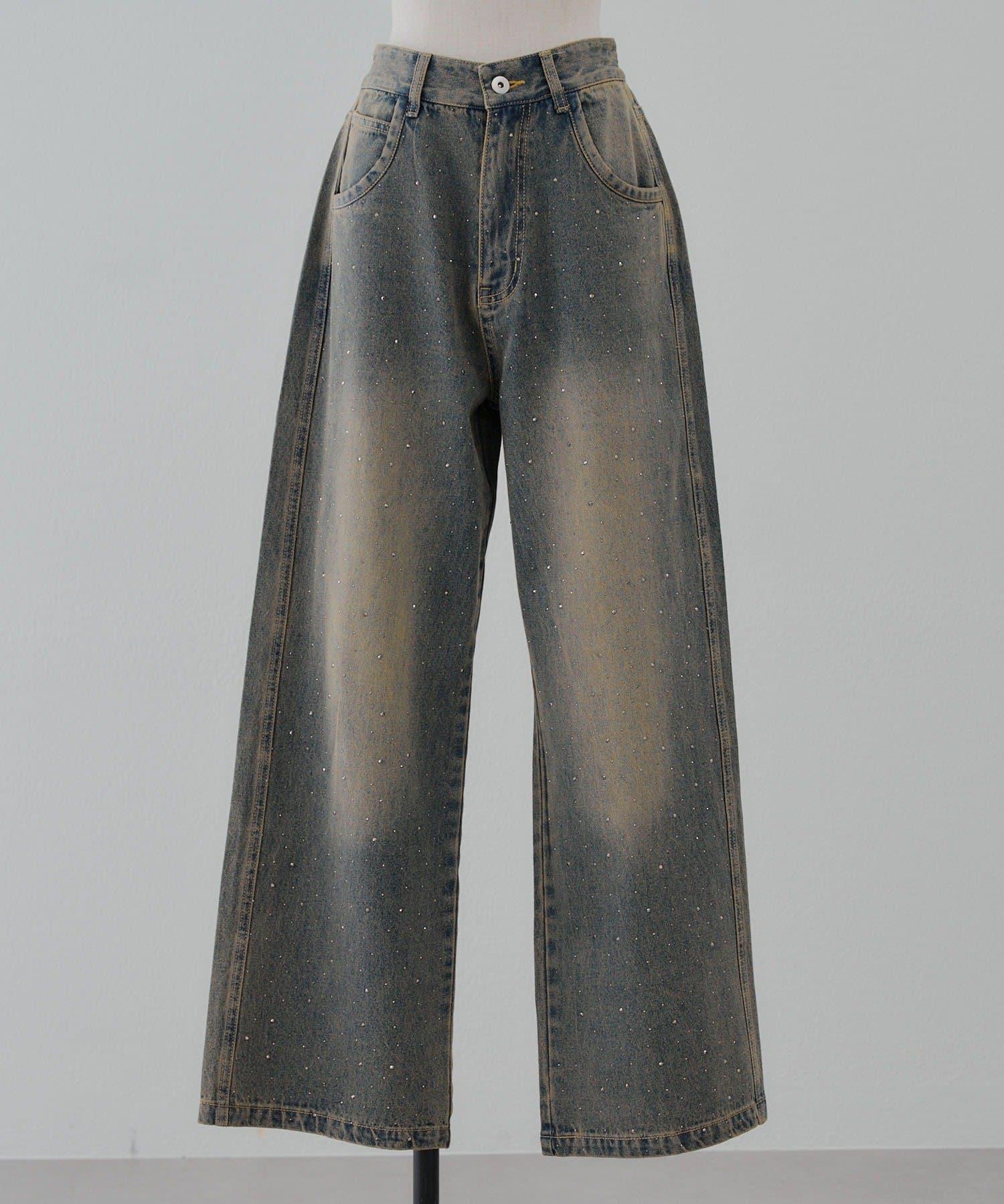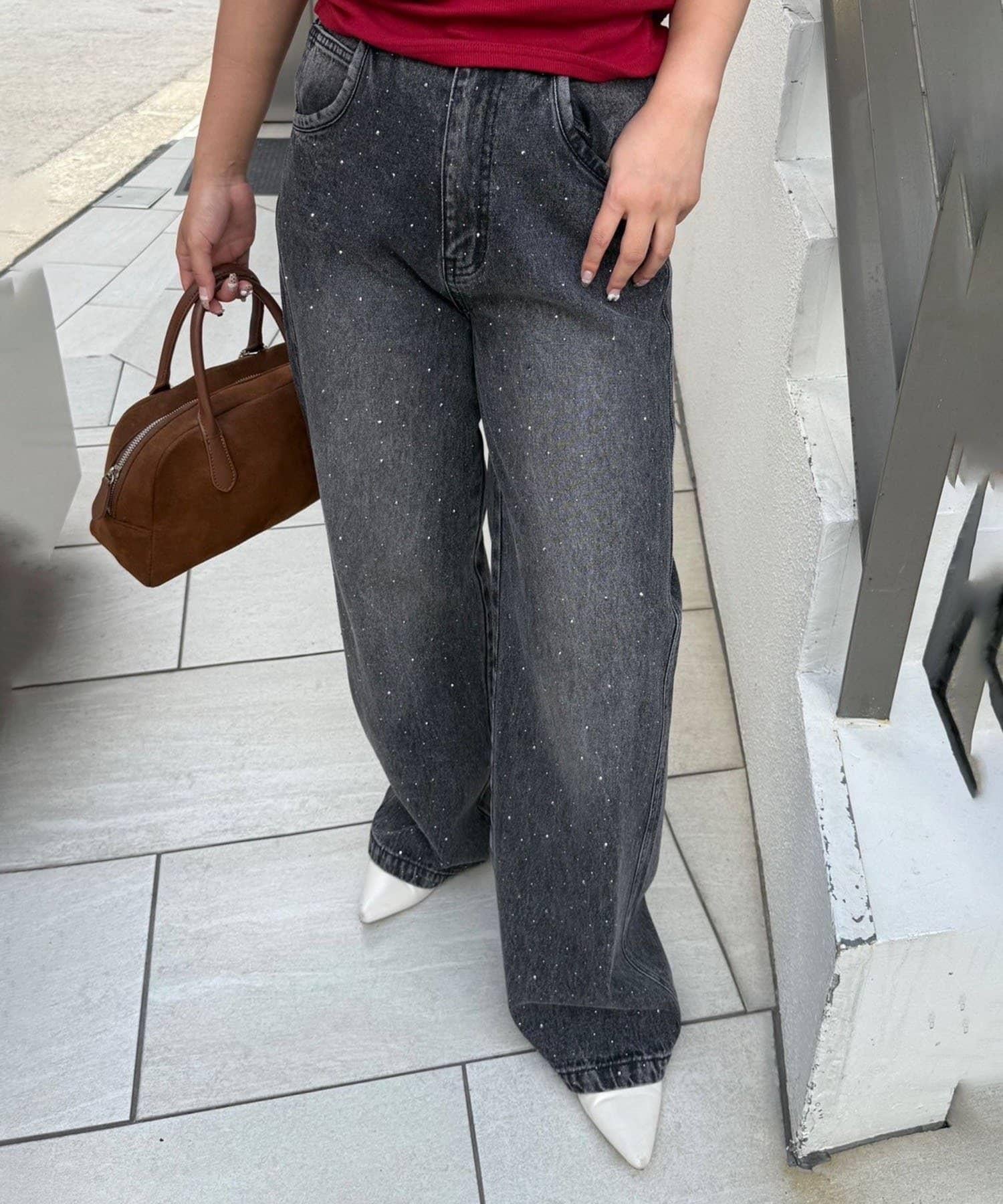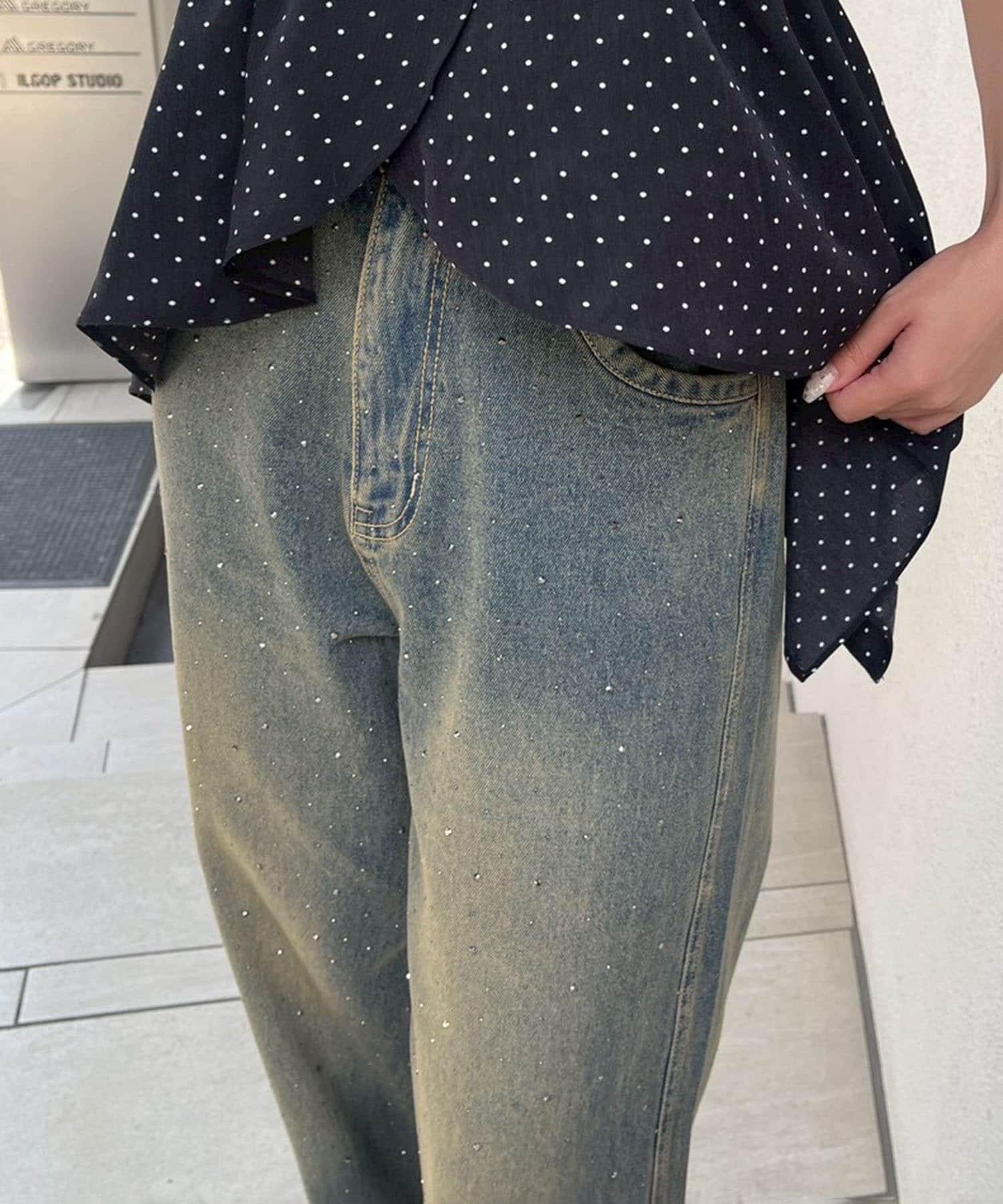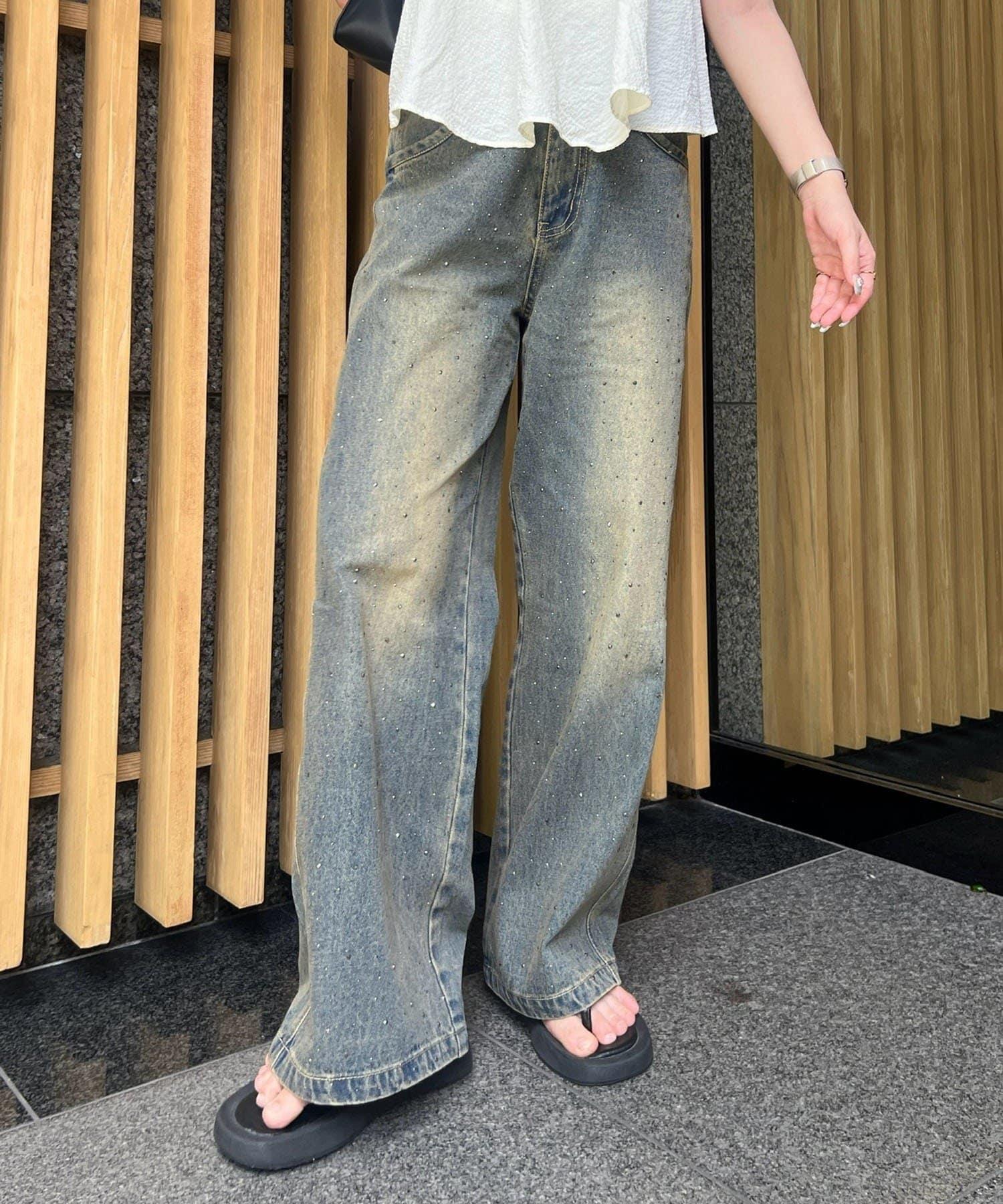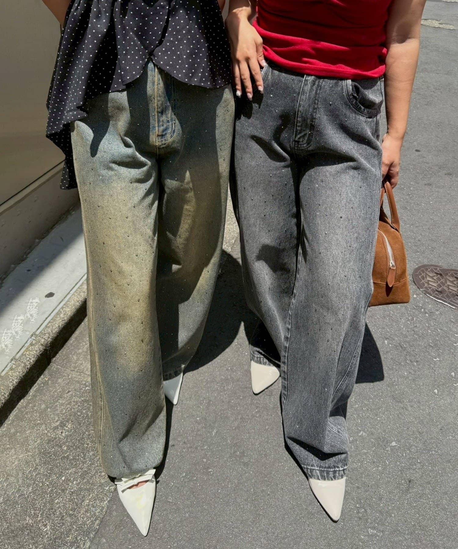 【2尺碼展開】帶石頭的寬鬆牛仔褲
