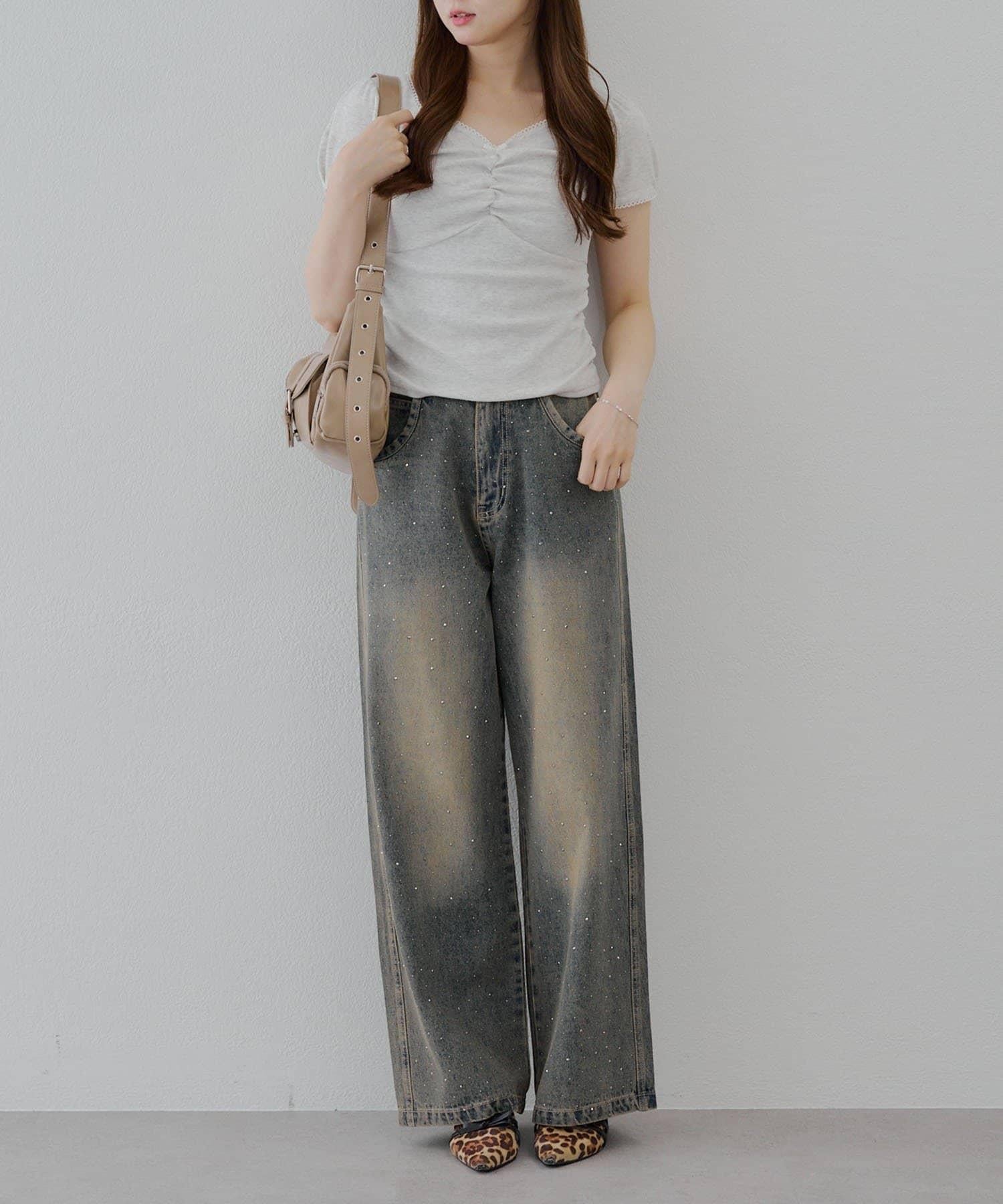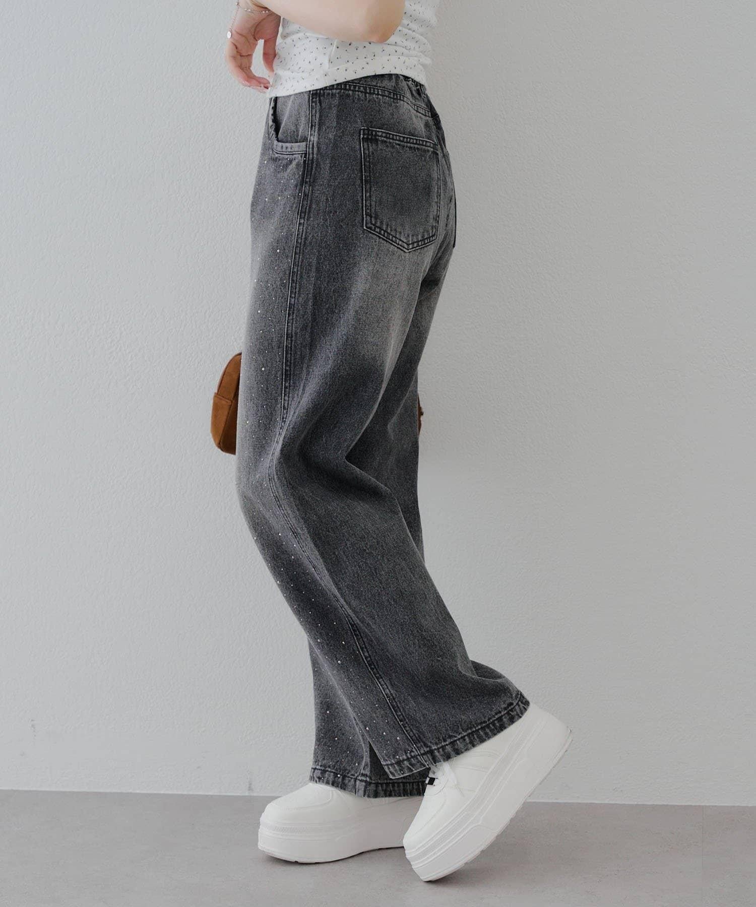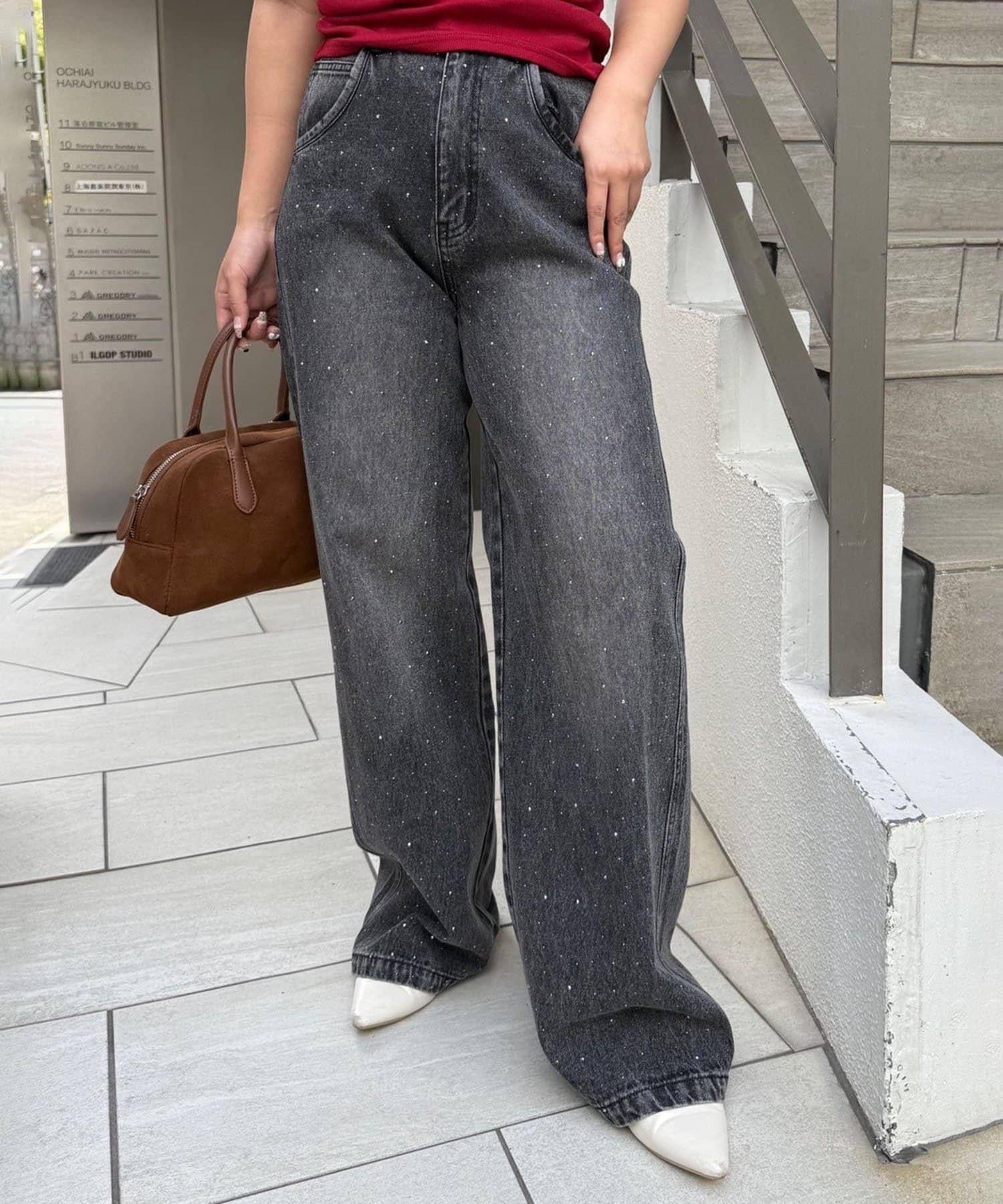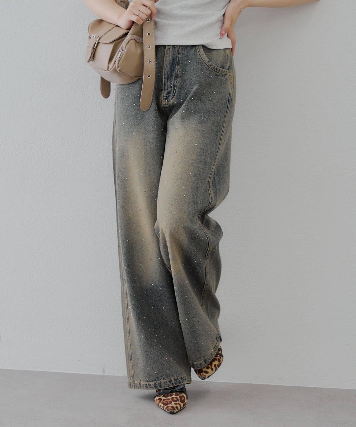 【2尺碼展開】帶石頭的寬鬆牛仔褲