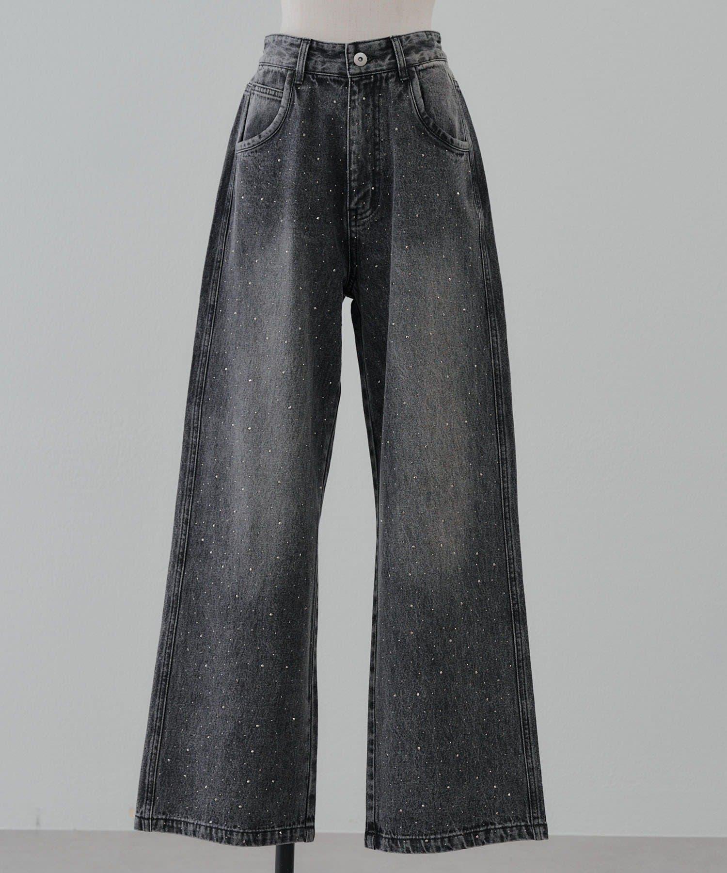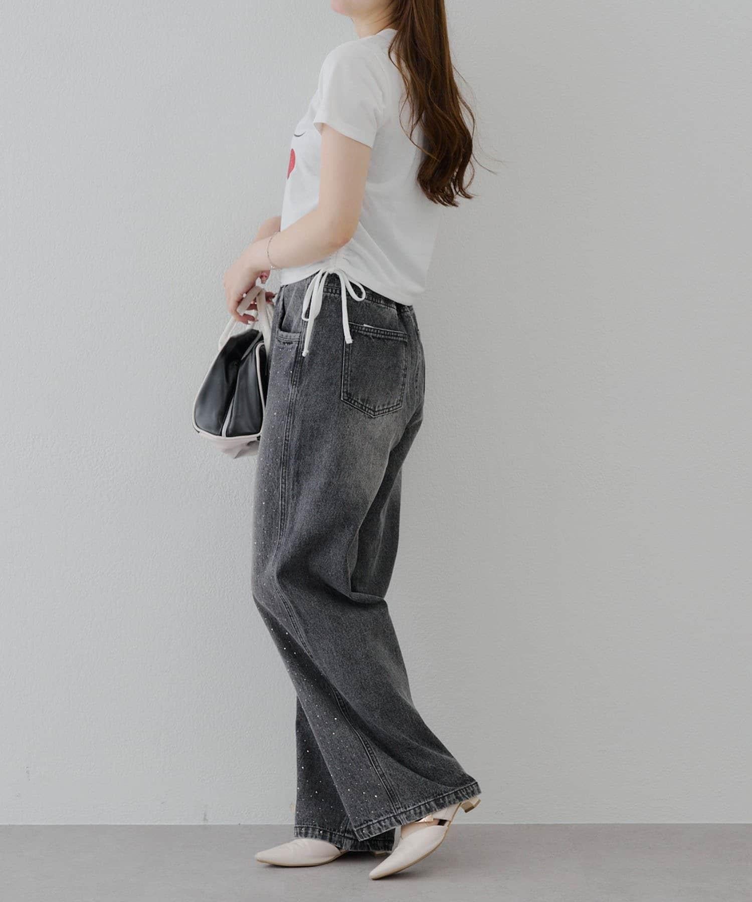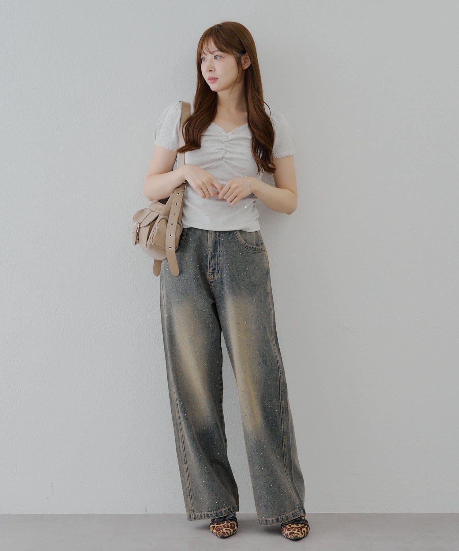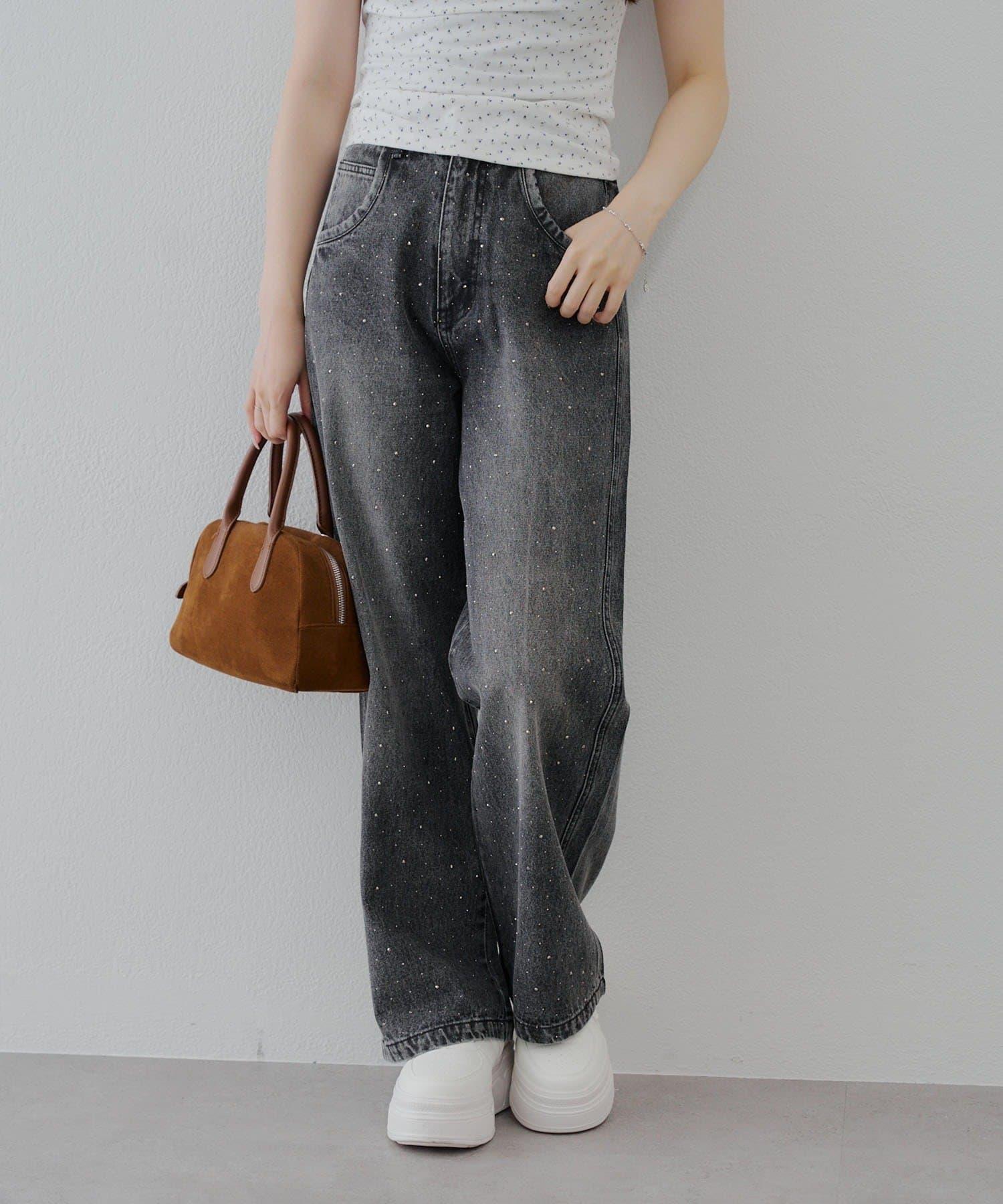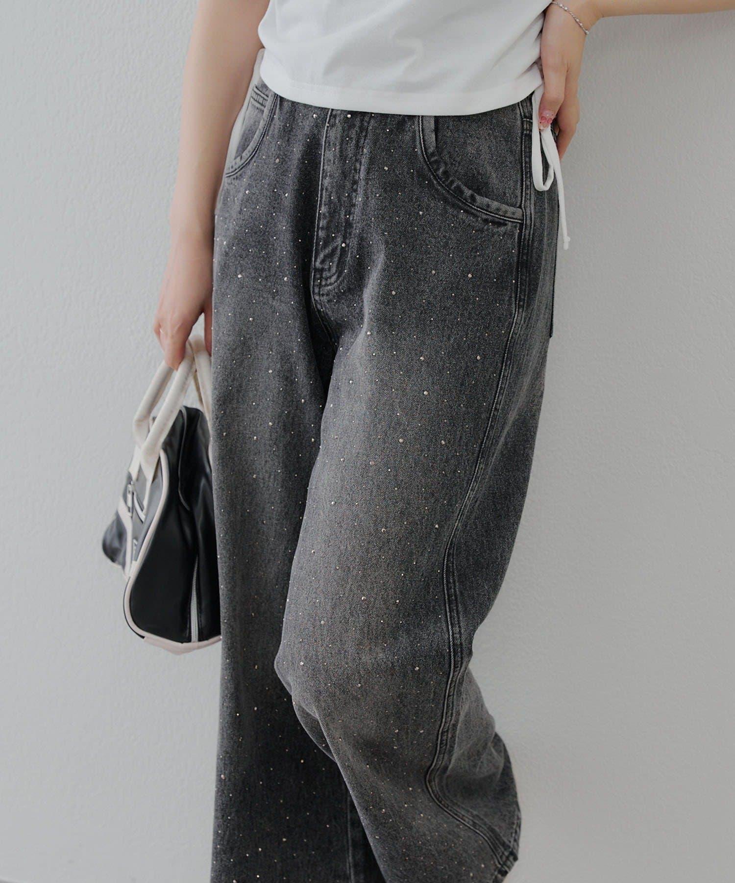 【2尺碼展開】帶石頭的寬鬆牛仔褲