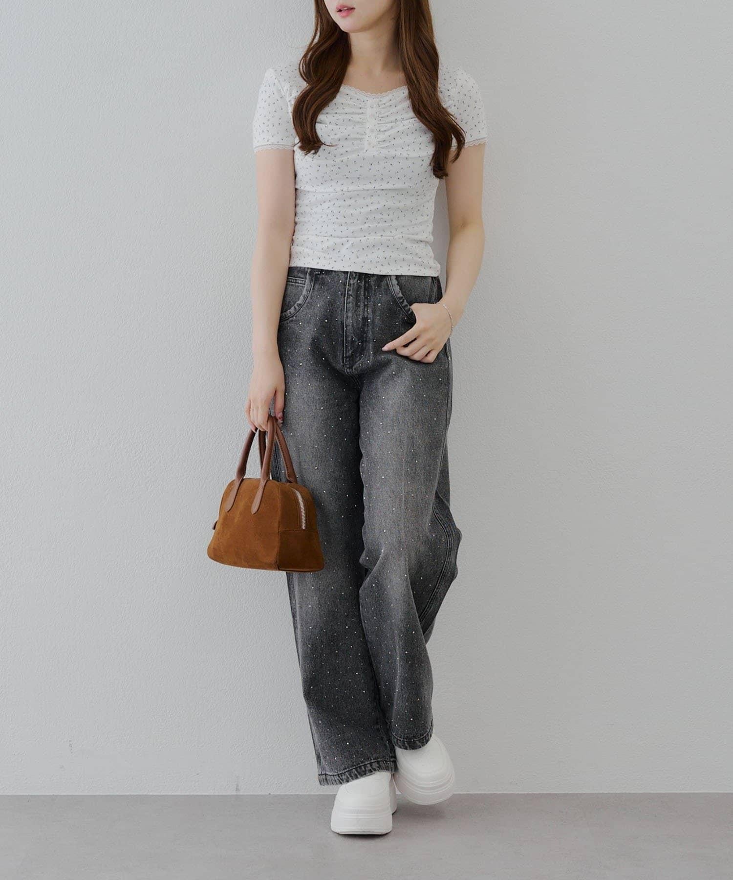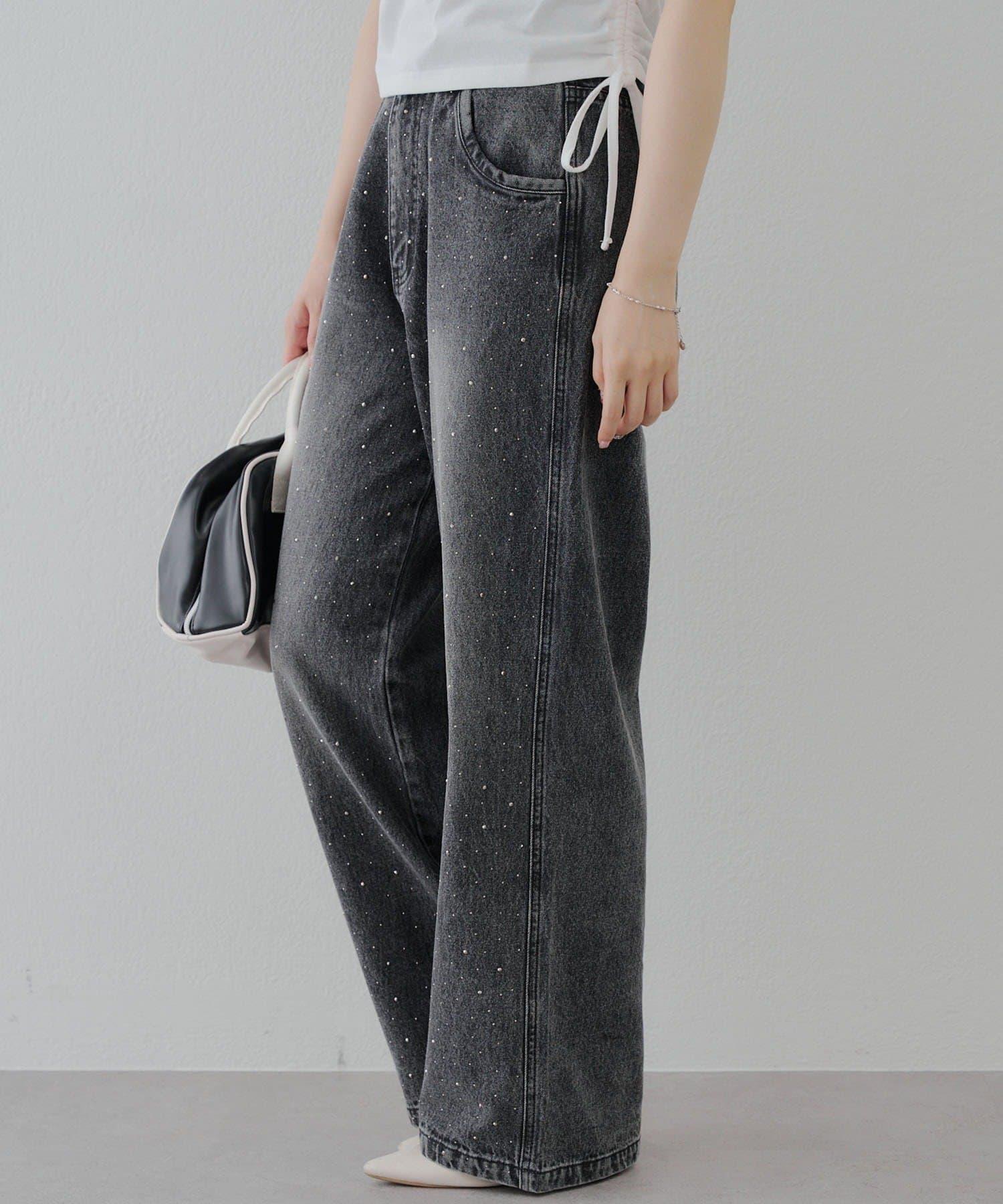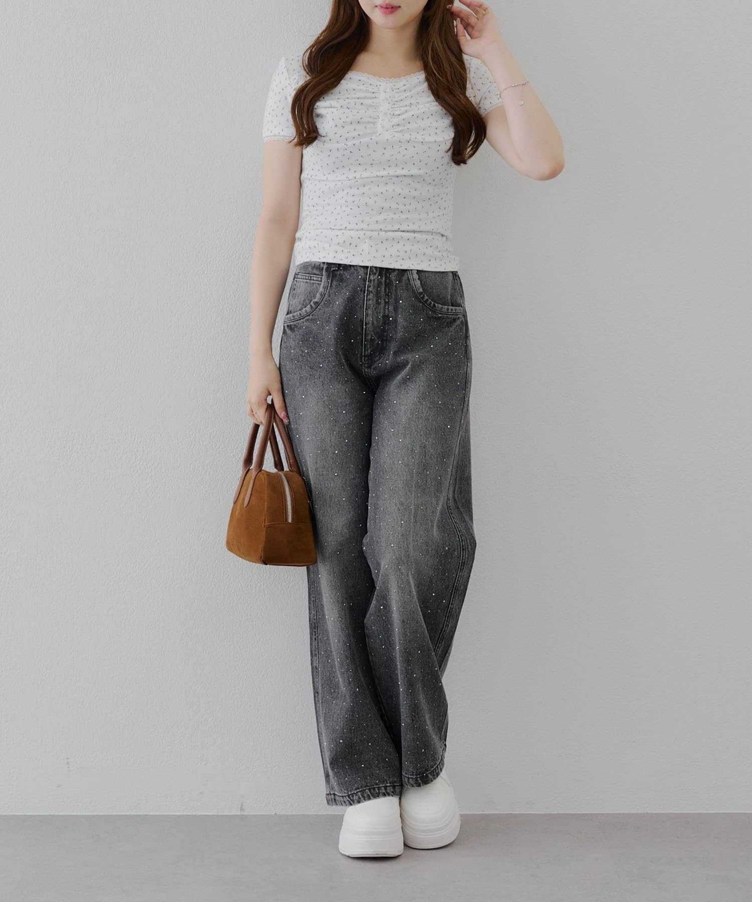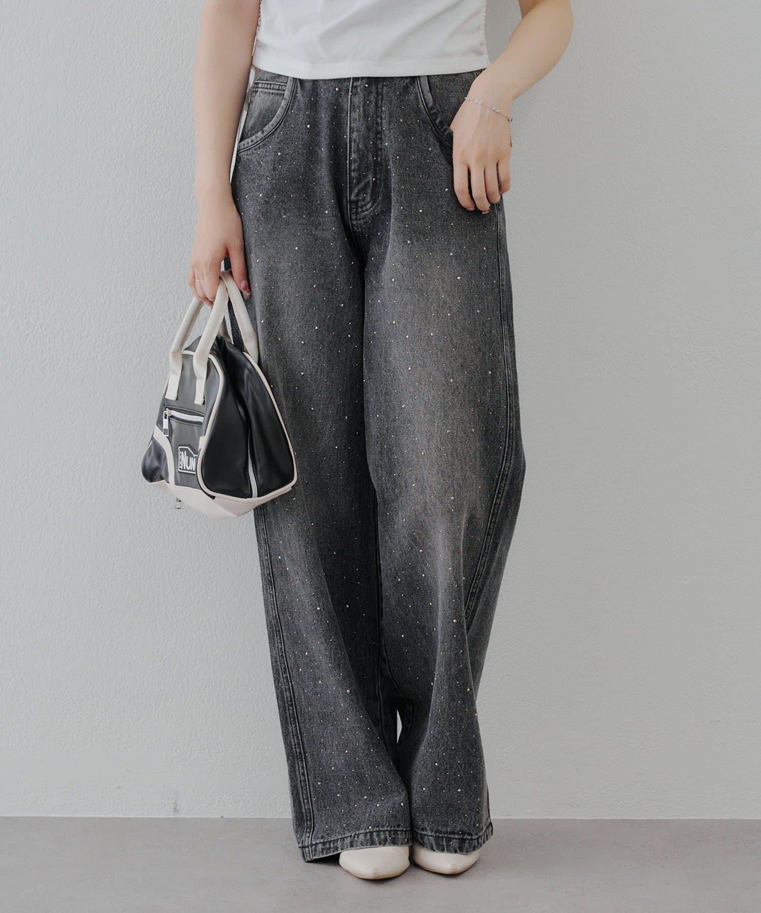 【2尺碼展開】帶石頭的寬鬆牛仔褲